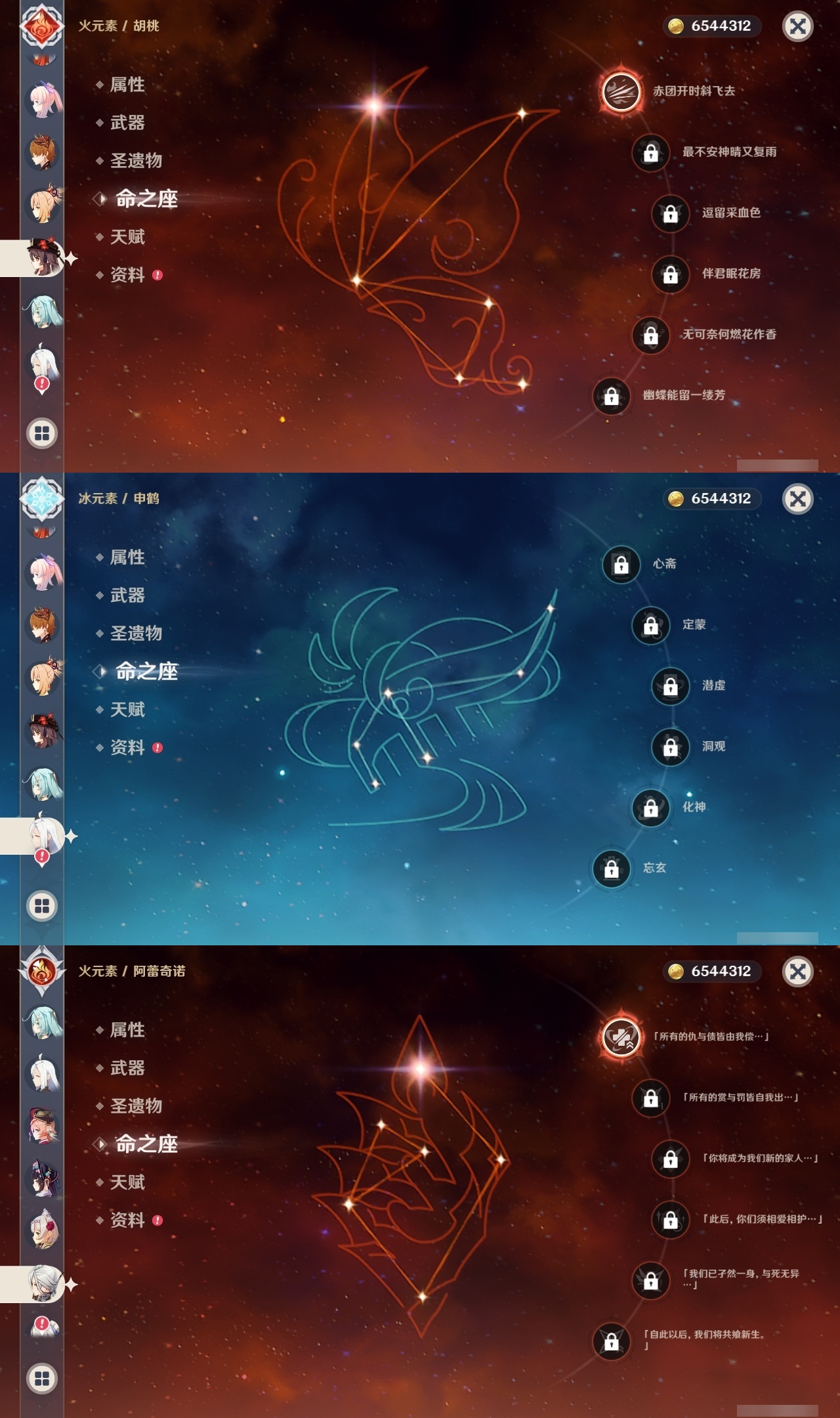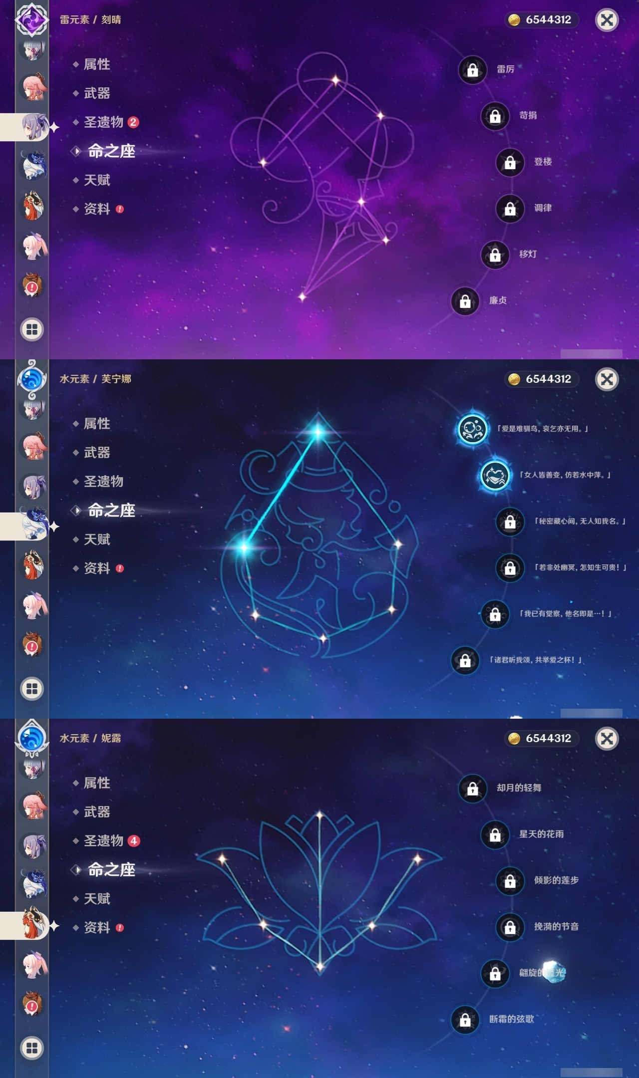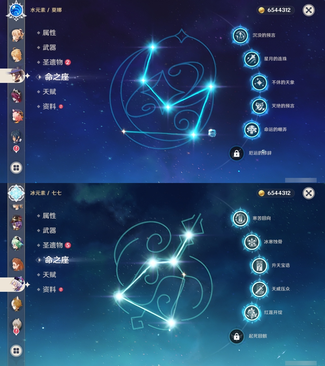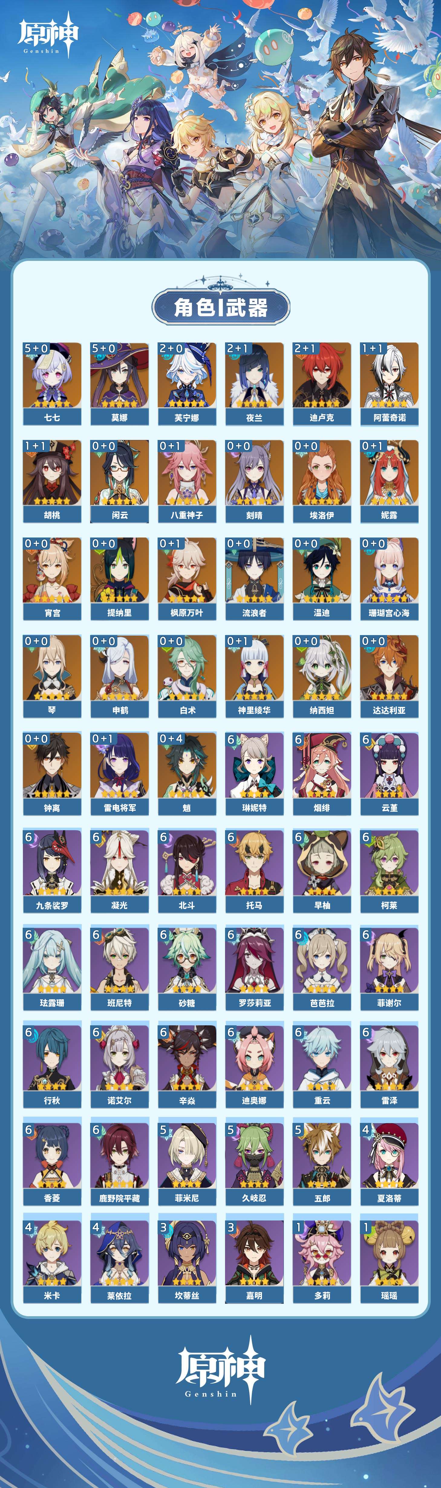 【原神】【lyys10807】冒险等级:60,五星数量:45,五星角色:莫娜 5命七七 5命芙宁娜 2命迪卢克 2命夜兰 2命阿蕾奇诺 1命胡桃 1命琴珊瑚宫心海白术神里绫华温迪宵宫钟离达达利亚申鹤八重神子提纳里闲云妮露纳西妲流浪者枫原万叶魈刻晴雷电将军__五星武器:和璞鸢 4精最初的大魔术赤月之形阿莫斯之弓苍古自由之誓风鹰剑护摩之杖狼的末路磐岩结绿四风原典天空之傲天空之卷雾切之回光薙草之稻光神乐之真意波乱月白经津若水圣显之钥__四星角色:班尼特 6命行秋 6命九条裟罗 6命香菱 6命鹿野院平藏 6命珐露珊 6命凝光 6命迪奥娜 6命砂糖 6命柯莱 6命芭芭拉 6命云堇 6命早柚 6命托马 6命烟绯 6命重云 6命辛焱 6命诺艾尔 6命罗莎莉亚 6命雷泽 6命菲谢尔 6命北斗 6命琳妮特 6命久岐忍 5命五郎 5命菲米尼 5命莱依拉 4命米卡 4命夏洛蒂 4命坎蒂丝 3命嘉明 3命绮良良 1命瑶瑶 1命多莉 1命埃洛伊蓝砚夏沃蕾赛索斯