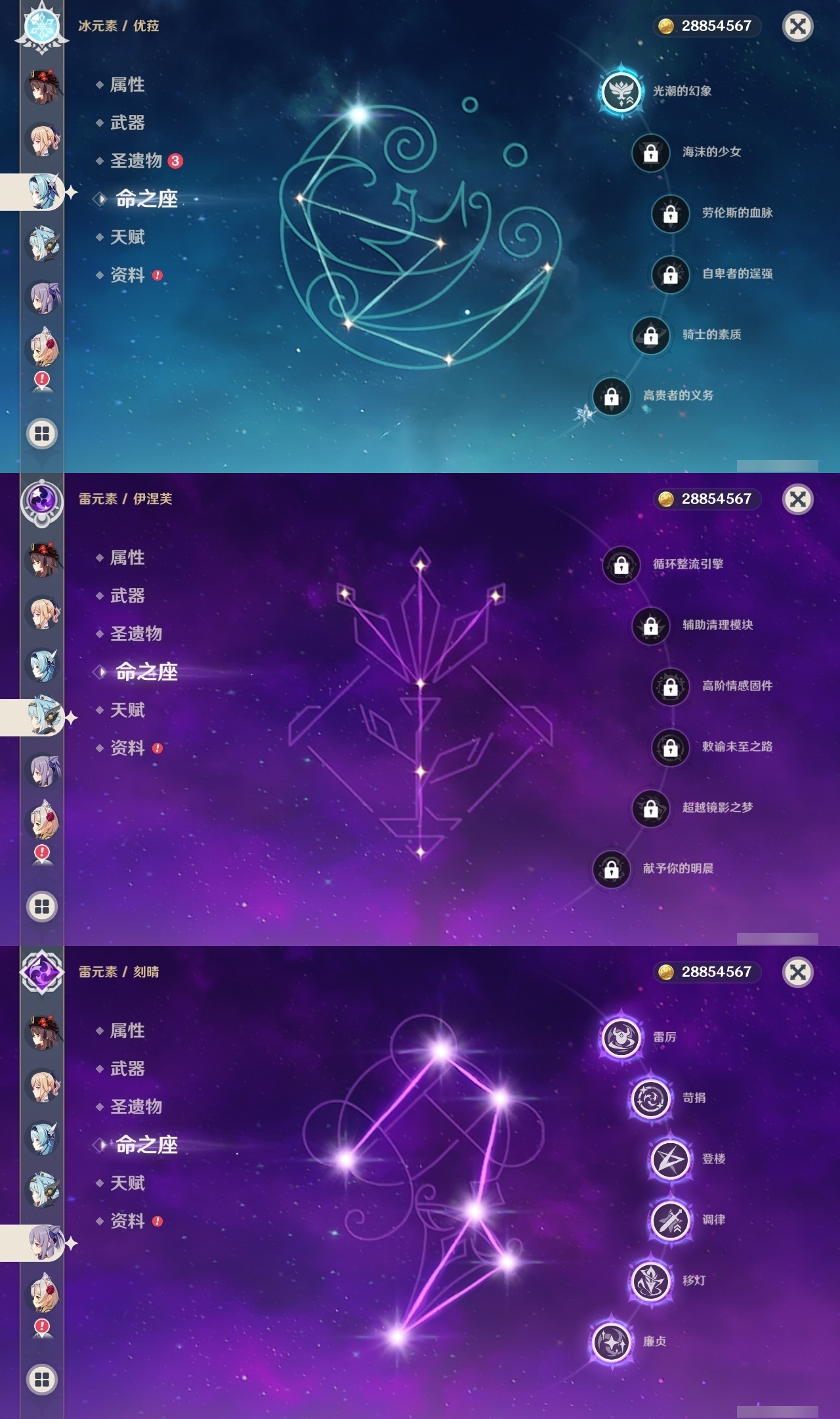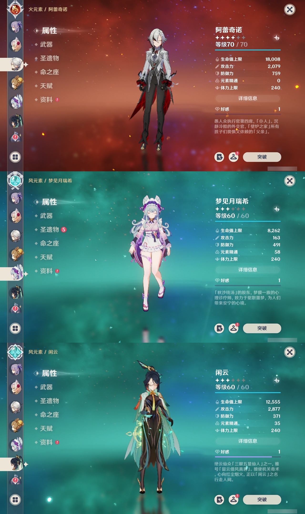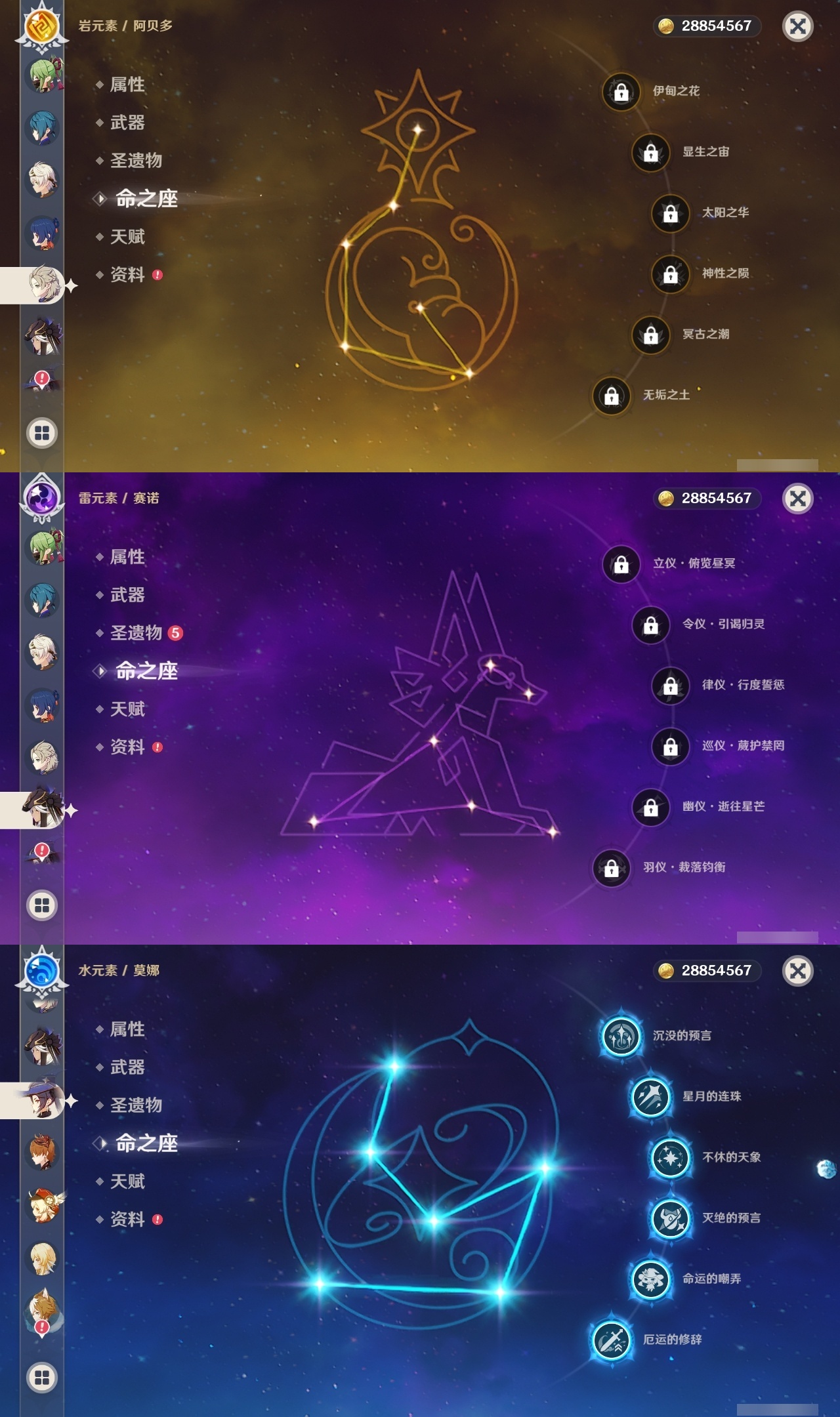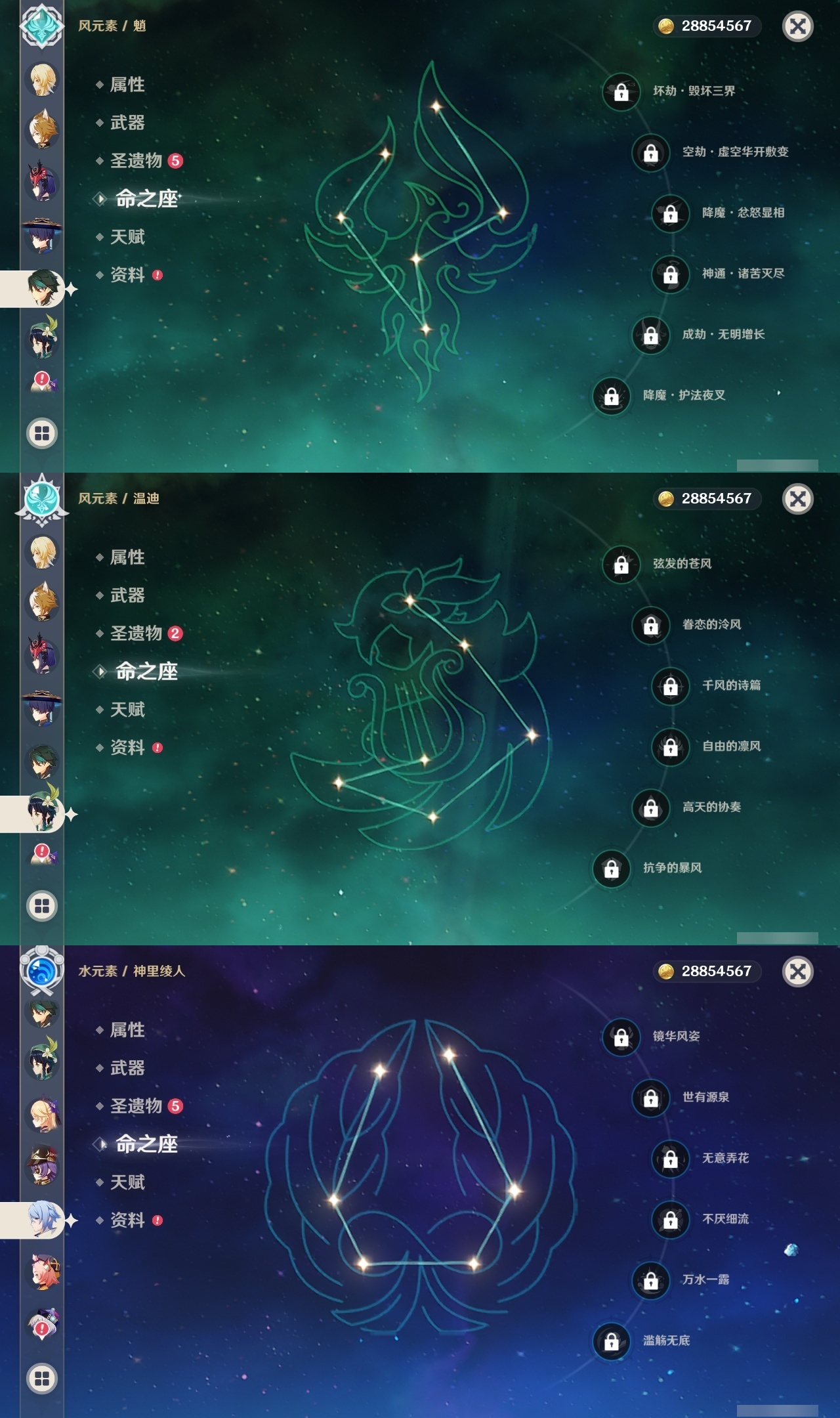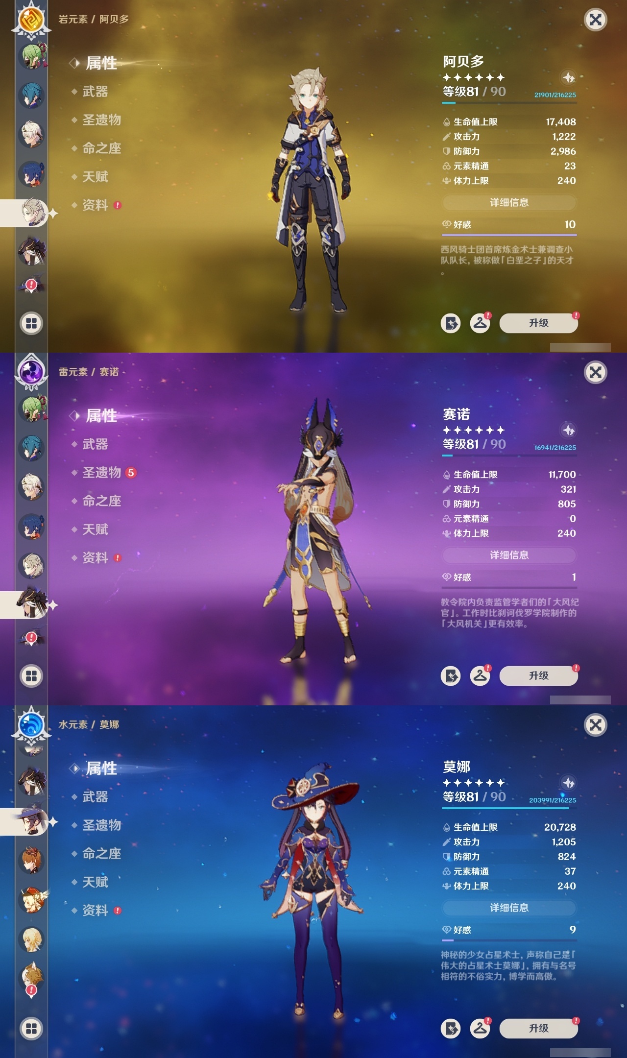 【原神】满命,冒险等级:60,五星数量:61,五星角色:刻晴 6命莫娜 6命七七 6命神里绫华 6命申鹤 6命八重神子 6命夜兰 6命纳西妲 6命迪卢克 5命琴 5命提纳里 3命枫原万叶 2命雷电将军 2命荒泷一斗 2命迪希雅 1命芙宁娜 1命菈乌玛 1命优菈 1命珊瑚宫心海温迪宵宫钟离达达利亚梦见月瑞希神里绫人阿贝多闲云赛诺阿蕾奇诺妮露伊涅芙艾尔海森流浪者甘雨魈胡桃可莉__五星武器:和璞鸢 3精阿莫斯之弓 2精天空之翼 2精千夜浮梦 2精纺夜天镜裁叶萃光不灭月华苍古自由之誓护摩之杖狼的末路四风原典松籁响起之时天空之傲天空之脊天空之卷天空之刃雾切之回光薙草之稻光赤角石溃杵息灾神乐之真意若水猎人之径圣显之钥__四星角色:班尼特 6命行秋 6命九条裟罗 6命香菱 6命久岐忍 6命鹿野院平藏 6命凝光 6命迪奥娜 6命砂糖 6命米卡 6命坎蒂丝 6命柯莱 6命芭芭拉 6命云堇 6命早柚 6命托马 6命五郎 6命烟绯 6命重云 6命辛焱 6命诺艾尔 6命罗莎莉亚 6命雷泽 6命菲谢尔 6命北斗 6命珐露珊 5命琳妮特 4命瑶瑶 3命嘉明 3命夏洛蒂 2命夏沃蕾 2命赛索斯 2命卡齐娜 1命莱依拉 1命多莉 1命卡维 1命伊安珊 1命绮良良菲米尼