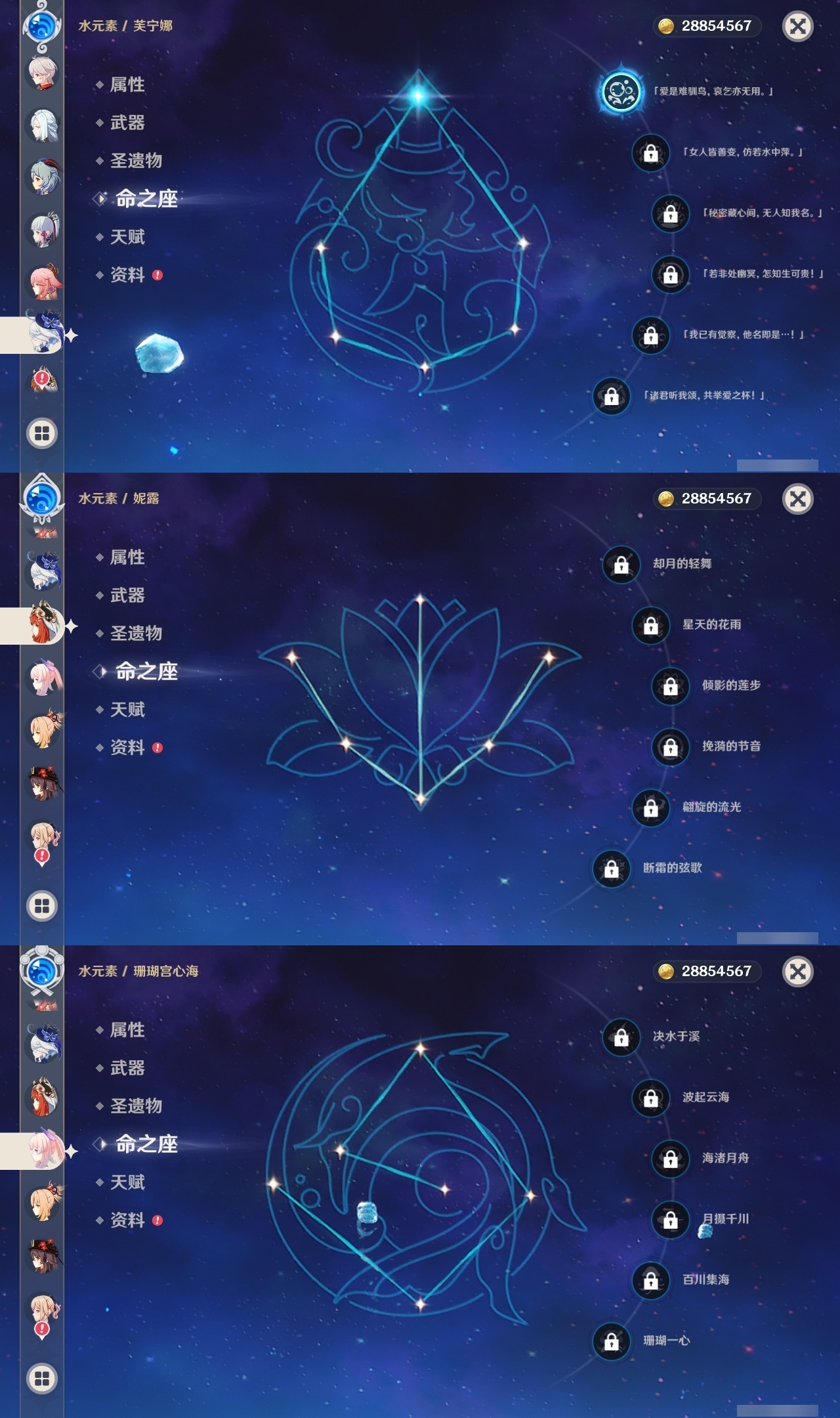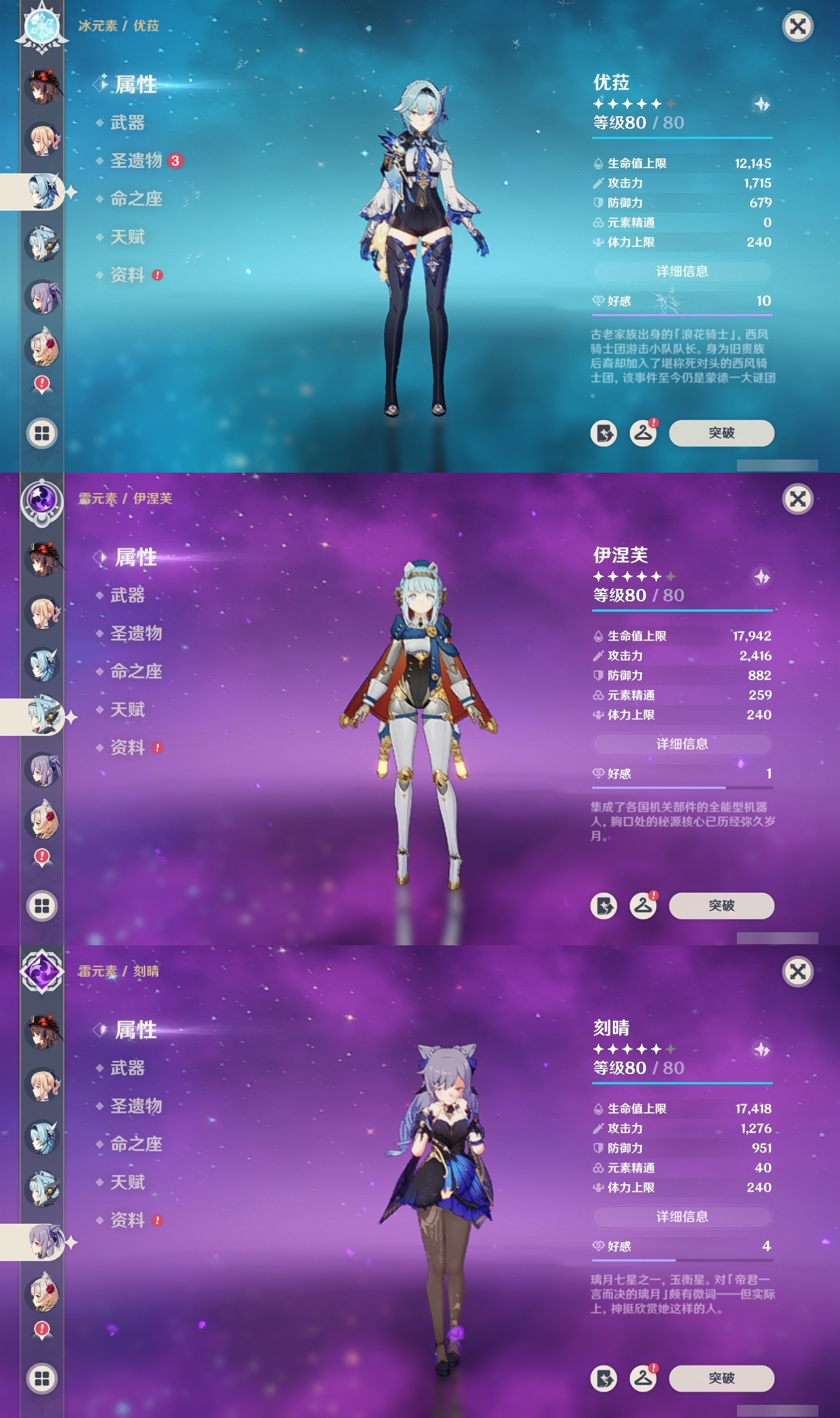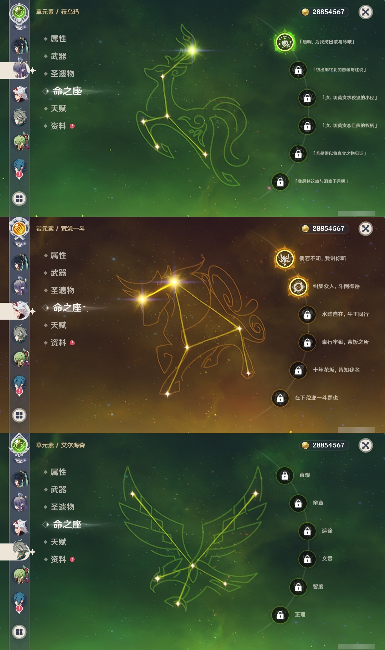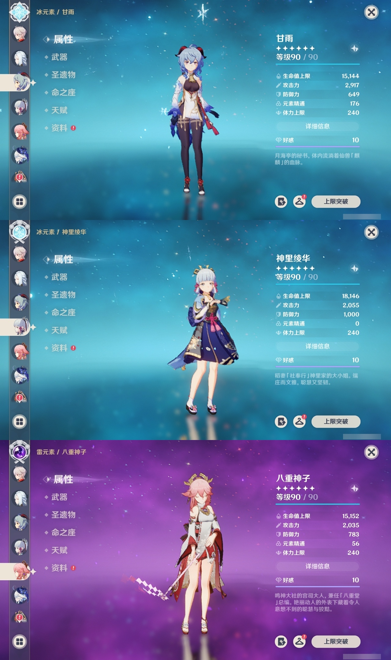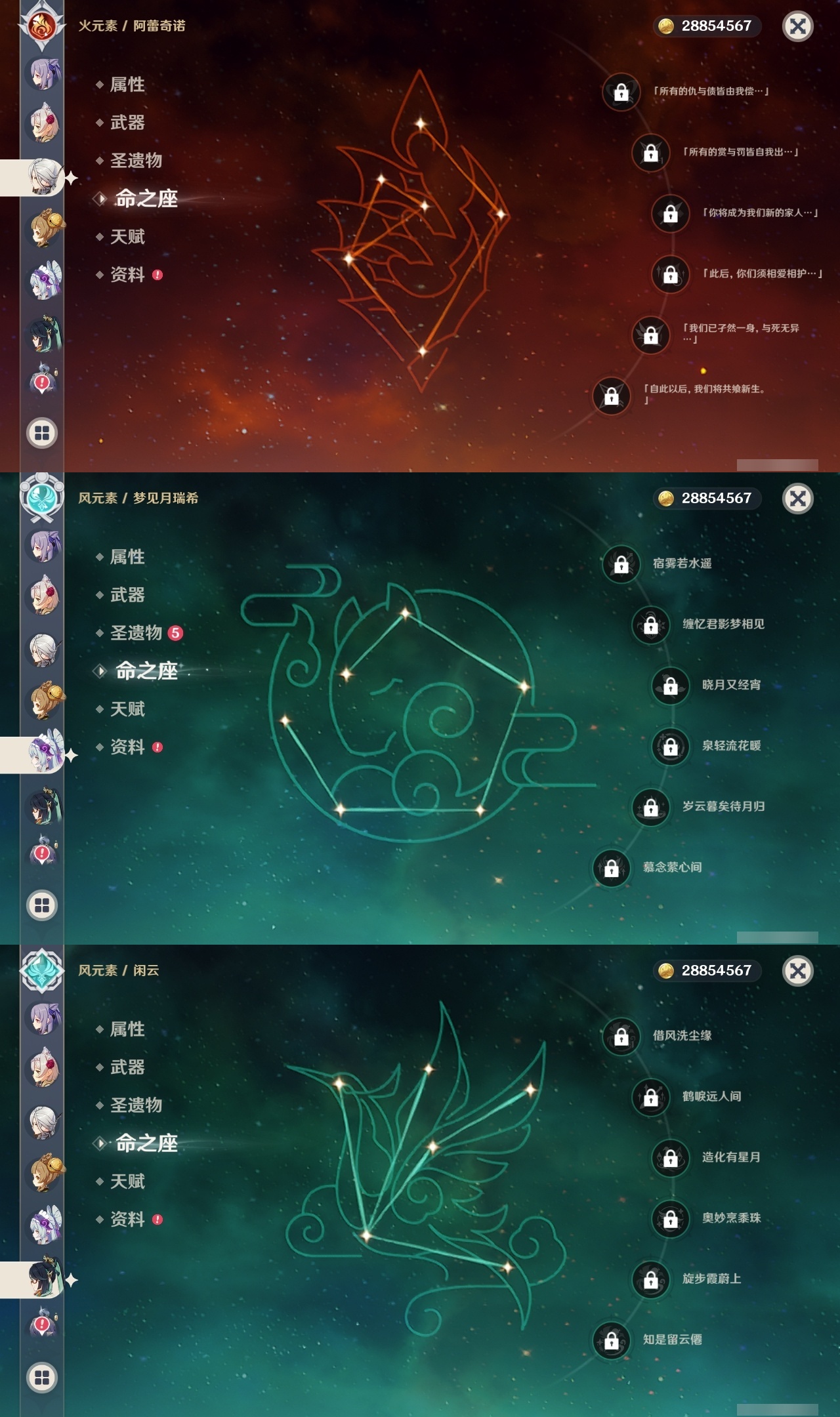 【原神】满命,冒险等级:60,五星数量:61,五星角色:刻晴 6命莫娜 6命七七 6命神里绫华 6命申鹤 6命八重神子 6命夜兰 6命纳西妲 6命迪卢克 5命琴 5命提纳里 3命枫原万叶 2命雷电将军 2命荒泷一斗 2命迪希雅 1命芙宁娜 1命菈乌玛 1命优菈 1命珊瑚宫心海温迪宵宫钟离达达利亚梦见月瑞希神里绫人阿贝多闲云赛诺阿蕾奇诺妮露伊涅芙艾尔海森流浪者甘雨魈胡桃可莉__五星武器:和璞鸢 3精阿莫斯之弓 2精天空之翼 2精千夜浮梦 2精纺夜天镜裁叶萃光不灭月华苍古自由之誓护摩之杖狼的末路四风原典松籁响起之时天空之傲天空之脊天空之卷天空之刃雾切之回光薙草之稻光赤角石溃杵息灾神乐之真意若水猎人之径圣显之钥__四星角色:班尼特 6命行秋 6命九条裟罗 6命香菱 6命久岐忍 6命鹿野院平藏 6命凝光 6命迪奥娜 6命砂糖 6命米卡 6命坎蒂丝 6命柯莱 6命芭芭拉 6命云堇 6命早柚 6命托马 6命五郎 6命烟绯 6命重云 6命辛焱 6命诺艾尔 6命罗莎莉亚 6命雷泽 6命菲谢尔 6命北斗 6命珐露珊 5命琳妮特 4命瑶瑶 3命嘉明 3命夏洛蒂 2命夏沃蕾 2命赛索斯 2命卡齐娜 1命莱依拉 1命多莉 1命卡维 1命伊安珊 1命绮良良菲米尼