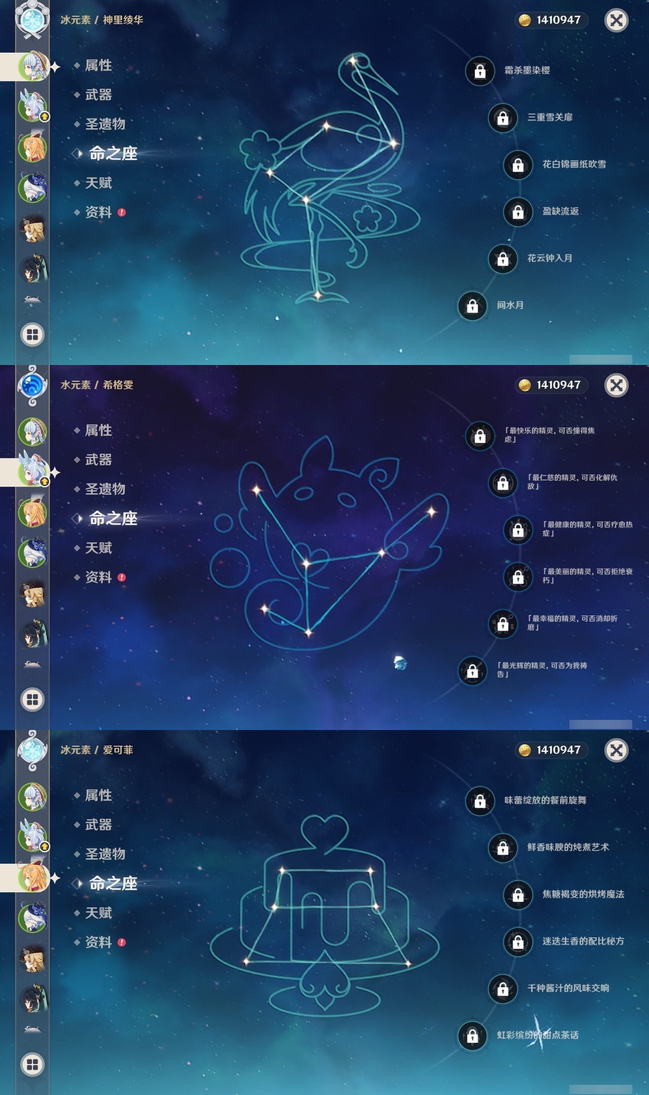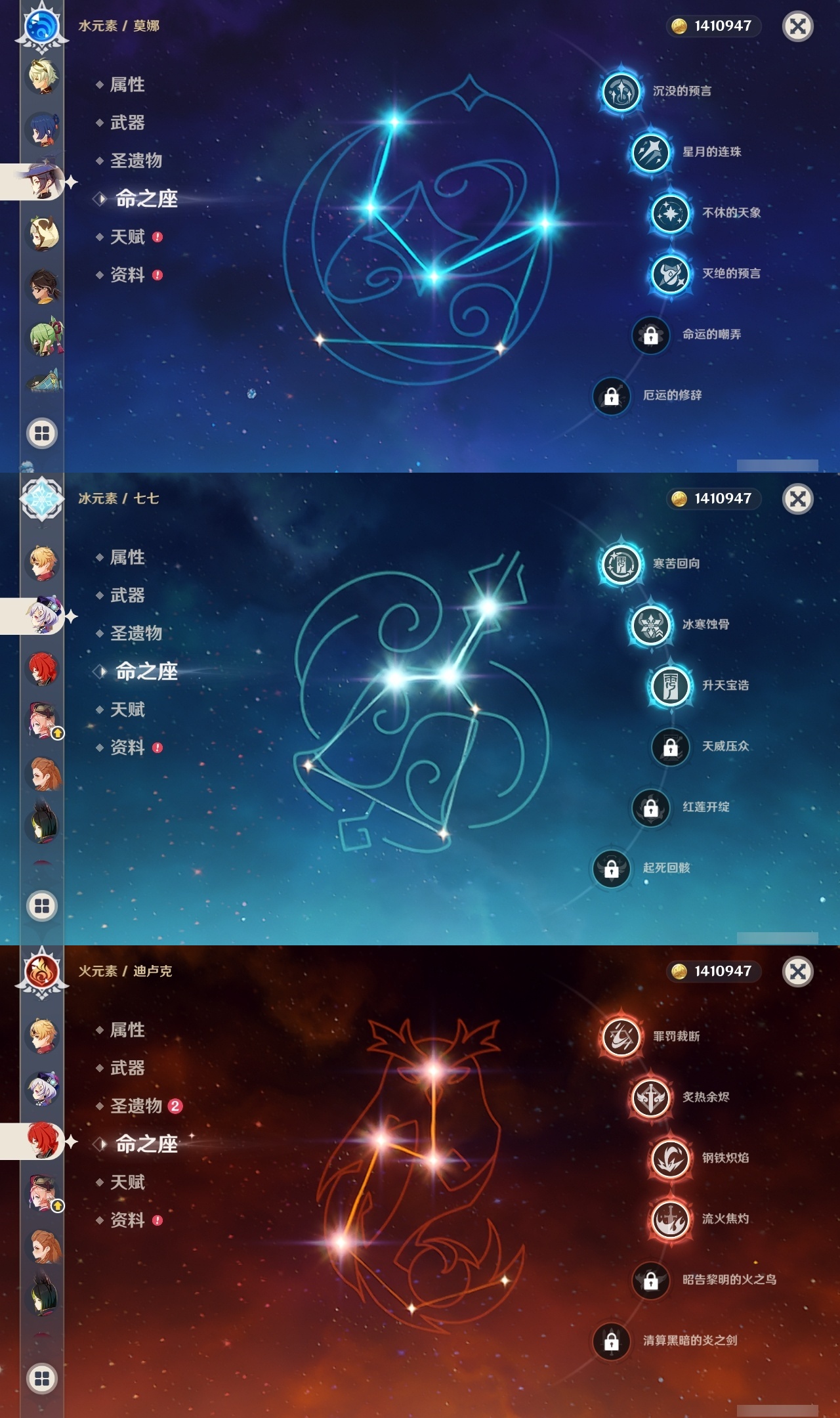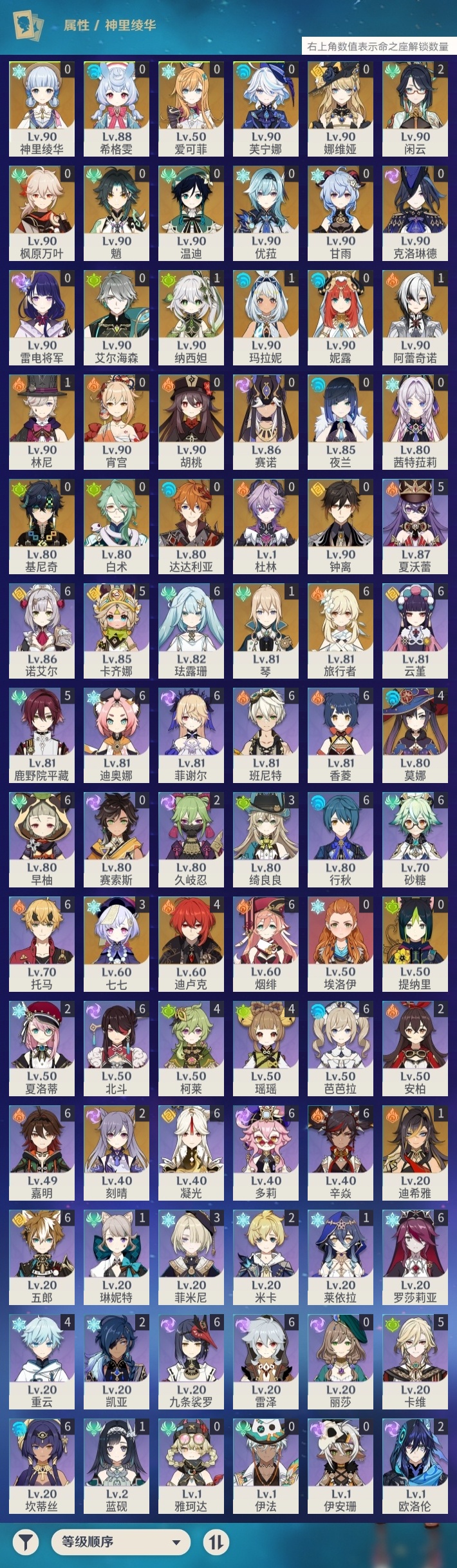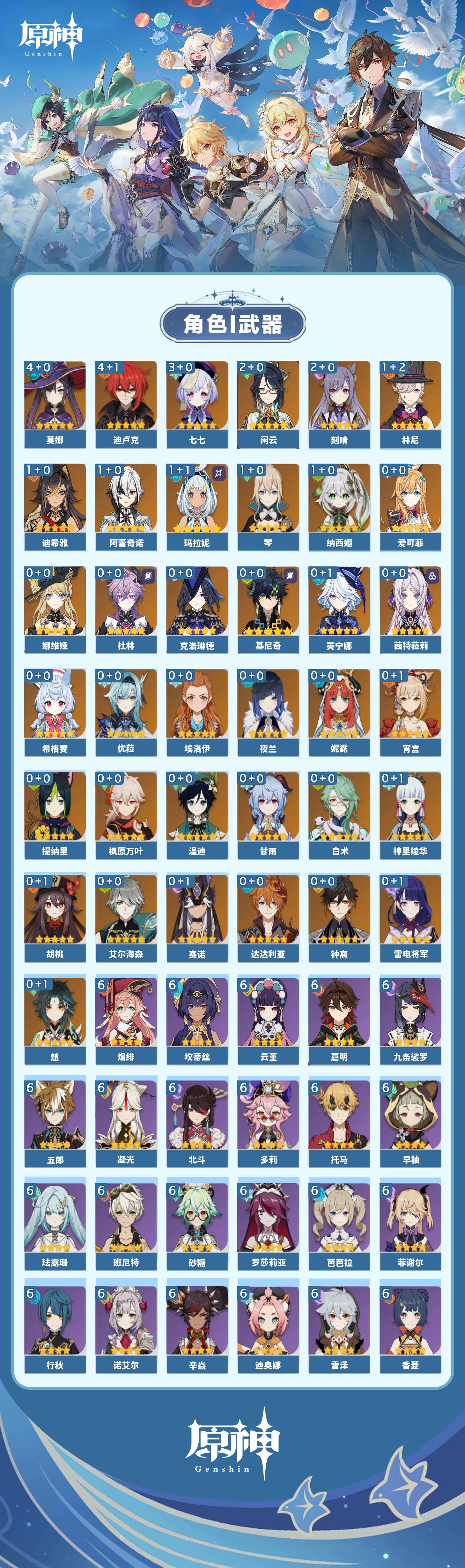 【原神】【lyys10785】冒险等级:60,五星数量:52,五星角色:迪卢克 4命莫娜 4命七七 3命闲云 2命刻晴 2命玛拉妮 1命迪希雅 1命林尼 1命阿蕾奇诺 1命琴 1命纳西妲 1命基尼奇白术神里绫华温迪茜特菈莉宵宫优菈钟离达达利亚夜兰芙宁娜娜维娅提纳里赛诺爱可菲妮露艾尔海森杜林枫原万叶甘雨魈胡桃克洛琳德希格雯雷电将军__五星武器:最初的大魔术 2精四风原典 2精斫峰之刃 2精冲浪时光静水流涌之辉飞雷之弦振风鹰剑和璞鸢护摩之杖狼的末路天空之脊雾切之回光薙草之稻光波乱月白经津赤沙之杖__四星角色:班尼特 6命行秋 6命九条裟罗 6命香菱 6命珐露珊 6命凝光 6命迪奥娜 6命砂糖 6命坎蒂丝 6命多莉 6命芭芭拉 6命云堇 6命早柚 6命托马 6命五郎 6命烟绯 6命辛焱 6命诺艾尔 6命罗莎莉亚 6命雷泽 6命菲谢尔 6命北斗 6命嘉明 6命卡齐娜 5命鹿野院平藏 5命卡维 5命夏沃蕾 5命瑶瑶 4命柯莱 4命重云 4命绮良良 3命菲米尼 3命久岐忍 2命米卡 2命欧洛伦 2命夏洛蒂 2命莱依拉 1命蓝砚 1命琳妮特 1命埃洛伊伊法伊安珊赛索斯