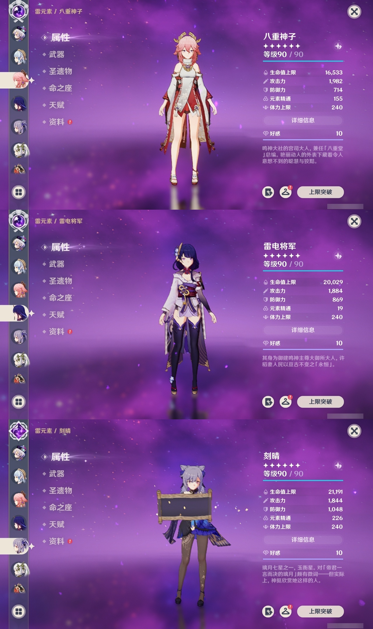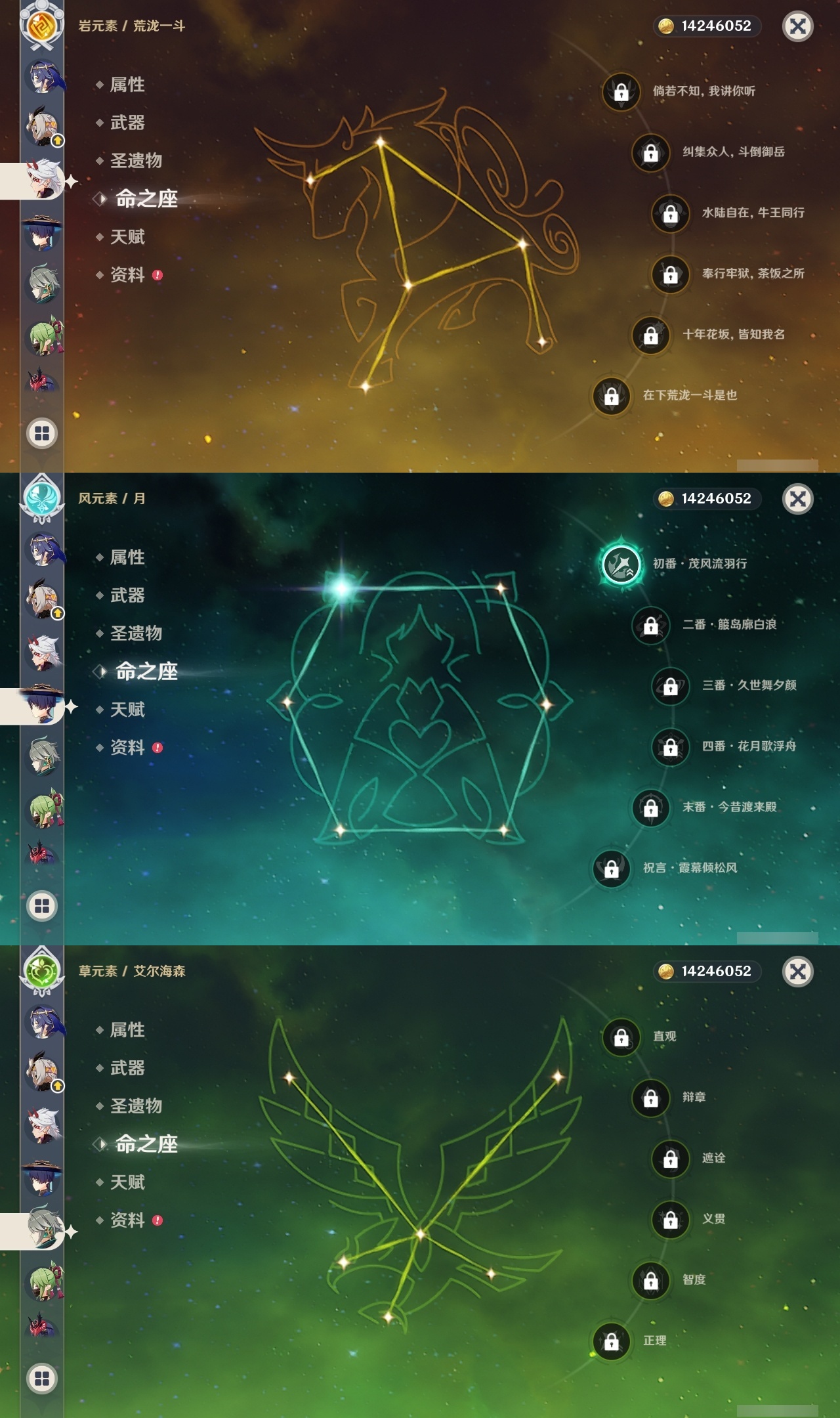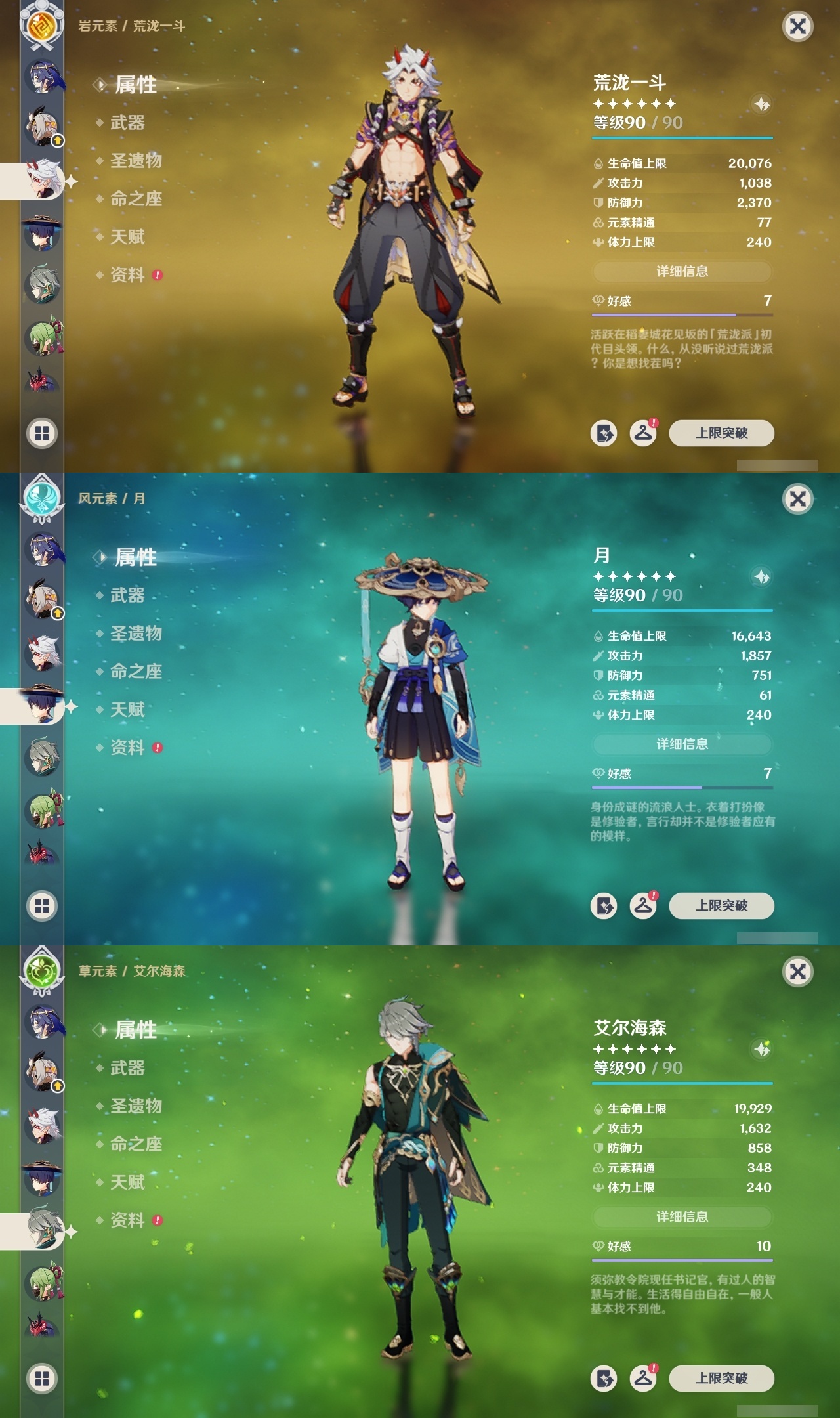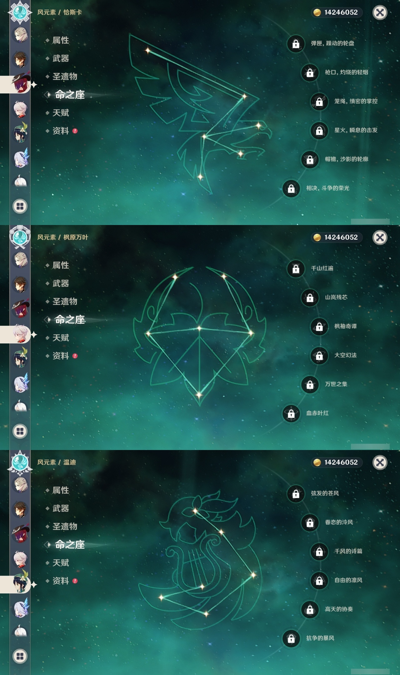 【原神】满命,冒险等级:60,五星数量:58,五星角色:迪卢克 6命刻晴 6命神里绫华 6命夜兰 6命七七 5命胡桃 3命莫娜 3命优菈 3命雷电将军 2命钟离 2命纳西妲 2命哥伦比娅 1命甘雨 1命琴 1命申鹤 1命流浪者 1命珊瑚宫心海希诺宁温迪恰斯卡宵宫迪希雅荒泷一斗达达利亚梦见月瑞希八重神子阿贝多提纳里丝柯克妮露伊涅芙艾尔海森杜林枫原万叶__五星武器:风鹰剑 3精阿莫斯之弓 2精黑蚀裁叶萃光图莱杜拉的回忆帷间夜曲苍古自由之誓和璞鸢护摩之杖四风原典松籁响起之时天空之傲天空之脊天空之卷天空之刃天空之翼雾切之回光薙草之稻光终末嗟叹之诗息灾若水圣显之钥__四星角色:班尼特 6命行秋 6命九条裟罗 6命香菱 6命久岐忍 6命鹿野院平藏 6命珐露珊 6命凝光 6命迪奥娜 6命砂糖 6命坎蒂丝 6命柯莱 6命芭芭拉 6命云堇 6命早柚 6命托马 6命五郎 6命烟绯 6命重云 6命辛焱 6命诺艾尔 6命罗莎莉亚 6命雷泽 6命菲谢尔 6命北斗 6命伊法 6命伊安珊 6命赛索斯 6命米卡 5命多莉 5命莱依拉 4命卡齐娜 3命瑶瑶 2命欧洛伦 2命绮良良 1命埃洛伊奇偶·女性琳妮特夏洛蒂夏沃蕾塔利雅爱诺