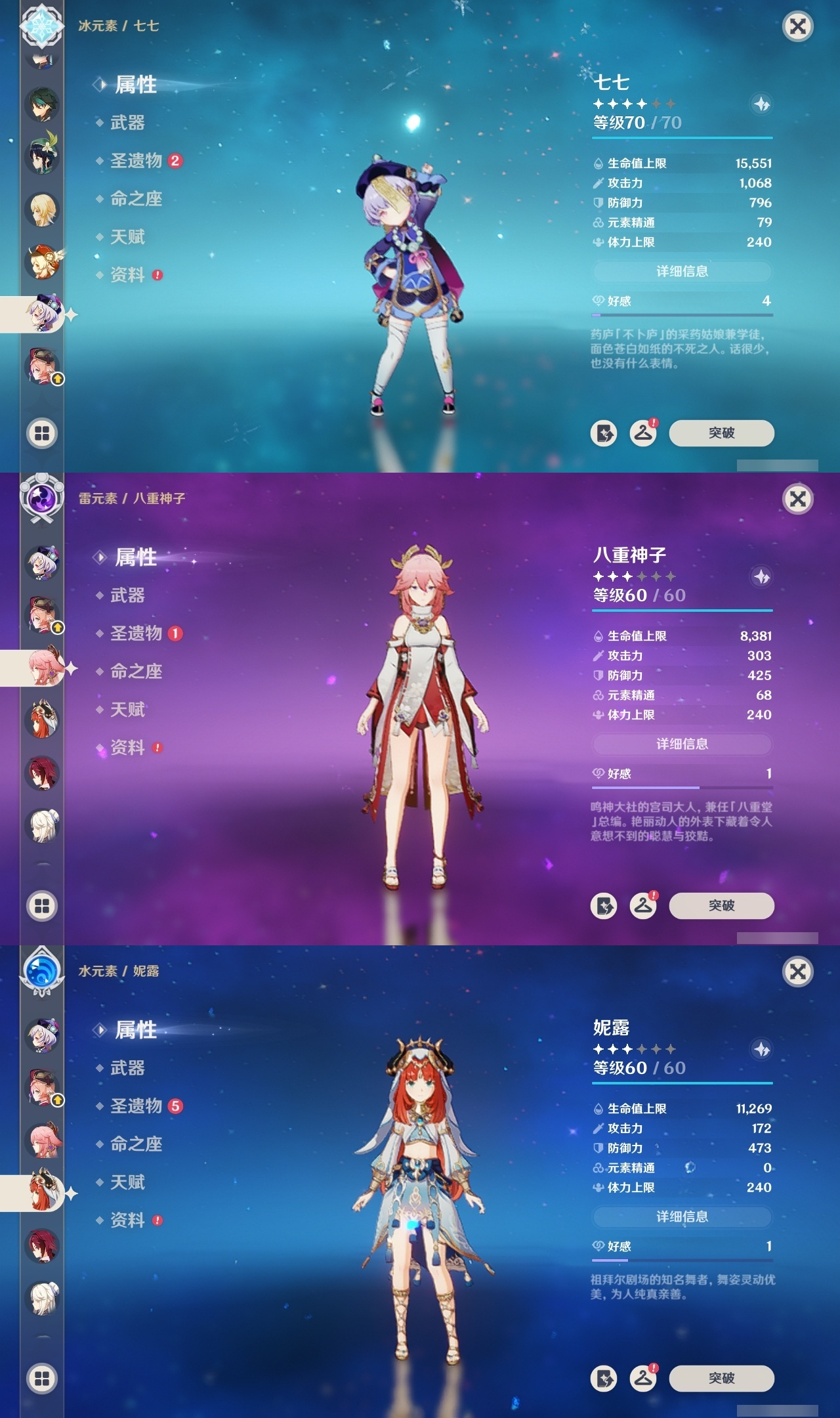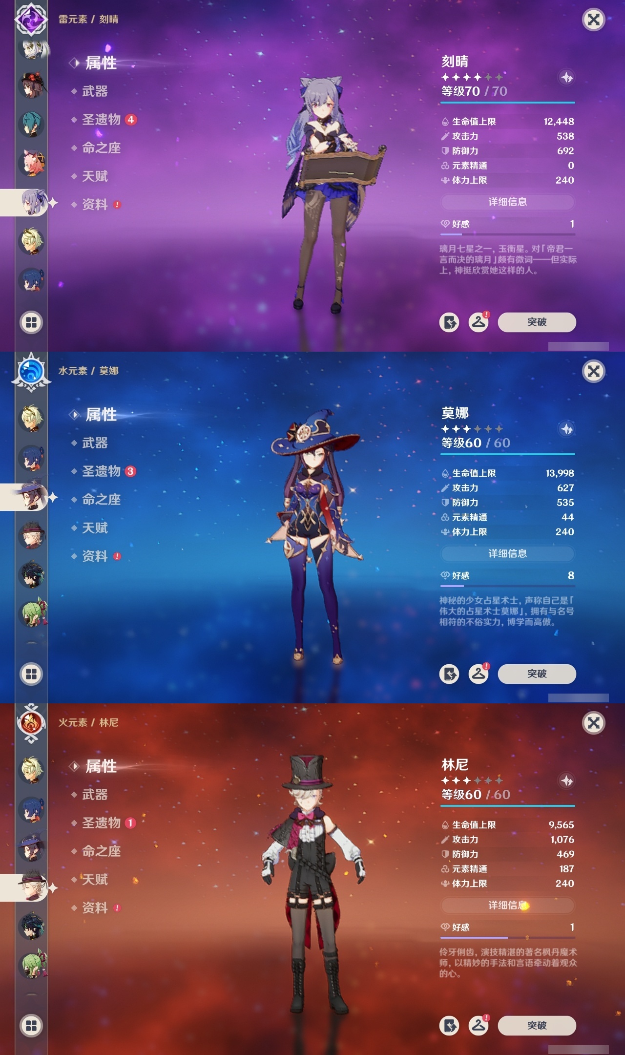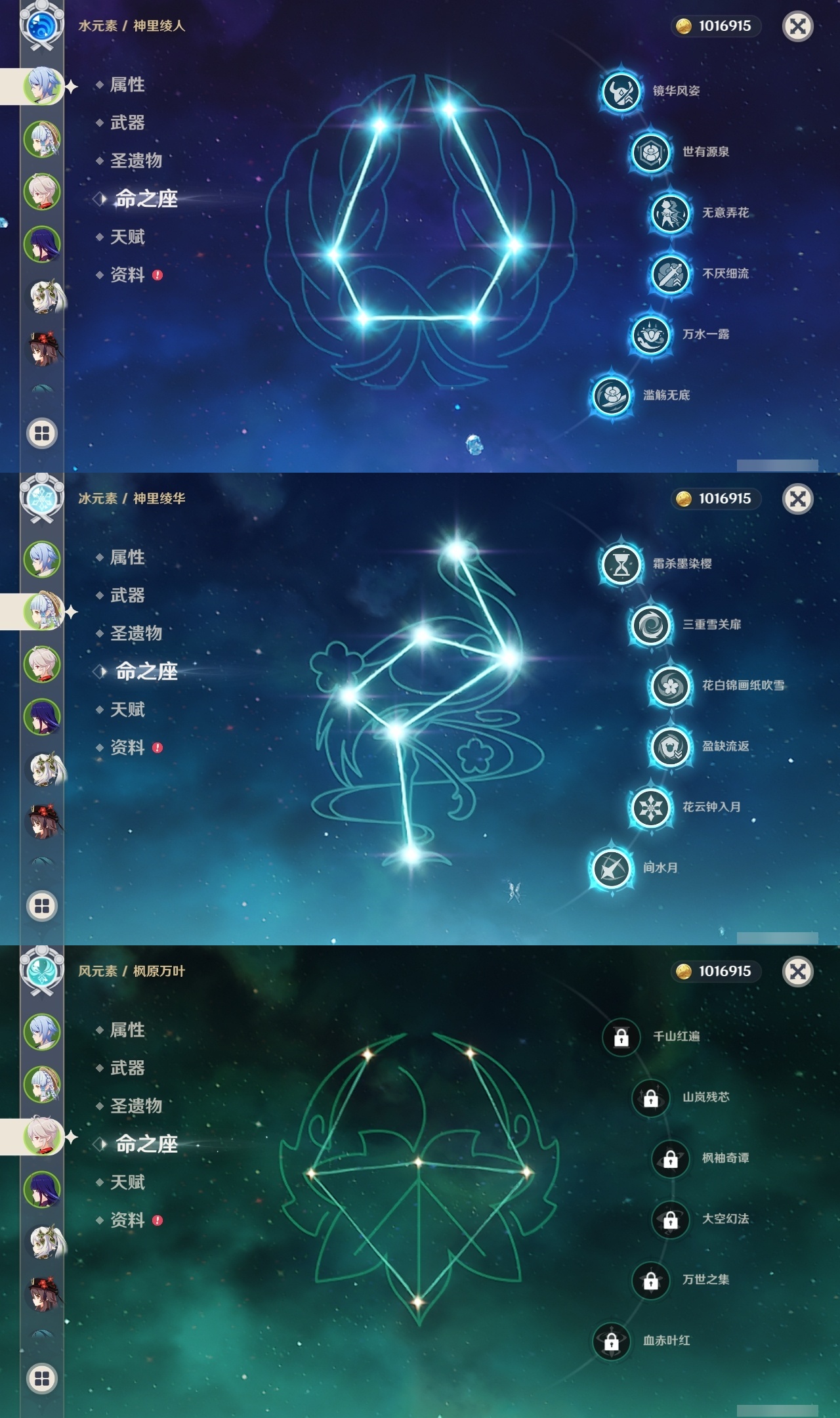 【原神】满命,冒险等级:57,五星数量:37,五星角色:莫娜 6命神里绫华 6命神里绫人 6命七七 5命刻晴 3命魈 2命胡桃 2命琴 1命基尼奇温迪钟离八重神子林尼妮露纳西妲流浪者迪卢克枫原万叶可莉雷电将军__五星武器:雾切之回光 5精阿莫斯之弓 2精飞雷之弦振 2精天空之脊 2精天空之刃 2精天空之翼 2精波乱月白经津 2精图莱杜拉的回忆风鹰剑和璞鸢磐岩结绿天空之傲无工之剑薙草之稻光神乐之真意若水__四星角色:班尼特 6命行秋 6命九条裟罗 6命香菱 6命凝光 6命迪奥娜 6命砂糖 6命芭芭拉 6命云堇 6命早柚 6命托马 6命烟绯 6命诺艾尔 6命罗莎莉亚 6命雷泽 6命菲谢尔 6命北斗 6命柯莱 5命五郎 4命重云 4命珐露珊 3命辛焱 3命琳妮特 3命鹿野院平藏 1命瑶瑶 1命多莉 1命埃洛伊久岐忍绮良良米卡坎蒂丝卡维