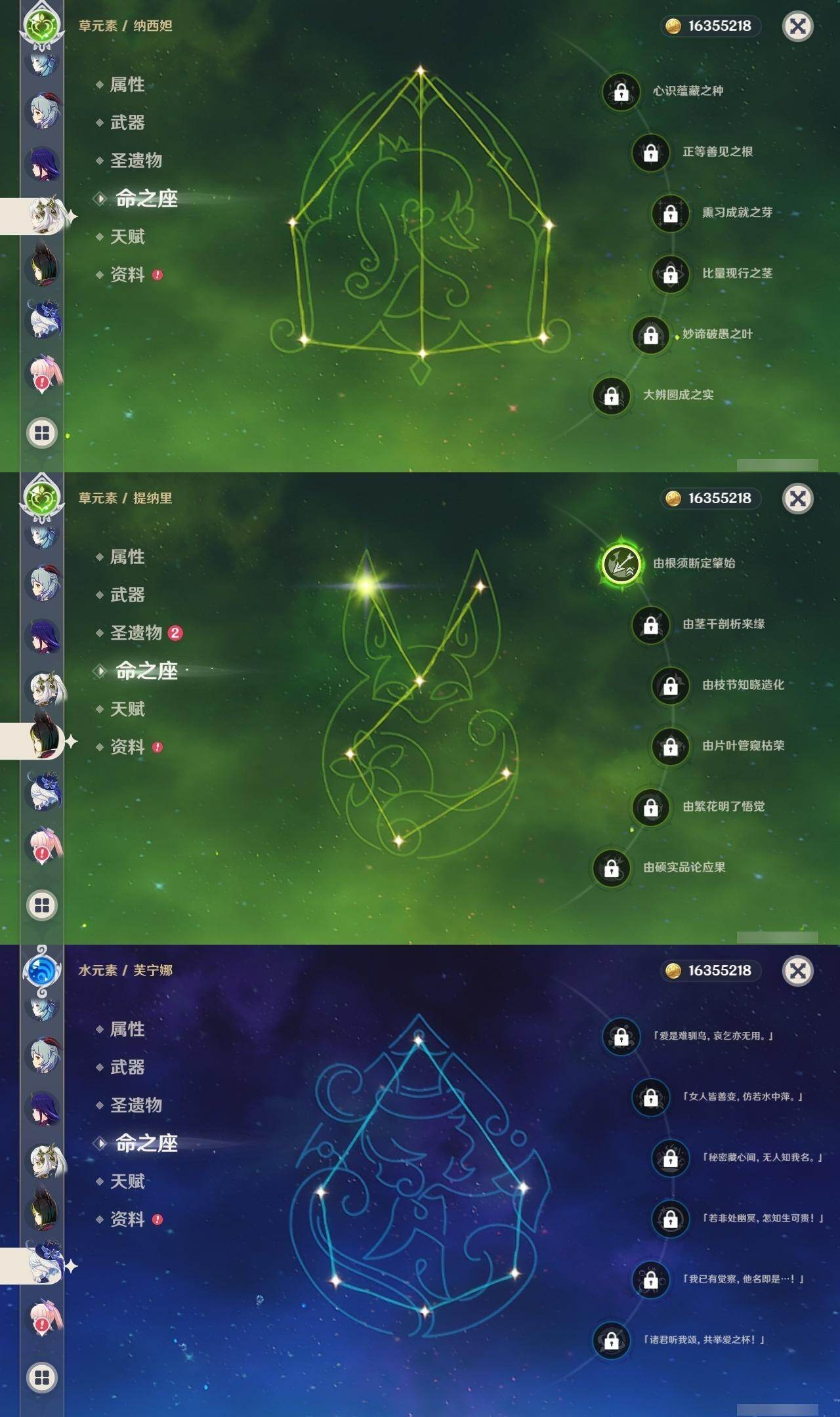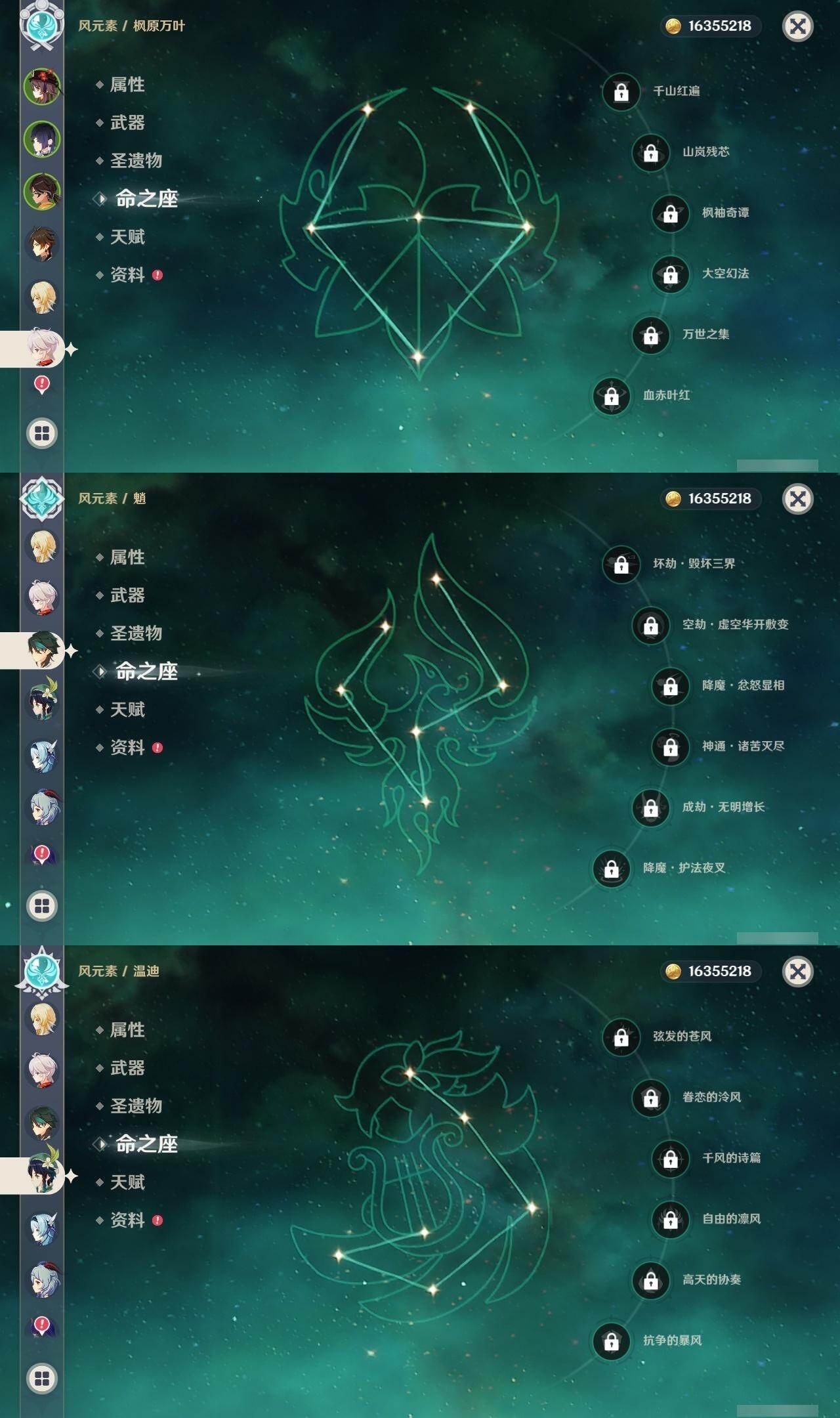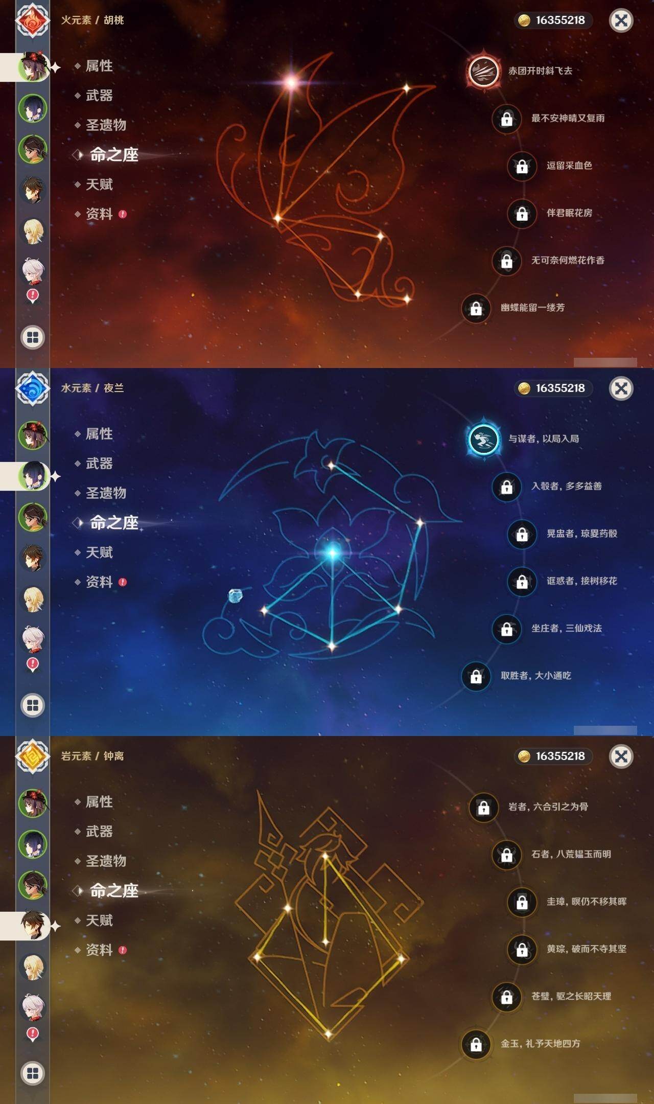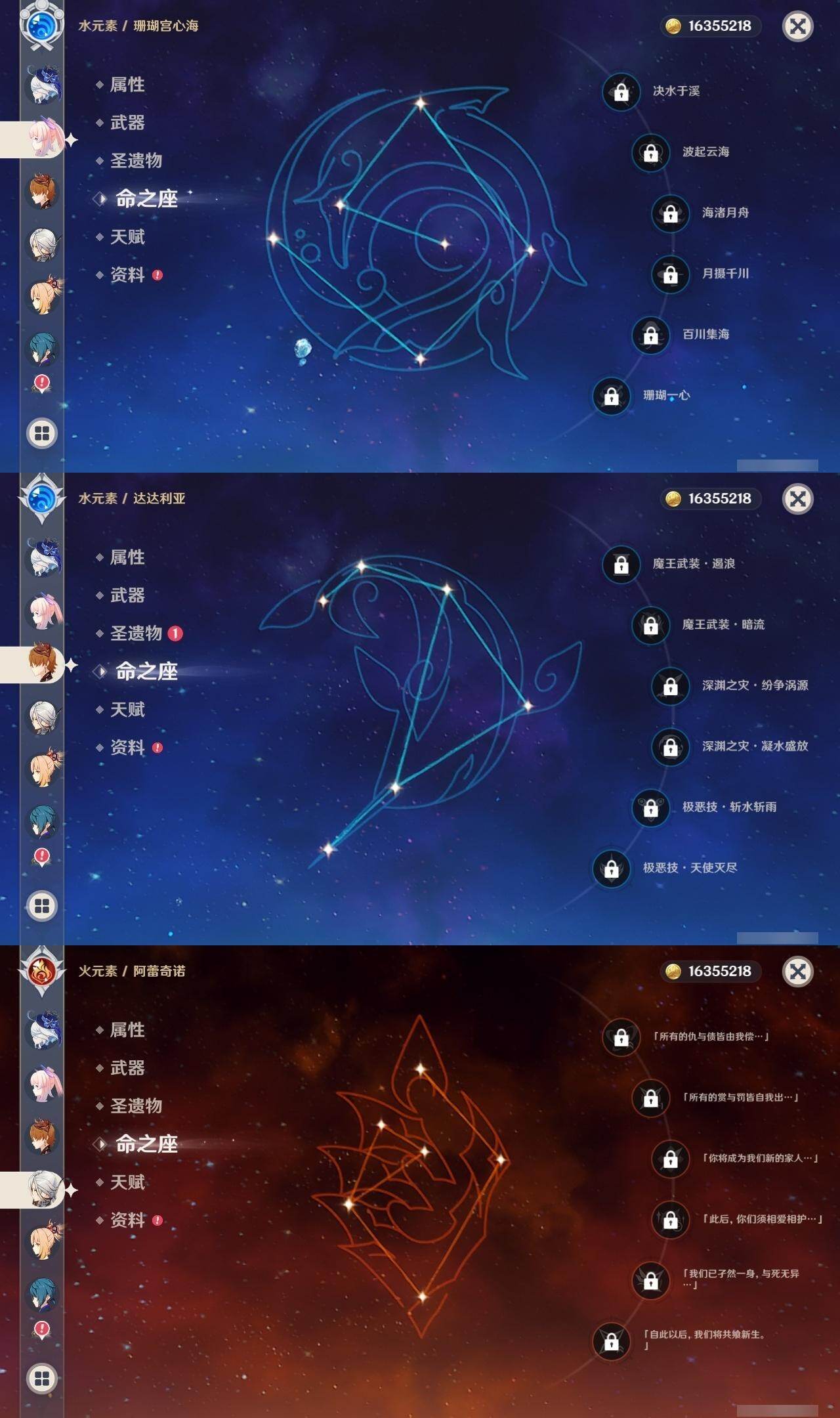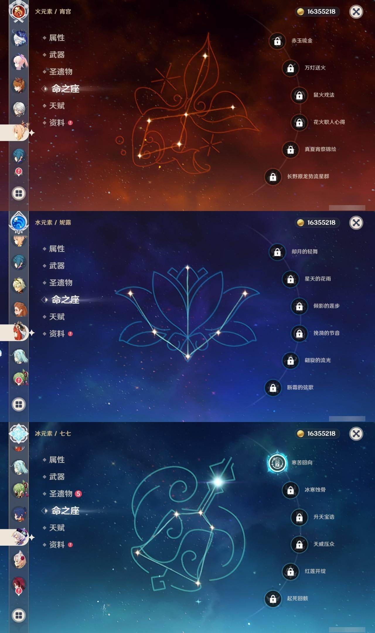 60级/46黄/女主/23个五星角色/12个五星武器 0命阿蕾奇诺0命芙宁娜0命纳西妲0命妮露1命提纳里1命夜兰0命优菈0命雷电将军0命枫原万叶0命钟离1命胡桃0命甘雨0命魈0命宵宫0命温迪0命达达利亚0命珊瑚宫心海1命刻晴1命七七4命琴2命莫娜0命迪卢克0命希诺宁精1赤月之形精1碧落之珑精1冬极白星精1飞雷之弦振精1护摩之杖精1天空之脊精1天空之翼精1阿莫斯之弓精1天空之刃精1天空之卷