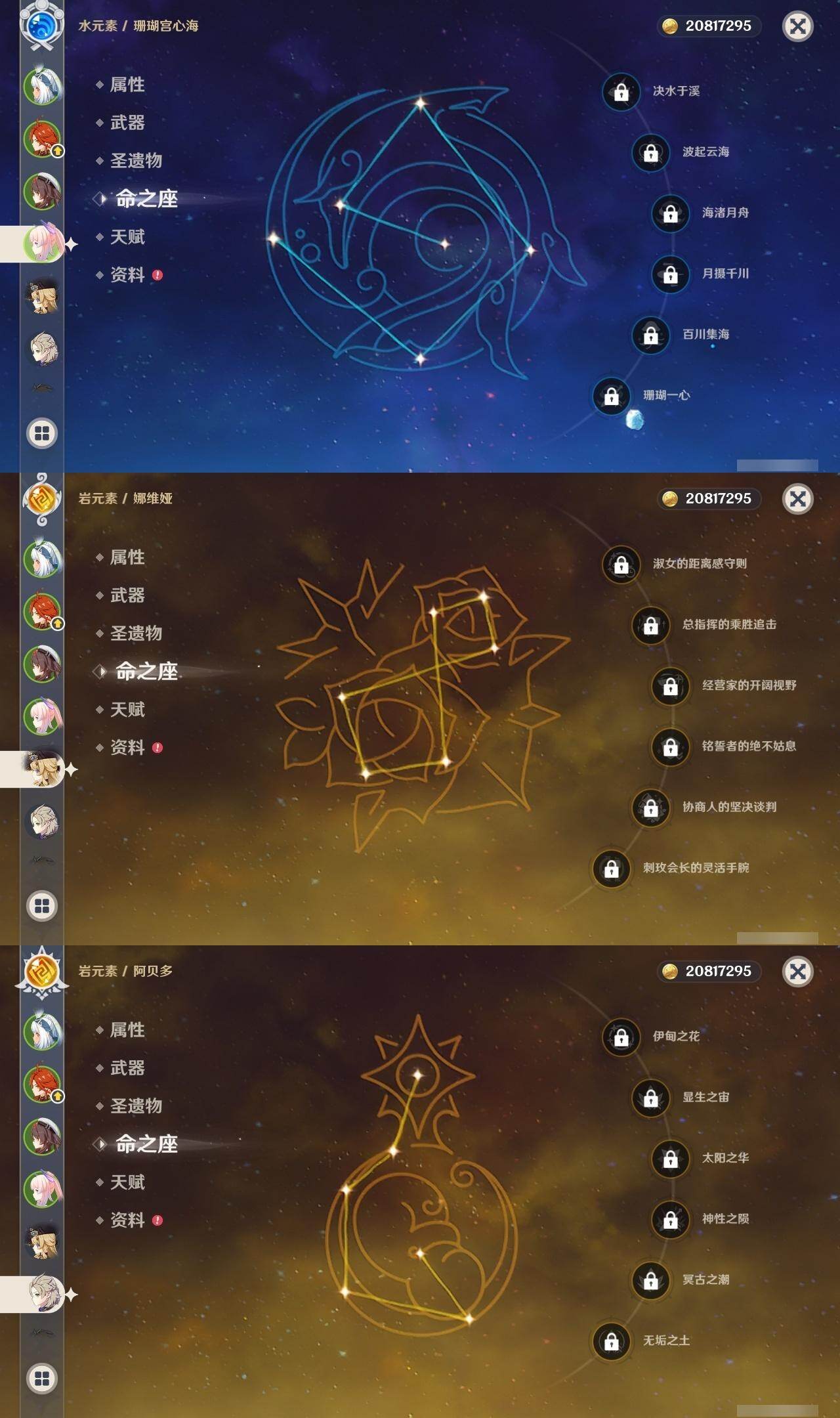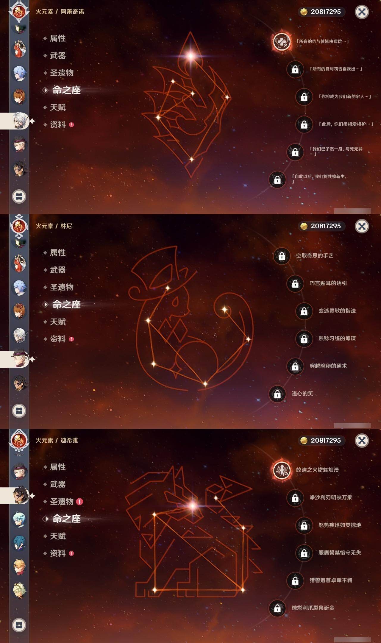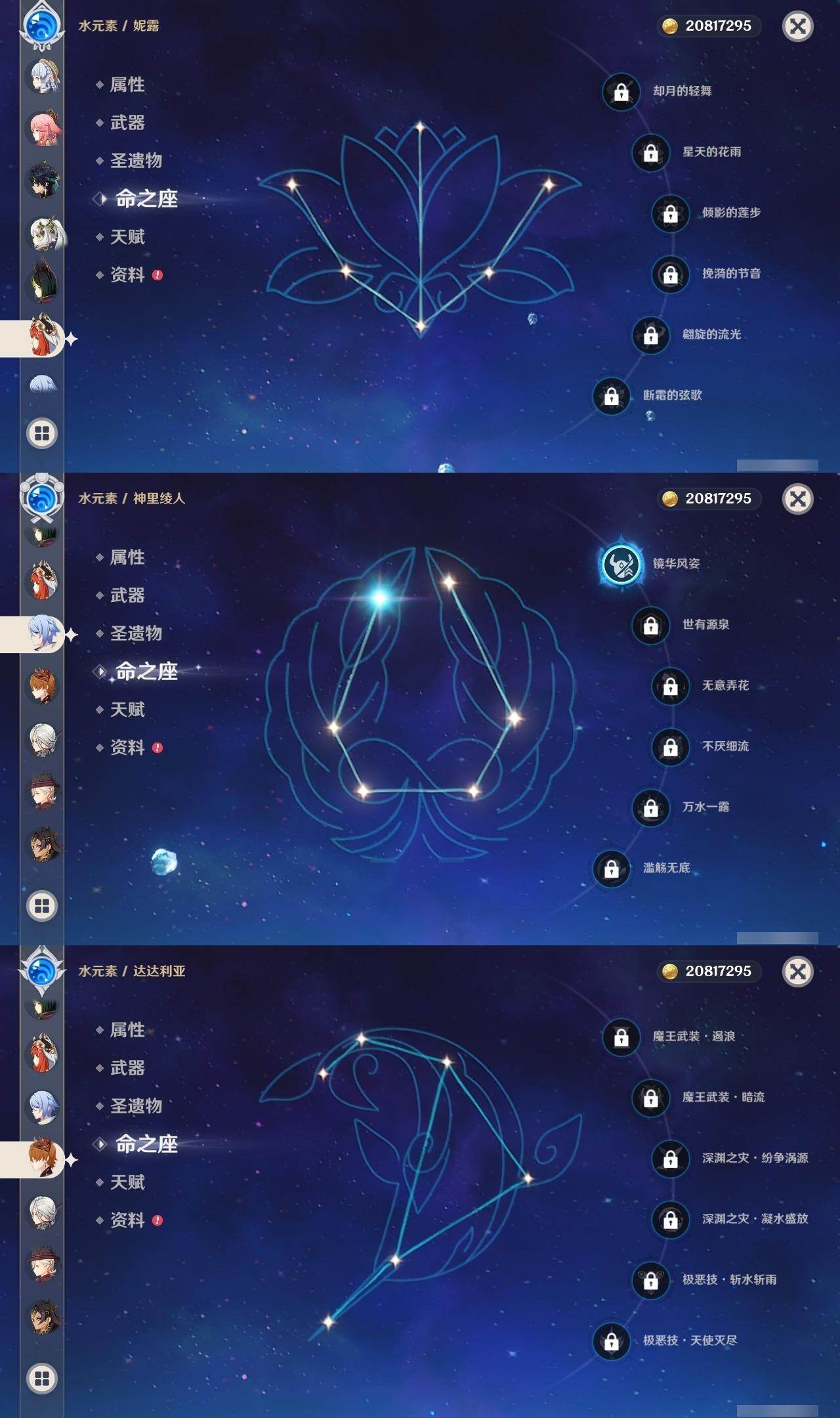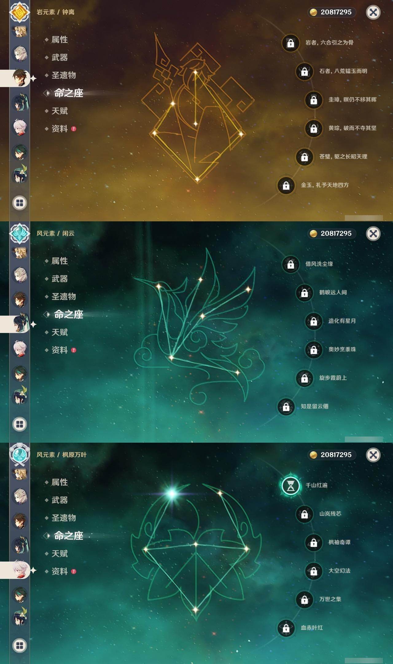 60级/69黄/女主/28个五星角色/18个五星武器 1命阿蕾奇诺0命闲云0命娜维娅0命林尼1命迪希雅0命纳西妲0命妮露3命提纳里1命神里绫人2命八重神子0命申鹤1命枫原万叶0命神里绫华0命钟离1命胡桃0命魈0命温迪0命达达利亚0命阿贝多0命珊瑚宫心海3命七七1命琴3命莫娜3命迪卢克0命基尼奇0命玛拉妮0命玛薇卡0命丝柯克精1碧落之珑精1苇海信标精1千夜浮梦精1若水精1波乱月白经津精1神乐之真意精1息灾精1终末嗟叹之诗精1护摩之杖精1磐岩结绿精2和璞鸢精1天空之脊精2天空之卷精2狼的末路精1天空之傲