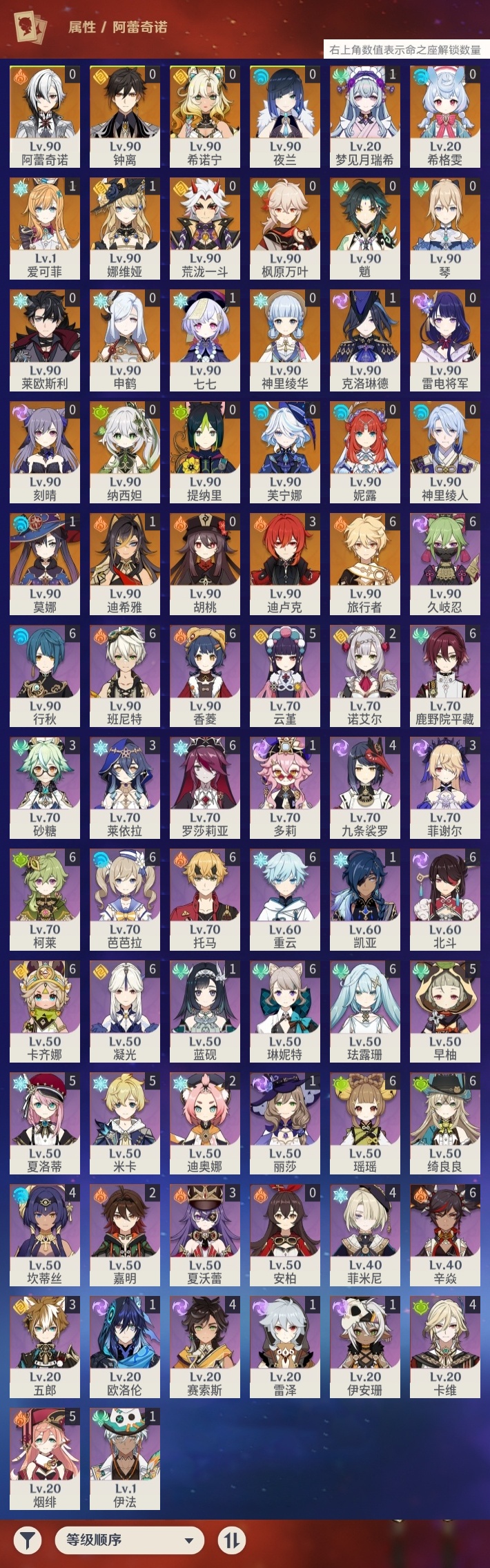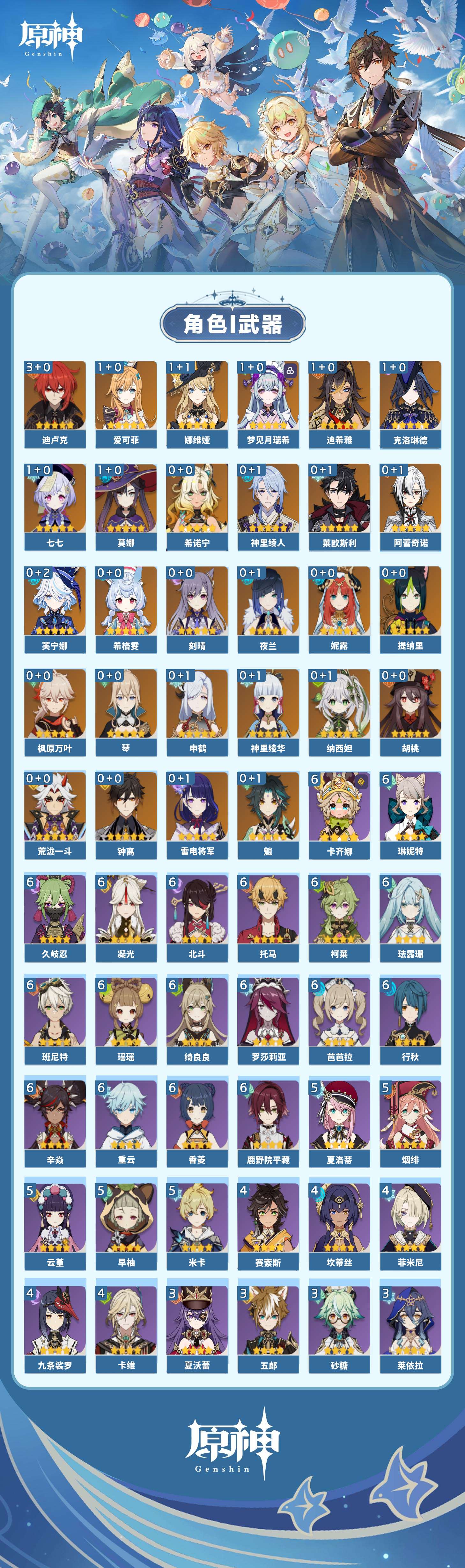 【原神】【lyys10851】冒险等级:60,五星数量:45,五星角色:迪卢克 3命迪希雅 1命梦见月瑞希 1命娜维娅 1命爱可菲 1命莫娜 1命七七 1命克洛琳德 1命琴希诺宁神里绫华钟离荒泷一斗申鹤神里绫人莱欧斯利夜兰芙宁娜提纳里阿蕾奇诺妮露纳西妲枫原万叶魈胡桃希格雯刻晴雷电将军__五星武器:柔灯挽歌 2精静水流涌之辉 2精天空之脊 2精碧落之珑金流监督裁断赤月之形风鹰剑和璞鸢磐岩结绿天空之翼雾切之回光薙草之稻光息灾波乱月白经津若水千夜浮梦__四星角色:卡齐娜 6命班尼特 6命行秋 6命香菱 6命久岐忍 6命鹿野院平藏 6命珐露珊 6命凝光 6命绮良良 6命瑶瑶 6命柯莱 6命芭芭拉 6命托马 6命重云 6命辛焱 6命罗莎莉亚 6命北斗 6命琳妮特 6命米卡 5命云堇 5命早柚 5命烟绯 5命夏洛蒂 5命九条裟罗 4命坎蒂丝 4命卡维 4命菲米尼 4命赛索斯 4命砂糖 3命莱依拉 3命五郎 3命菲谢尔 3命夏沃蕾 3命迪奥娜 2命诺艾尔 2命嘉明 2命多莉 1命欧洛伦 1命蓝砚 1命雷泽 1命伊法 1命伊安珊 1命