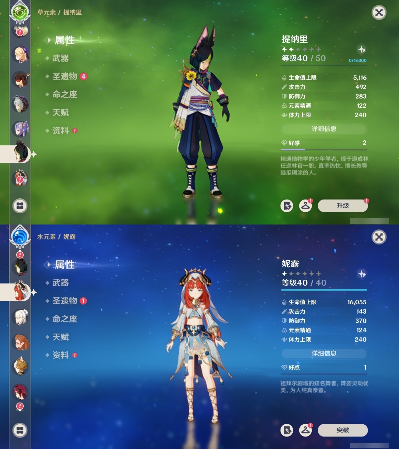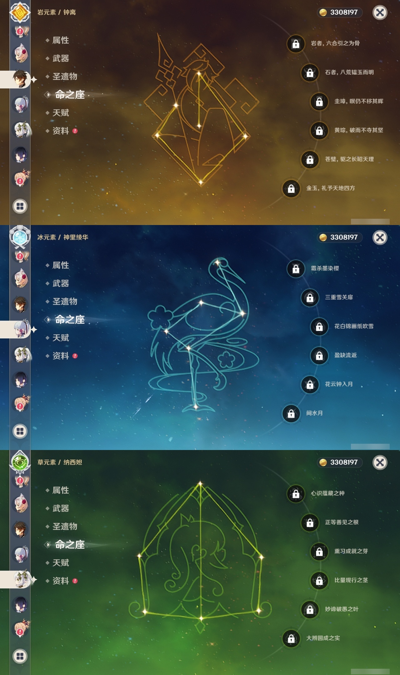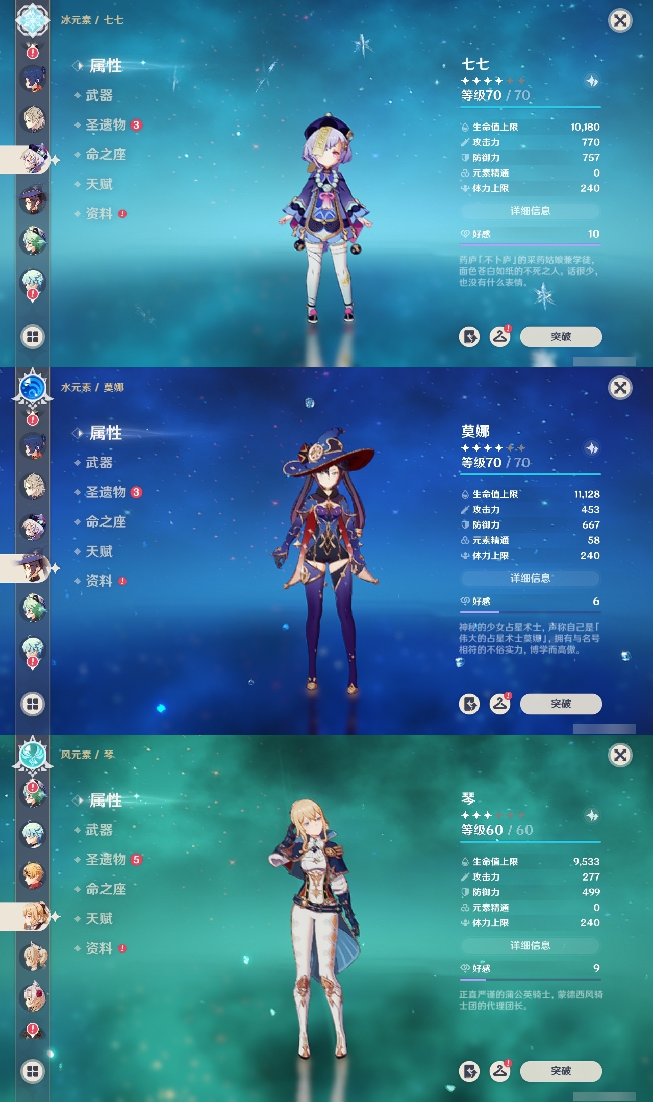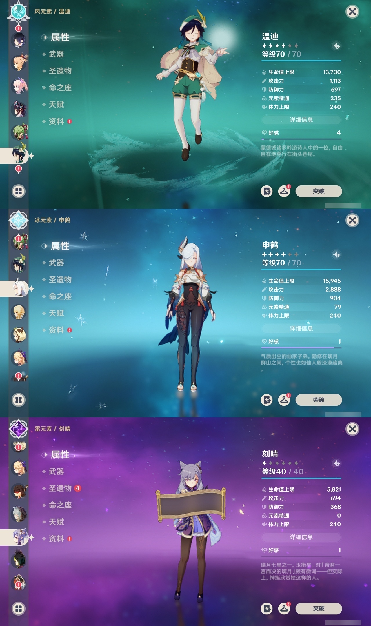 【原神】【lyys10869】冒险等级:58,五星数量:31,五星角色:夜兰 6命迪卢克 4命雷电将军 3命七七 3命提纳里 3命莫娜 2命琴 2命宵宫 2命魈 1命胡桃 1命刻晴 1命珊瑚宫心海神里绫华温迪钟离申鹤阿贝多妮露纳西妲枫原万叶__五星武器:和璞鸢护摩之杖狼的末路天空之傲天空之卷天空之刃雾切之回光薙草之稻光终末嗟叹之诗若水__四星角色:行秋 6命九条裟罗 6命香菱 6命久岐忍 6命凝光 6命砂糖 6命芭芭拉 6命云堇 6命早柚 6命重云 6命辛焱 6命诺艾尔 6命罗莎莉亚 6命雷泽 6命菲谢尔 6命北斗 6命琳妮特 6命班尼特 5命迪奥娜 5命五郎 5命烟绯 5命坎蒂丝 4命多莉 4命鹿野院平藏 3命米卡 3命柯莱 3命托马 3命莱依拉 2命埃洛伊珐露珊瑶瑶