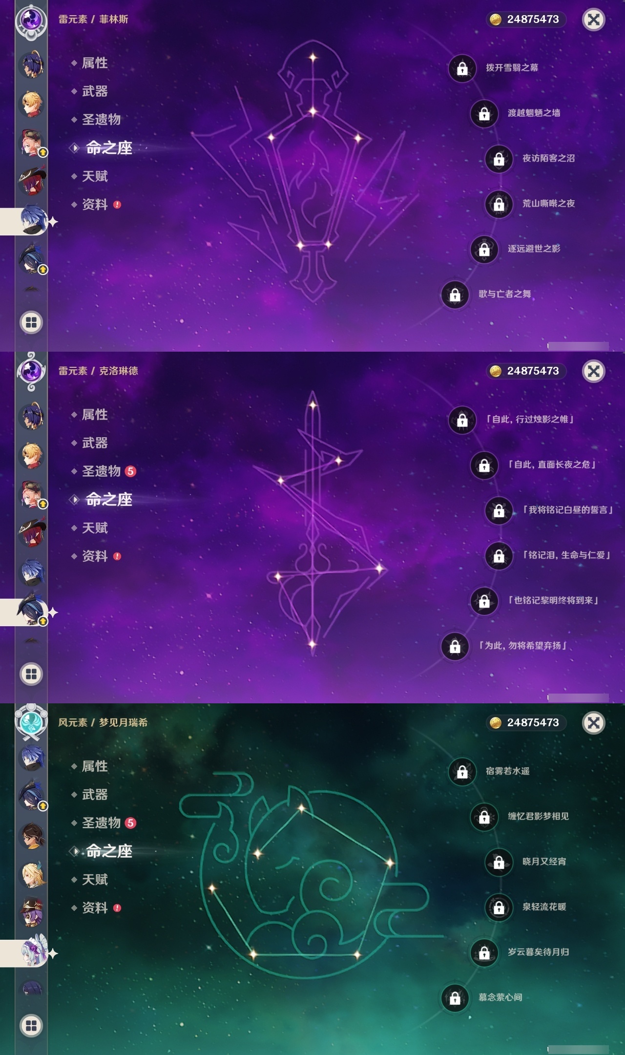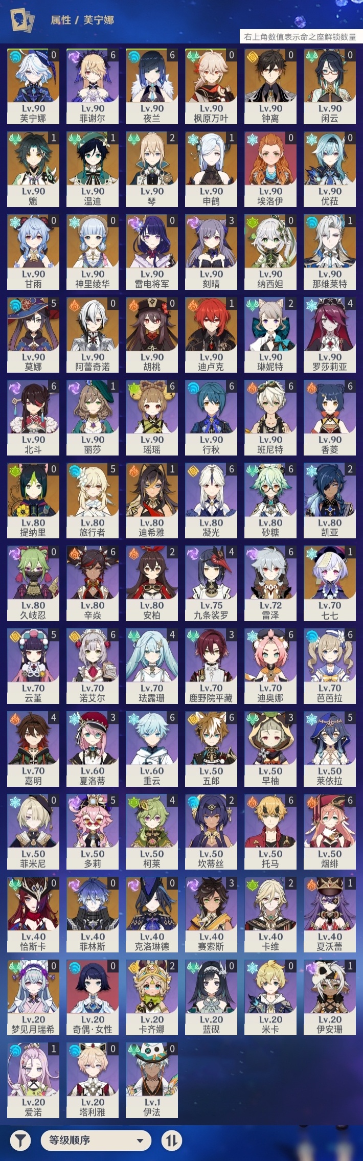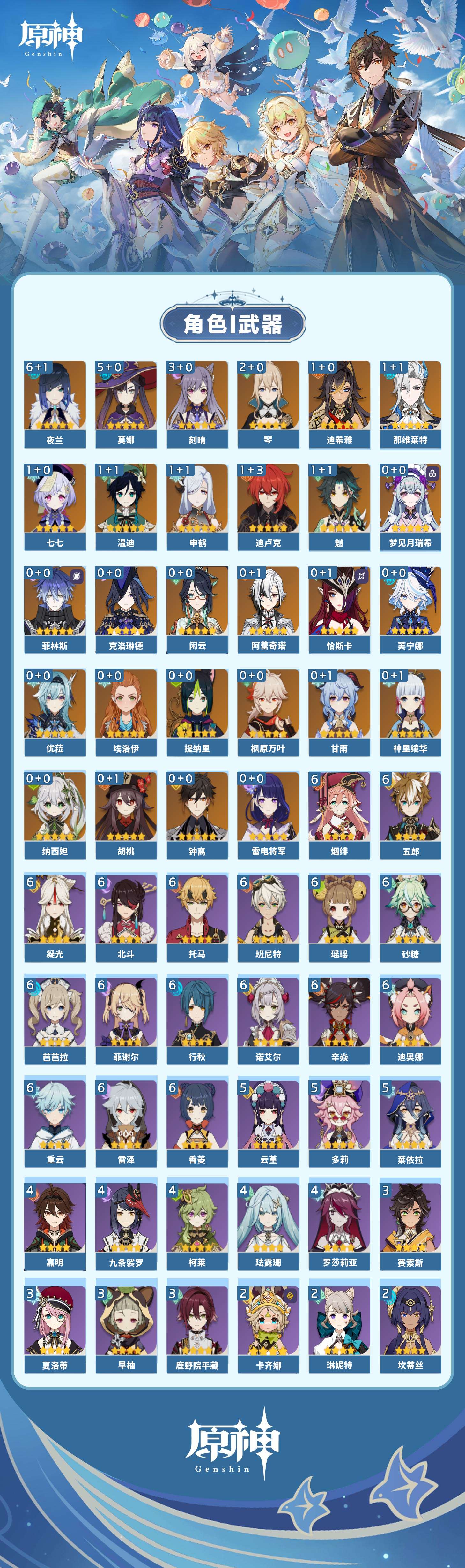 【原神】【lyys10868】冒险等级:60,五星数量:46,五星角色:夜兰 6命莫娜 5命刻晴 3命琴 2命迪希雅 1命那维莱特 1命迪卢克 1命魈 1命七七 1命温迪 1命申鹤 1命神里绫华恰斯卡优菈钟离梦见月瑞希芙宁娜提纳里闲云阿蕾奇诺纳西妲菲林斯枫原万叶甘雨胡桃克洛琳德雷电将军__五星武器:狼的末路 3精天空之脊 2精星鹫赤羽最初的大魔术万世流涌大典有乐御簾切赤月之形阿莫斯之弓风鹰剑和璞鸢护摩之杖天空之卷天空之翼雾切之回光终末嗟叹之诗息灾若水__四星角色:班尼特 6命行秋 6命香菱 6命凝光 6命迪奥娜 6命砂糖 6命瑶瑶 6命芭芭拉 6命托马 6命五郎 6命烟绯 6命重云 6命辛焱 6命诺艾尔 6命雷泽 6命菲谢尔 6命北斗 6命莱依拉 5命多莉 5命云堇 5命九条裟罗 4命珐露珊 4命柯莱 4命罗莎莉亚 4命嘉明 4命鹿野院平藏 3命早柚 3命夏洛蒂 3命赛索斯 3命卡齐娜 2命坎蒂丝 2命卡维 2命琳妮特 2命夏沃蕾 1命伊安珊 1命爱诺 1命埃洛伊奇偶·女性久岐忍米卡蓝砚菲米尼伊法塔利雅