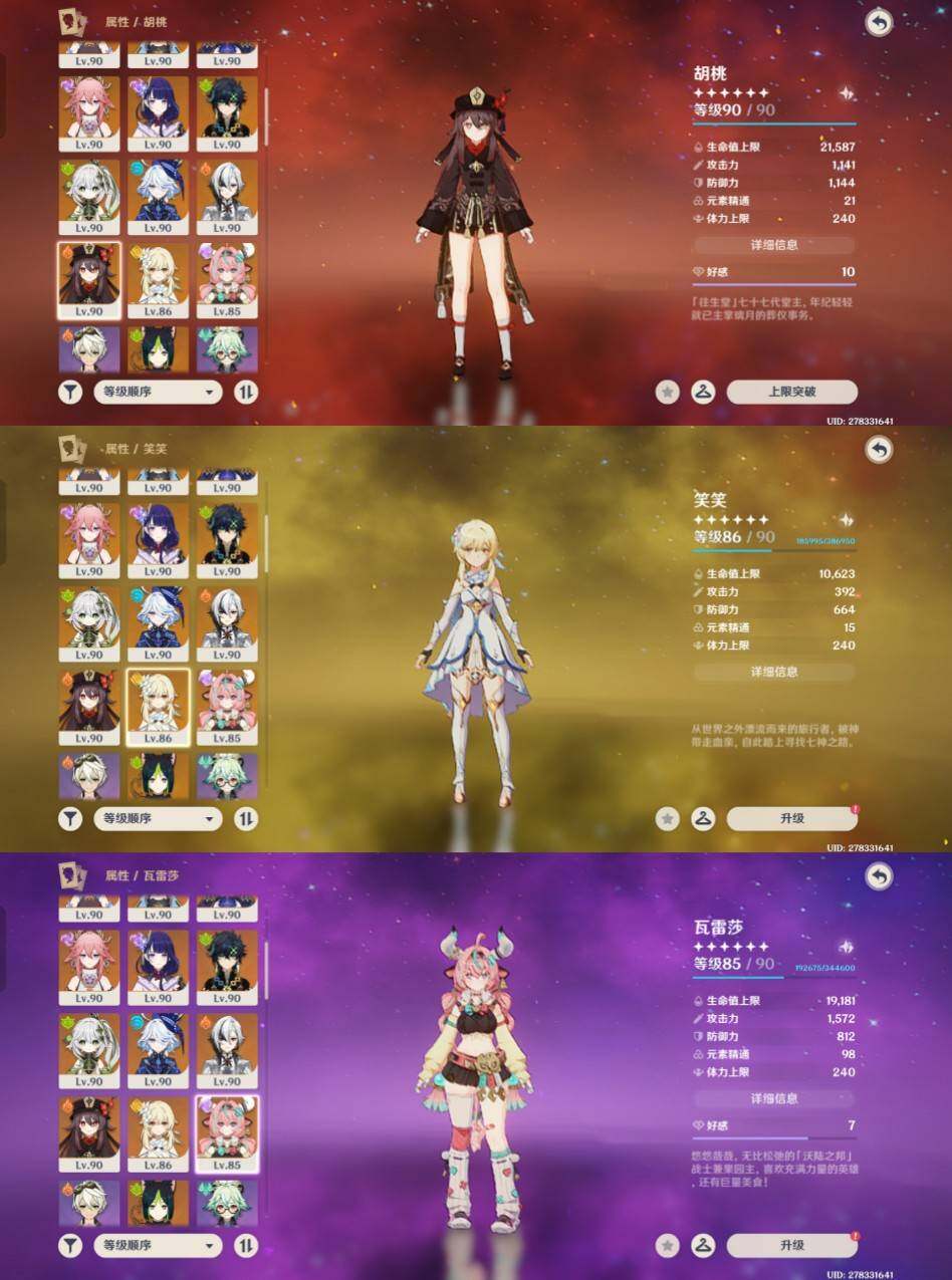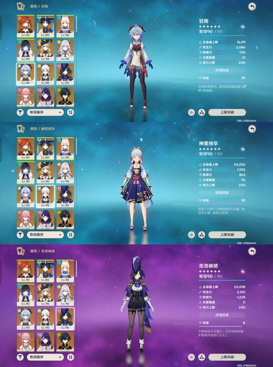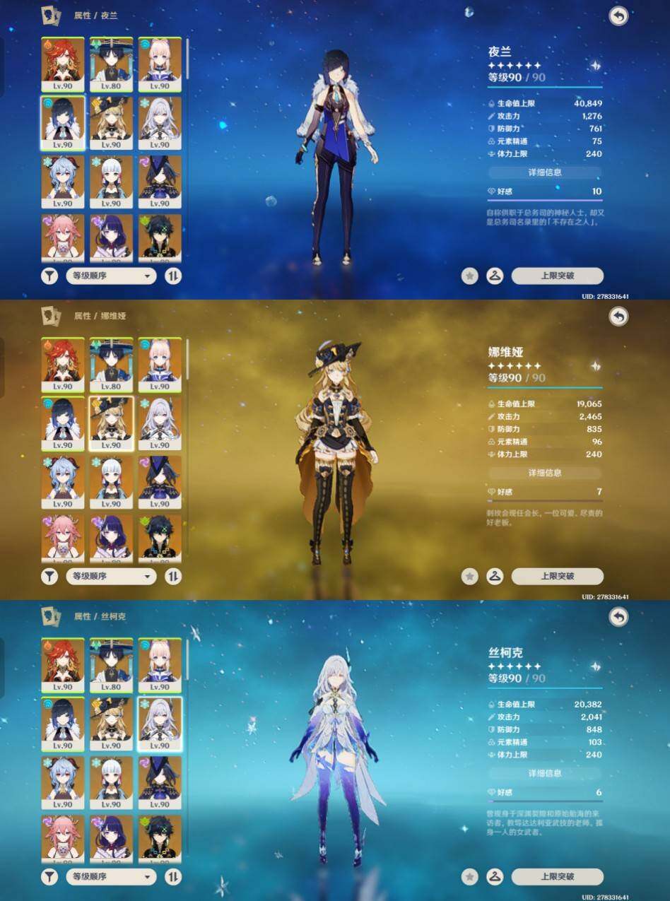 总48黄【金色角色】:丝柯克0命,瓦雷莎0命,梦见月瑞希0命,玛薇卡0命,基尼奇0命,克洛琳德0命,阿蕾奇诺0命,娜维娅0命,芙宁娜0命,迪希雅1命,流浪者1命,纳西妲0命,提纳里2命,夜兰0命,八重神子0命,珊瑚宫心海0命,雷电将军0命,神里绫华0命,胡桃0命,甘雨0命,琴1命,刻晴1命,迪卢克0命,莫娜1命,七七3命【拥有武器】:天空之刃精1,天空之翼精1,天空之翼精1【紫色角色】:爱诺0命,蓝砚1命,欧洛伦3命,卡齐娜4命,赛索斯5命,嘉明2命,夏沃蕾满命,夏洛蒂1命,菲米尼满命,琳妮特4命,绮良良4命,卡维满命,米卡0命,瑶瑶满命,珐露珊3命,莱依拉2命,坎蒂丝3命,多莉5命,柯莱2命,鹿野院平藏3命,云堇3命,五郎4命,托马满命,九条裟罗0命,早柚1命,烟绯满命,罗莎莉亚满命,辛焱满命,迪奥娜4命,砂糖5命,雷泽0命,菲谢尔满命,丽莎1命,北斗0命,香菱满命,安柏0命,班尼特满命,行秋满命,芭芭拉满命,凝光2命,诺艾尔3命,凯亚1命,重云2命【角色皮肤】:倩影游侠,雨化竹身,岁夜欢哗【风之翼】:初始之翼,守候之翼
