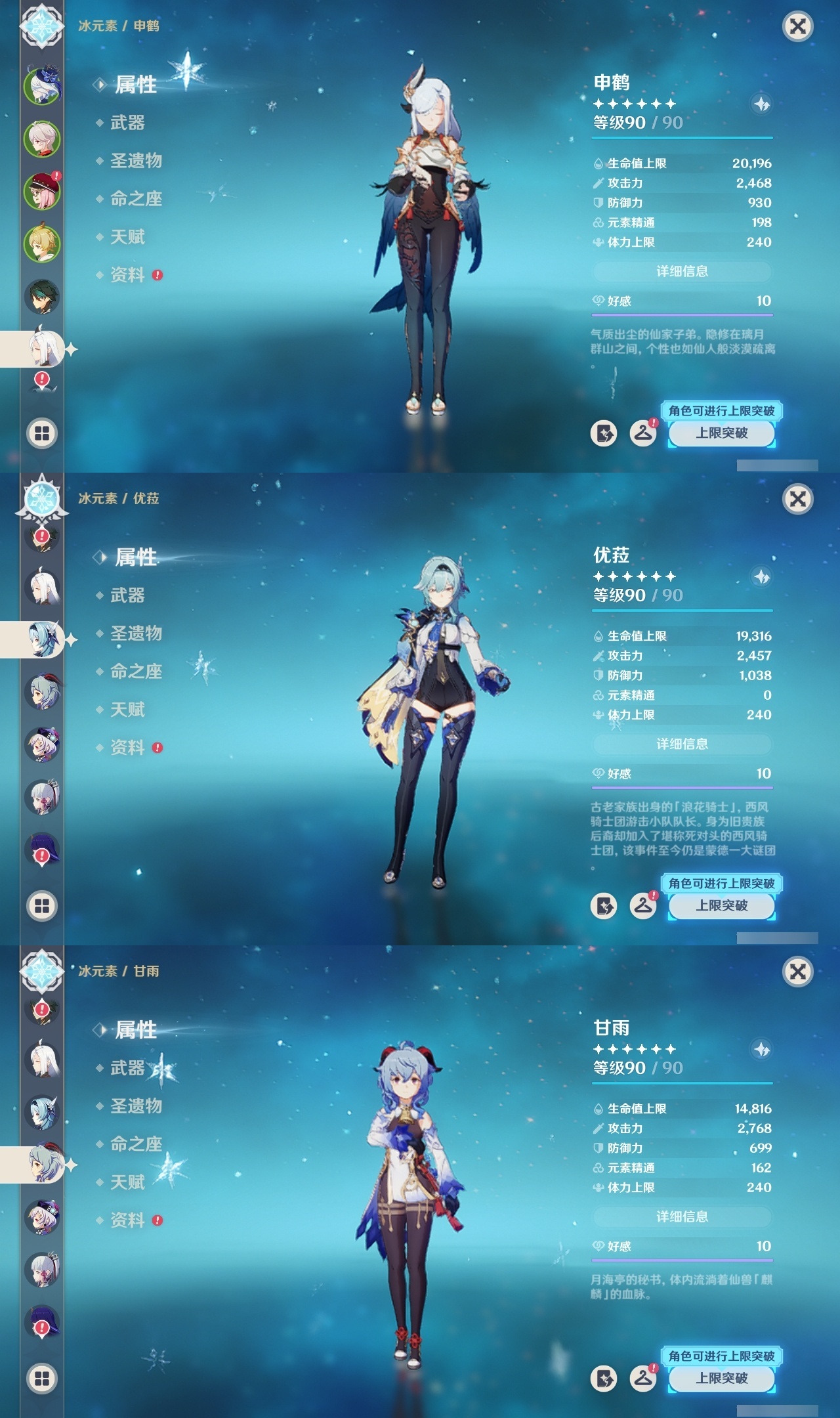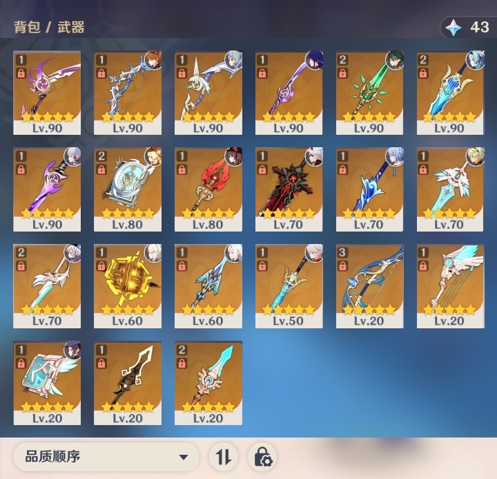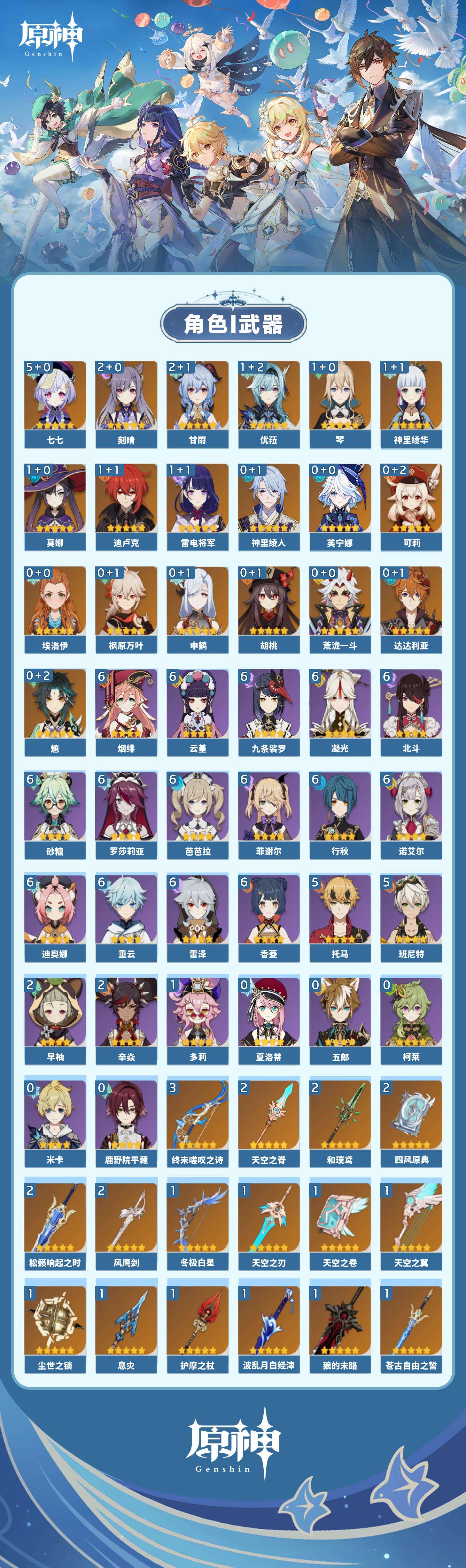 【原神】【lyys10920】冒险等级:58,五星数量:40,五星角色:七七 5命甘雨 2命刻晴 2命迪卢克 1命雷电将军 1命莫娜 1命琴 1命神里绫华 1命优菈 1命荒泷一斗达达利亚申鹤神里绫人芙宁娜枫原万叶魈胡桃可莉__五星武器:终末嗟叹之诗 3精风鹰剑 2精和璞鸢 2精四风原典 2精松籁响起之时 2精天空之脊 2精阿莫斯之弓苍古自由之誓尘世之锁飞雷之弦振护摩之杖狼的末路天空之卷天空之刃天空之翼雾切之回光薙草之稻光冬极白星息灾贯虹之槊波乱月白经津__四星角色:行秋 6命九条裟罗 6命香菱 6命凝光 6命迪奥娜 6命砂糖 6命芭芭拉 6命云堇 6命烟绯 6命重云 6命诺艾尔 6命罗莎莉亚 6命雷泽 6命菲谢尔 6命北斗 6命班尼特 5命托马 5命早柚 2命辛焱 2命多莉 1命埃洛伊鹿野院平藏米卡柯莱五郎夏洛蒂