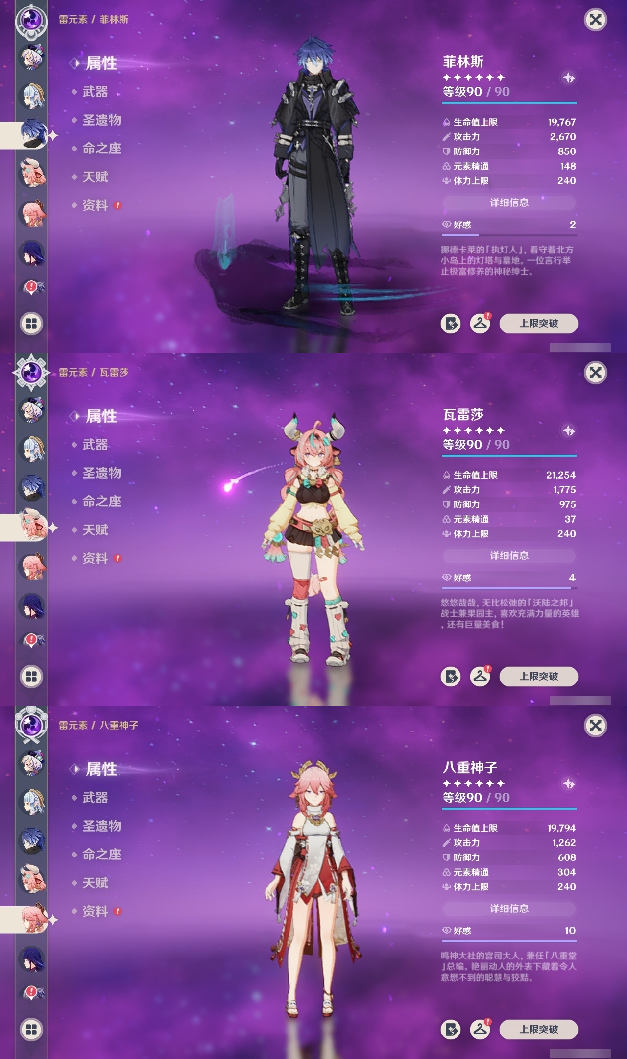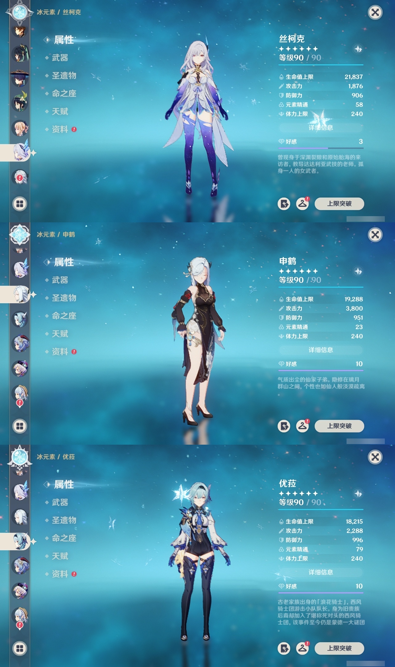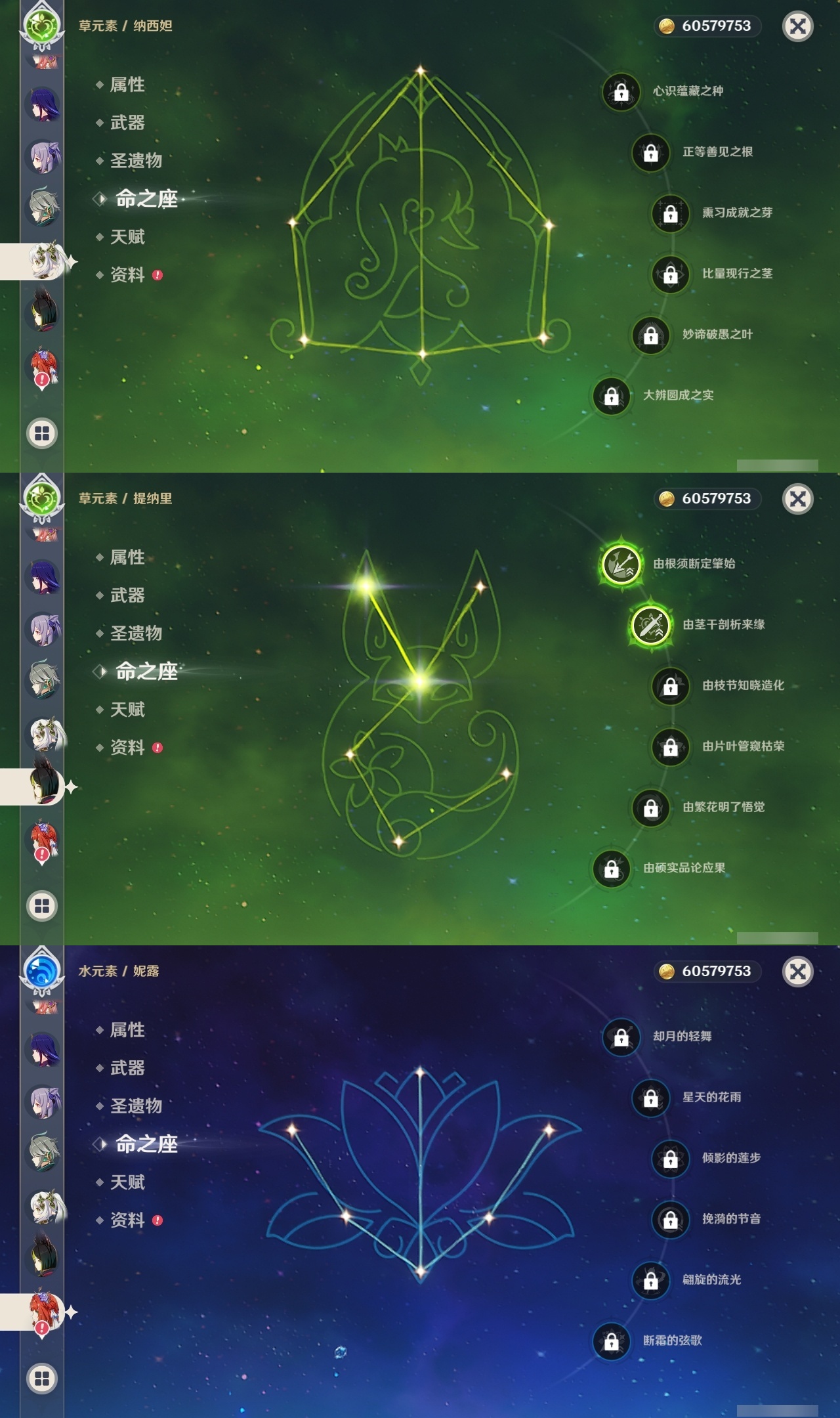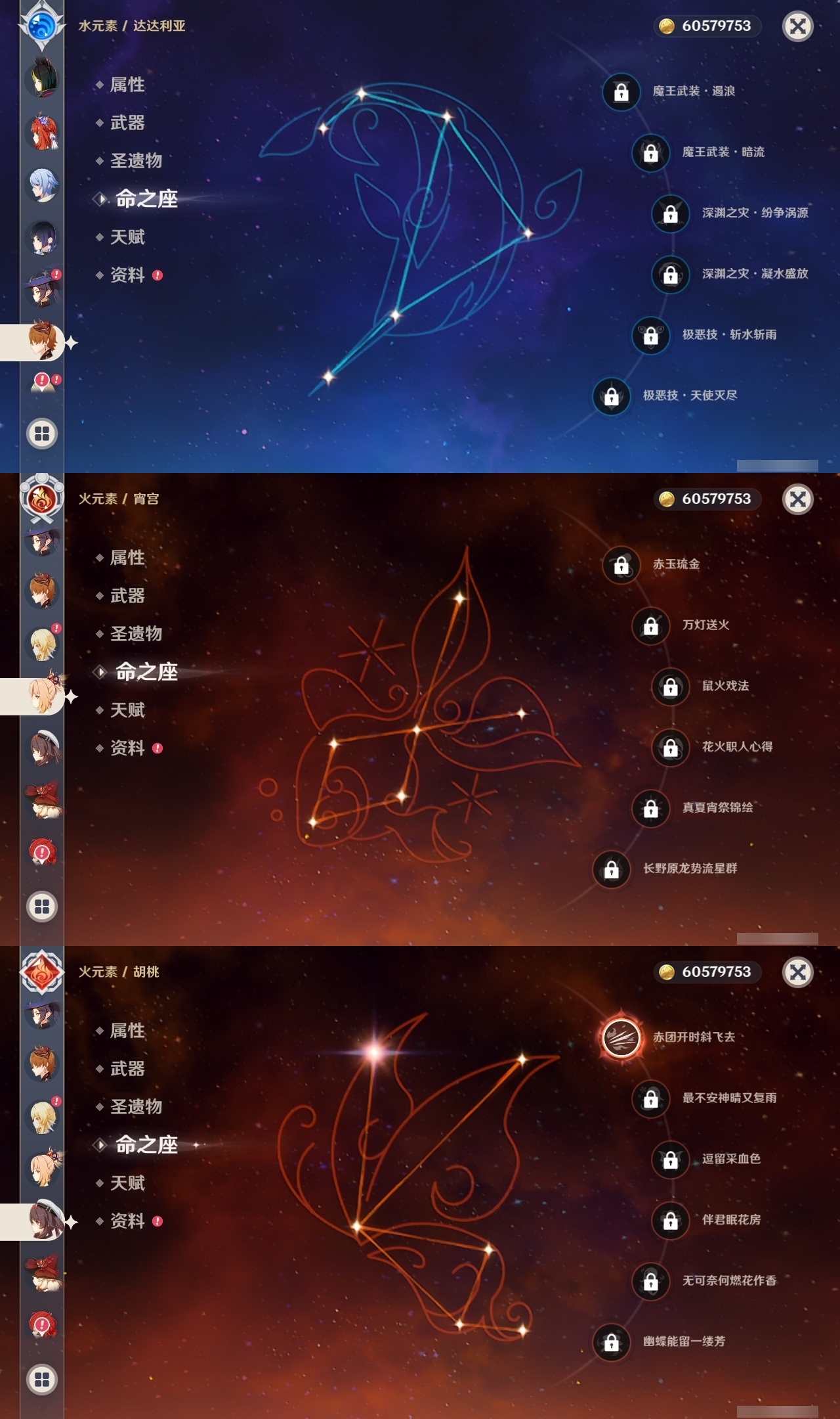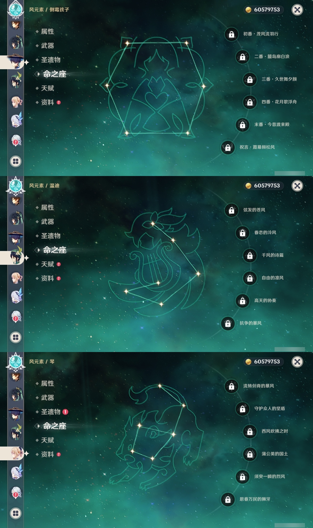 【原神】满命,冒险等级:60,五星数量:59,五星角色:刻晴 6命莫娜 6命神里绫人 6命玛拉妮 3命雷电将军 3命七七 3命申鹤 3命八重神子 3命希诺宁 2命迪希雅 2命枫原万叶 2命提纳里 2命胡桃 1命优菈 1命夜兰 1命琴神里绫华温迪玛薇卡宵宫钟离达达利亚瓦雷莎闲云丝柯克妮露纳西妲菲林斯艾尔海森流浪者迪卢克甘雨可莉__五星武器:无工之剑 5精冲浪时光岩峰巡歌鹤鸣余音阿莫斯之弓苍古自由之誓飞雷之弦振风鹰剑和璞鸢护摩之杖狼的末路磐岩结绿四风原典松籁响起之时天空之脊天空之刃天空之翼雾切之回光薙草之稻光终末嗟叹之诗若水圣显之钥千夜浮梦__四星角色:卡齐娜 6命班尼特 6命行秋 6命九条裟罗 6命香菱 6命鹿野院平藏 6命珐露珊 6命凝光 6命迪奥娜 6命砂糖 6命瑶瑶 6命莱依拉 6命多莉 6命柯莱 6命芭芭拉 6命云堇 6命早柚 6命托马 6命烟绯 6命重云 6命辛焱 6命诺艾尔 6命罗莎莉亚 6命雷泽 6命菲谢尔 6命北斗 6命夏沃蕾 6命嘉明 4命坎蒂丝 3命久岐忍 2命绮良良 2命米卡 2命五郎 2命夏洛蒂 2命欧洛伦 1命琳妮特 1命塔利雅 1命赛索斯 1命埃洛伊奇偶·女性奇偶·男性卡维蓝砚菲米尼伊法伊安珊