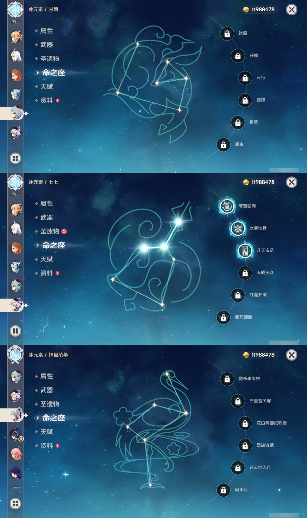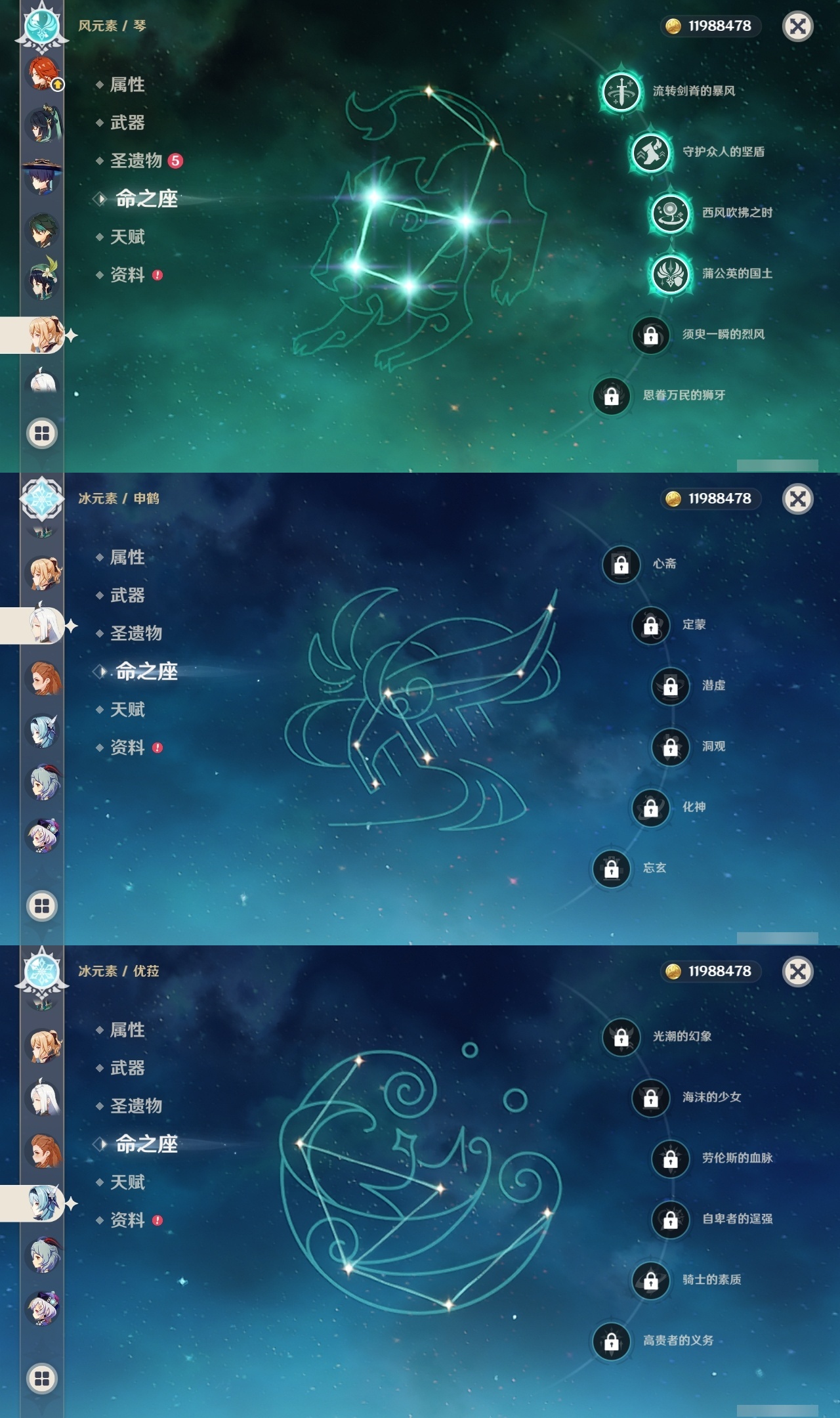 【原神】【lyys11004】冒险等级:60,五星数量:53,五星角色:迪卢克 5命琴 4命雷电将军 3命莫娜 3命七七 3命迪希雅 1命胡桃 1命刻晴 1命温迪 1命玛拉妮珊瑚宫心海神里绫华玛薇卡宵宫优菈钟离梦见月瑞希申鹤八重神子那维莱特夜兰芙宁娜提纳里闲云阿蕾奇诺妮露流浪者哥伦比娅甘雨魈克洛琳德可莉__五星武器:天空之刃 4精天空之翼 3精风鹰剑 2精磐岩结绿 2精四风原典 2精雾切之回光 2精碧落之珑最初的大魔术万世流涌大典图莱杜拉的回忆阿莫斯之弓和璞鸢护摩之杖无工之剑薙草之稻光赤角石溃杵息灾若水圣显之钥__四星角色:班尼特 6命行秋 6命香菱 6命久岐忍 6命鹿野院平藏 6命珐露珊 6命凝光 6命迪奥娜 6命砂糖 6命绮良良 6命莱依拉 6命坎蒂丝 6命芭芭拉 6命云堇 6命早柚 6命托马 6命烟绯 6命重云 6命辛焱 6命诺艾尔 6命罗莎莉亚 6命雷泽 6命菲谢尔 6命北斗 6命五郎 5命米卡 4命柯莱 4命菲米尼 4命九条裟罗 3命嘉明 3命卡齐娜 2命瑶瑶 2命多莉 2命卡维 2命欧洛伦 1命琳妮特 1命夏洛蒂 1命伊法 1命赛索斯 1命埃洛伊奇偶·女性夏沃蕾伊安珊爱诺