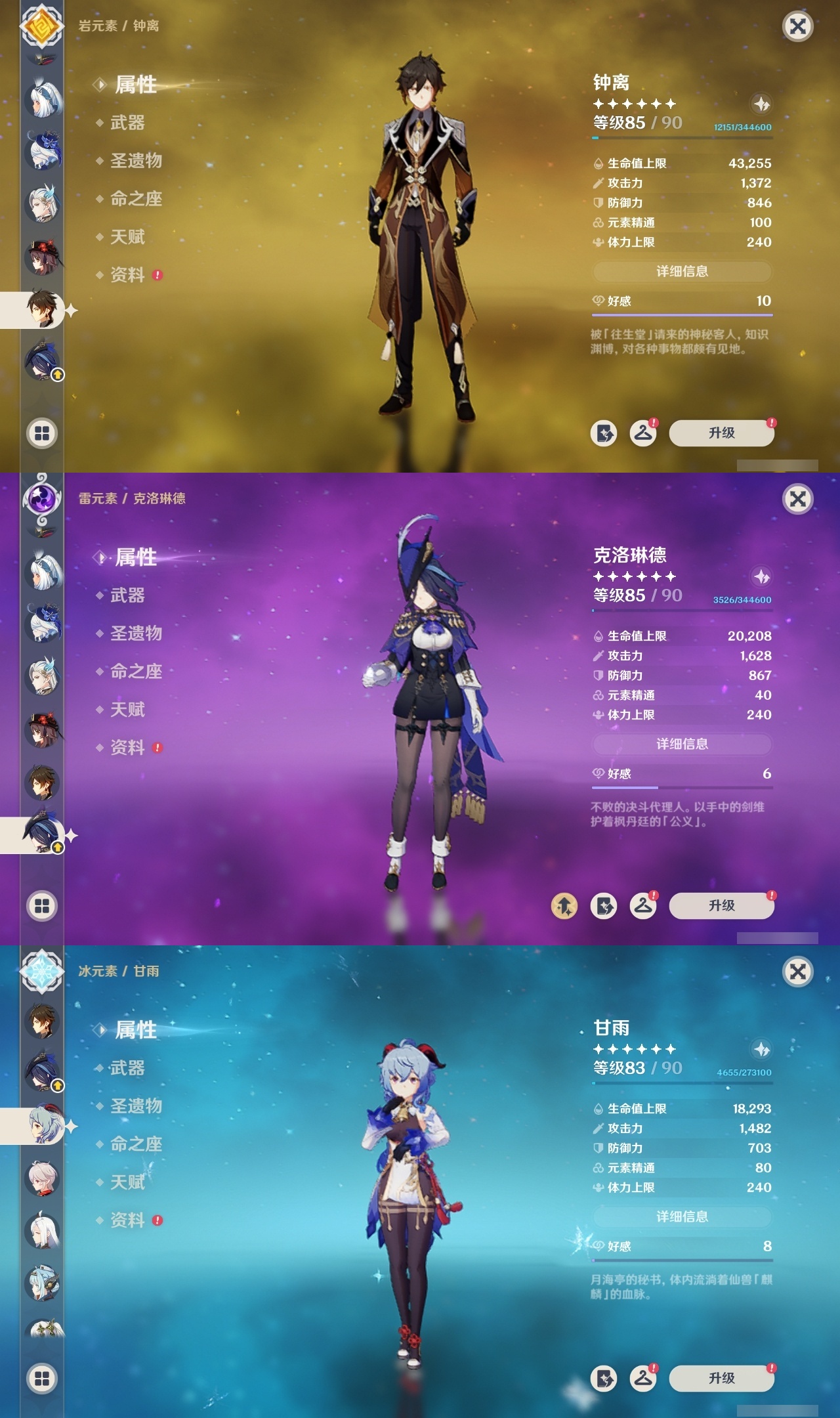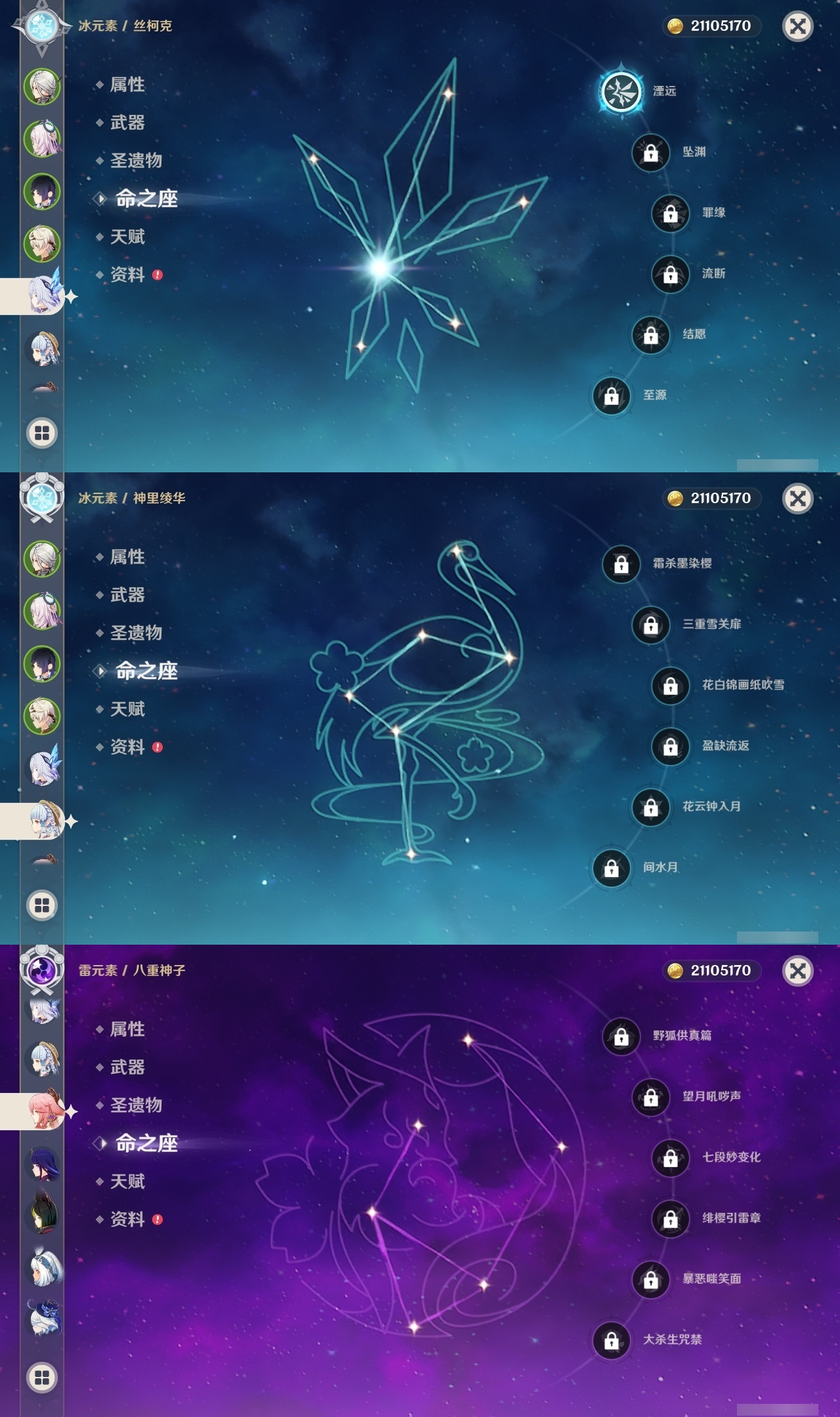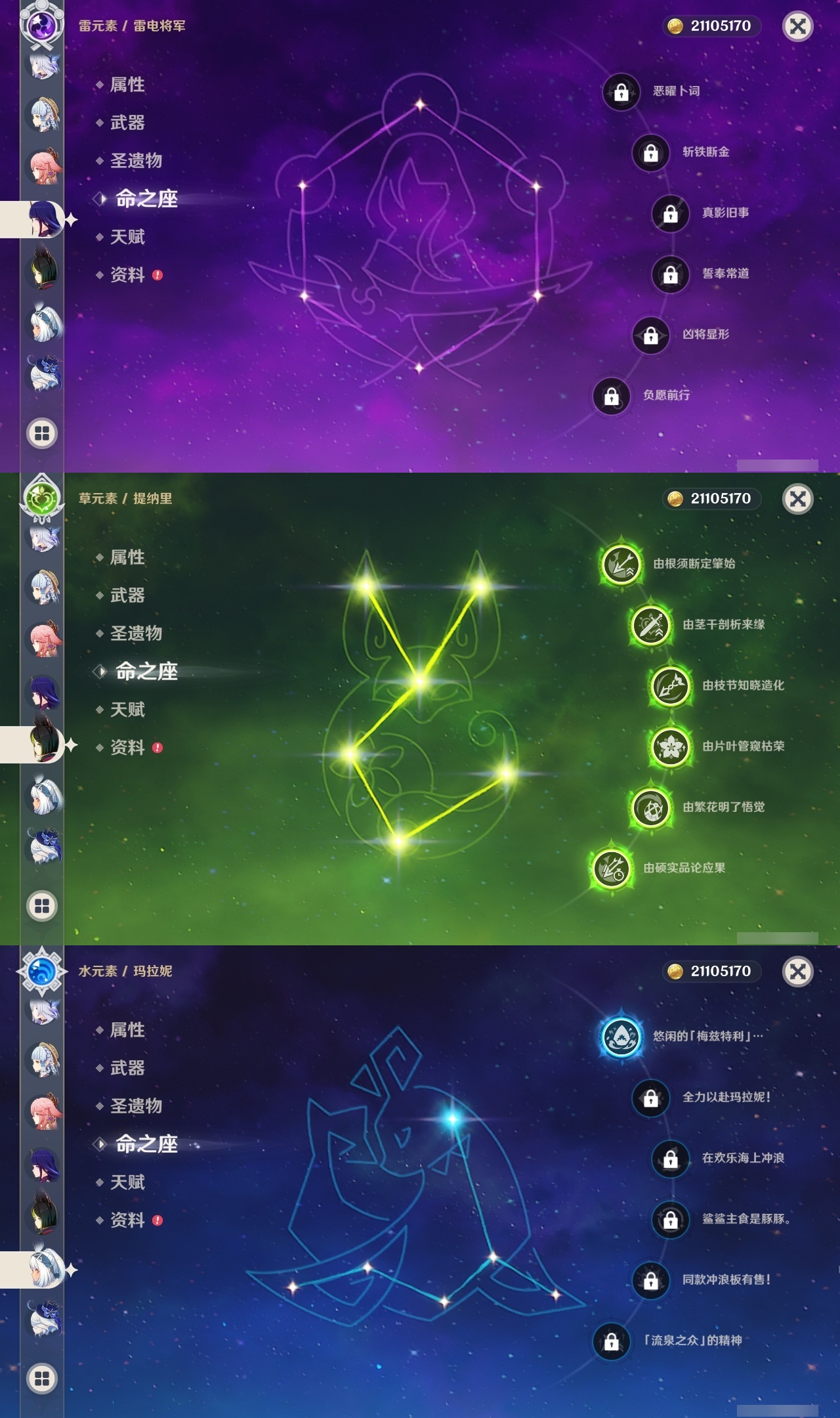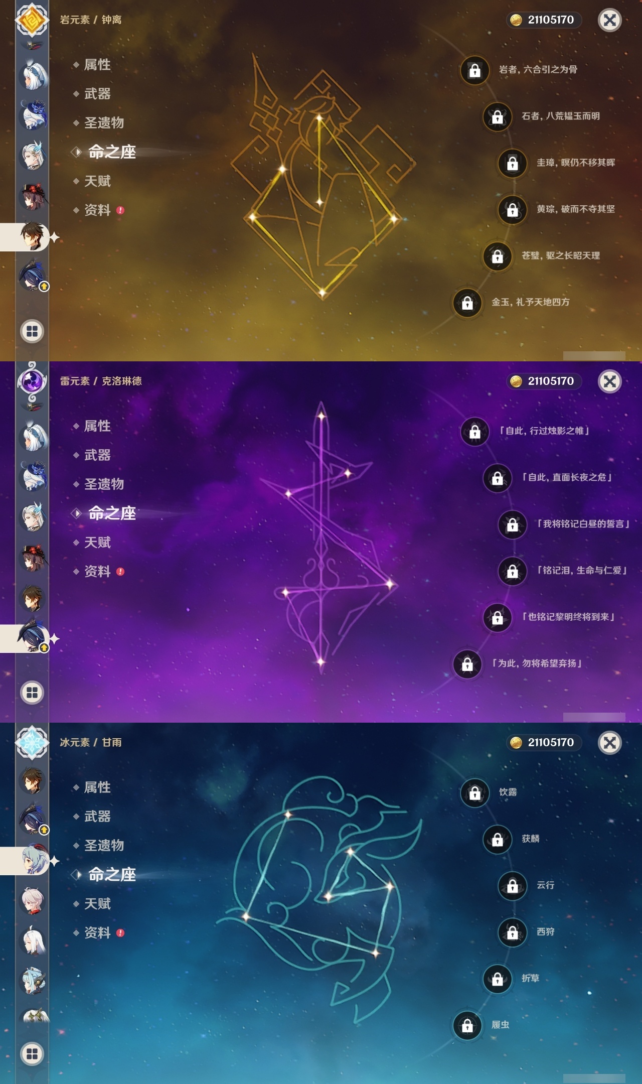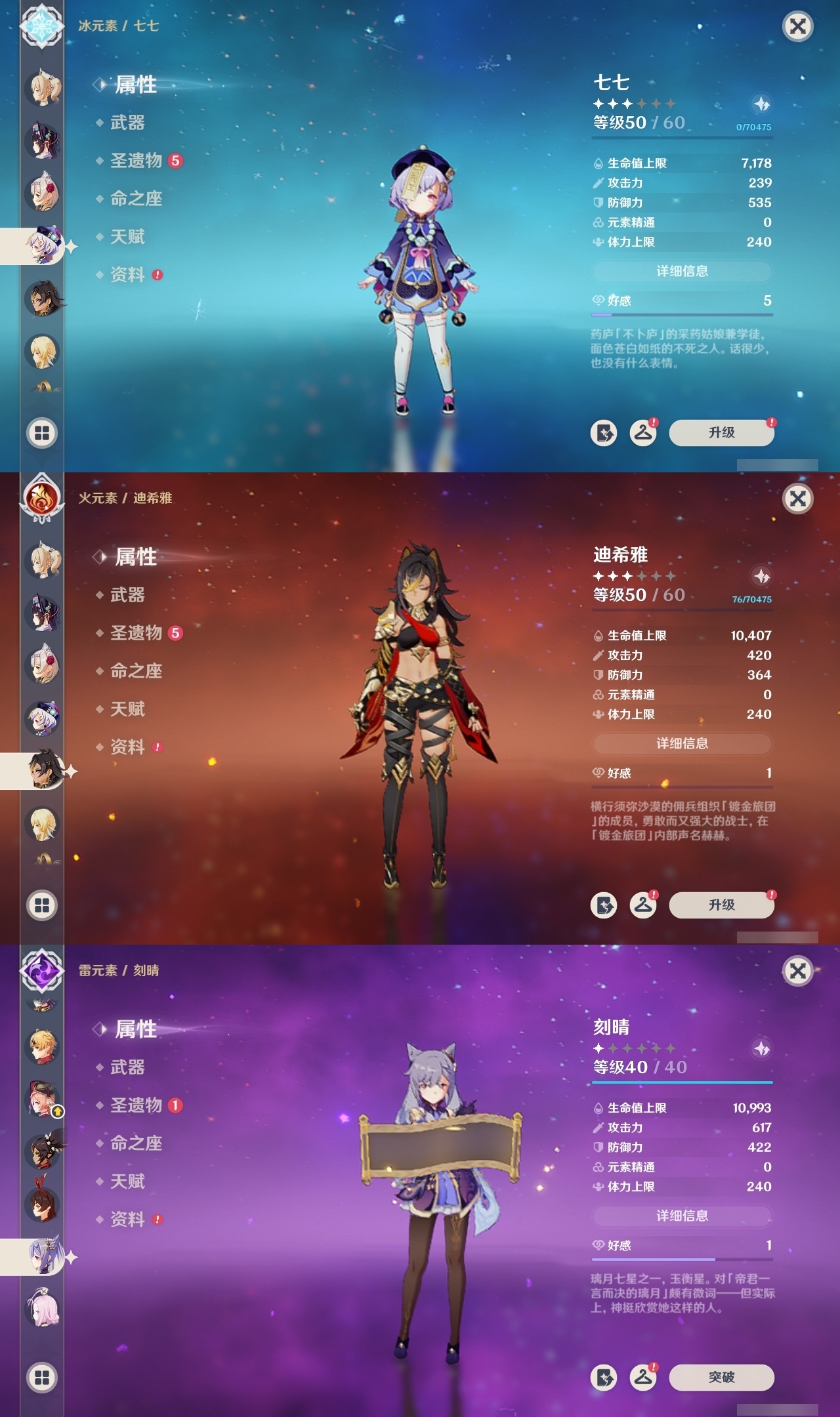 【原神】【lyys10998】冒险等级:60,五星数量:41,五星角色:提纳里 6命阿蕾奇诺 4命刻晴 2命琴 2命玛拉妮 1命迪希雅 1命梦见月瑞希 1命丝柯克 1命胡桃 1命七七 1命莫娜神里绫华茜特菈莉钟离荒泷一斗申鹤八重神子那维莱特夜兰芙宁娜伊涅芙纳西妲迪卢克哥伦比娅枫原万叶甘雨克洛琳德雷电将军__五星武器:狼的末路 2精四风原典 2精息灾 2精万世流涌大典赤月之形和璞鸢护摩之杖天空之刃雾切之回光冬极白星贯虹之槊__四星角色:卡齐娜 6命班尼特 6命行秋 6命香菱 6命珐露珊 6命迪奥娜 6命砂糖 6命坎蒂丝 6命多莉 6命柯莱 6命云堇 6命蓝砚 6命早柚 6命托马 6命五郎 6命辛焱 6命诺艾尔 6命罗莎莉亚 6命雷泽 6命菲谢尔 6命北斗 6命菲米尼 6命琳妮特 6命鹿野院平藏 5命米卡 4命夏沃蕾 4命塔利雅 4命久岐忍 3命凝光 3命瑶瑶 3命芭芭拉 3命烟绯 3命重云 3命夏洛蒂 3命赛索斯 3命绮良良 1命莱依拉 1命欧洛伦 1命伊安珊 1命奇偶·女性奇偶·男性九条裟罗卡维嘉明伊法爱诺