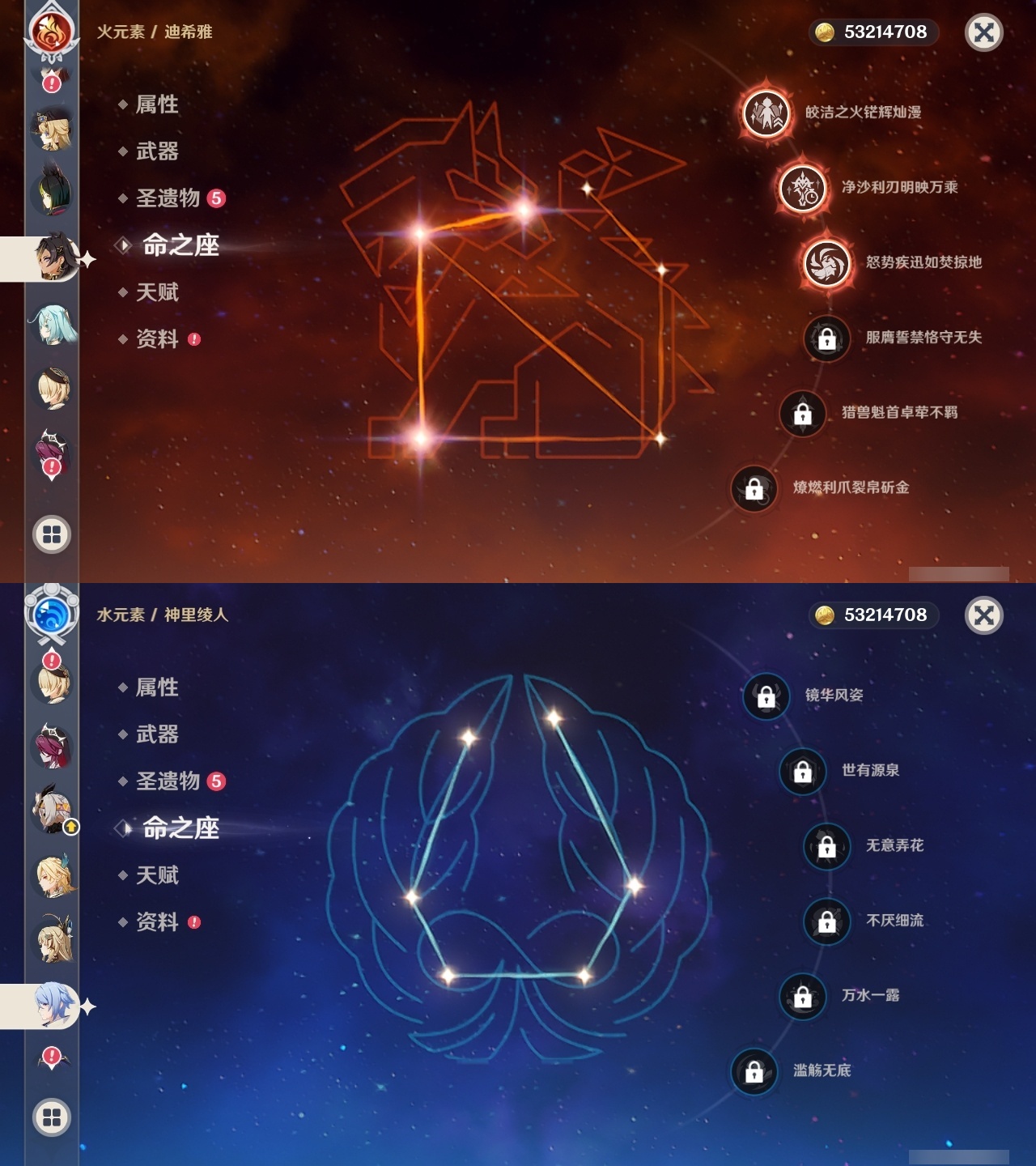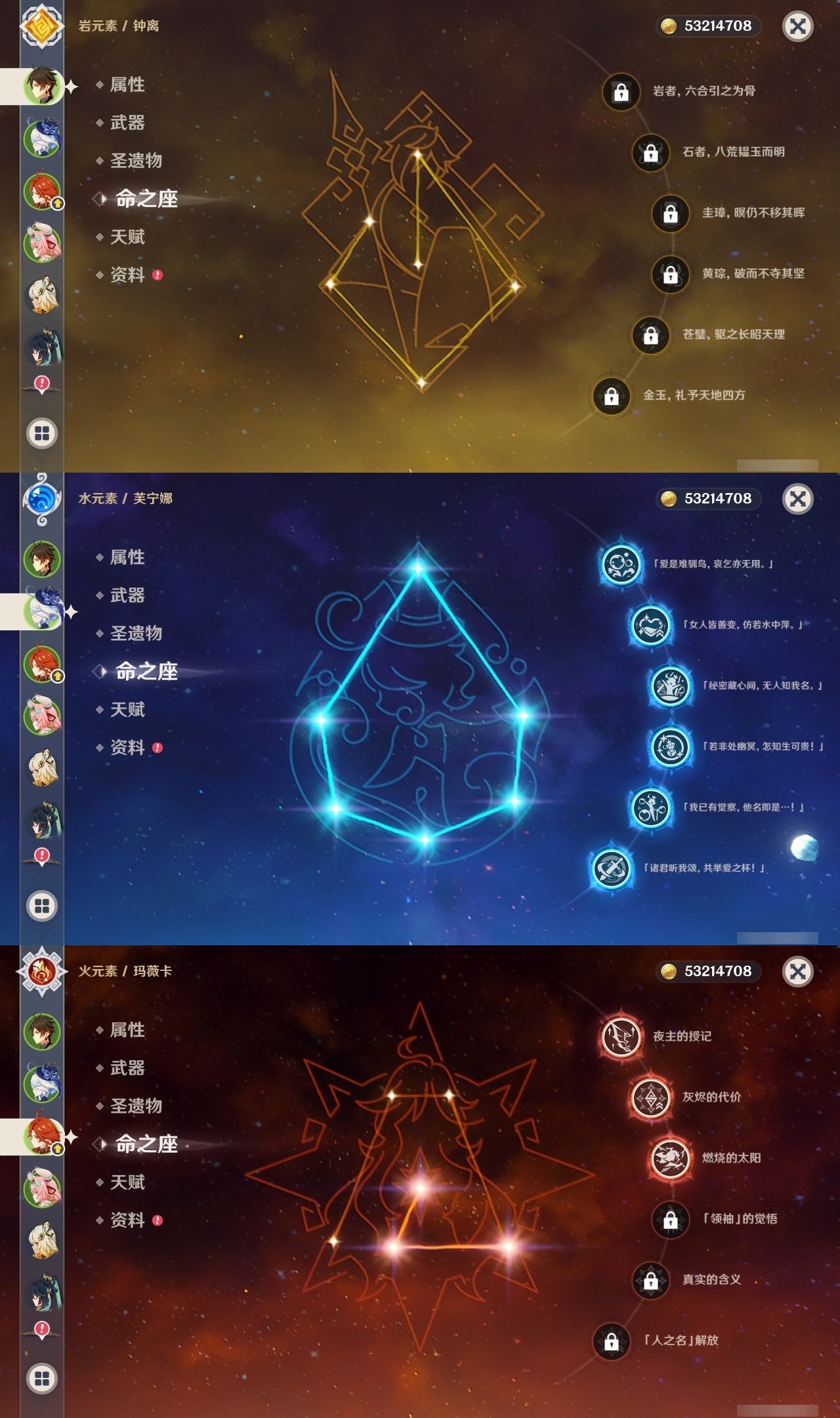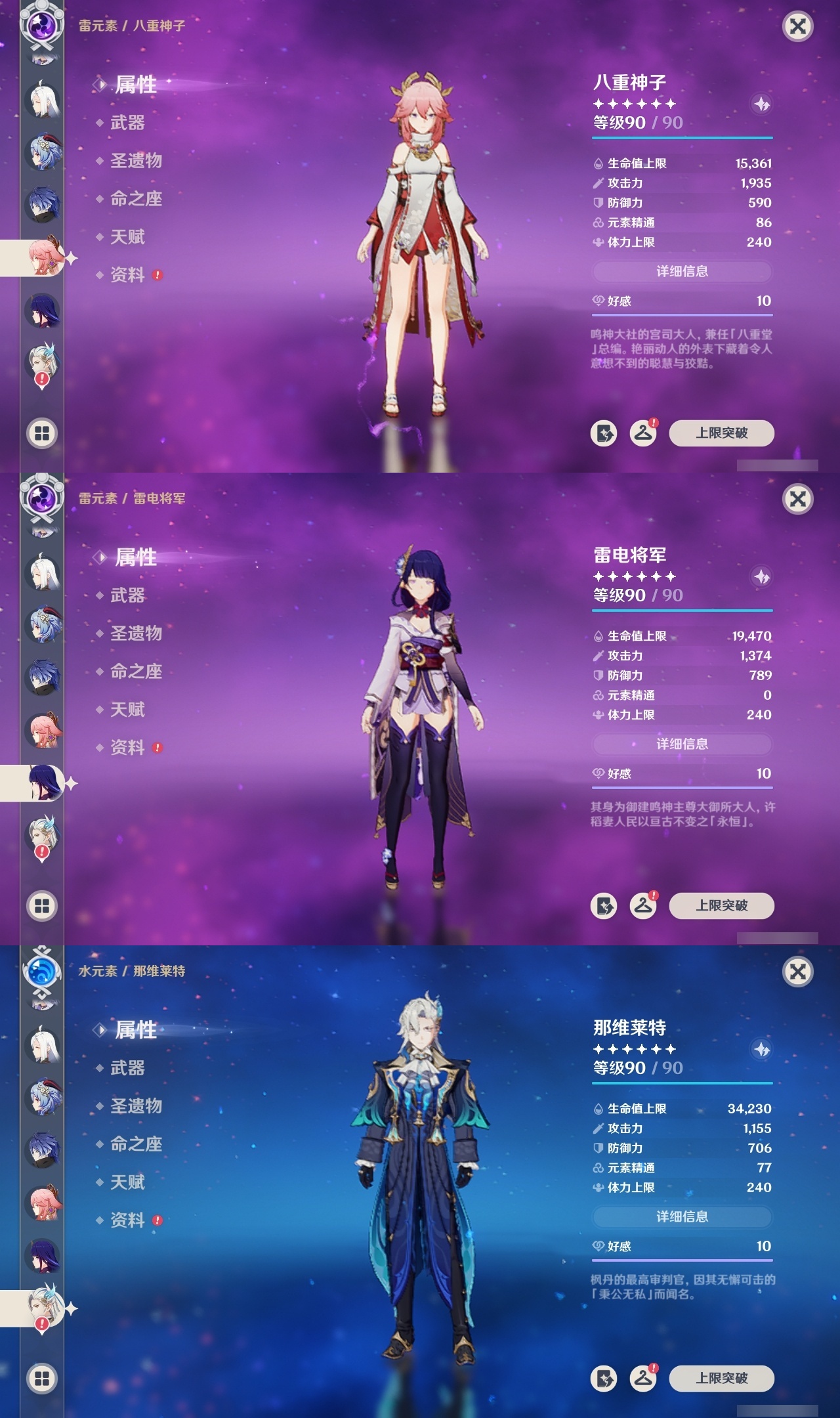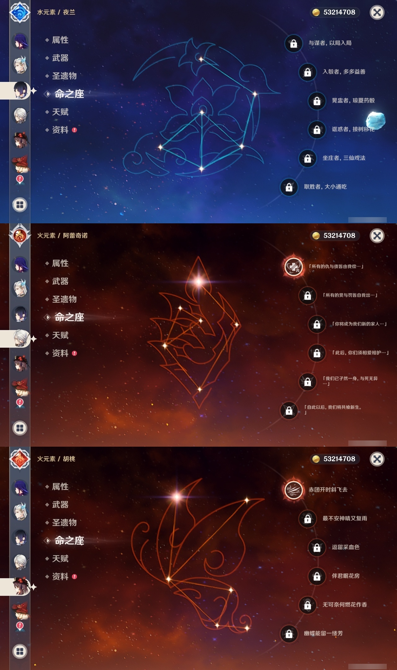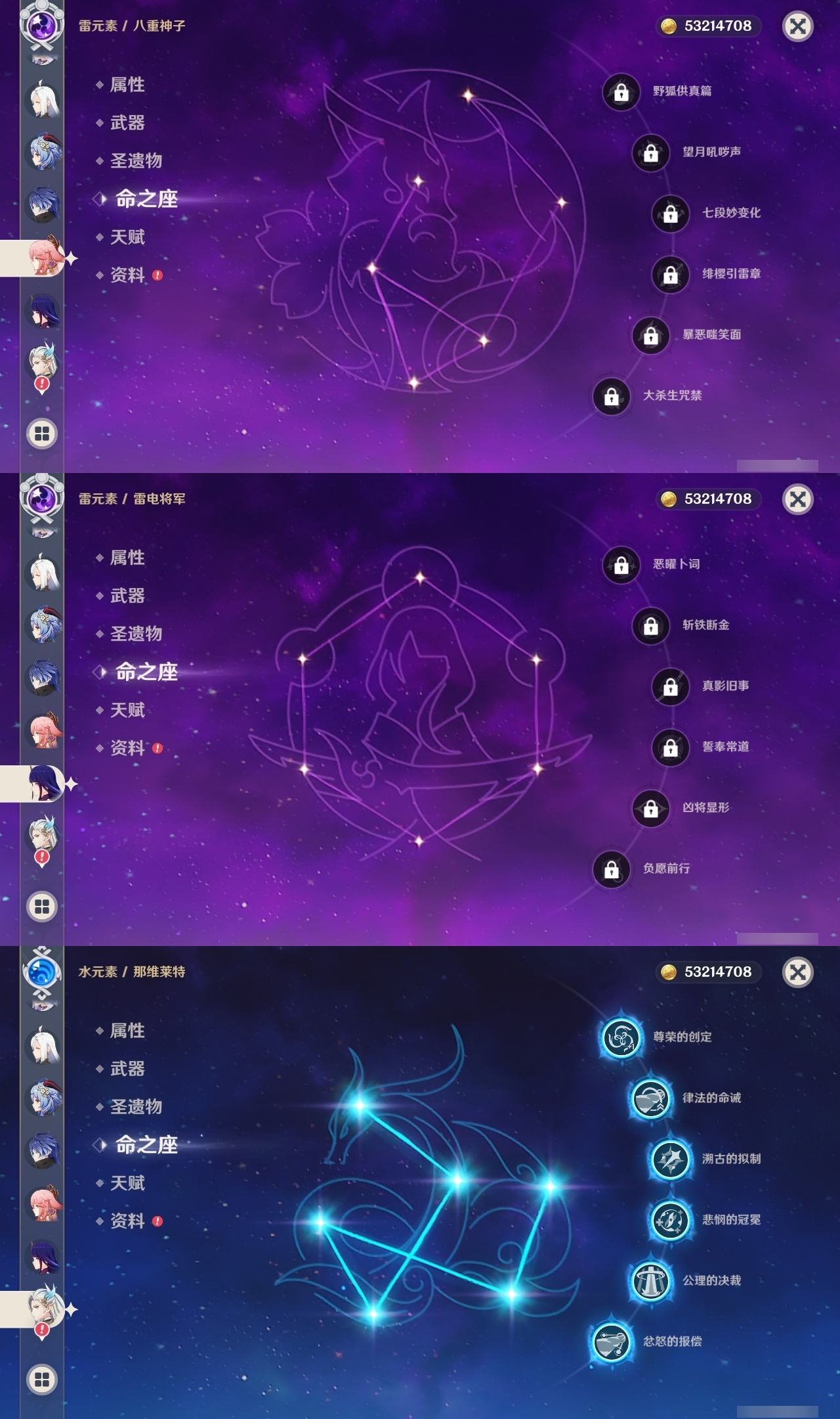 【原神】满命,冒险等级:60,五星数量:46,五星角色:那维莱特 6命芙宁娜 6命莫娜 6命七七 5命刻晴 4命玛薇卡 3命迪希雅 3命迪卢克 3命希诺宁 1命梦见月瑞希 1命阿蕾奇诺 1命菲林斯 1命甘雨 1命胡桃 1命琴 1命申鹤 1命钟离瓦雷莎八重神子神里绫人夜兰娜维娅提纳里闲云丝柯克流浪者枫原万叶可莉雷电将军__五星武器:万世流涌大典 2精阿莫斯之弓 2精风鹰剑 2精护摩之杖 2精岩峰巡歌祭星者之望焚曜千阳静水流涌之辉苍耀狼的末路四风原典天空之刃天空之翼终末嗟叹之诗__四星角色:卡齐娜 6命班尼特 6命行秋 6命香菱 6命久岐忍 6命珐露珊 6命凝光 6命迪奥娜 6命砂糖 6命坎蒂丝 6命多莉 6命柯莱 6命芭芭拉 6命早柚 6命托马 6命烟绯 6命诺艾尔 6命罗莎莉亚 6命菲谢尔 6命北斗 6命琳妮特 6命夏洛蒂 6命爱诺 6命卡维 5命重云 5命伊法 5命伊安珊 5命九条裟罗 4命赛索斯 4命瑶瑶 3命云堇 3命蓝砚 3命辛焱 3命嘉明 3命莱依拉 2命米卡 2命雷泽 2命菲米尼 2命夏沃蕾 2命鹿野院平藏 1命绮良良 1命塔利雅 1命埃洛伊奇偶·女性奇偶·男性欧洛伦五郎