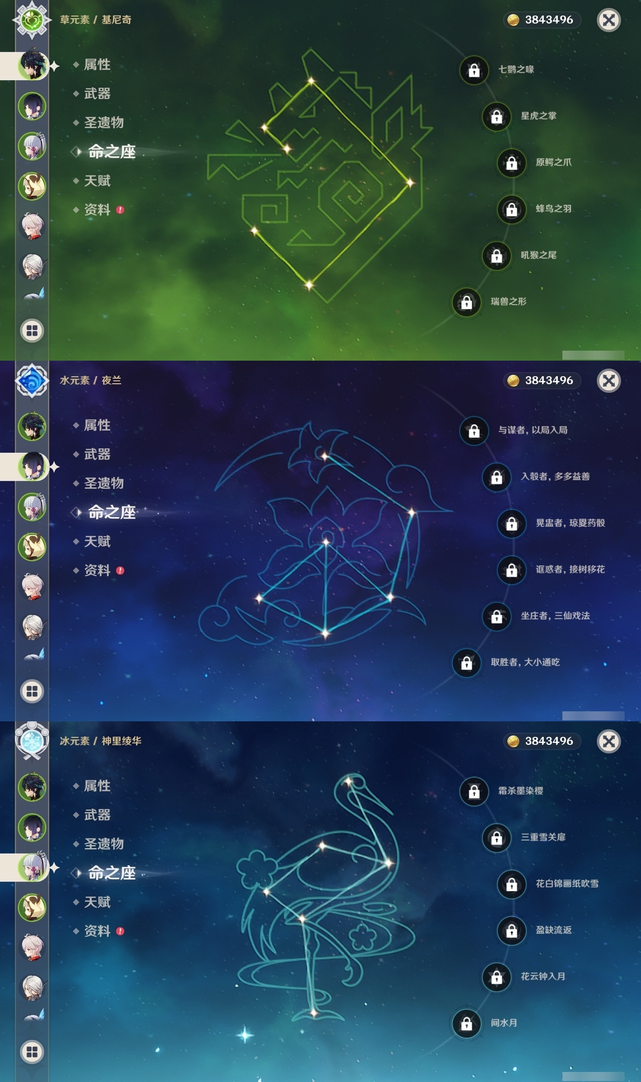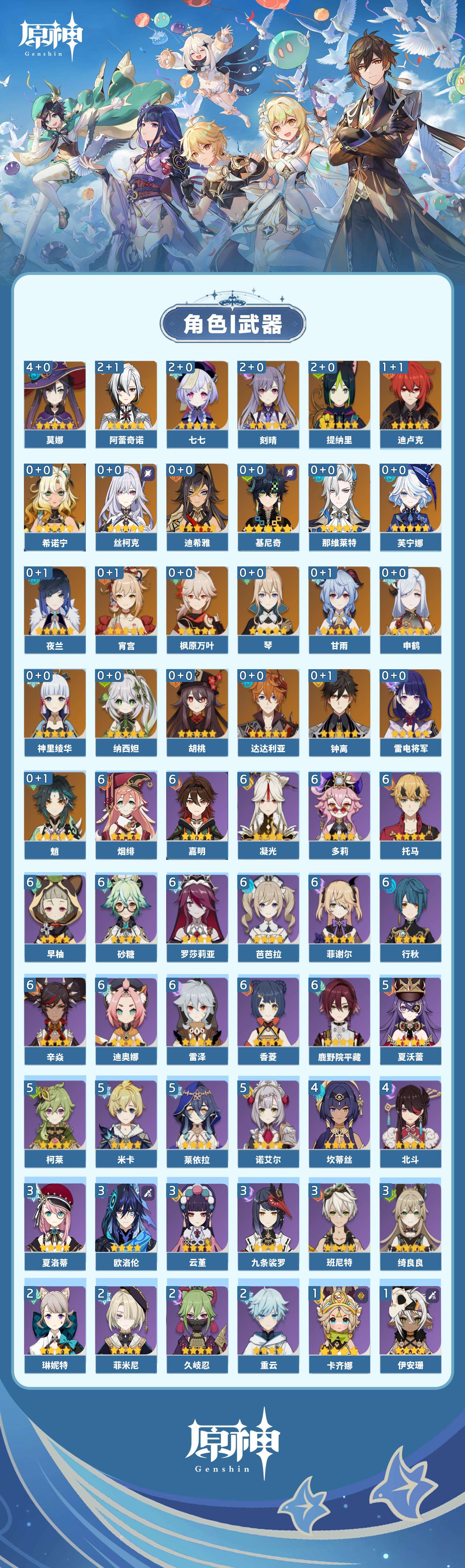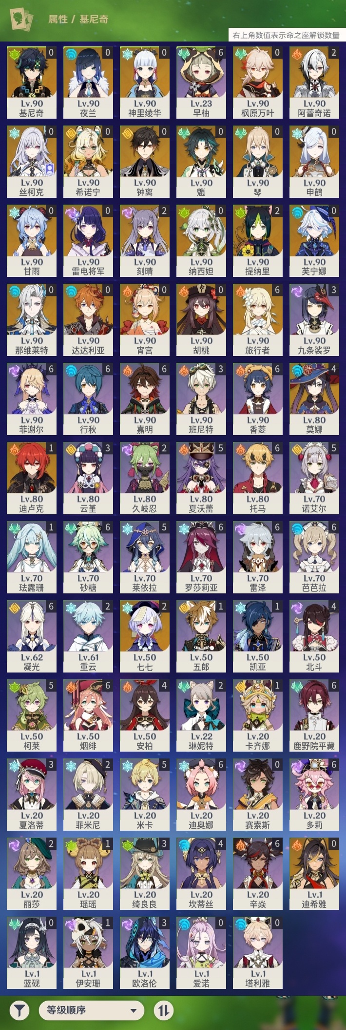 【原神】【lyys10989】冒险等级:60,五星数量:34,五星角色:莫娜 4命阿蕾奇诺 2命刻晴 2命七七 2命提纳里 2命迪卢克 1命琴基尼奇希诺宁神里绫华宵宫迪希雅钟离达达利亚申鹤那维莱特夜兰芙宁娜丝柯克纳西妲枫原万叶甘雨魈胡桃雷电将军__五星武器:赤月之形阿莫斯之弓飞雷之弦振和璞鸢狼的末路天空之傲天空之刃贯虹之槊若水__四星角色:行秋 6命香菱 6命鹿野院平藏 6命凝光 6命迪奥娜 6命砂糖 6命多莉 6命芭芭拉 6命早柚 6命托马 6命烟绯 6命辛焱 6命罗莎莉亚 6命雷泽 6命菲谢尔 6命嘉明 6命莱依拉 5命米卡 5命柯莱 5命诺艾尔 5命夏沃蕾 5命坎蒂丝 4命北斗 4命班尼特 3命九条裟罗 3命绮良良 3命欧洛伦 3命云堇 3命夏洛蒂 3命久岐忍 2命重云 2命菲米尼 2命琳妮特 2命卡齐娜 1命珐露珊 1命瑶瑶 1命五郎 1命伊安珊 1命蓝砚塔利雅爱诺赛索斯