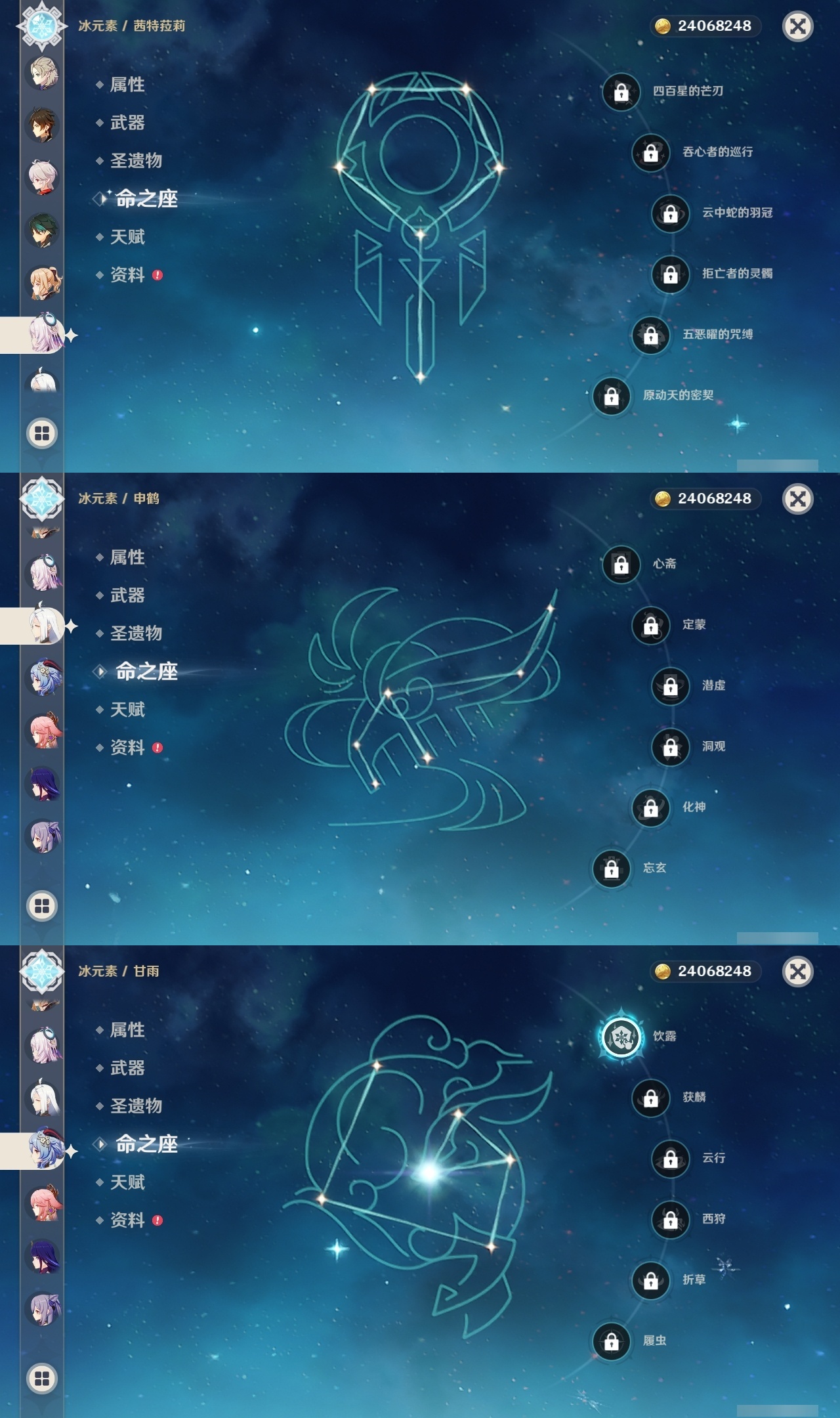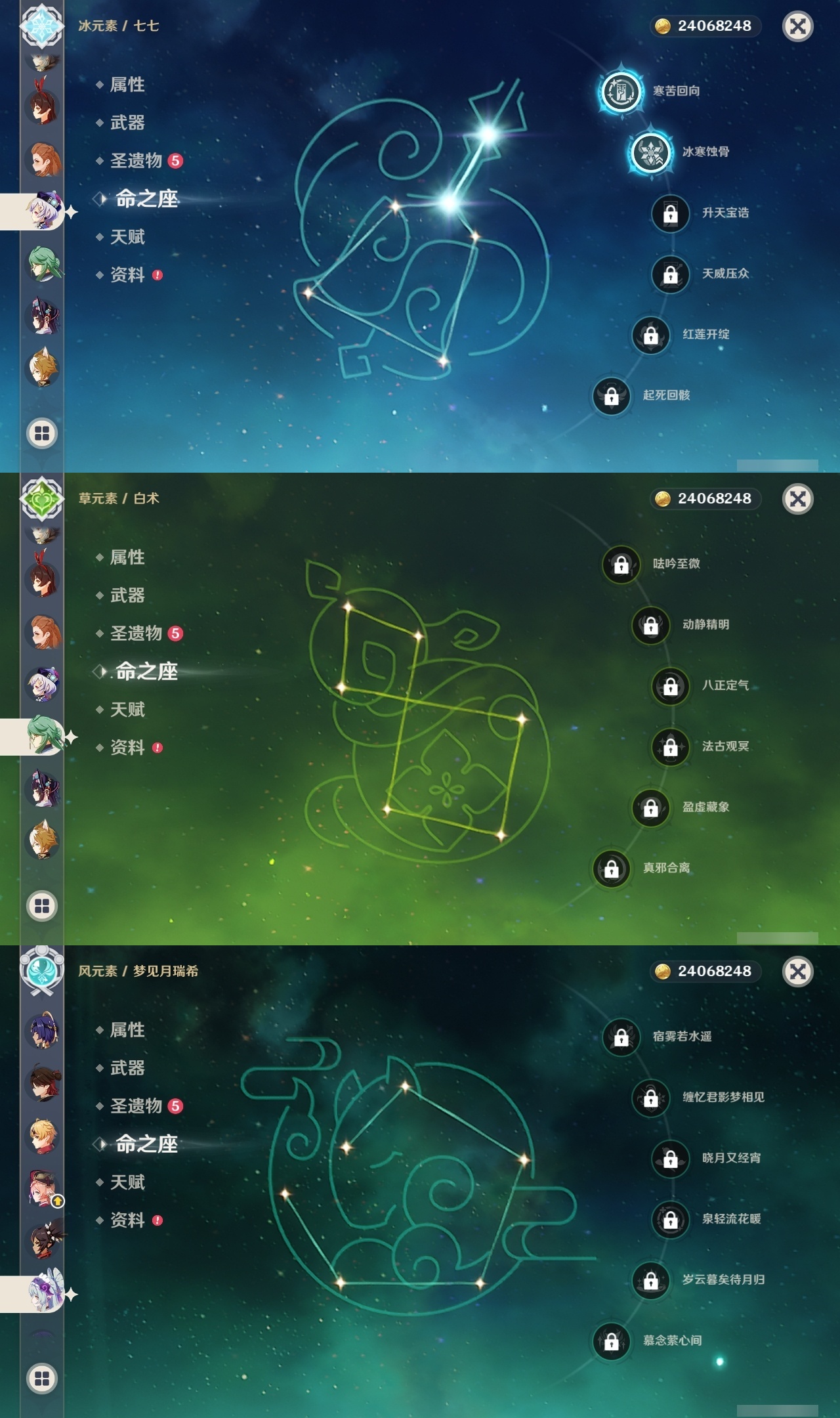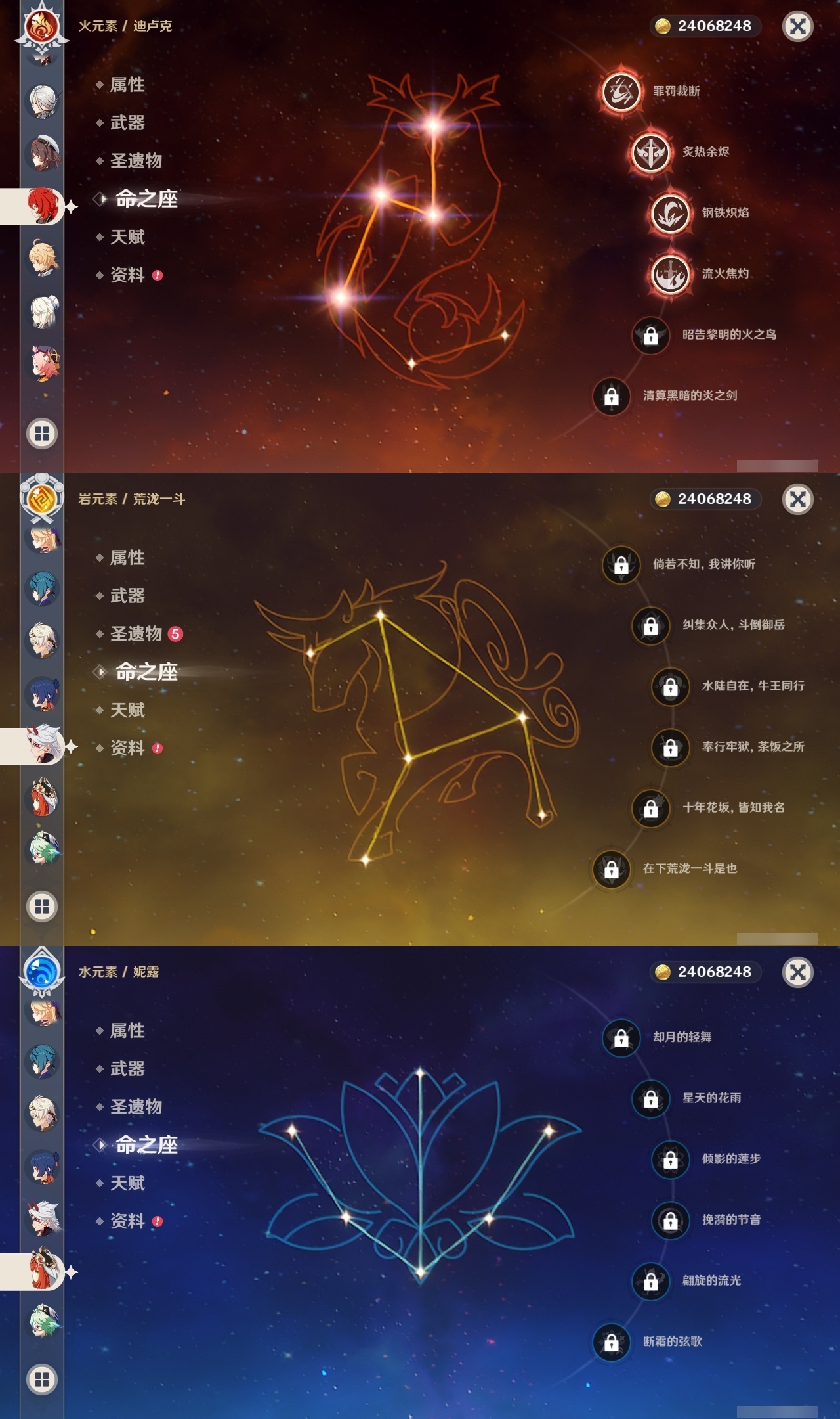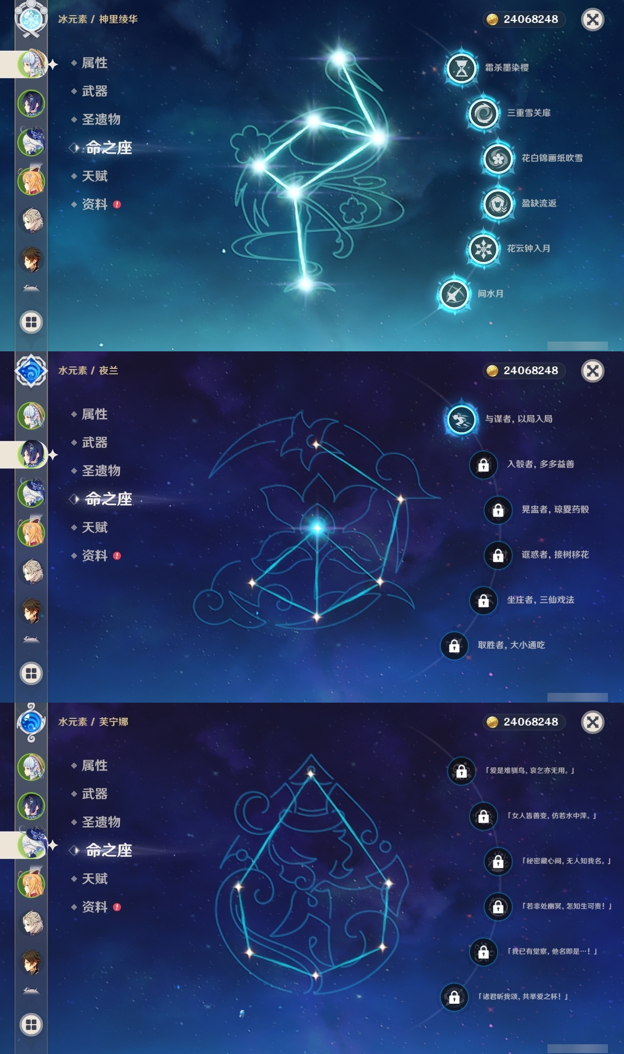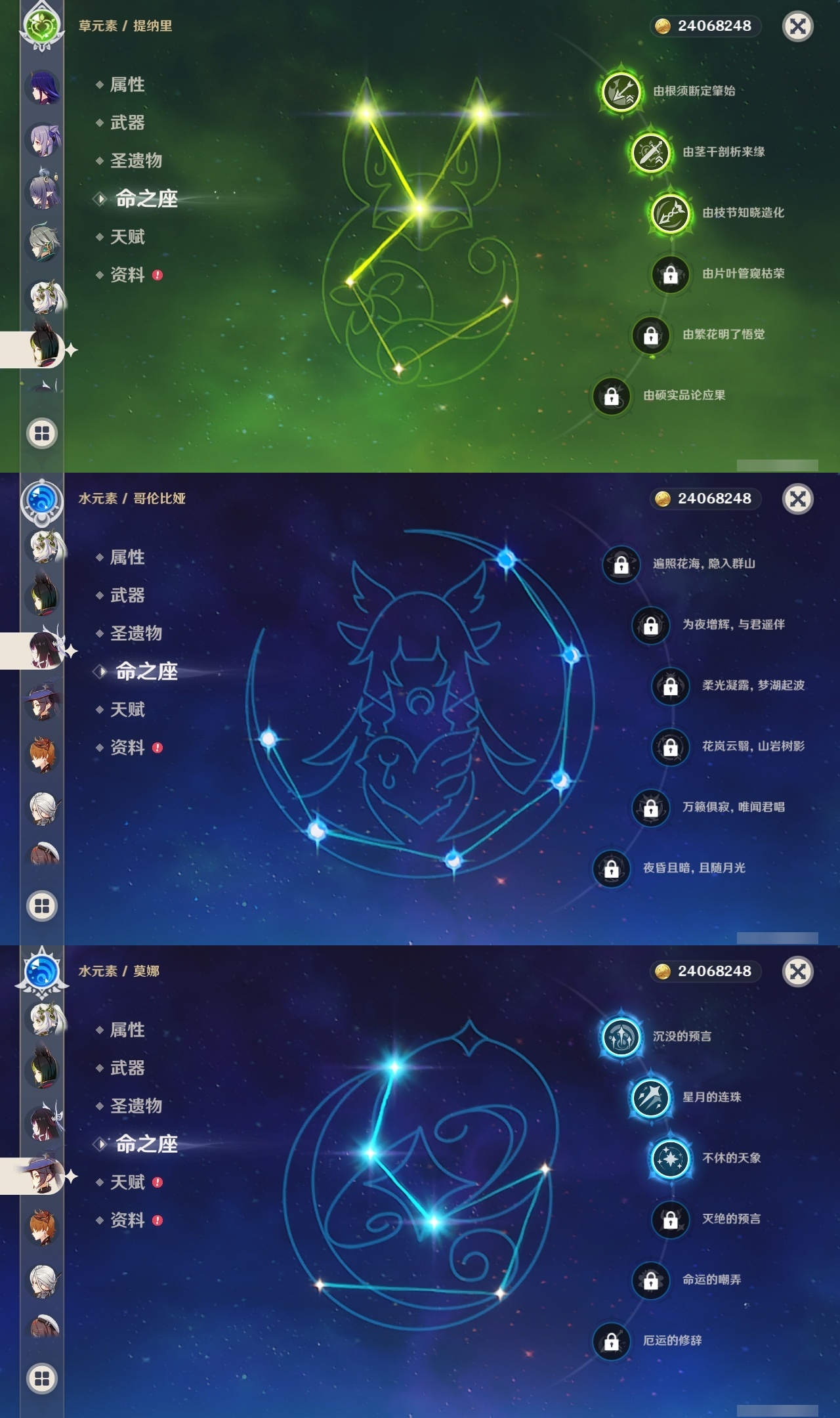【原神】【lyys10988】冒险等级:60,五星数量:46,五星角色:神里绫华 6命迪卢克 4命刻晴 4命琴 4命莫娜 3命提纳里 3命七七 2命爱可菲 1命甘雨 1命胡桃 1命夜兰 1命白术茜特菈莉钟离荒泷一斗达达利亚梦见月瑞希申鹤八重神子阿贝多芙宁娜阿蕾奇诺妮露纳西妲菈乌玛艾尔海森哥伦比娅枫原万叶魈雷电将军__五星武器:和璞鸢 3精狼的末路 2精雾切之回光 2精静水流涌之辉真语秘匣护摩之杖四风原典天空之脊天空之卷天空之翼薙草之稻光若水千夜浮梦__四星角色:班尼特 6命行秋 6命九条裟罗 6命香菱 6命久岐忍 6命凝光 6命迪奥娜 6命砂糖 6命米卡 6命卡维 6命芭芭拉 6命托马 6命烟绯 6命重云 6命辛焱 6命诺艾尔 6命罗莎莉亚 6命菲谢尔 6命北斗 6命赛索斯 6命莱依拉 5命柯莱 5命云堇 5命瑶瑶 4命珐露珊 3命坎蒂丝 3命多莉 3命欧洛伦 3命雷泽 2命嘉明 2命伊法 2命卡齐娜 1命绮良良 1命早柚 1命五郎 1命菲米尼 1命琳妮特 1命夏沃蕾 1命塔利雅 1命埃洛伊奇偶·女性奇偶·男性鹿野院平藏爱诺