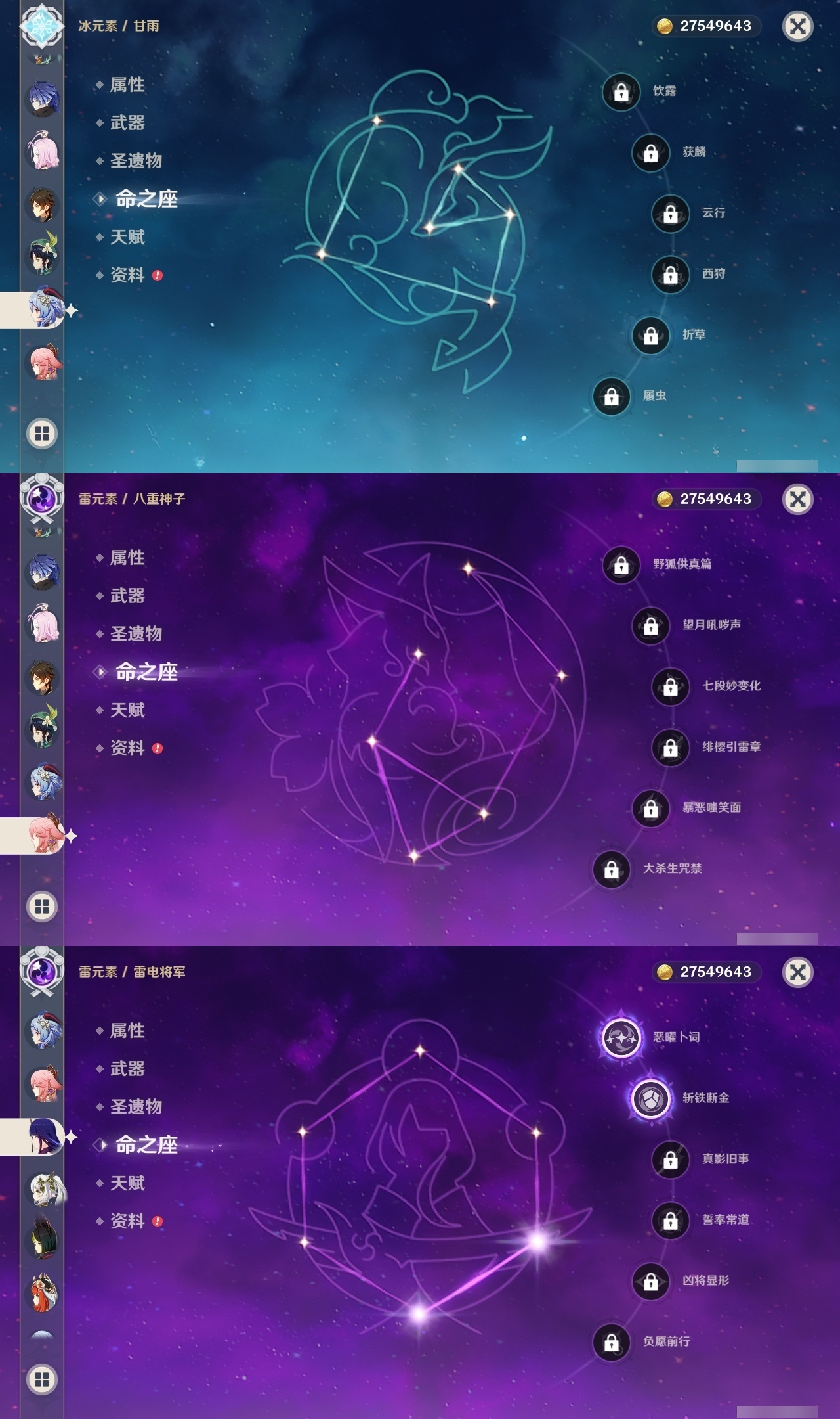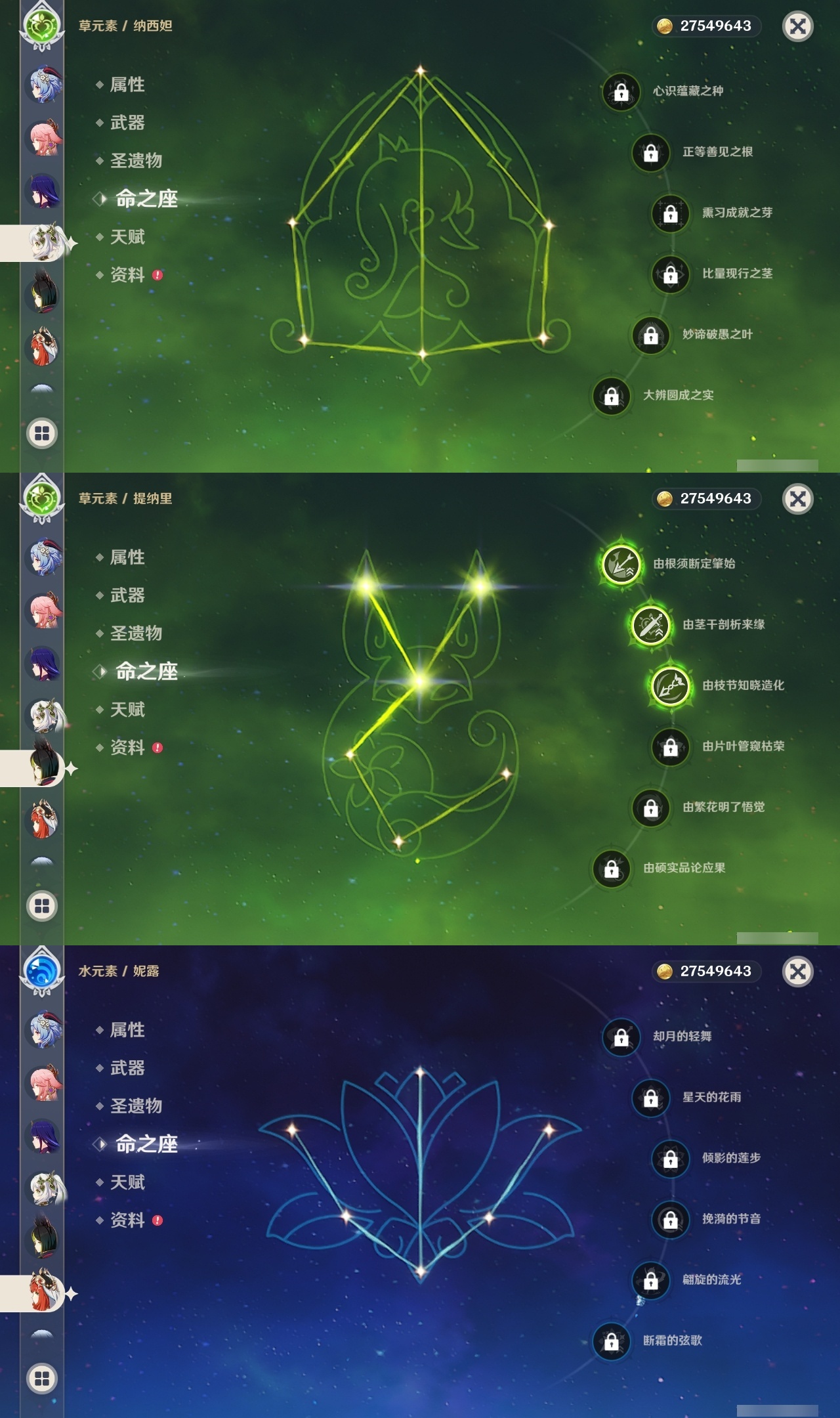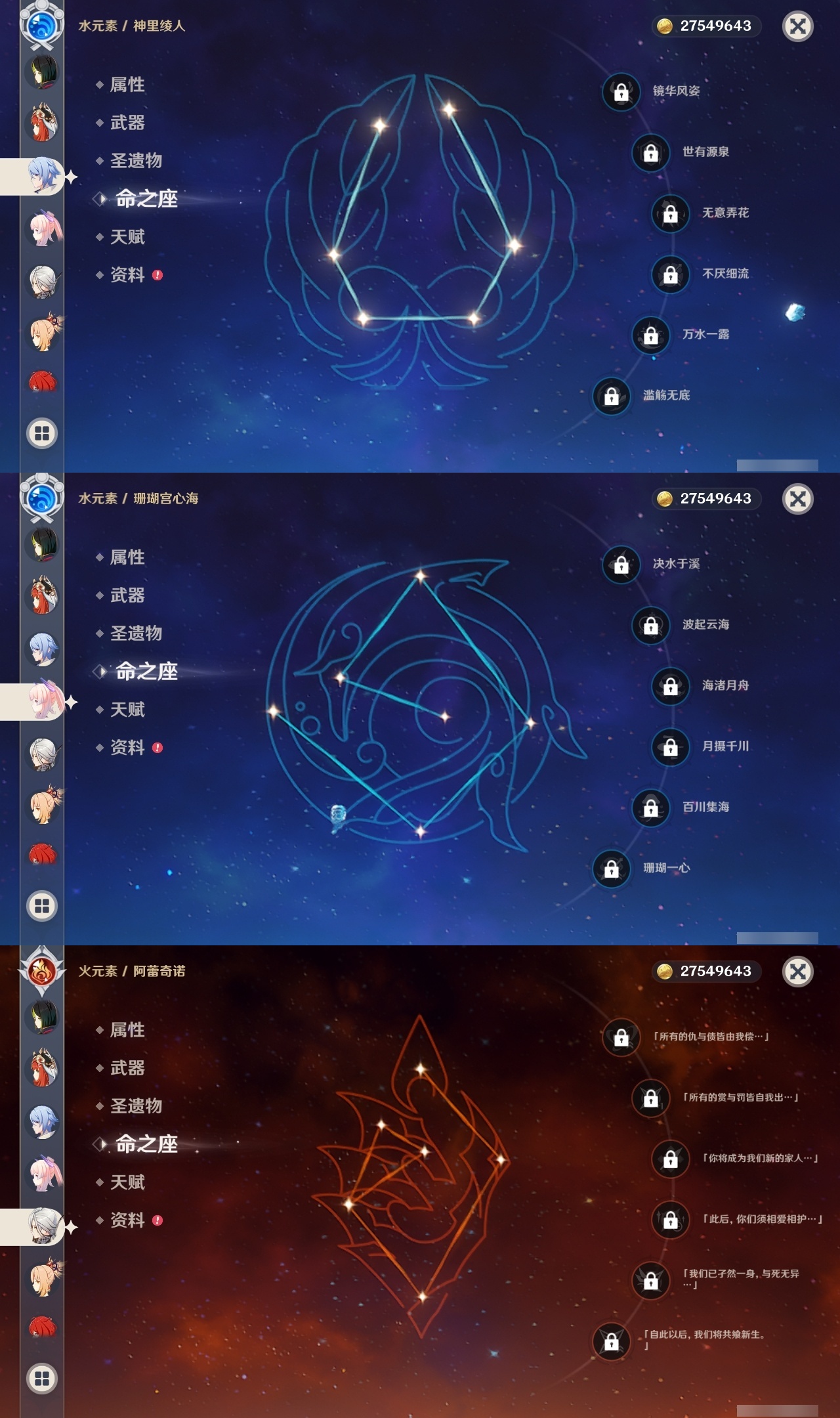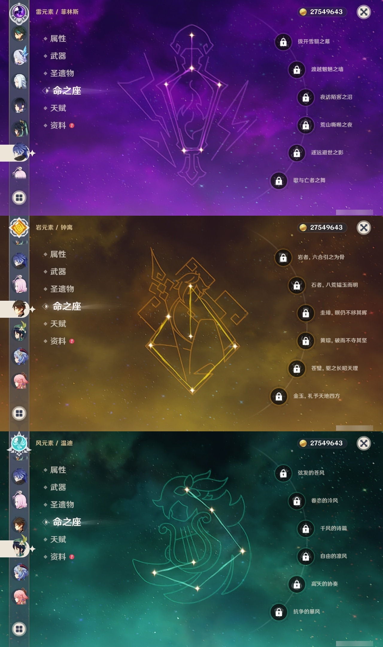 【原神】【lyys10981】冒险等级:60,五星数量:52,五星角色:那维莱特 4命刻晴 4命七七 3命提纳里 3命芙宁娜 2命迪卢克 2命雷电将军 2命莫娜 2命梦见月瑞希 1命枫原万叶 1命琴珊瑚宫心海希诺宁温迪宵宫迪希雅钟离申鹤八重神子神里绫人夜兰闲云阿蕾奇诺丝柯克妮露纳西妲菲林斯甘雨魈__五星武器:天空之卷 3精碧落之珑 2精和璞鸢 2精岩峰巡歌星鹫赤羽最初的大魔术万世流涌大典静水流涌之辉裁断赤月之形阿莫斯之弓苍古自由之誓风鹰剑四风原典天空之脊天空之刃天空之翼终末嗟叹之诗息灾猎人之径圣显之钥千夜浮梦__四星角色:班尼特 6命行秋 6命香菱 6命久岐忍 6命鹿野院平藏 6命珐露珊 6命凝光 6命瑶瑶 6命米卡 6命柯莱 6命芭芭拉 6命云堇 6命托马 6命五郎 6命烟绯 6命辛焱 6命诺艾尔 6命罗莎莉亚 6命菲谢尔 6命北斗 6命夏沃蕾 6命嘉明 6命伊安珊 6命九条裟罗 5命迪奥娜 5命砂糖 5命坎蒂丝 5命多莉 5命卡齐娜 4命莱依拉 4命卡维 4命早柚 3命重云 3命琳妮特 3命绮良良 2命雷泽 2命菲米尼 2命赛索斯 2命爱诺 1命奇偶·女性欧洛伦蓝砚伊法塔利雅