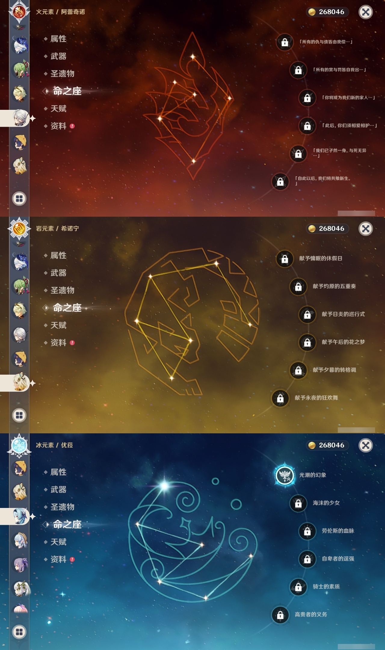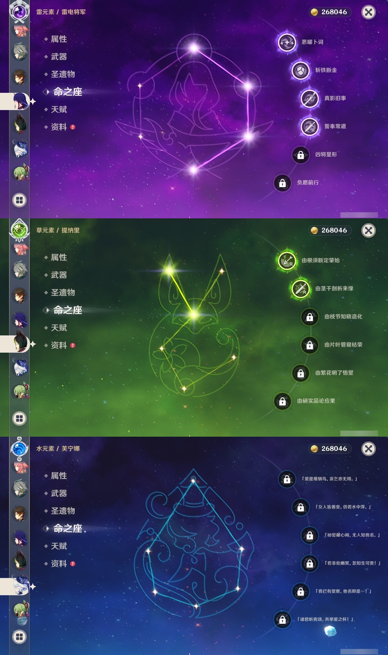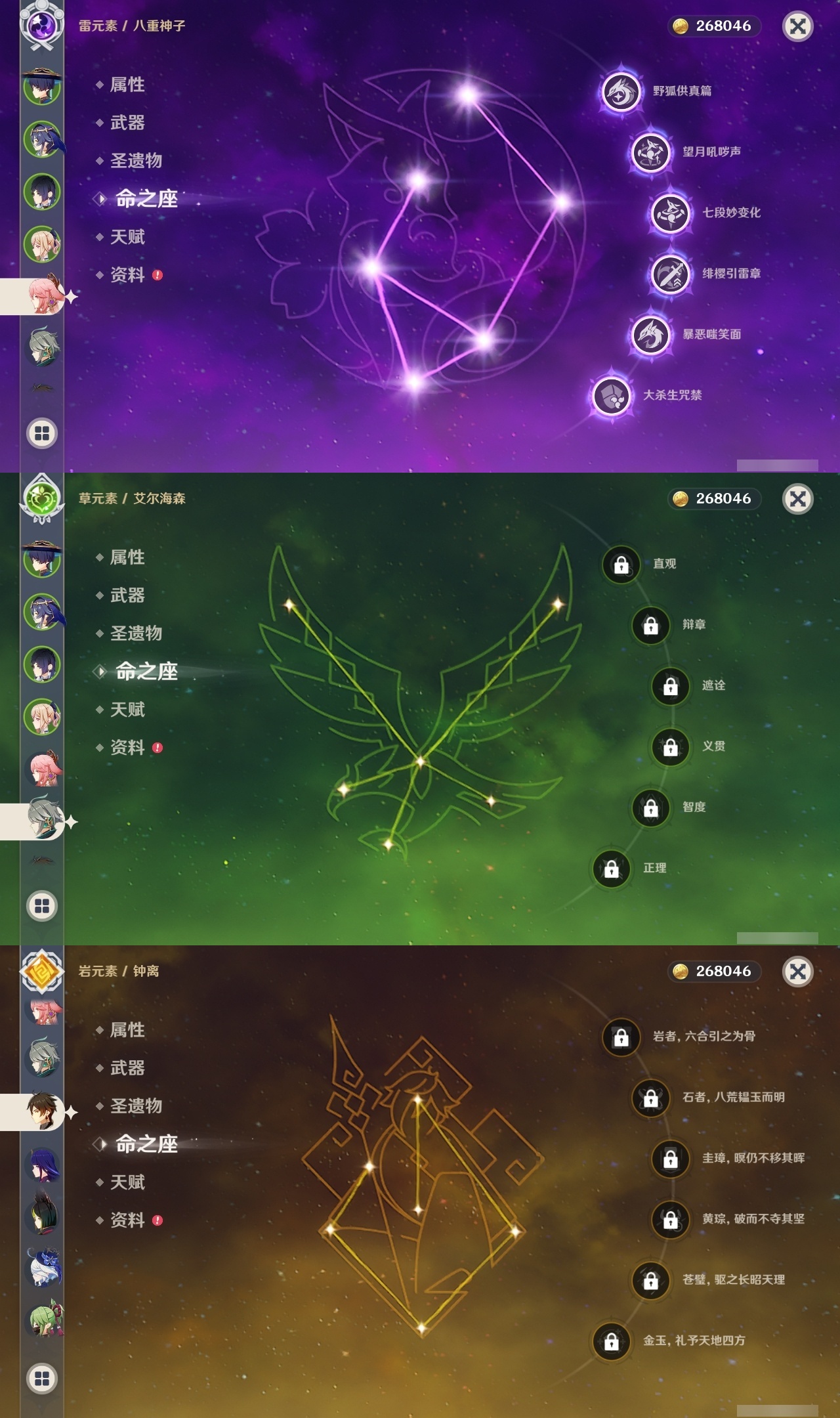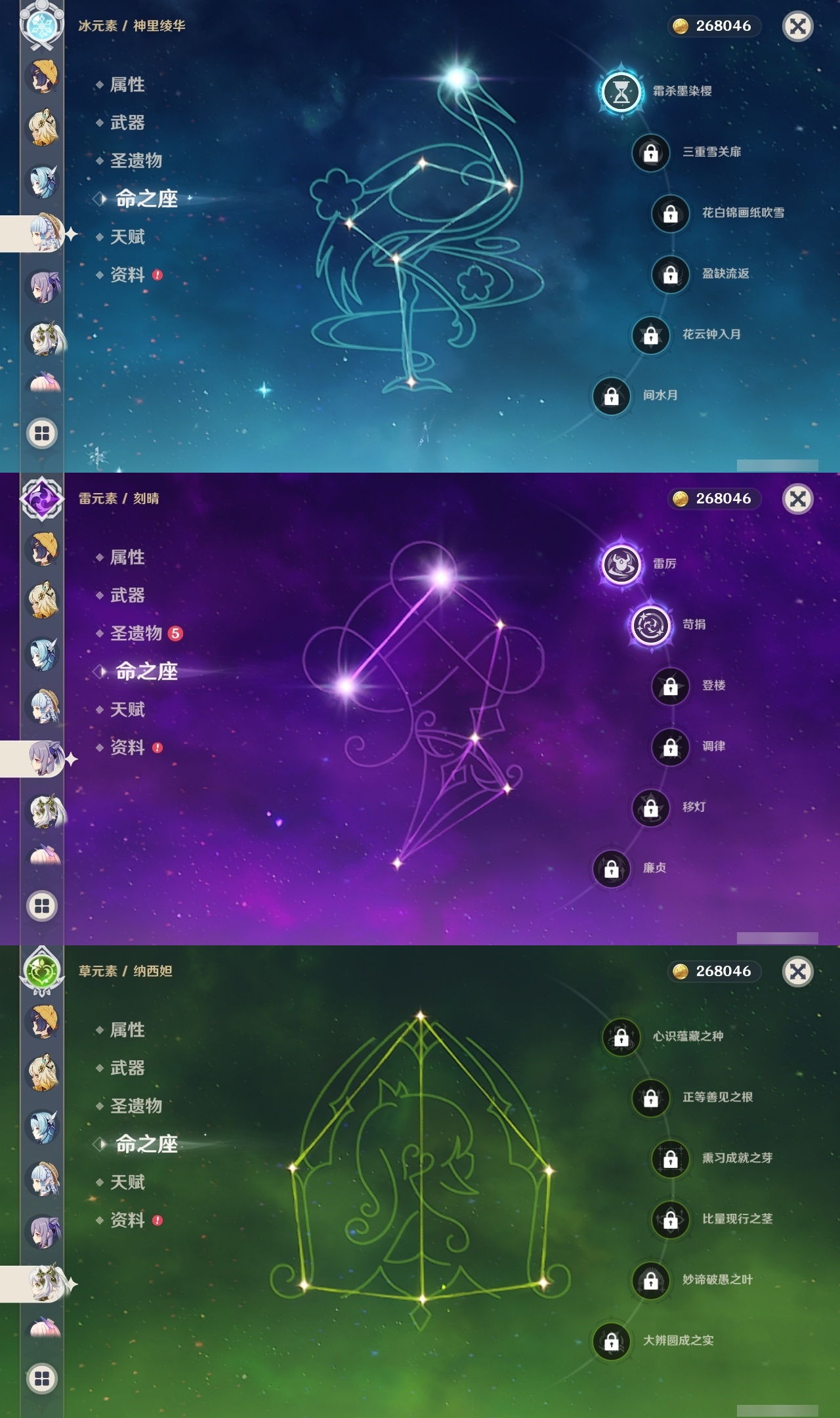 【原神】【lyys10979】冒险等级:57,五星数量:39,五星角色:八重神子 6命流浪者 6命雷电将军 4命莫娜 4命琴 4命迪卢克 3命刻晴 2命七七 2命提纳里 2命神里绫华 1命优菈 1命夜兰 1命珊瑚宫心海希诺宁宵宫钟离达达利亚梦见月瑞希神里绫人芙宁娜阿蕾奇诺纳西妲艾尔海森胡桃__五星武器:天空之脊 2精赤月之形图莱杜拉的回忆护摩之杖狼的末路松籁响起之时天空之傲天空之卷无工之剑雾切之回光薙草之稻光神乐之真意波乱月白经津赦罪__四星角色:班尼特 6命行秋 6命九条裟罗 6命香菱 6命鹿野院平藏 6命珐露珊 6命凝光 6命迪奥娜 6命砂糖 6命莱依拉 6命芭芭拉 6命云堇 6命早柚 6命托马 6命五郎 6命烟绯 6命重云 6命辛焱 6命诺艾尔 6命罗莎莉亚 6命菲谢尔 6命北斗 6命柯莱 5命久岐忍 3命瑶瑶 3命雷泽 3命多莉 2命蓝砚 2命夏洛蒂 2命卡齐娜 1命米卡 1命琳妮特 1命夏沃蕾 1命爱诺 1命埃洛伊绮良良嘉明带102抽
