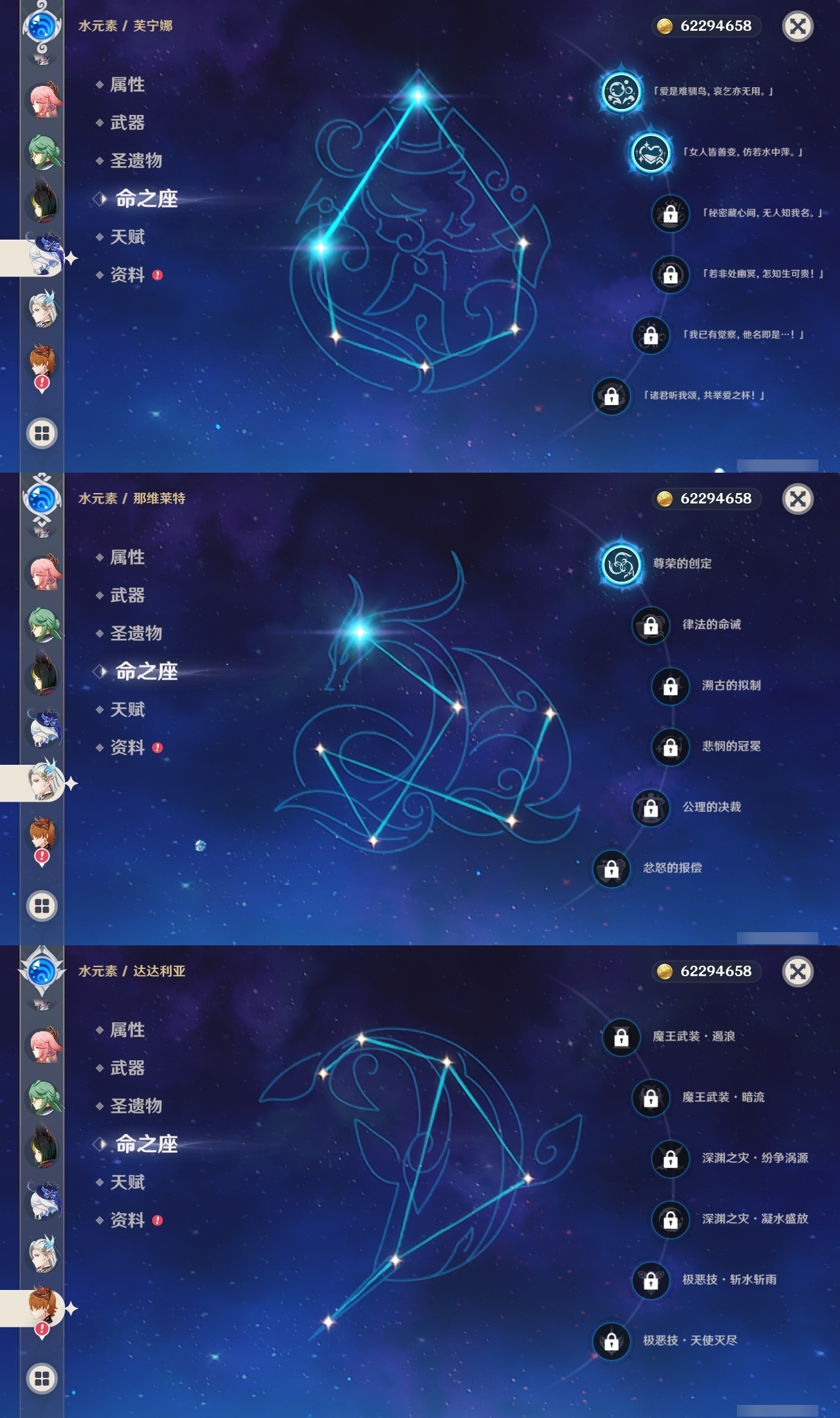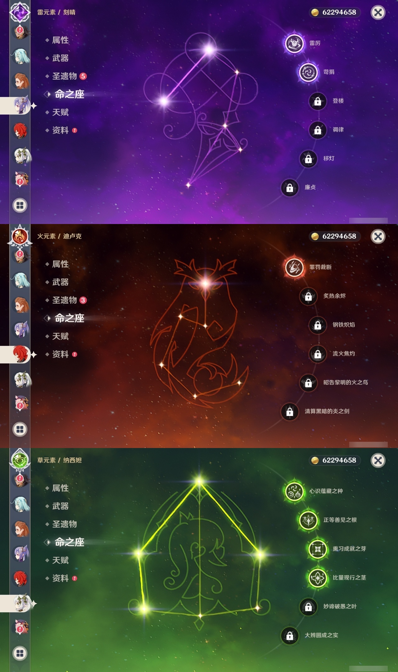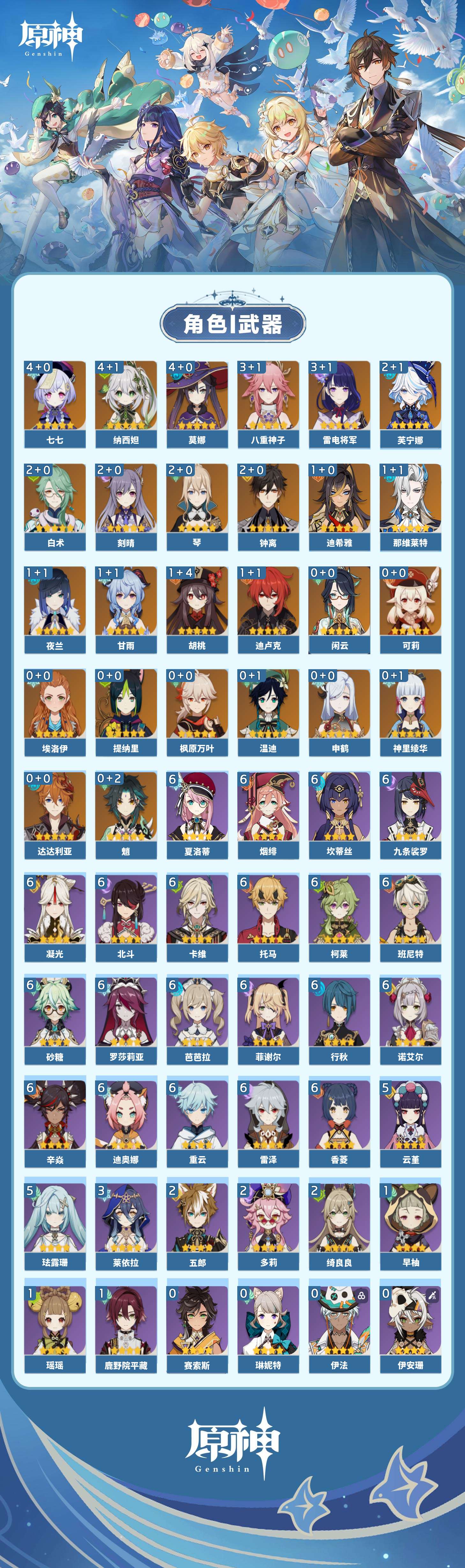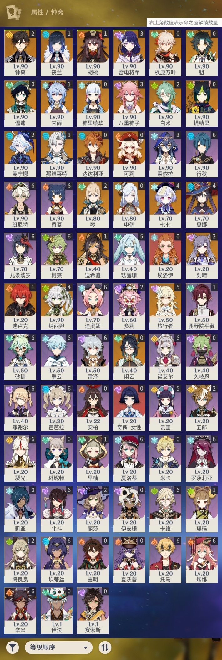 【原神】【lyys10972】冒险等级:60,五星数量:45,五星角色:莫娜 4命七七 4命纳西妲 4命雷电将军 3命八重神子 3命白术 2命芙宁娜 2命刻晴 2命琴 2命钟离 2命迪希雅 1命那维莱特 1命迪卢克 1命甘雨 1命胡桃 1命夜兰 1命神里绫华温迪达达利亚申鹤提纳里闲云枫原万叶魈可莉__五星武器:护摩之杖 4精和璞鸢 2精万世流涌大典静水流涌之辉阿莫斯之弓飞雷之弦振风鹰剑狼的末路磐岩结绿天空之傲天空之脊天空之卷雾切之回光薙草之稻光终末嗟叹之诗神乐之真意若水千夜浮梦__四星角色:班尼特 6命行秋 6命九条裟罗 6命香菱 6命凝光 6命迪奥娜 6命砂糖 6命坎蒂丝 6命柯莱 6命卡维 6命芭芭拉 6命托马 6命烟绯 6命重云 6命辛焱 6命诺艾尔 6命罗莎莉亚 6命雷泽 6命菲谢尔 6命北斗 6命夏洛蒂 6命珐露珊 5命云堇 5命莱依拉 3命绮良良 2命多莉 2命五郎 2命鹿野院平藏 1命瑶瑶 1命早柚 1命埃洛伊奇偶·女性久岐忍米卡琳妮特夏沃蕾嘉明伊法伊安珊赛索斯