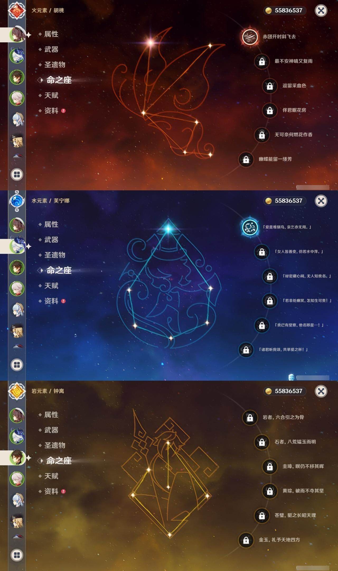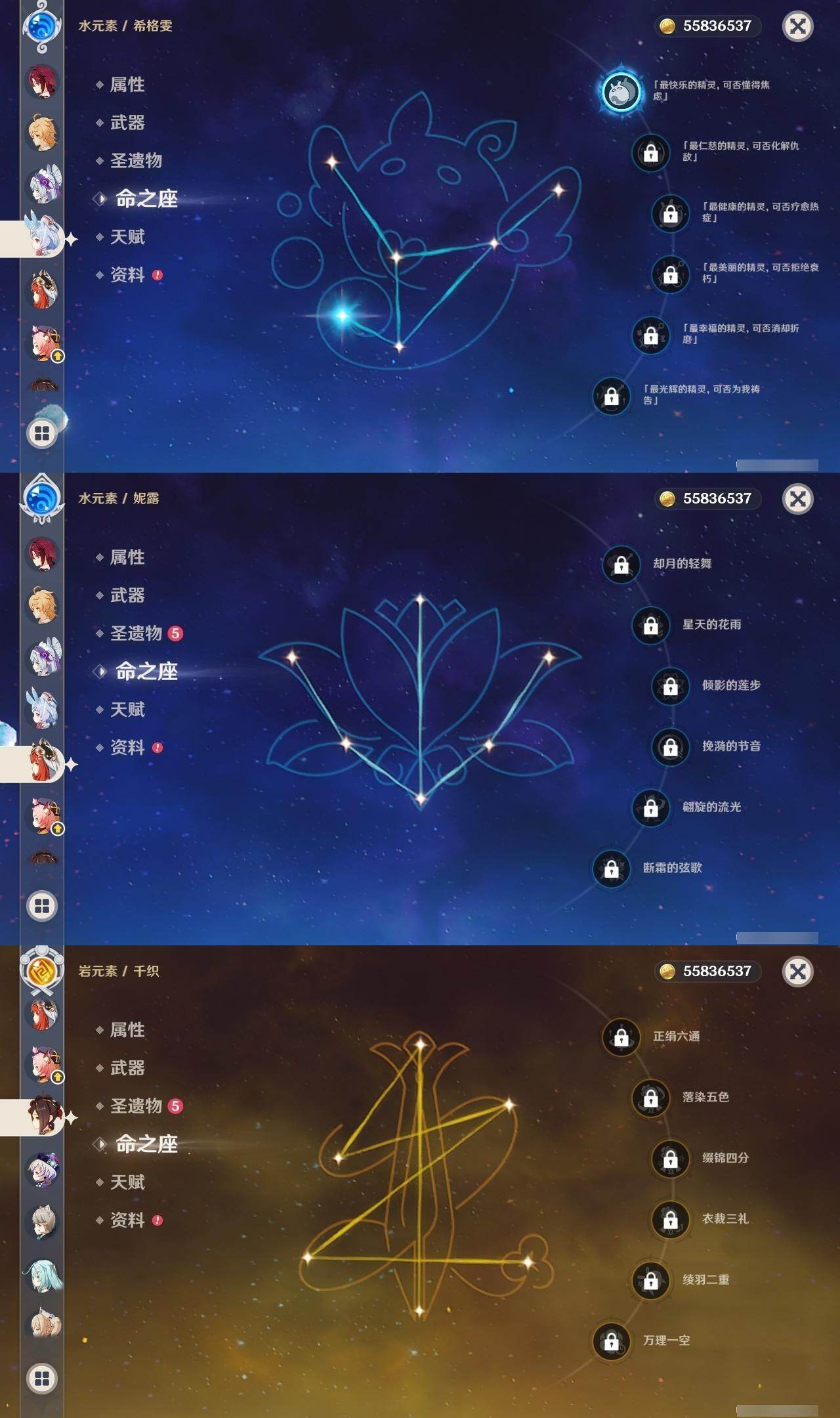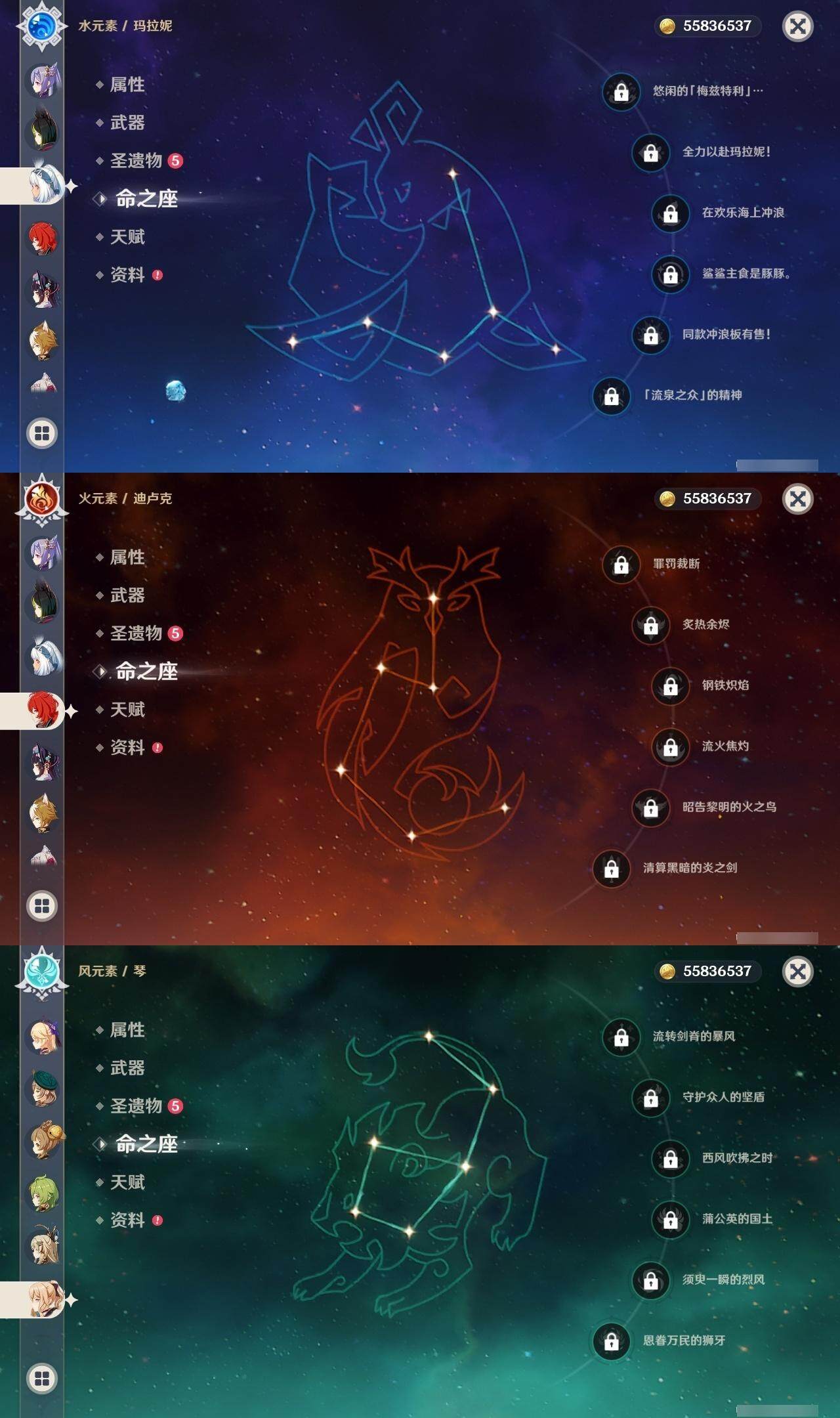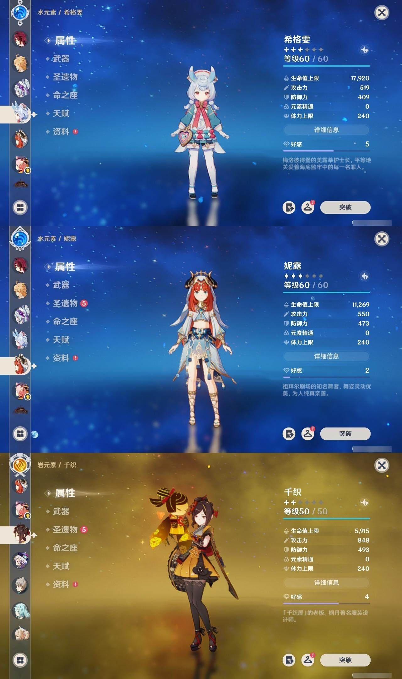 [16047857]邮箱: 未绑定 总黄数: 42 冒险等级: 59 2命金色角色: 二命提纳里 1命金色角色: 一命七七一命刻晴一命莫娜一命胡桃一命迪希雅一命芙宁娜一命希格雯 0命金色角色: 迪卢克温迪枫原万叶神里绫华钟离琴甘雨珊瑚宫心海妮露流浪者娜维娅千织玛拉妮梦见月瑞希 拥有武器: 狼的末路天空之翼四风原典天空之傲风鹰剑护摩之杖若水静水流涌之辉裁断 3精武器: 四风原典 1精武器: 狼的末路天空之翼天空之傲风鹰剑护摩之杖若水静水流涌之辉裁断