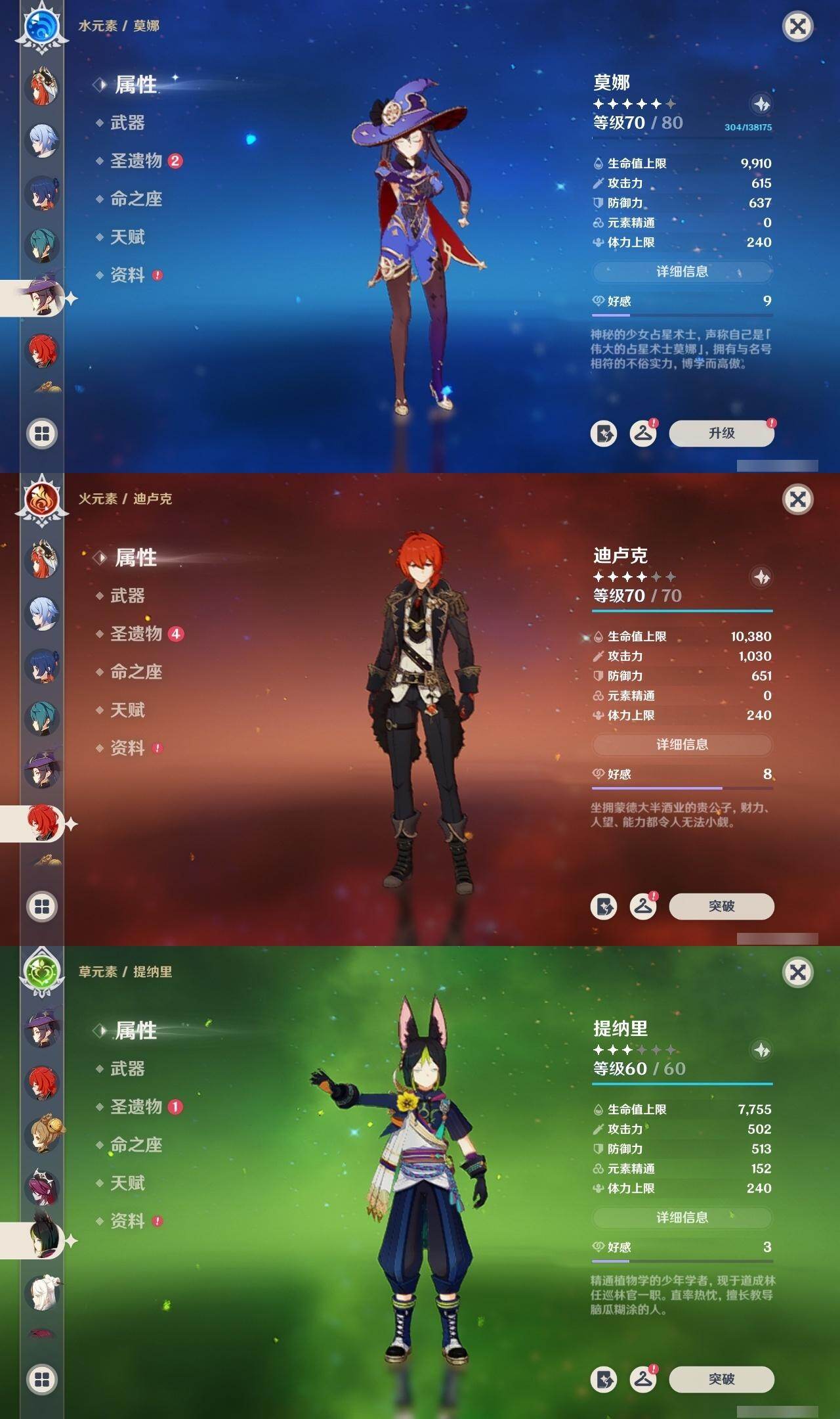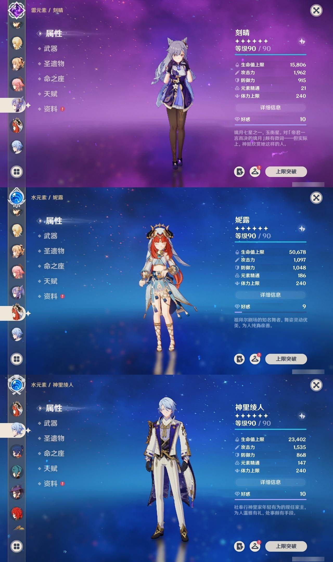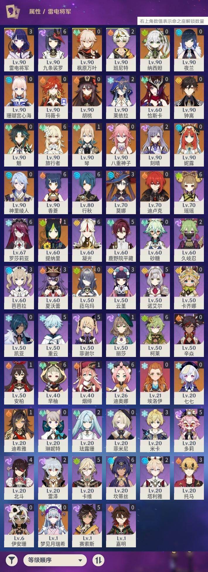 59级/41黄/女主/22个五星角色/8个五星武器 1命迪希雅0命纳西妲0命妮露1命提纳里0命夜兰0命神里绫人0命八重神子3命雷电将军0命枫原万叶0命钟离0命胡桃0命魈0命珊瑚宫心海2命刻晴0命七七1命琴3命莫娜0命迪卢克0命恰斯卡0命玛薇卡0命梦见月瑞希0命菈乌玛精1波乱月白经津精1薙草之稻光精1护摩之杖精1和璞鸢精1天空之刃精1风鹰剑