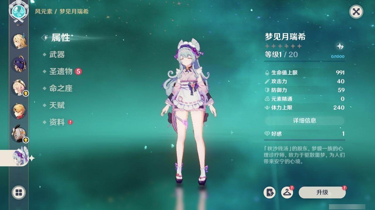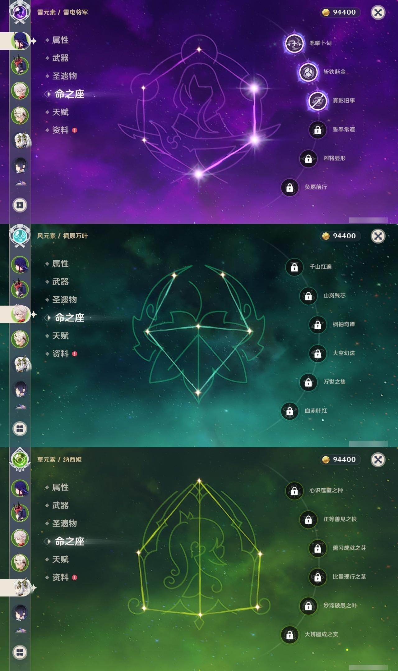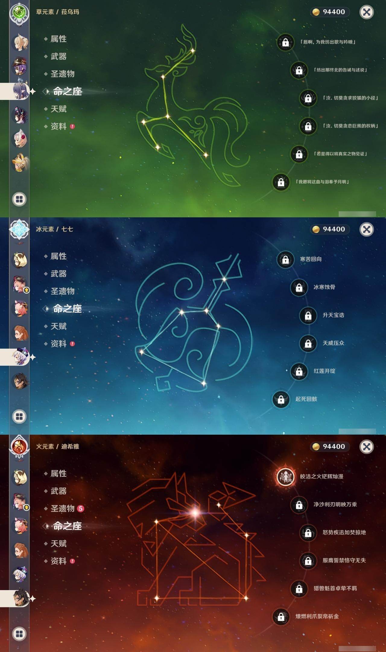 59级/41黄/女主/22个五星角色/8个五星武器 1命迪希雅0命纳西妲0命妮露1命提纳里0命夜兰0命神里绫人0命八重神子3命雷电将军0命枫原万叶0命钟离0命胡桃0命魈0命珊瑚宫心海2命刻晴0命七七1命琴3命莫娜0命迪卢克0命恰斯卡0命玛薇卡0命梦见月瑞希0命菈乌玛精1波乱月白经津精1薙草之稻光精1护摩之杖精1和璞鸢精1天空之刃精1风鹰剑