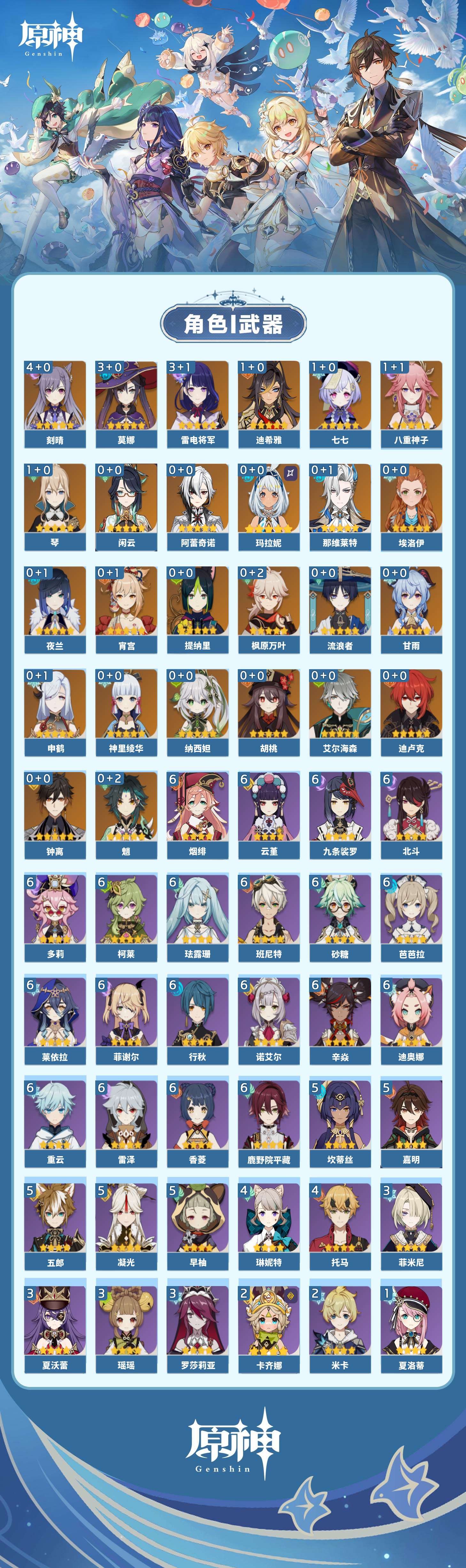 【原神】【lyys11037】冒险等级:60,五星数量:42,五星角色:刻晴 4命雷电将军 3命莫娜 3命迪希雅 1命七七 1命琴 1命八重神子 1命玛拉妮神里绫华宵宫钟离申鹤那维莱特夜兰提纳里闲云阿蕾奇诺纳西妲艾尔海森流浪者迪卢克枫原万叶甘雨魈胡桃__五星武器:苍古自由之誓 2精和璞鸢 2精万世流涌大典不灭月华飞雷之弦振风鹰剑松籁响起之时天空之脊天空之刃天空之翼薙草之稻光斫峰之刃冬极白星息灾神乐之真意若水__四星角色:班尼特 6命行秋 6命九条裟罗 6命香菱 6命鹿野院平藏 6命珐露珊 6命迪奥娜 6命砂糖 6命莱依拉 6命多莉 6命柯莱 6命芭芭拉 6命云堇 6命烟绯 6命重云 6命辛焱 6命诺艾尔 6命雷泽 6命菲谢尔 6命北斗 6命凝光 5命坎蒂丝 5命早柚 5命五郎 5命嘉明 5命托马 4命琳妮特 4命瑶瑶 3命罗莎莉亚 3命菲米尼 3命夏沃蕾 3命卡齐娜 2命米卡 2命久岐忍 1命绮良良 1命夏洛蒂 1命埃洛伊卡维塔利雅