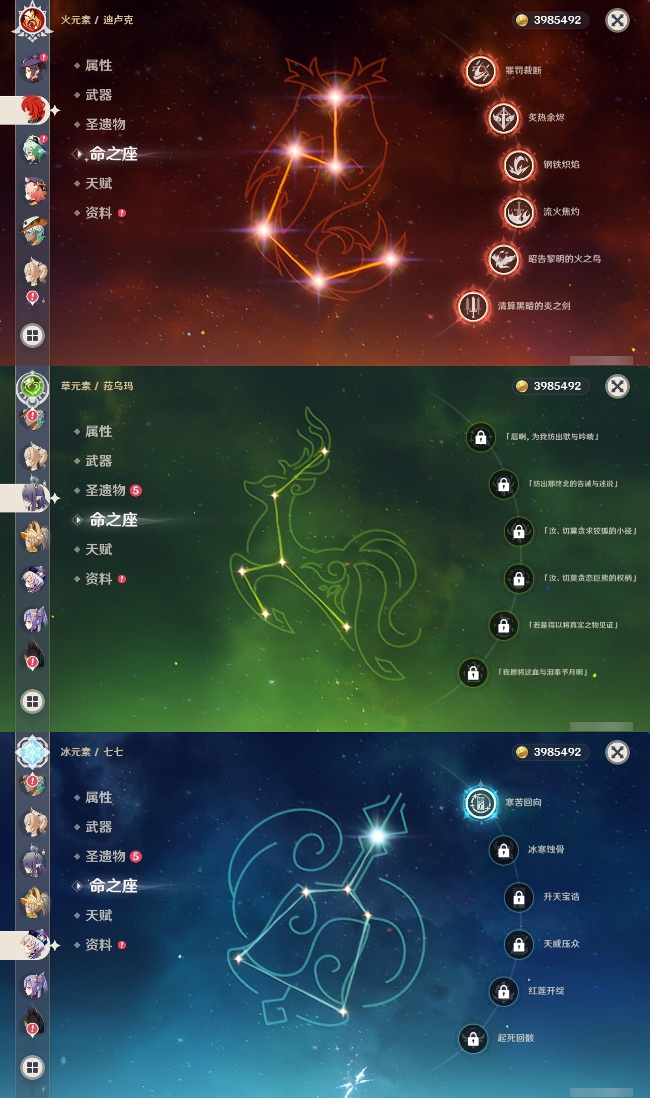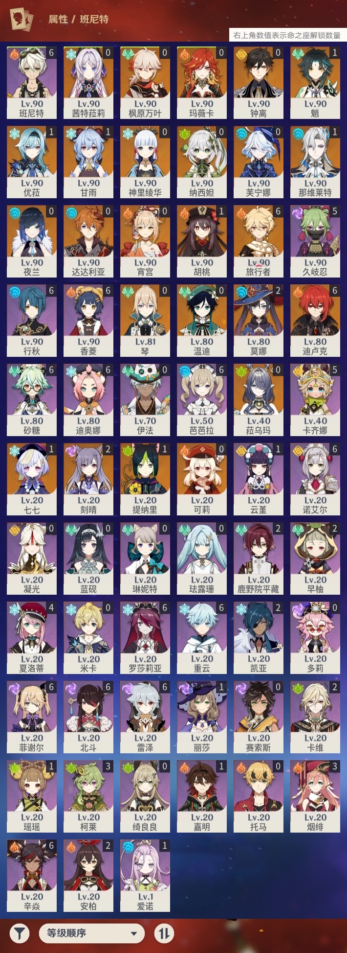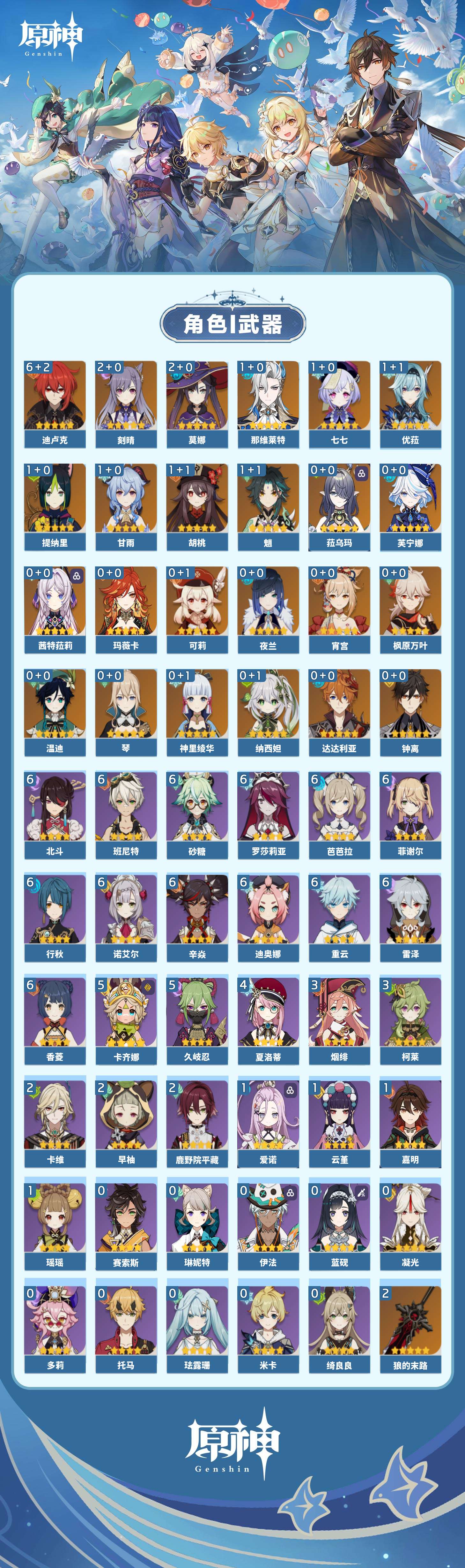 【原神】【lyys11041】冒险等级:58,五星数量:36,五星角色:迪卢克 6命刻晴 2命莫娜 2命那维莱特 1命甘雨 1命魈 1命胡桃 1命七七 1命优菈 1命提纳里 1命琴神里绫华温迪玛薇卡茜特菈莉宵宫钟离达达利亚夜兰芙宁娜纳西妲菈乌玛枫原万叶可莉__五星武器:狼的末路 2精风鹰剑和璞鸢护摩之杖四风原典松籁响起之时天空之傲天空之卷天空之翼无工之剑雾切之回光千夜浮梦__四星角色:班尼特 6命行秋 6命香菱 6命迪奥娜 6命砂糖 6命芭芭拉 6命重云 6命辛焱 6命诺艾尔 6命罗莎莉亚 6命雷泽 6命菲谢尔 6命北斗 6命卡齐娜 5命久岐忍 5命夏洛蒂 4命柯莱 3命烟绯 3命鹿野院平藏 2命卡维 2命早柚 2命瑶瑶 1命云堇 1命嘉明 1命爱诺 1命珐露珊凝光绮良良米卡多莉蓝砚托马琳妮特伊法赛索斯
