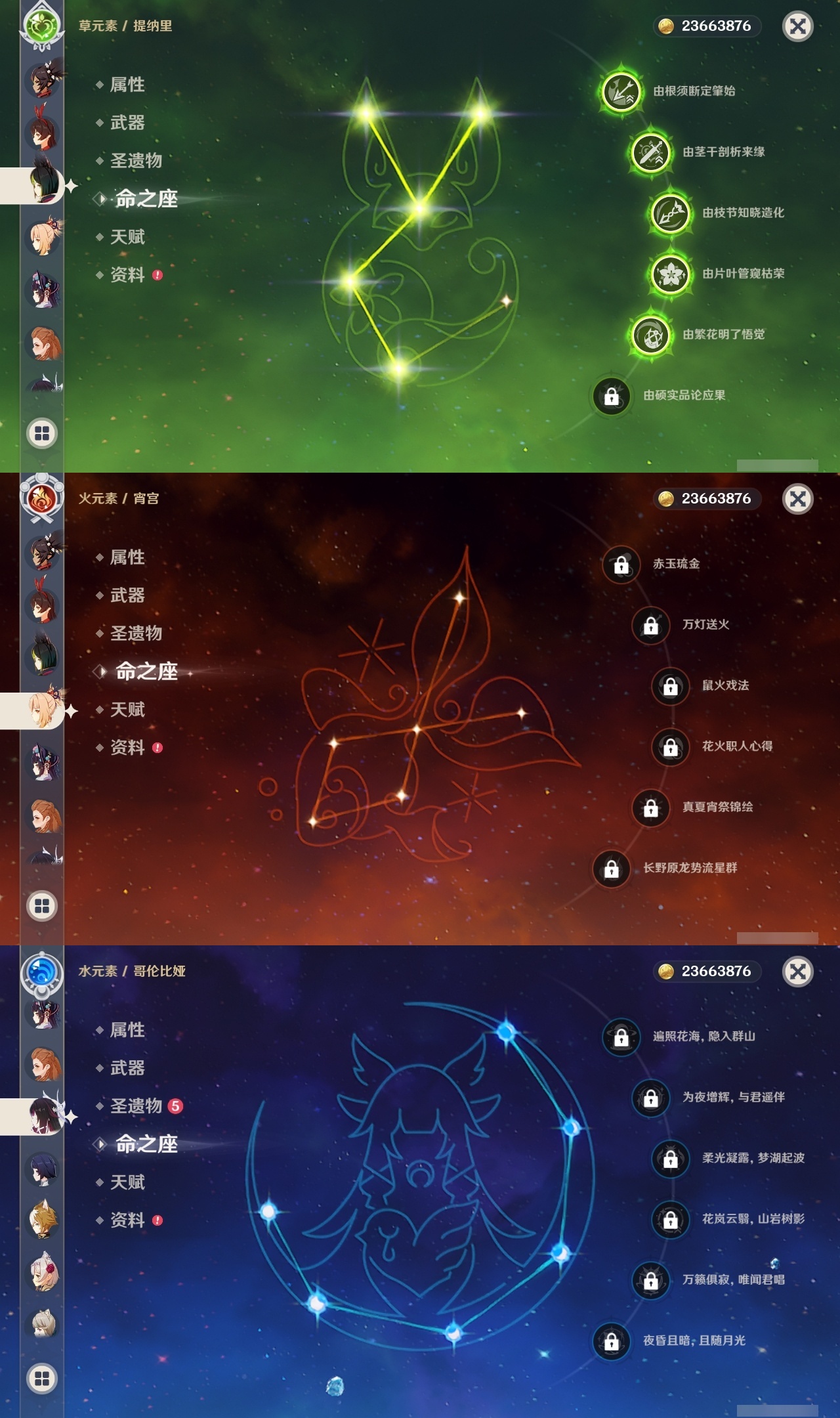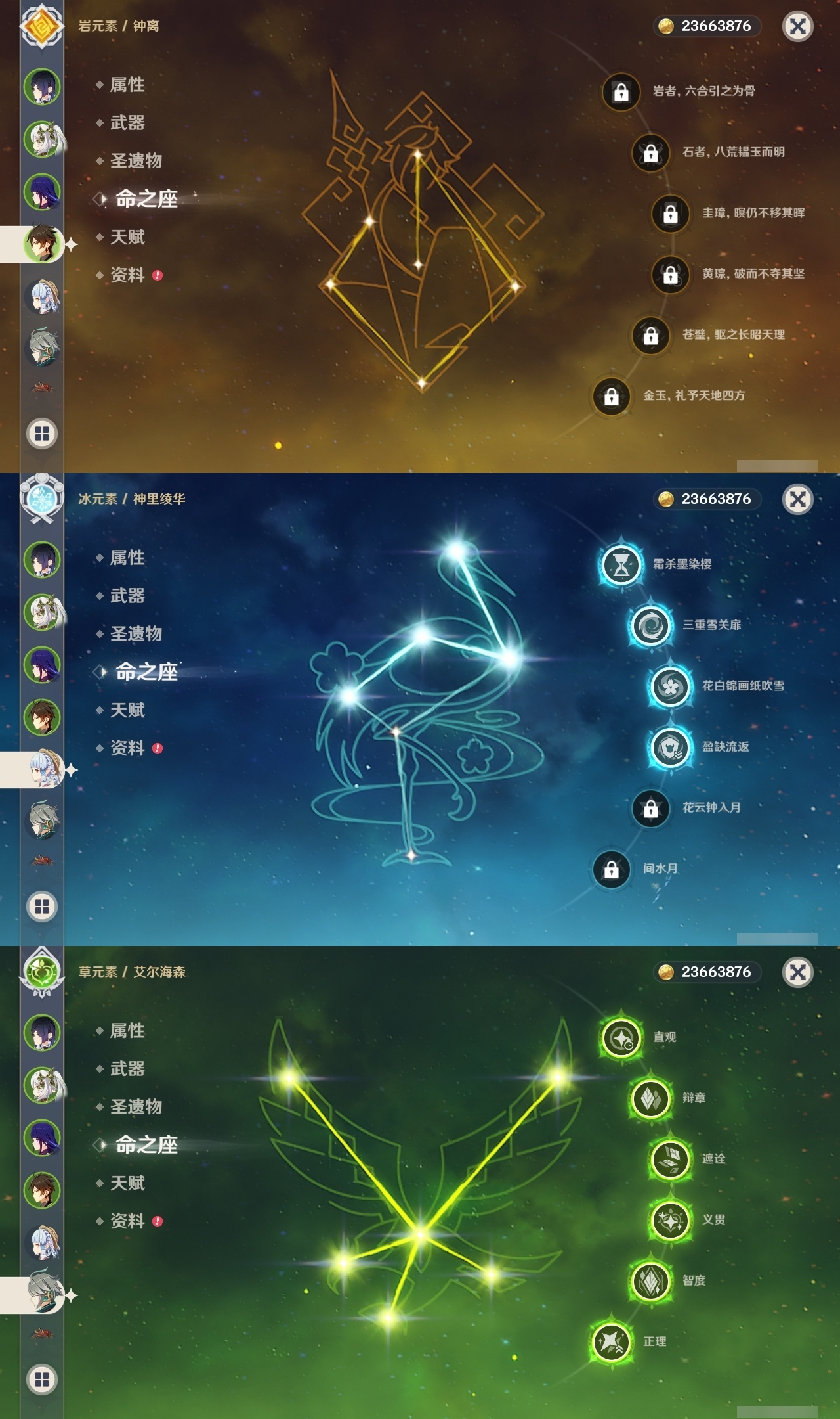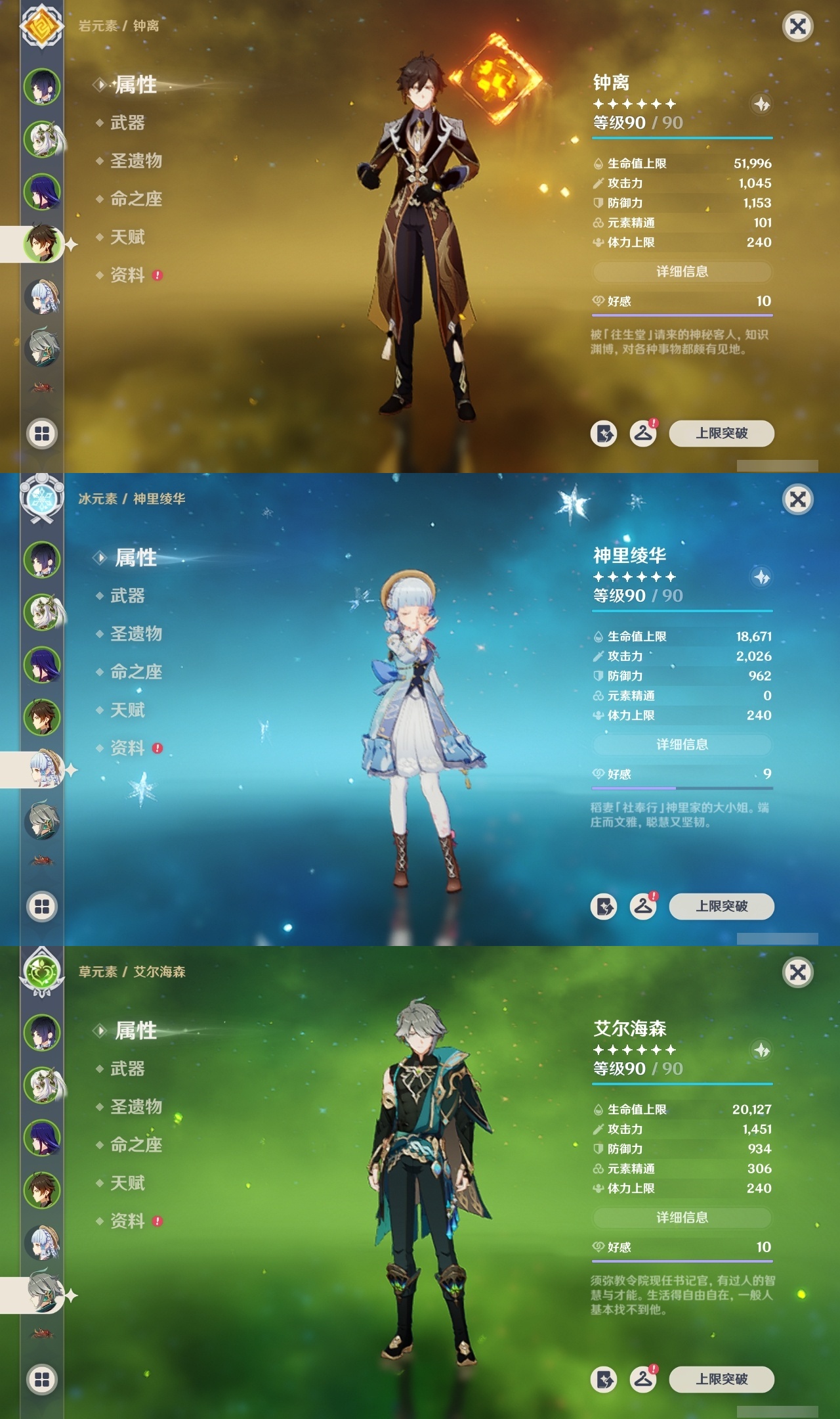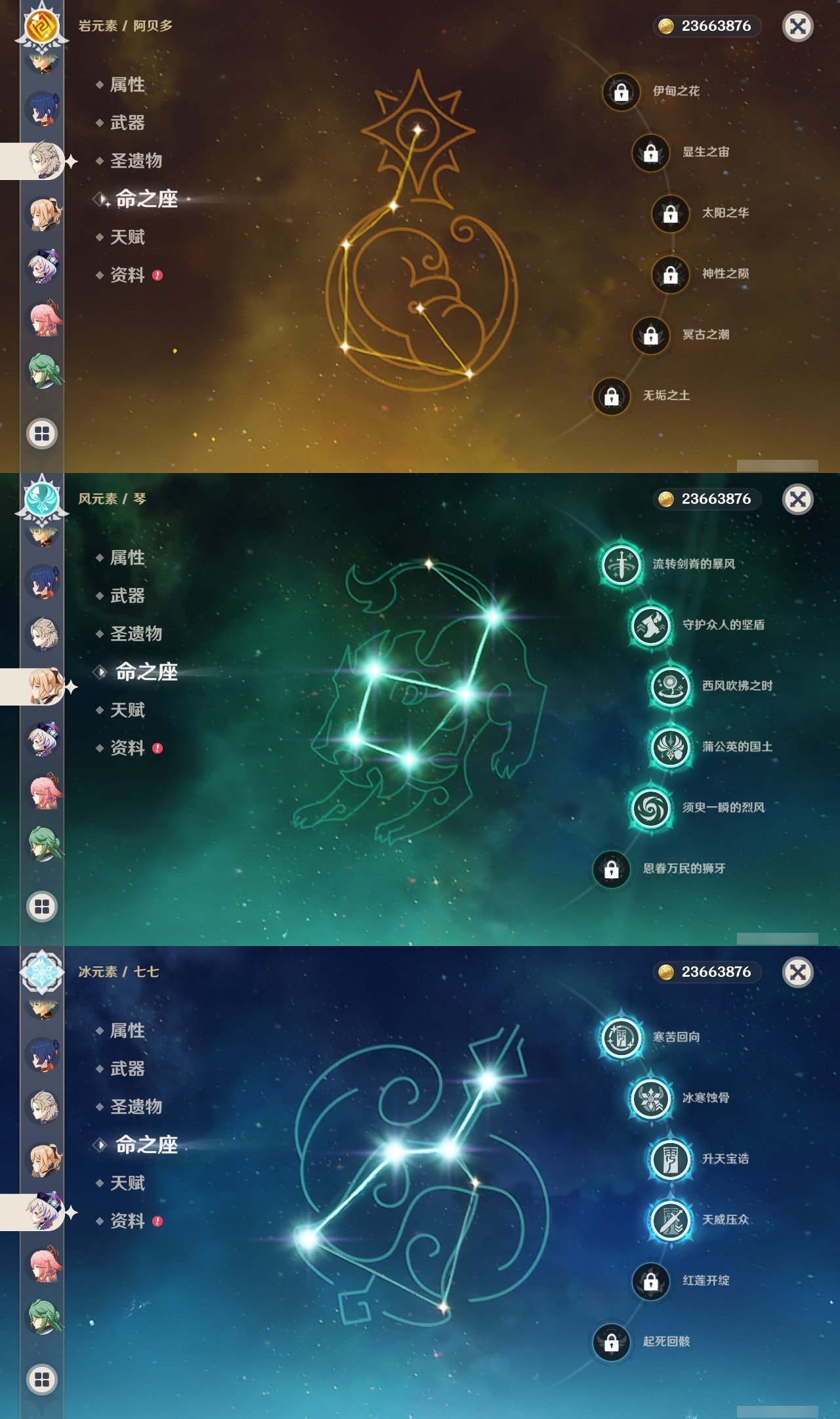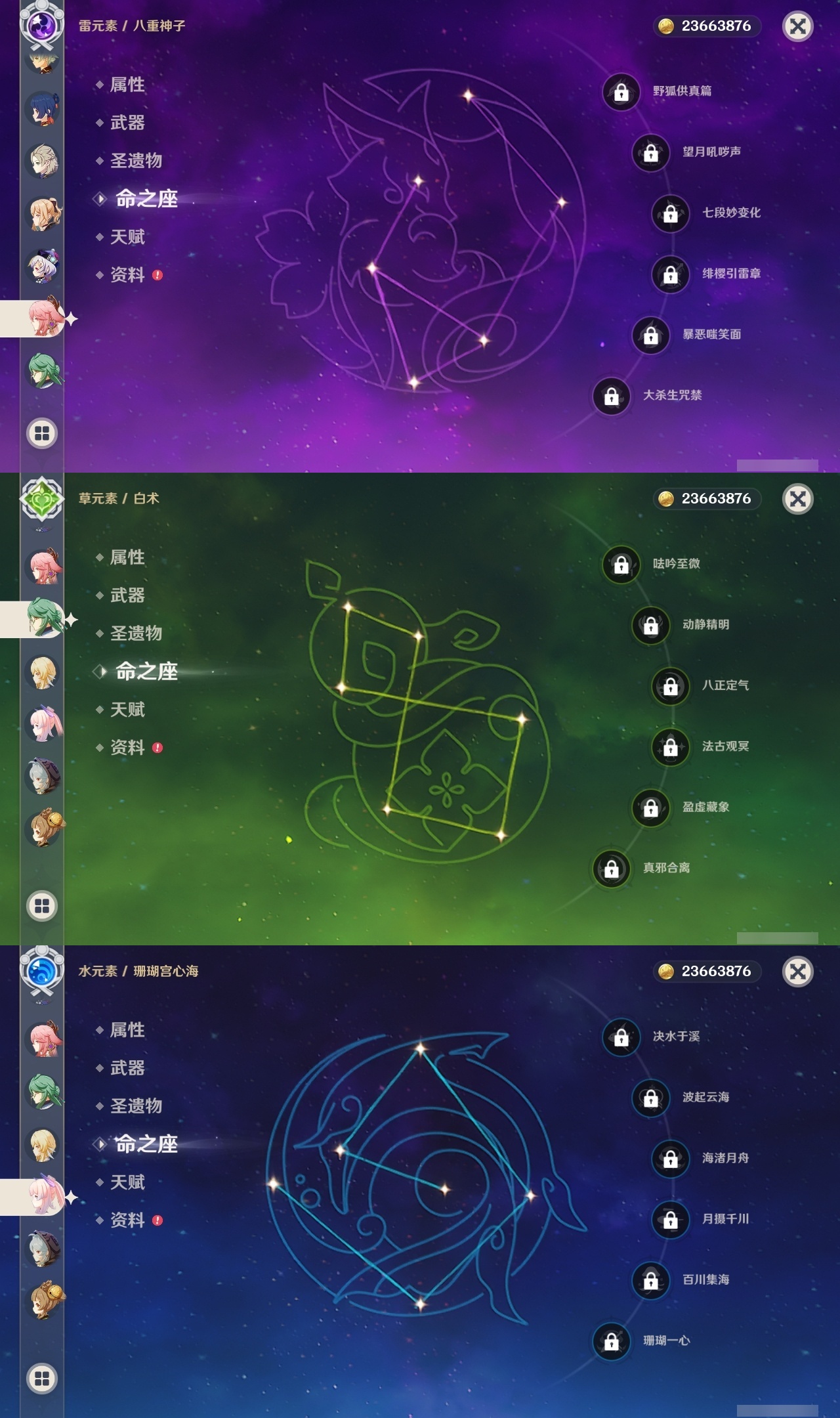 【原神】满命,冒险等级:60,五星数量:55,五星角色:达达利亚 6命刻晴 6命雷电将军 6命莫娜 6命夜兰 6命艾尔海森 6命琴 5命提纳里 5命迪卢克 4命七七 4命神里绫华 4命申鹤 2命妮露 2命纳西妲 2命那维莱特 1命魈 1命胡桃 1命珊瑚宫心海白术温迪宵宫钟离八重神子神里绫人阿贝多芙宁娜阿蕾奇诺哥伦比娅枫原万叶甘雨__五星武器:天空之脊 3精天空之翼 3精若水 3精阿莫斯之弓 2精和璞鸢 2精护摩之杖 2精冬极白星 2精万世流涌大典裁叶萃光苍古自由之誓尘世之锁飞雷之弦振狼的末路四风原典天空之傲天空之卷天空之刃雾切之回光薙草之稻光终末嗟叹之诗息灾圣显之钥千夜浮梦__四星角色:班尼特 6命行秋 6命九条裟罗 6命香菱 6命久岐忍 6命珐露珊 6命凝光 6命迪奥娜 6命砂糖 6命绮良良 6命瑶瑶 6命莱依拉 6命米卡 6命多莉 6命柯莱 6命芭芭拉 6命云堇 6命早柚 6命烟绯 6命重云 6命辛焱 6命诺艾尔 6命罗莎莉亚 6命雷泽 6命菲谢尔 6命北斗 6命托马 4命嘉明 4命鹿野院平藏 3命坎蒂丝 3命卡齐娜 2命卡维 2命菲米尼 2命埃洛伊奇偶·女性蓝砚五郎琳妮特夏洛蒂夏沃蕾伊安珊