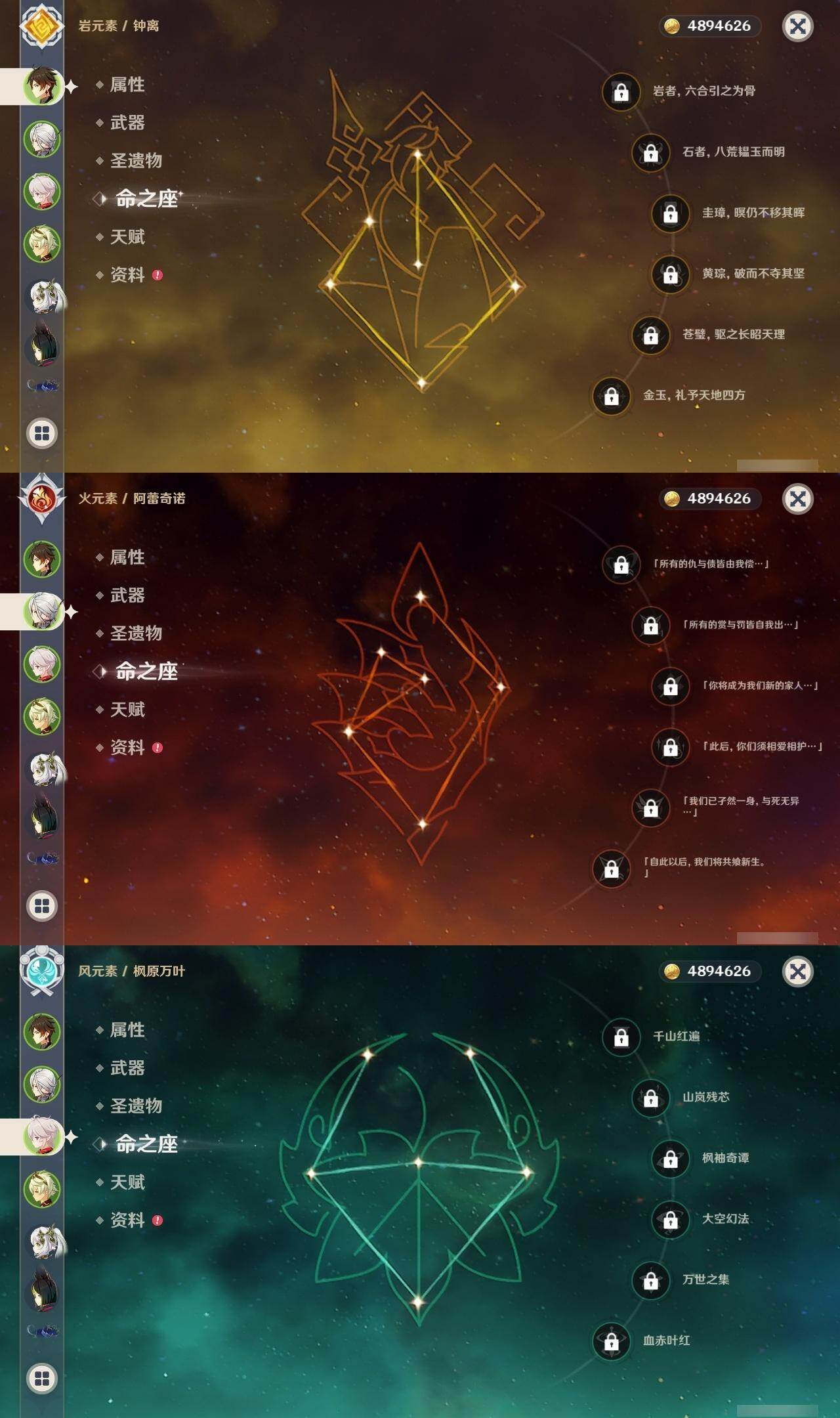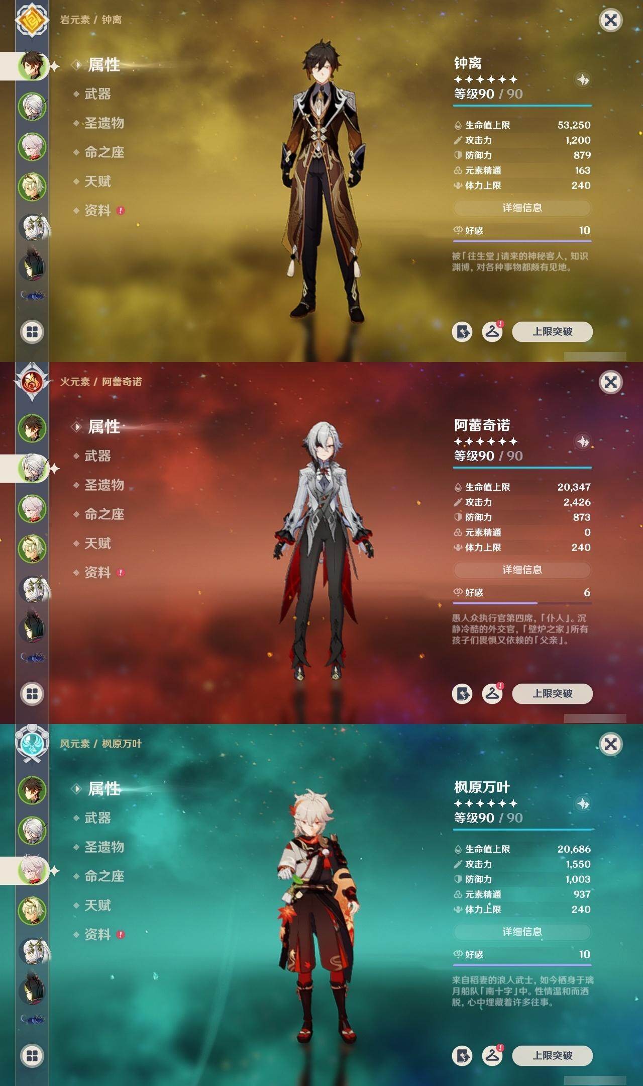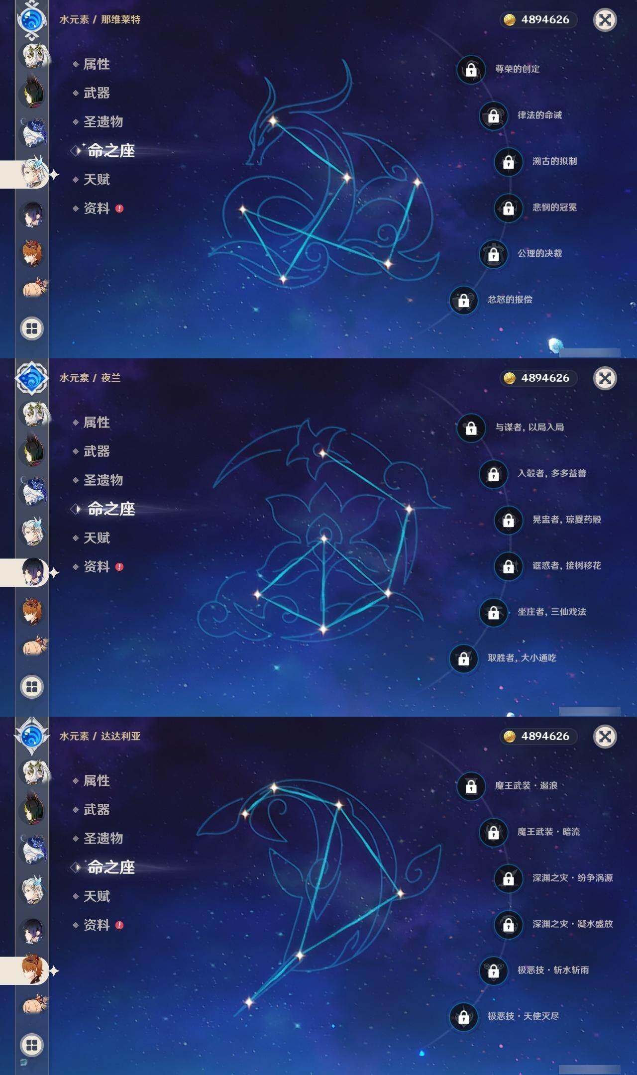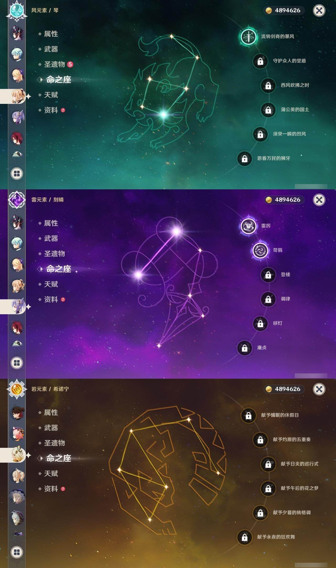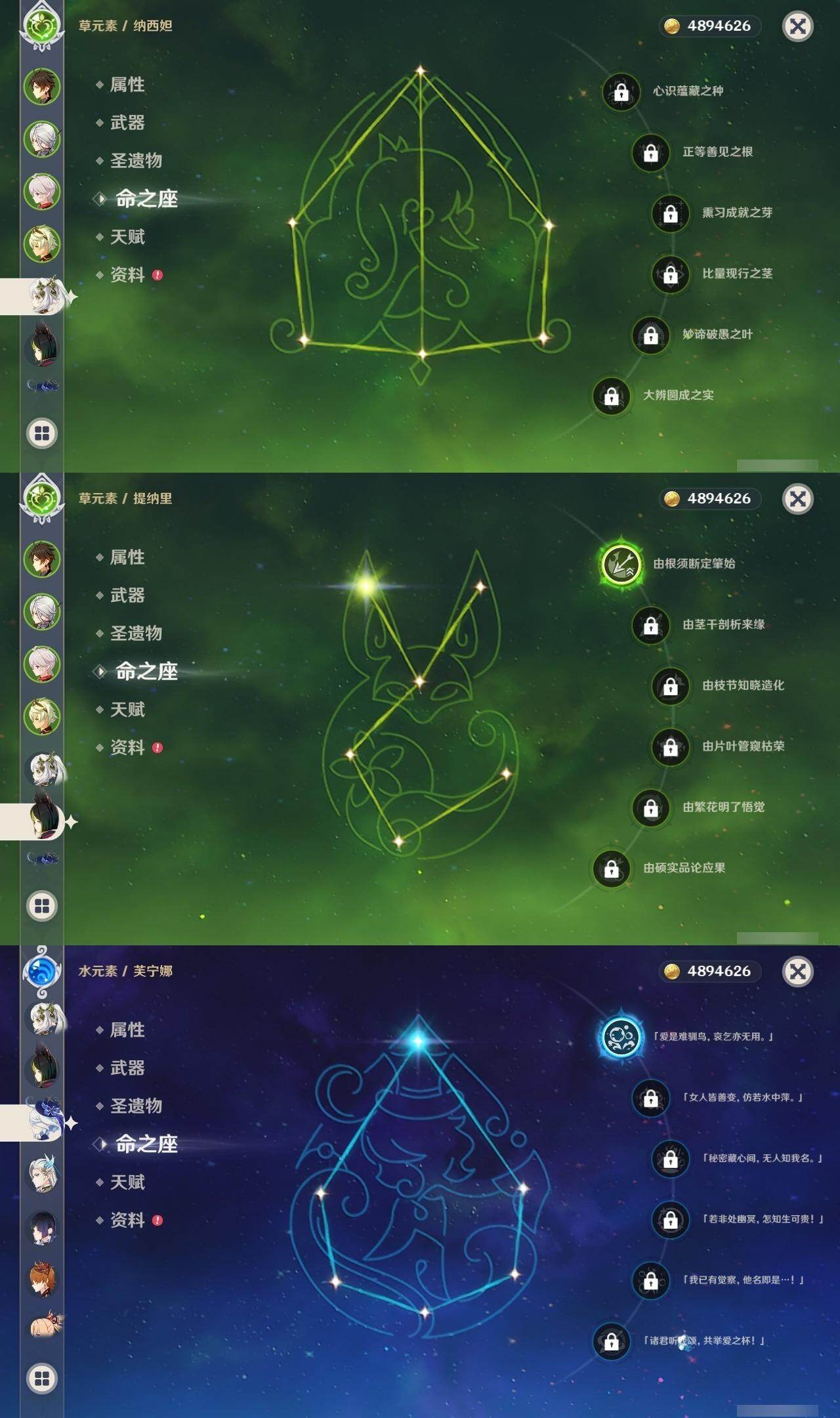 59级/32黄/女主/18个五星角色/6个五星武器 0命阿蕾奇诺1命芙宁娜0命那维莱特0命迪希雅0命纳西妲1命提纳里0命夜兰0命枫原万叶0命钟离0命胡桃0命宵宫0命达达利亚2命刻晴0命七七1命琴1命莫娜1命迪卢克0命希诺宁精1神乐之真意精1冬极白星精1雾切之回光精2和璞鸢精1天空之脊精1天空之翼