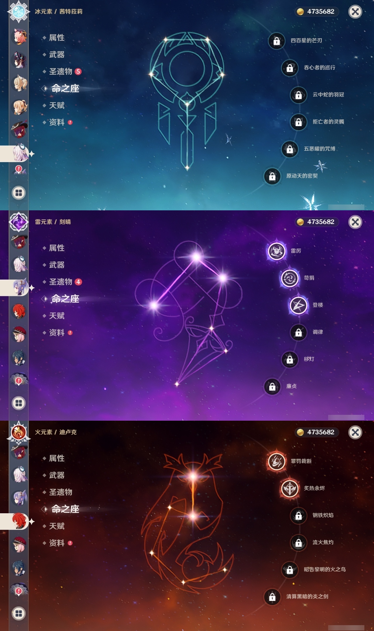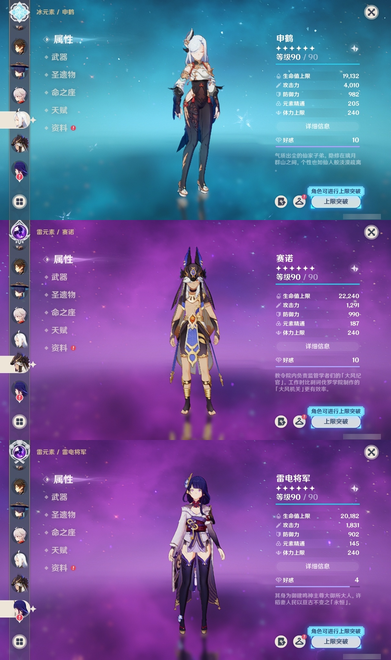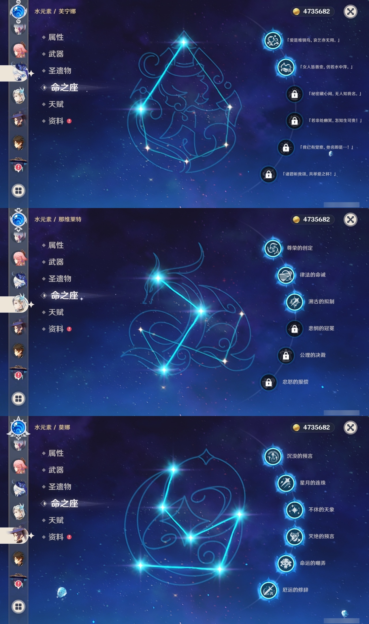 【原神】满命,冒险等级:59,五星数量:48,五星角色:莫娜 6命神里绫华 6命八重神子 6命那维莱特 3命刻晴 3命琴 3命提纳里 3命赛诺 3命迪希雅 2命芙宁娜 2命迪卢克 2命雷电将军 2命七七 2命夜兰 2命纳西妲 2命流浪者 2命枫原万叶 1命申鹤 1命珊瑚宫心海希诺宁白术温迪恰斯卡茜特菈莉优菈钟离阿蕾奇诺__五星武器:碧落之珑 2精息灾 2精赤沙之杖 2精苇海信标万世流涌大典静水流涌之辉苍古自由之誓和璞鸢护摩之杖四风原典天空之傲天空之脊天空之卷天空之刃天空之翼雾切之回光薙草之稻光神乐之真意波乱月白经津若水千夜浮梦__四星角色:班尼特 6命九条裟罗 6命香菱 6命久岐忍 6命鹿野院平藏 6命珐露珊 6命迪奥娜 6命砂糖 6命绮良良 6命瑶瑶 6命莱依拉 6命米卡 6命坎蒂丝 6命多莉 6命柯莱 6命芭芭拉 6命云堇 6命托马 6命烟绯 6命重云 6命罗莎莉亚 6命菲谢尔 6命北斗 6命琳妮特 6命夏洛蒂 6命夏沃蕾 6命行秋 5命诺艾尔 5命凝光 4命早柚 4命卡维 3命欧洛伦 3命辛焱 3命雷泽 3命卡齐娜 2命五郎 2命蓝砚 1命菲米尼嘉明伊法赛索斯