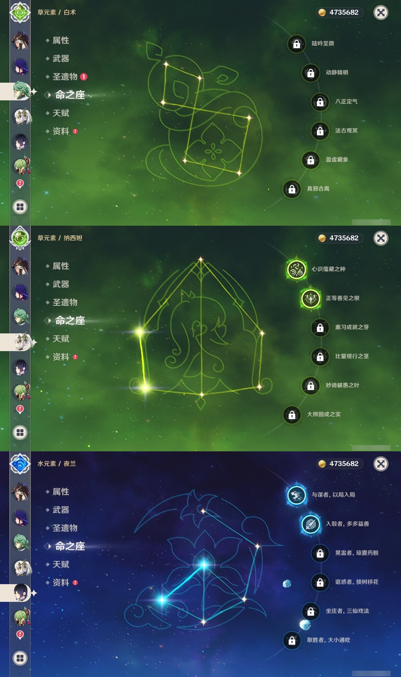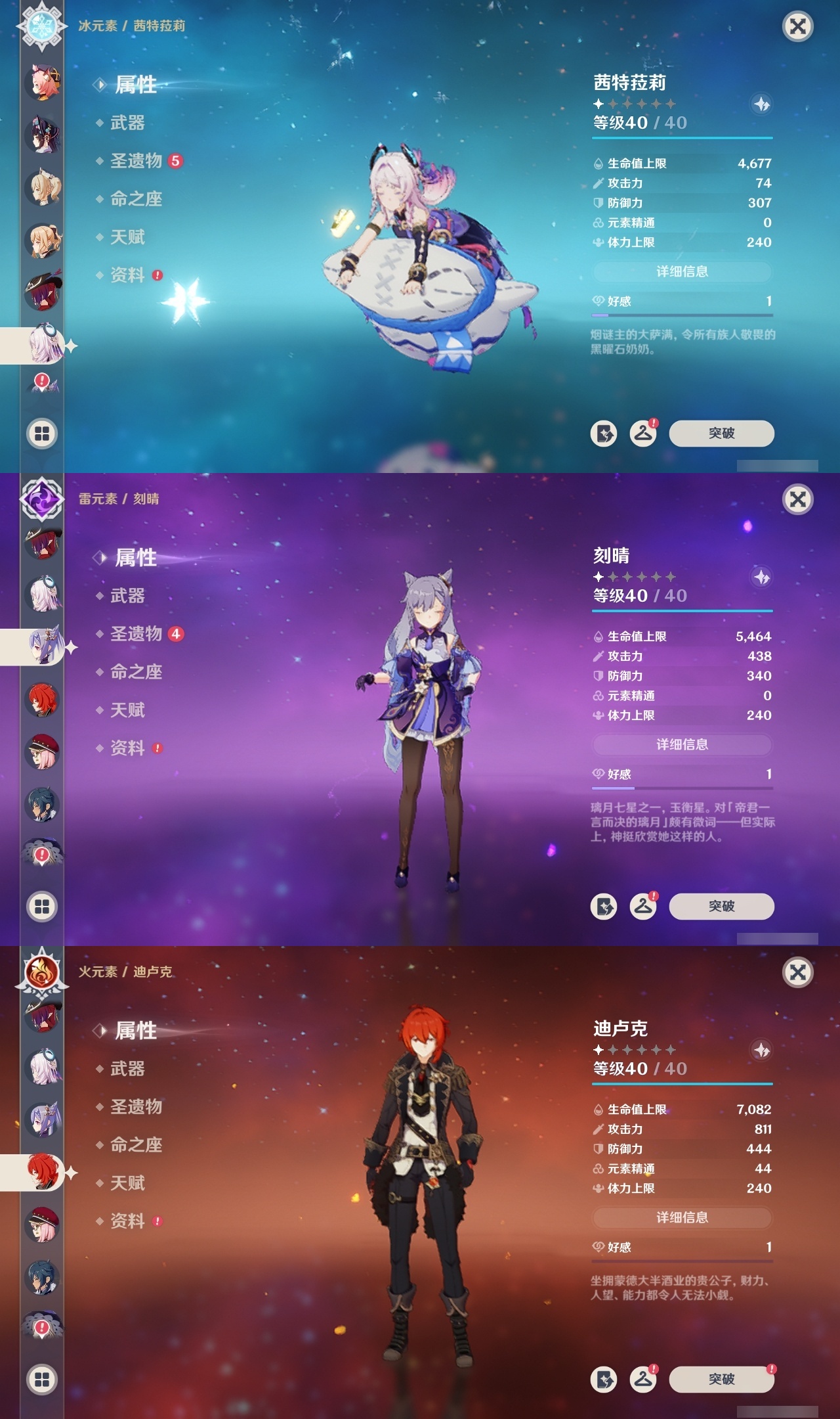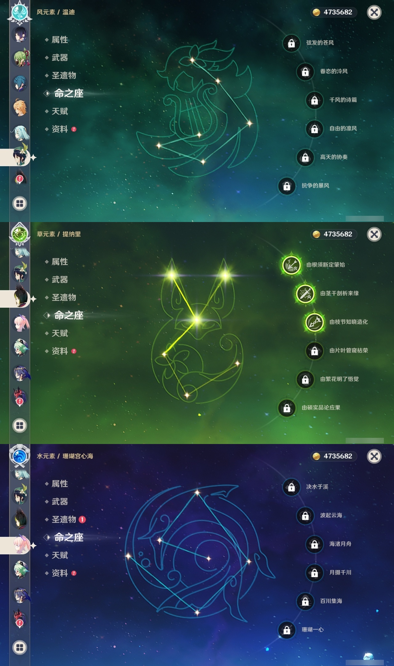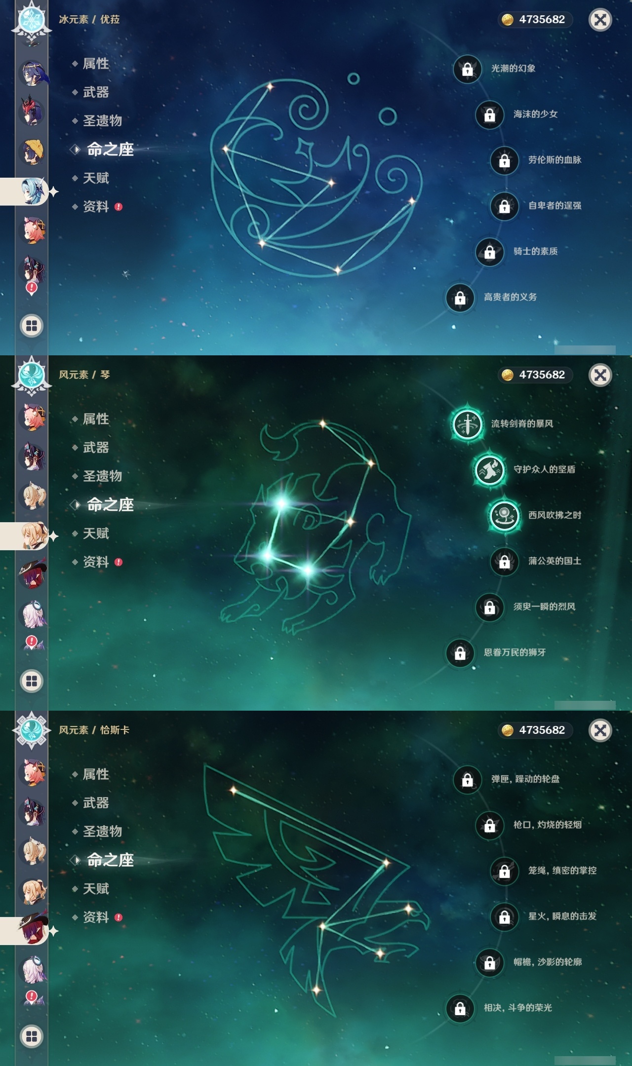 【原神】满命,冒险等级:59,五星数量:48,五星角色:莫娜 6命神里绫华 6命八重神子 6命那维莱特 3命刻晴 3命琴 3命提纳里 3命赛诺 3命迪希雅 2命芙宁娜 2命迪卢克 2命雷电将军 2命七七 2命夜兰 2命纳西妲 2命流浪者 2命枫原万叶 1命申鹤 1命珊瑚宫心海希诺宁白术温迪恰斯卡茜特菈莉优菈钟离阿蕾奇诺__五星武器:碧落之珑 2精息灾 2精赤沙之杖 2精苇海信标万世流涌大典静水流涌之辉苍古自由之誓和璞鸢护摩之杖四风原典天空之傲天空之脊天空之卷天空之刃天空之翼雾切之回光薙草之稻光神乐之真意波乱月白经津若水千夜浮梦__四星角色:班尼特 6命九条裟罗 6命香菱 6命久岐忍 6命鹿野院平藏 6命珐露珊 6命迪奥娜 6命砂糖 6命绮良良 6命瑶瑶 6命莱依拉 6命米卡 6命坎蒂丝 6命多莉 6命柯莱 6命芭芭拉 6命云堇 6命托马 6命烟绯 6命重云 6命罗莎莉亚 6命菲谢尔 6命北斗 6命琳妮特 6命夏洛蒂 6命夏沃蕾 6命行秋 5命诺艾尔 5命凝光 4命早柚 4命卡维 3命欧洛伦 3命辛焱 3命雷泽 3命卡齐娜 2命五郎 2命蓝砚 1命菲米尼嘉明伊法赛索斯