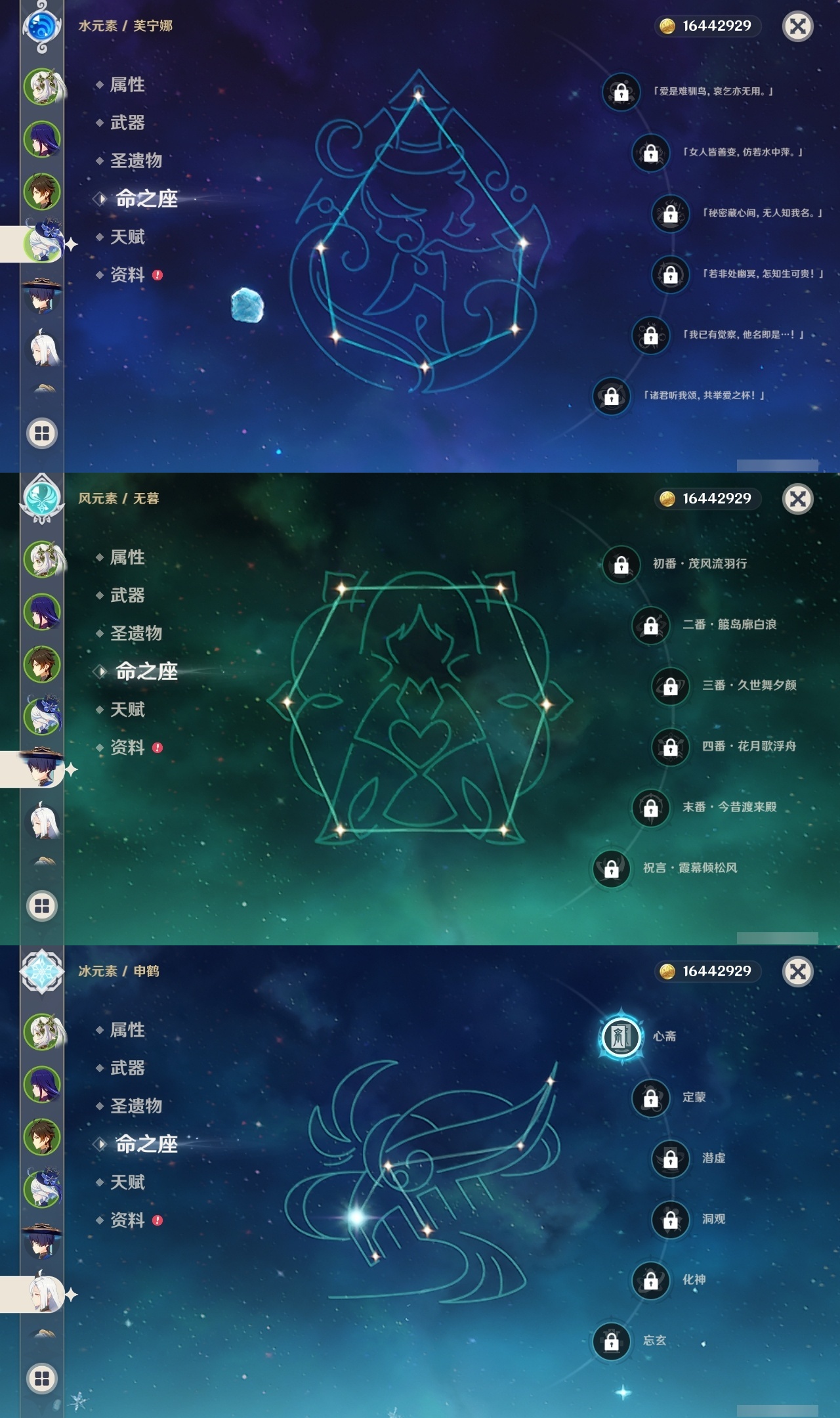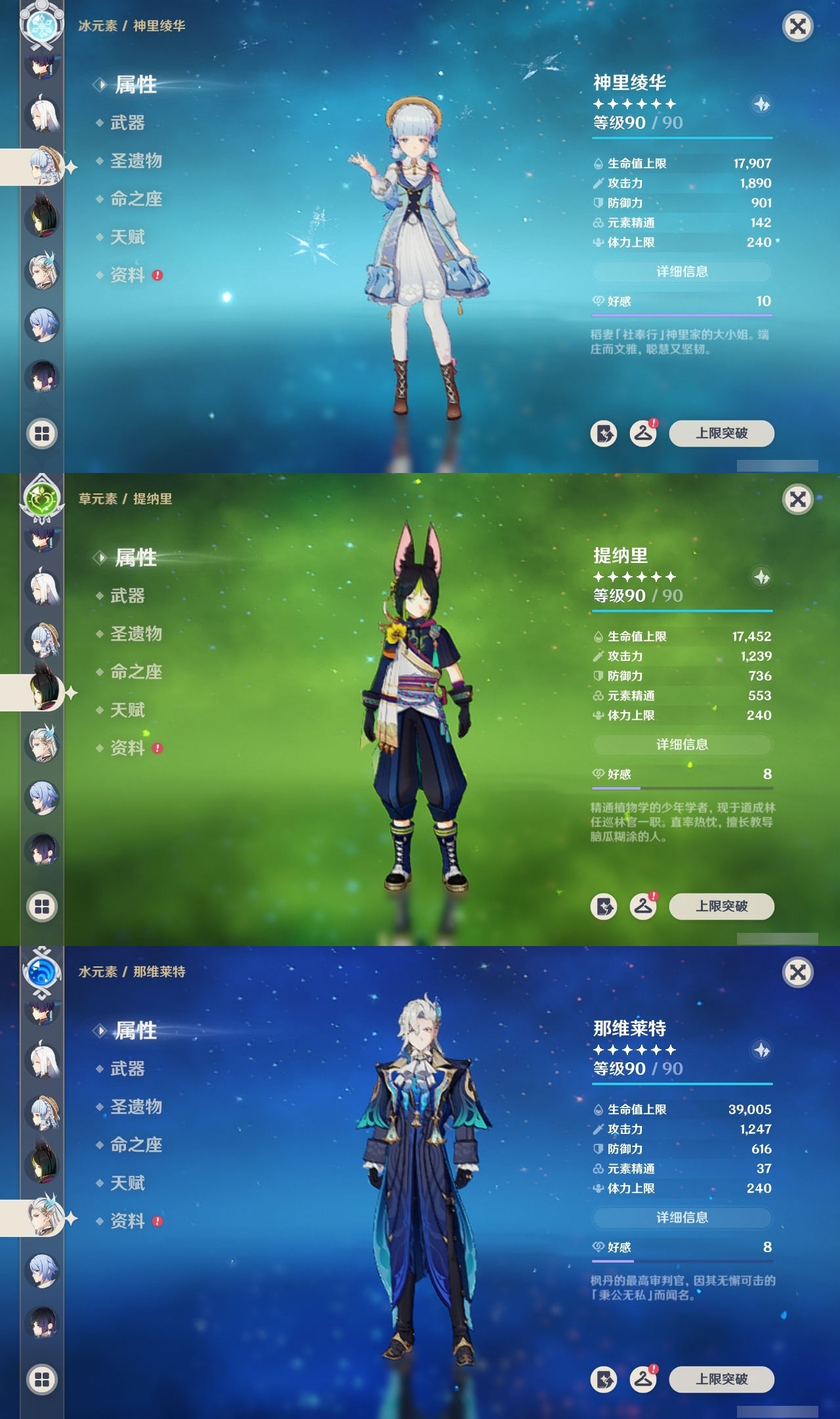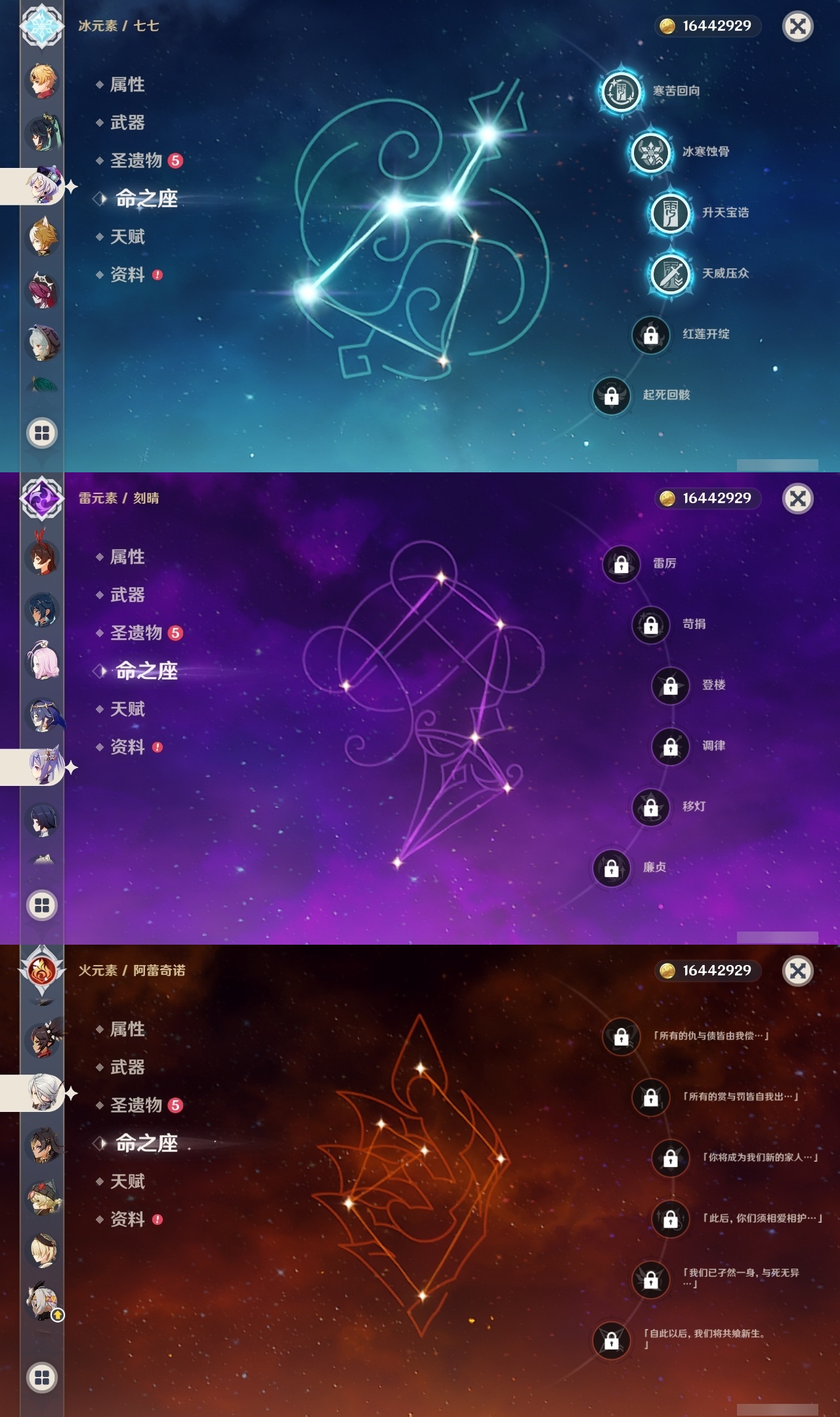 【原神】【lyys11079】冒险等级:60,五星数量:41,五星角色:琴 6命夜兰 6命雷电将军 4命七七 4命提纳里 2命纳西妲 2命那维莱特 1命胡桃 1命申鹤 1命莫娜珊瑚宫心海神里绫华迪希雅钟离达达利亚八重神子神里绫人芙宁娜闲云阿蕾奇诺流浪者哥伦比娅枫原万叶可莉刻晴__五星武器:天空之刃 2精万世流涌大典苍古自由之誓护摩之杖狼的末路四风原典天空之傲天空之翼雾切之回光薙草之稻光息灾波乱月白经津若水圣显之钥千夜浮梦__四星角色:班尼特 6命行秋 6命九条裟罗 6命香菱 6命鹿野院平藏 6命珐露珊 6命凝光 6命迪奥娜 6命砂糖 6命米卡 6命柯莱 6命云堇 6命早柚 6命托马 6命诺艾尔 6命罗莎莉亚 6命雷泽 6命菲谢尔 6命北斗 6命嘉明 6命久岐忍 5命莱依拉 5命重云 5命辛焱 5命芭芭拉 4命瑶瑶 3命五郎 3命坎蒂丝 2命多莉 2命烟绯 2命绮良良 1命卡维 1命夏沃蕾 1命奇偶·女性菲米尼琳妮特伊安珊爱诺