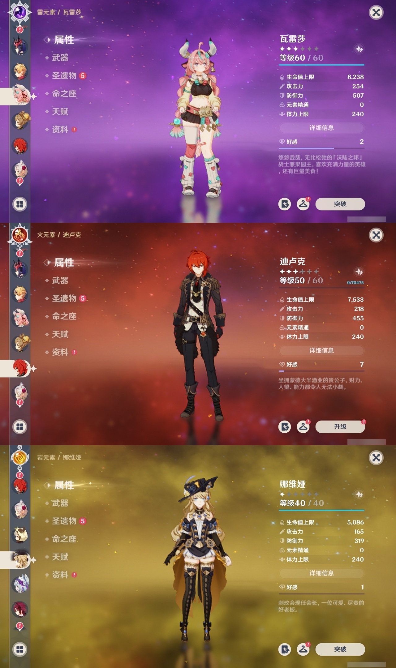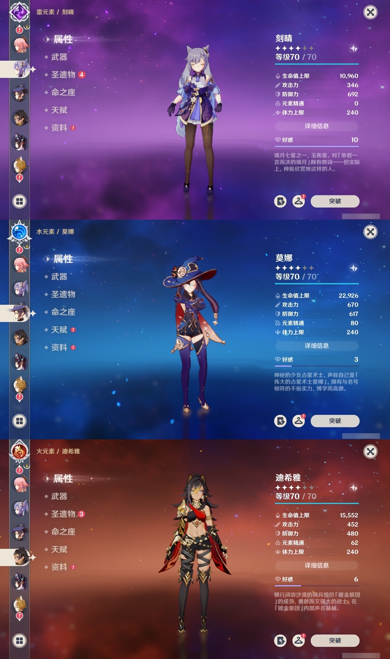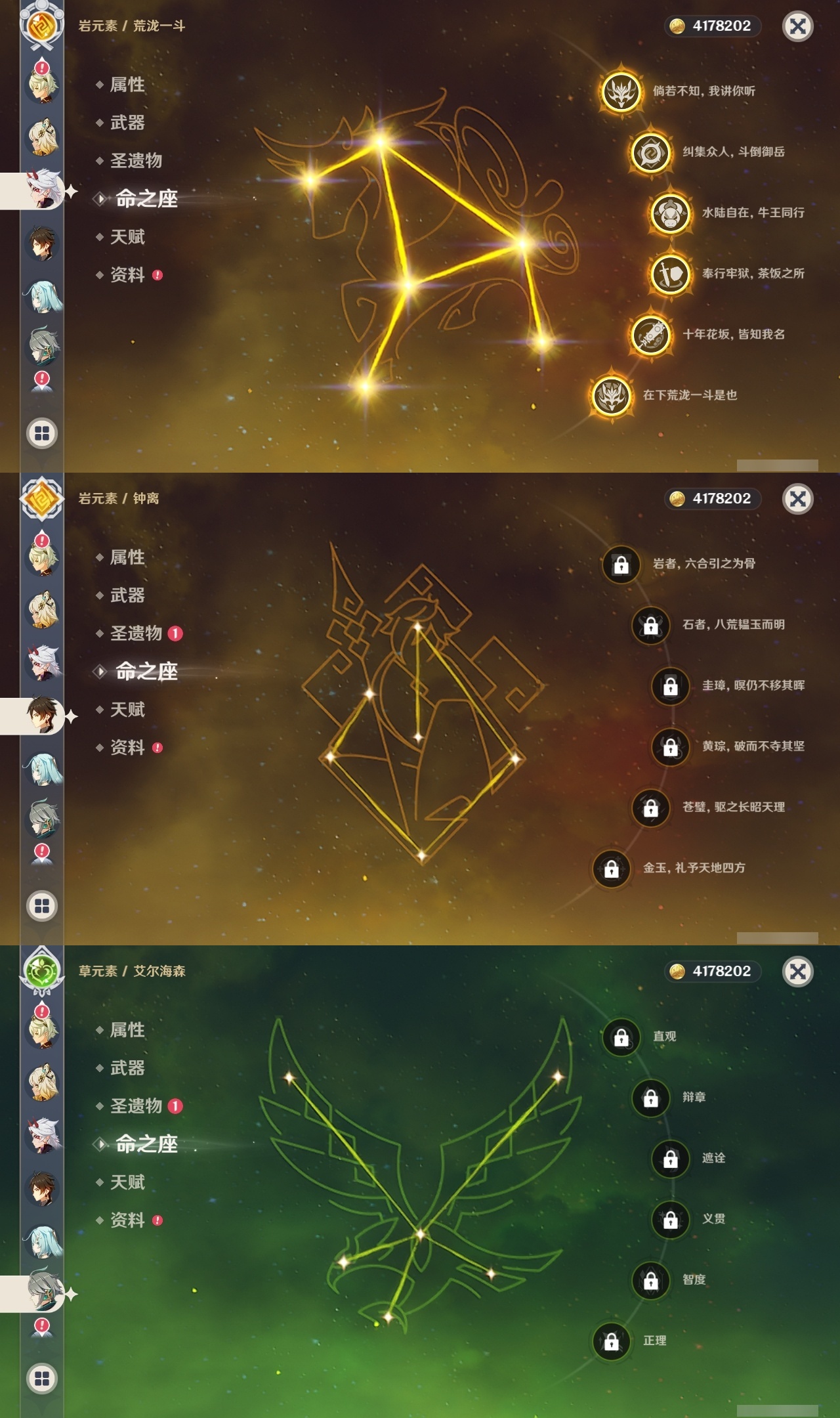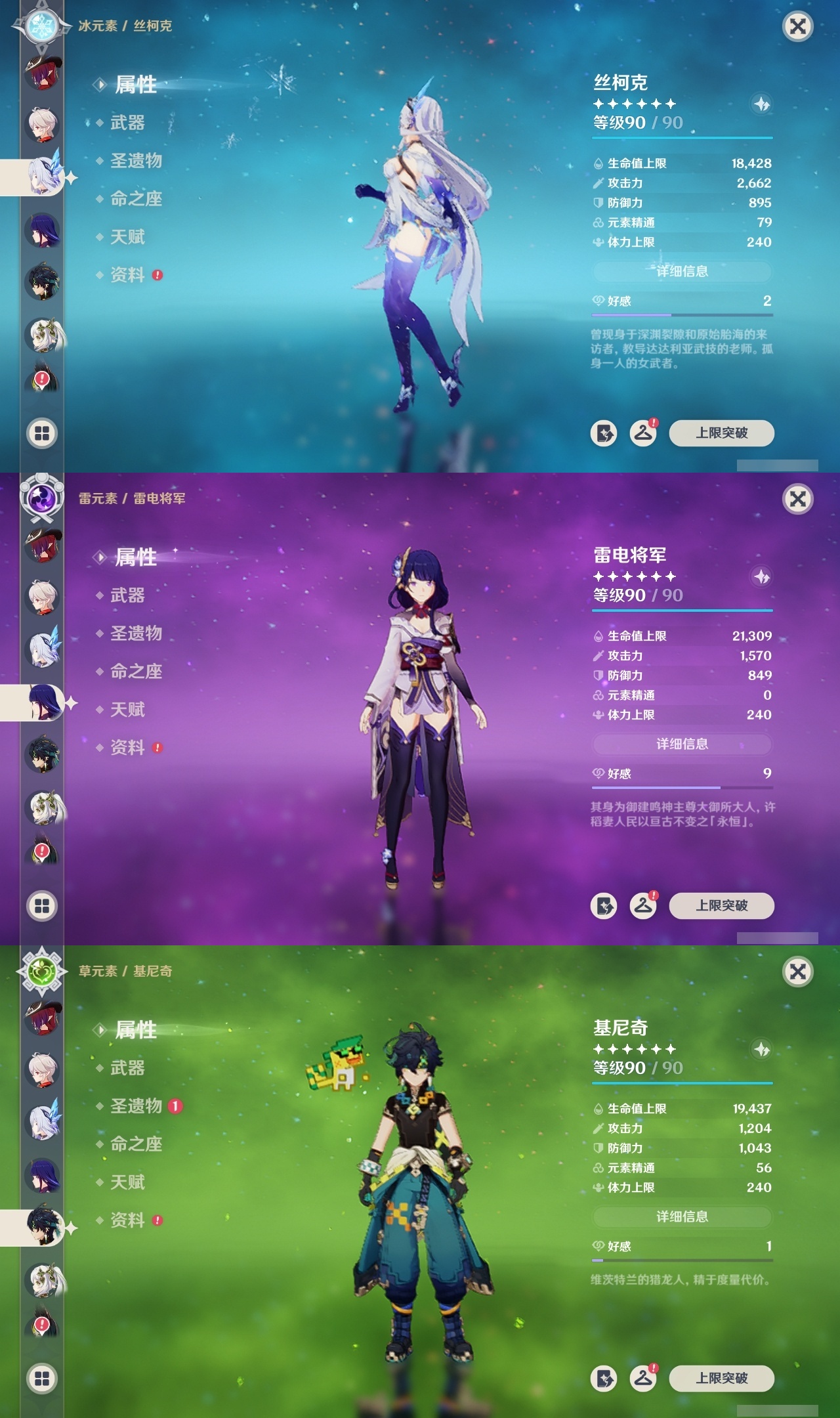 【原神】满命,冒险等级:60,五星数量:59,五星角色:恰斯卡 6命茜特菈莉 6命阿蕾奇诺 6命丝柯克 6命刻晴 6命荒泷一斗 6命夜兰 6命提纳里 6命流浪者 6命迪希雅 5命迪卢克 4命莫娜 4命七七 4命琴 3命枫原万叶 2命雷电将军 2命纳西妲 2命那维莱特 1命魈 1命基尼奇珊瑚宫心海希诺宁宵宫钟离梦见月瑞希申鹤瓦雷莎八重神子神里绫人娜维娅菲林斯艾尔海森哥伦比娅克洛琳德__五星武器:星鹫赤羽 5精苍古自由之誓 5精赤角石溃杵 5精图莱杜拉的回忆 5精最初的大魔术 3精苍耀 3精飞雷之弦振 2精和璞鸢 2精四风原典 2精天空之脊 2精天空之刃 2精息灾 2精裁叶萃光 2精祭星者之望焚曜千阳苇海信标赤月之形阿莫斯之弓天空之卷神乐之真意波乱月白经津若水千夜浮梦__四星角色:卡齐娜 6命班尼特 6命行秋 6命九条裟罗 6命香菱 6命久岐忍 6命鹿野院平藏 6命珐露珊 6命迪奥娜 6命砂糖 6命瑶瑶 6命莱依拉 6命米卡 6命坎蒂丝 6命芭芭拉 6命欧洛伦 6命云堇 6命早柚 6命托马 6命五郎 6命烟绯 6命辛焱 6命诺艾尔 6命罗莎莉亚 6命雷泽 6命菲谢尔 6命北斗 6命菲米尼 6命琳妮特 6命塔利雅 6命伊法 5命绮良良 4命重云 4命柯莱 3命夏洛蒂 3命凝光 2命赛索斯 2命多莉 1命嘉明 1命奇偶·女性奇偶·男性卡维蓝砚夏沃蕾伊安珊爱诺
