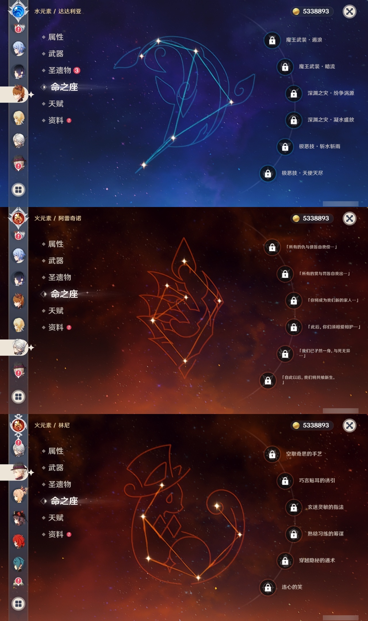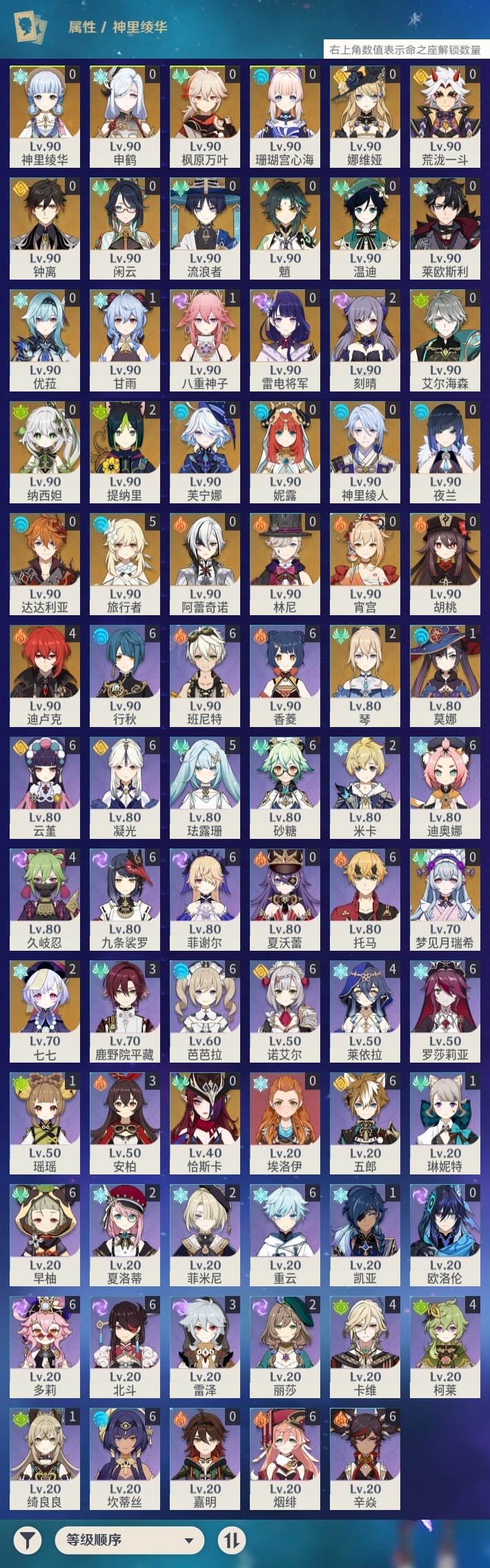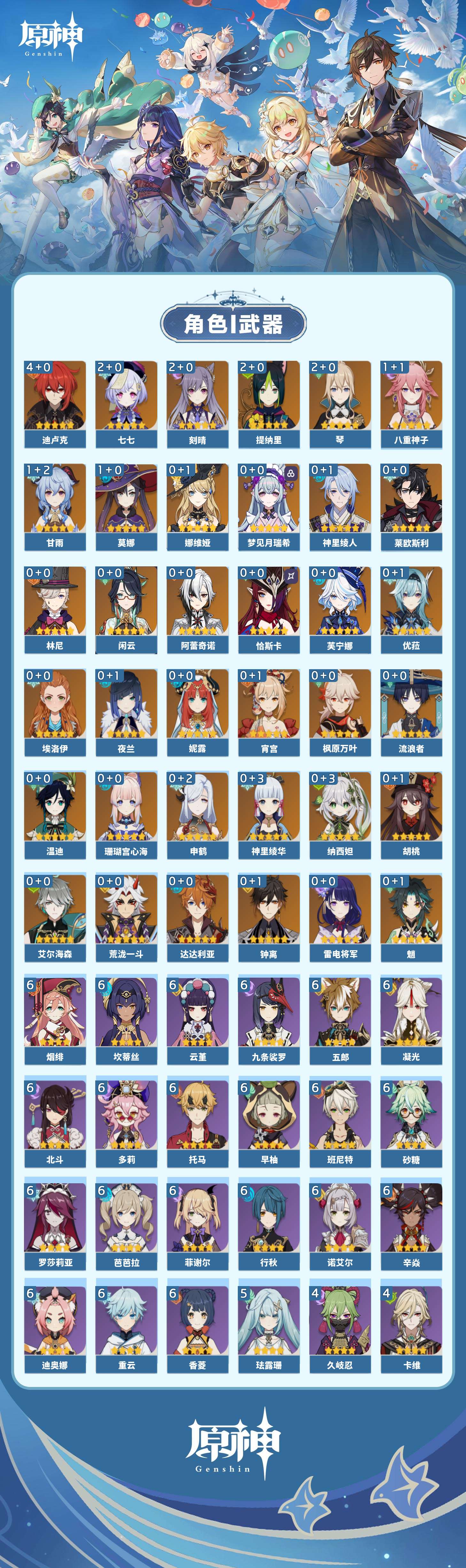 【原神】【lyys11080】冒险等级:60,五星数量:55,五星角色:迪卢克 4命刻晴 2命七七 2命琴 2命提纳里 2命甘雨 1命莫娜 1命八重神子 1命珊瑚宫心海神里绫华温迪恰斯卡宵宫优菈钟离荒泷一斗达达利亚梦见月瑞希申鹤神里绫人林尼莱欧斯利夜兰芙宁娜娜维娅闲云阿蕾奇诺妮露纳西妲艾尔海森流浪者枫原万叶魈胡桃雷电将军__五星武器:四风原典 4精雾切之回光 3精千夜浮梦 3精阿莫斯之弓 2精息灾 2精裁断飞雷之弦振风鹰剑和璞鸢护摩之杖松籁响起之时天空之傲天空之刃天空之翼无工之剑神乐之真意贯虹之槊波乱月白经津若水__四星角色:班尼特 6命行秋 6命九条裟罗 6命香菱 6命凝光 6命迪奥娜 6命砂糖 6命坎蒂丝 6命多莉 6命芭芭拉 6命云堇 6命早柚 6命托马 6命五郎 6命烟绯 6命重云 6命辛焱 6命诺艾尔 6命罗莎莉亚 6命菲谢尔 6命北斗 6命珐露珊 5命久岐忍 4命莱依拉 4命柯莱 4命卡维 4命鹿野院平藏 3命雷泽 3命米卡 2命菲米尼 2命夏洛蒂 2命绮良良 1命瑶瑶 1命琳妮特 1命埃洛伊欧洛伦夏沃蕾嘉明