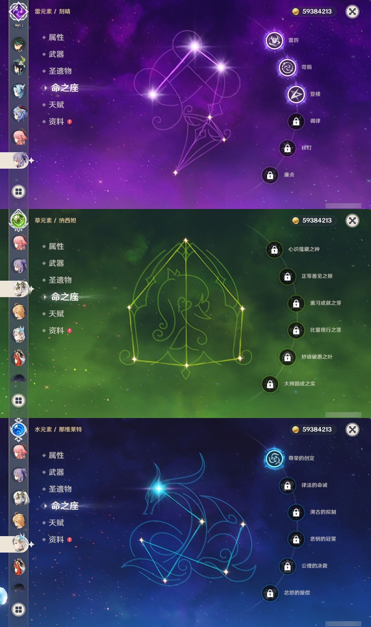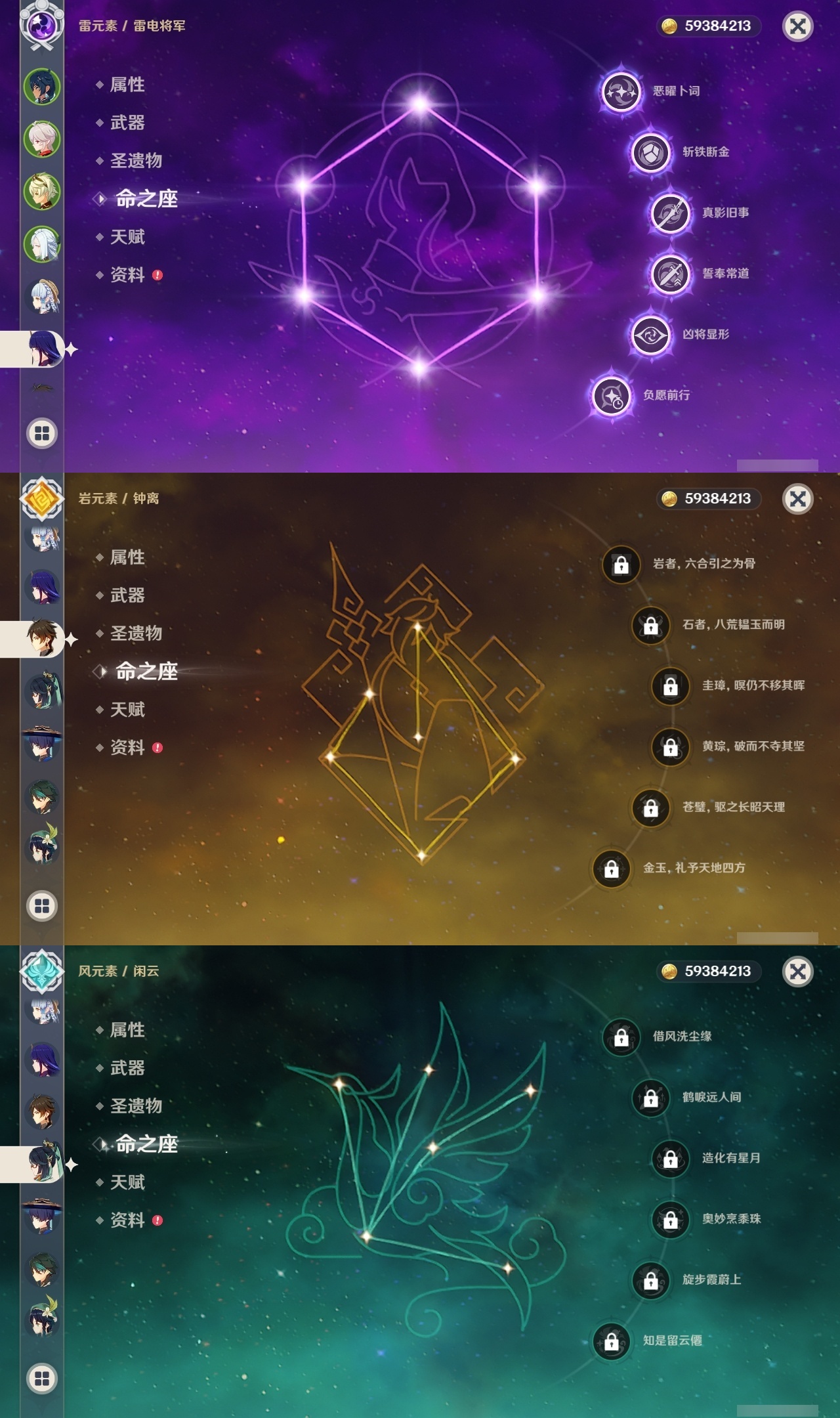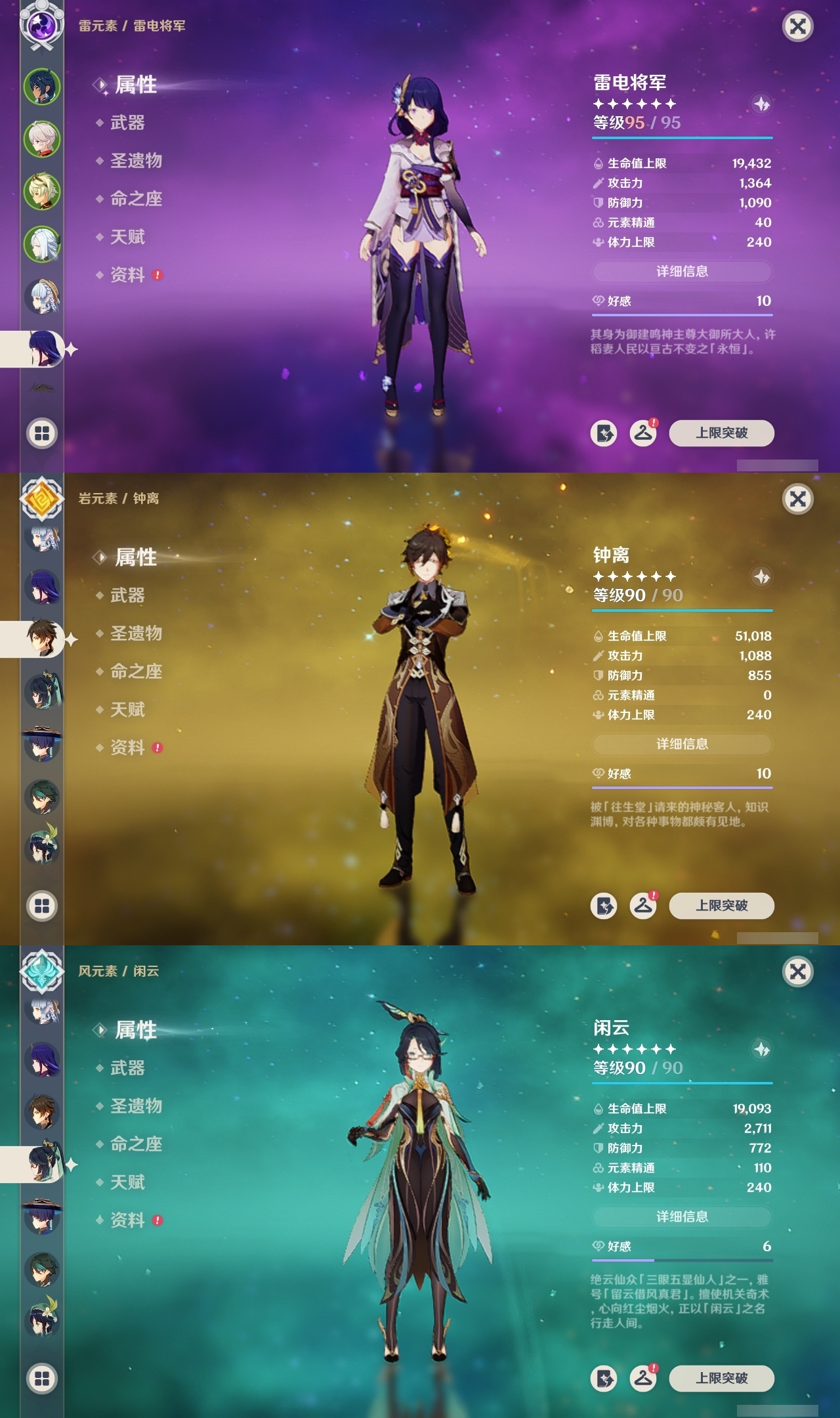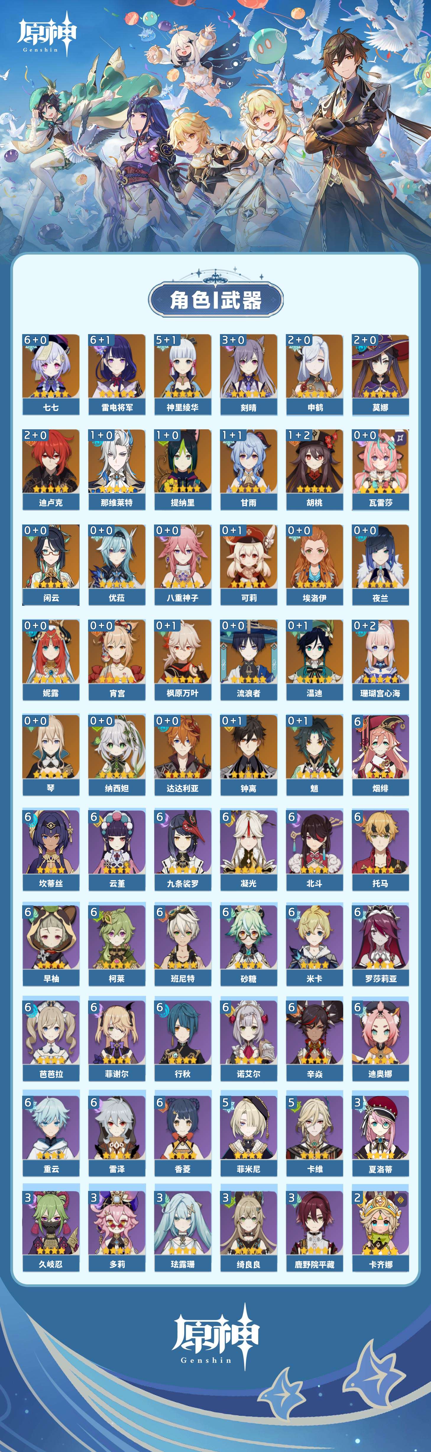 【原神】【lyys10661】冒险等级:60,五星数量:46,五星角色:雷电将军 6命七七 6命神里绫华 5命刻晴 3命迪卢克 2命莫娜 2命申鹤 2命那维莱特 1命甘雨 1命胡桃 1命提纳里 1命琴珊瑚宫心海温迪宵宫优菈钟离达达利亚瓦雷莎八重神子夜兰闲云妮露纳西妲流浪者枫原万叶魈可莉__五星武器:不灭月华 2精护摩之杖 2精天空之脊 2精柔灯挽歌阿莫斯之弓苍古自由之誓风鹰剑和璞鸢磐岩结绿四风原典天空之傲天空之卷天空之翼雾切之回光薙草之稻光终末嗟叹之诗贯虹之槊__四星角色:班尼特 6命行秋 6命九条裟罗 6命香菱 6命凝光 6命迪奥娜 6命砂糖 6命米卡 6命坎蒂丝 6命柯莱 6命芭芭拉 6命云堇 6命早柚 6命托马 6命烟绯 6命重云 6命辛焱 6命诺艾尔 6命罗莎莉亚 6命雷泽 6命菲谢尔 6命北斗 6命卡维 5命菲米尼 5命久岐忍 3命鹿野院平藏 3命珐露珊 3命绮良良 3命多莉 3命夏洛蒂 3命卡齐娜 2命琳妮特 2命嘉明 2命瑶瑶 1命莱依拉 1命夏沃蕾 1命埃洛伊欧洛伦五郎伊法伊安珊爱诺赛索斯