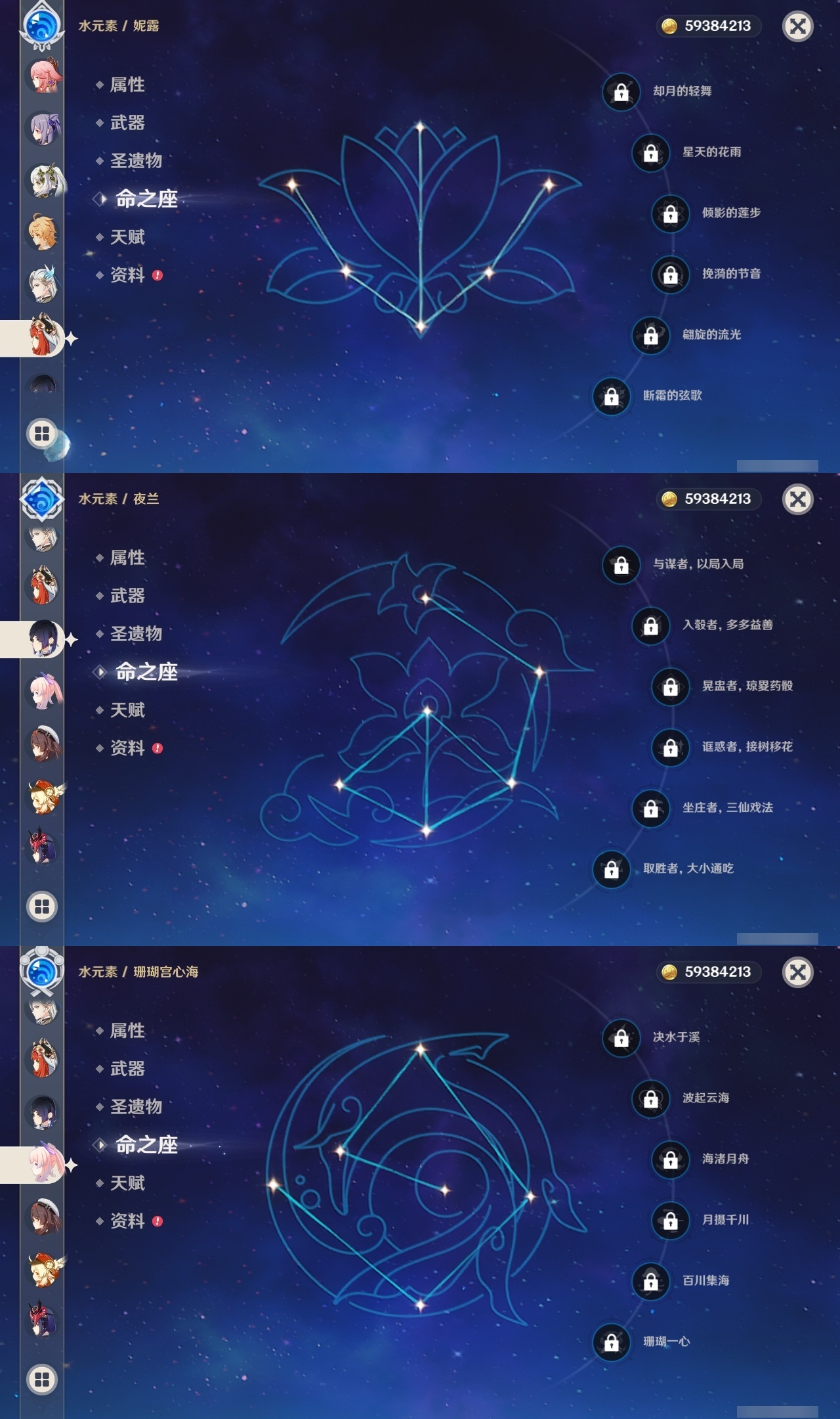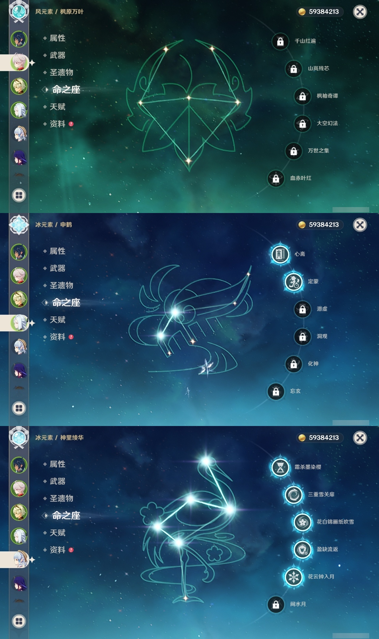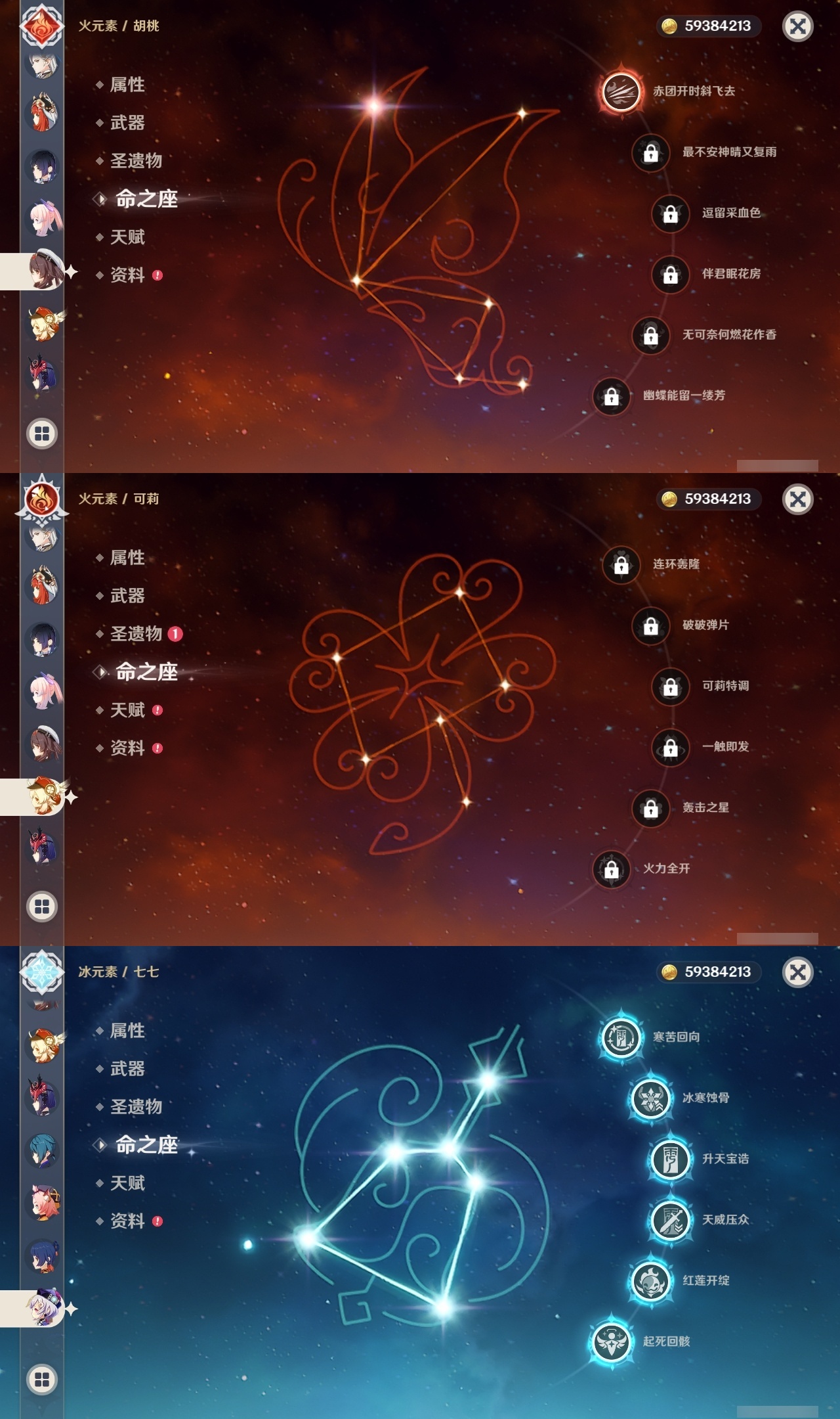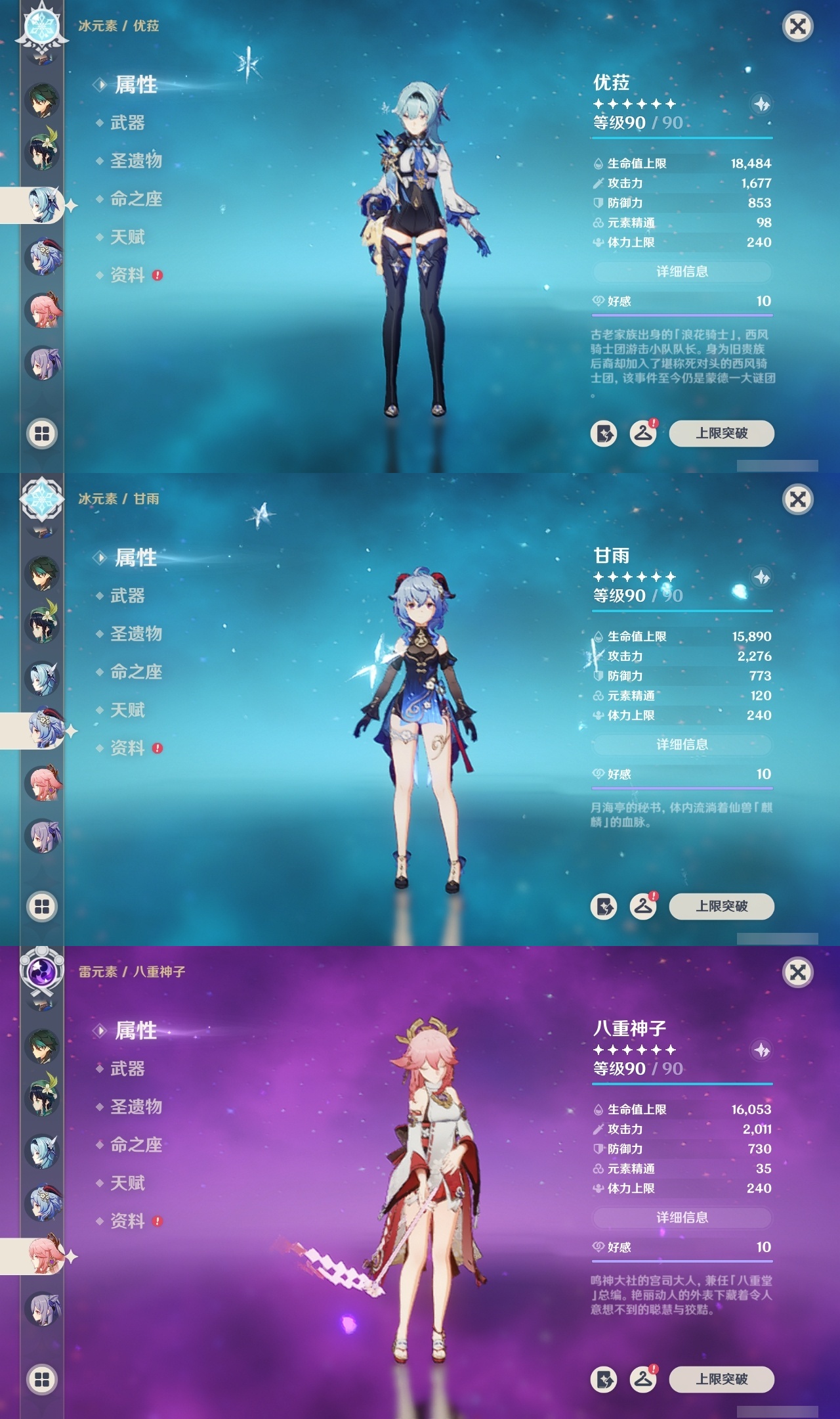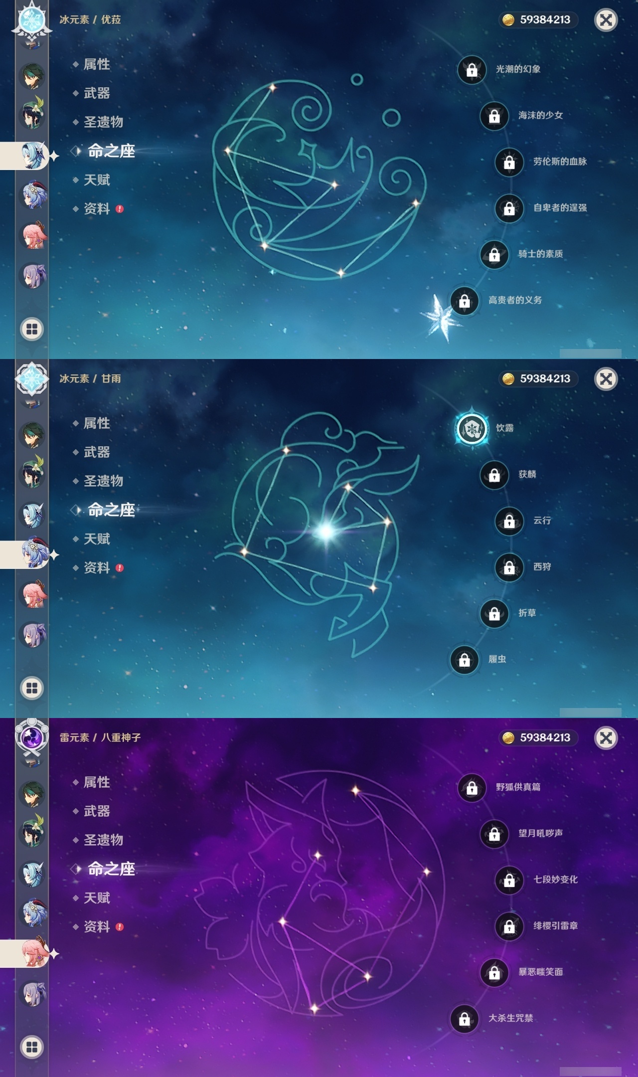 【原神】【lyys10661】冒险等级:60,五星数量:46,五星角色:雷电将军 6命七七 6命神里绫华 5命刻晴 3命迪卢克 2命莫娜 2命申鹤 2命那维莱特 1命甘雨 1命胡桃 1命提纳里 1命琴珊瑚宫心海温迪宵宫优菈钟离达达利亚瓦雷莎八重神子夜兰闲云妮露纳西妲流浪者枫原万叶魈可莉__五星武器:不灭月华 2精护摩之杖 2精天空之脊 2精柔灯挽歌阿莫斯之弓苍古自由之誓风鹰剑和璞鸢磐岩结绿四风原典天空之傲天空之卷天空之翼雾切之回光薙草之稻光终末嗟叹之诗贯虹之槊__四星角色:班尼特 6命行秋 6命九条裟罗 6命香菱 6命凝光 6命迪奥娜 6命砂糖 6命米卡 6命坎蒂丝 6命柯莱 6命芭芭拉 6命云堇 6命早柚 6命托马 6命烟绯 6命重云 6命辛焱 6命诺艾尔 6命罗莎莉亚 6命雷泽 6命菲谢尔 6命北斗 6命卡维 5命菲米尼 5命久岐忍 3命鹿野院平藏 3命珐露珊 3命绮良良 3命多莉 3命夏洛蒂 3命卡齐娜 2命琳妮特 2命嘉明 2命瑶瑶 1命莱依拉 1命夏沃蕾 1命埃洛伊欧洛伦五郎伊法伊安珊爱诺赛索斯