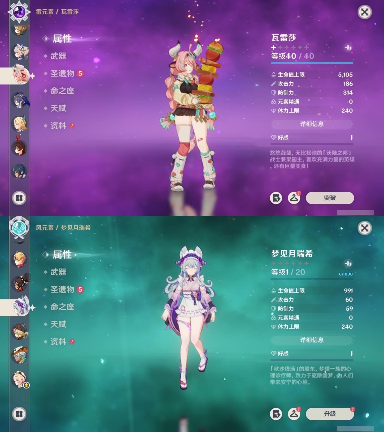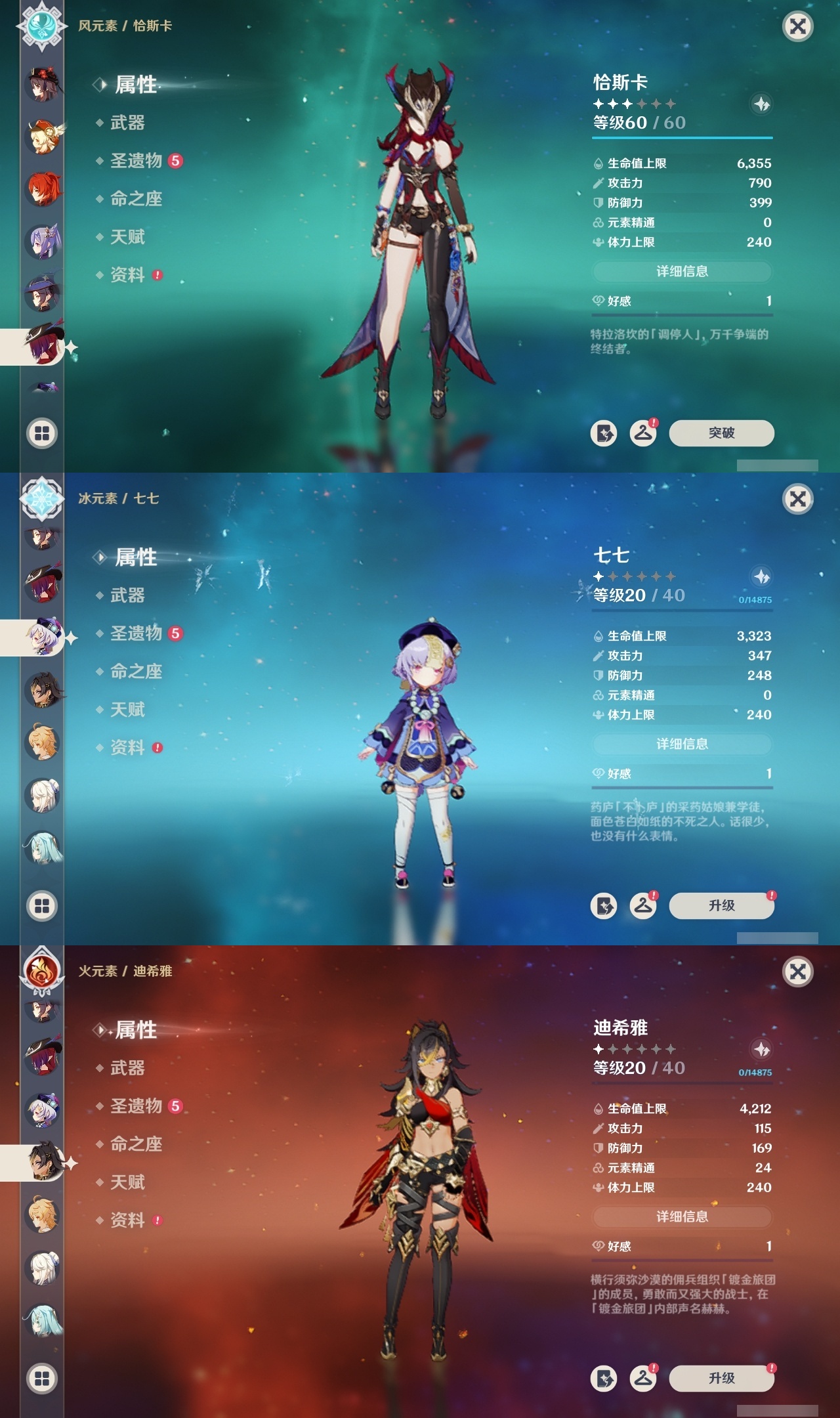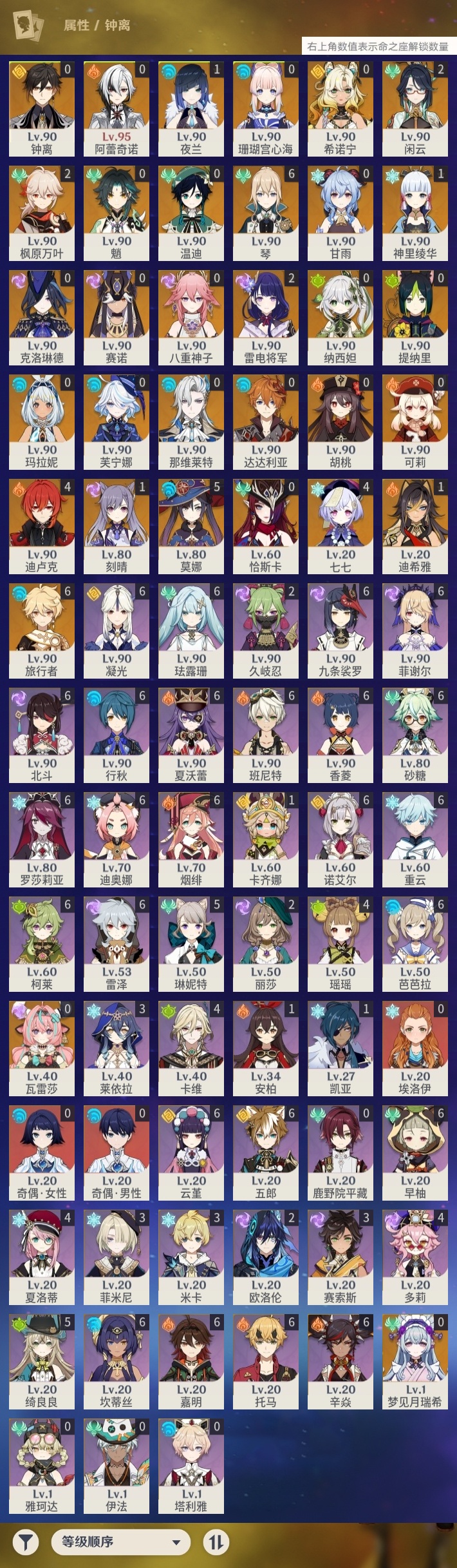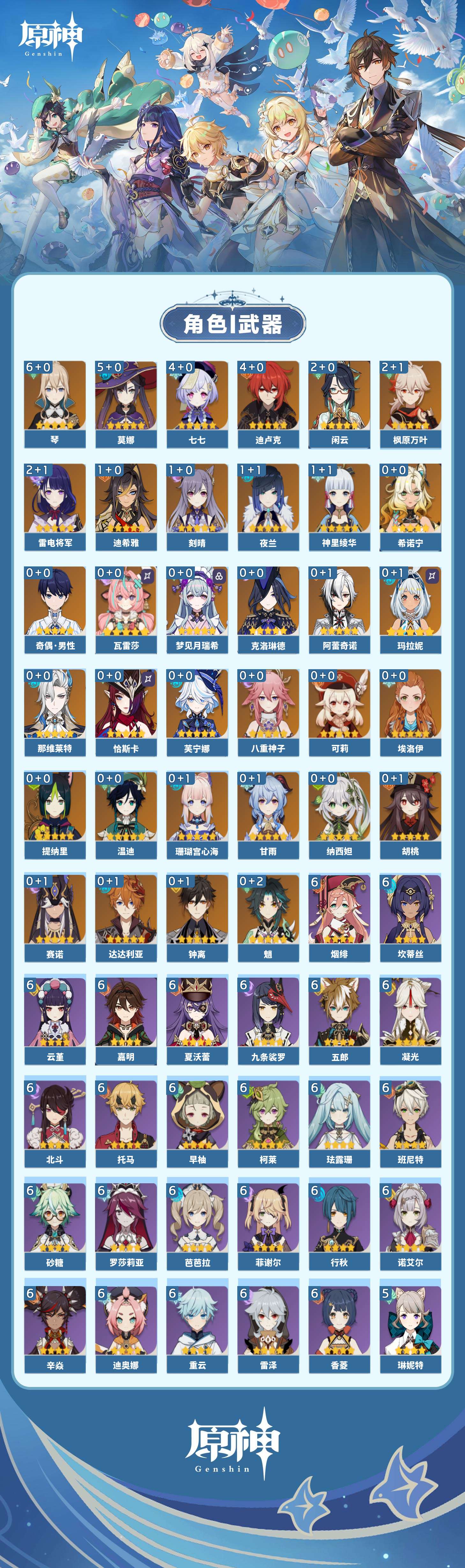 【原神】【lyys11095】冒险等级:60,五星数量:54,五星角色:琴 6命莫娜 5命迪卢克 4命七七 4命闲云 2命枫原万叶 2命雷电将军 2命迪希雅 1命刻晴 1命神里绫华 1命夜兰 1命玛拉妮珊瑚宫心海希诺宁温迪恰斯卡钟离达达利亚梦见月瑞希瓦雷莎八重神子那维莱特芙宁娜提纳里赛诺阿蕾奇诺纳西妲甘雨魈胡桃克洛琳德可莉__五星武器:和璞鸢 2精冲浪时光赤月之形阿莫斯之弓不灭月华苍古自由之誓飞雷之弦振护摩之杖天空之傲天空之脊天空之卷天空之翼雾切之回光薙草之稻光赤角石溃杵冬极白星贯虹之槊若水赤沙之杖__四星角色:班尼特 6命行秋 6命九条裟罗 6命香菱 6命珐露珊 6命凝光 6命迪奥娜 6命砂糖 6命坎蒂丝 6命柯莱 6命芭芭拉 6命云堇 6命早柚 6命托马 6命五郎 6命烟绯 6命重云 6命辛焱 6命诺艾尔 6命罗莎莉亚 6命雷泽 6命菲谢尔 6命北斗 6命夏沃蕾 6命嘉明 6命绮良良 5命琳妮特 5命瑶瑶 4命多莉 4命卡维 4命夏洛蒂 4命莱依拉 3命米卡 3命菲米尼 3命赛索斯 3命久岐忍 2命欧洛伦 2命卡齐娜 1命埃洛伊奇偶·女性奇偶·男性鹿野院平藏伊法塔利雅