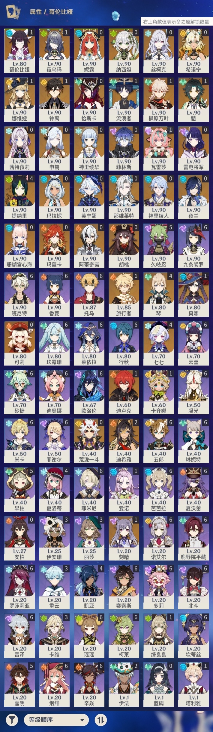【原神】【lyys11060】冒险等级:60,五星数量:60,五星角色:七七 4命琴 4命提纳里 4命迪希雅 2命瓦雷莎 1命娜维娅 1命菈乌玛 1命哥伦比娅 1命迪卢克 1命枫原万叶 1命魈 1命刻晴 1命莫娜 1命钟离 1命流浪者 1命玛拉妮珊瑚宫心海希诺宁神里绫华恰斯卡玛薇卡茜特菈莉荒泷一斗申鹤神里绫人那维莱特夜兰芙宁娜阿蕾奇诺丝柯克妮露纳西妲菲林斯胡桃可莉雷电将军__五星武器:冲浪时光山王长牙星鹫赤羽祭星者之望万世流涌大典裁断赤月之形苍耀纺夜天镜阿莫斯之弓风鹰剑和璞鸢护摩之杖狼的末路四风原典天空之傲天空之脊天空之刃天空之翼终末嗟叹之诗息灾若水圣显之钥千夜浮梦__四星角色:班尼特 6命行秋 6命九条裟罗 6命香菱 6命鹿野院平藏 6命珐露珊 6命凝光 6命迪奥娜 6命砂糖 6命瑶瑶 6命莱依拉 6命米卡 6命坎蒂丝 6命多莉 6命柯莱 6命芭芭拉 6命欧洛伦 6命云堇 6命托马 6命五郎 6命烟绯 6命辛焱 6命诺艾尔 6命罗莎莉亚 6命雷泽 6命菲谢尔 6命北斗 6命菲米尼 6命琳妮特 6命夏沃蕾 6命赛索斯 6命久岐忍 5命早柚 5命嘉明 5命夏洛蒂 4命卡维 3命重云 3命伊安珊 3命伊法 2命卡齐娜 1命绮良良 1命塔利雅 1命爱诺 1命蓝砚