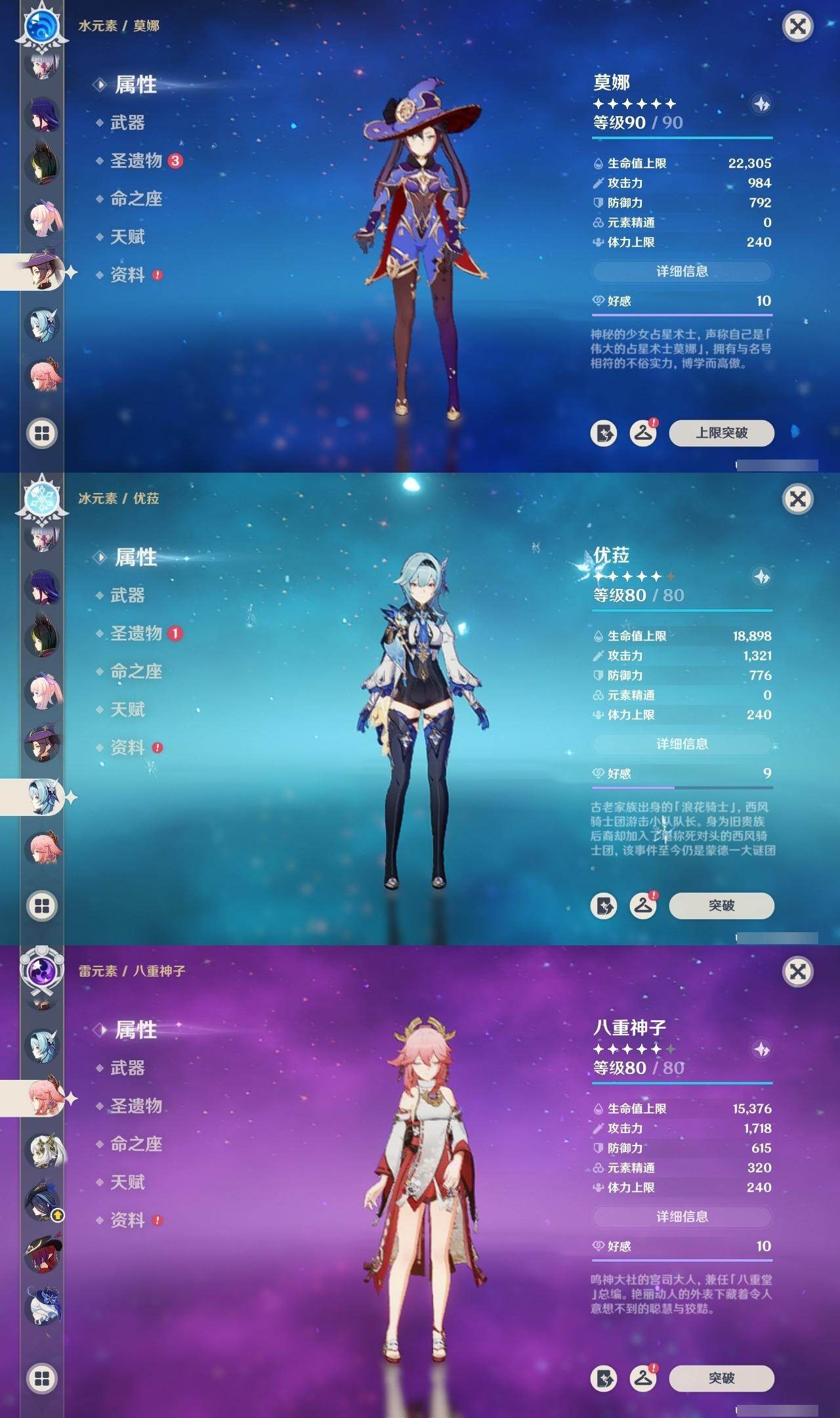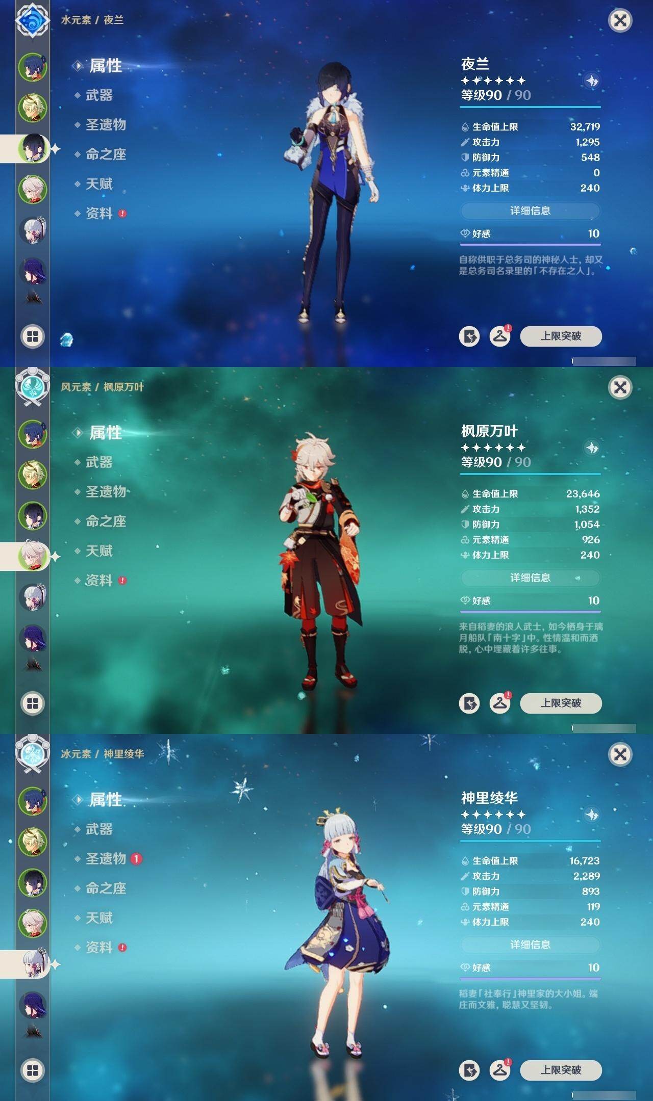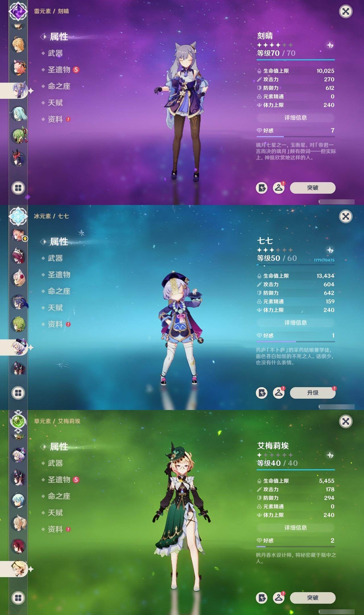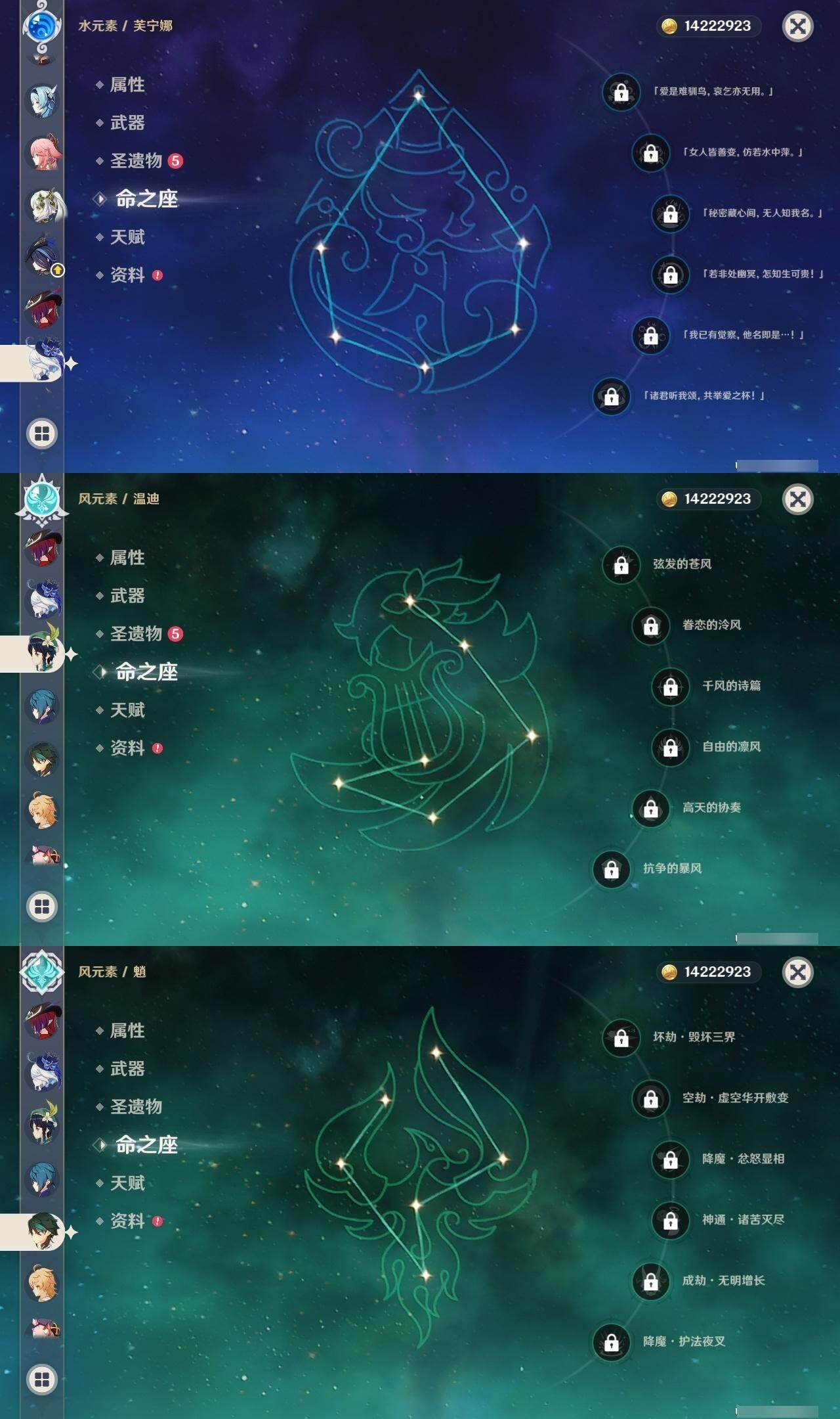 58级/31黄/男主/19个五星角色/3个五星武器 0命克洛琳德0命芙宁娜0命迪希雅0命纳西妲4命提纳里0命夜兰0命八重神子0命优菈0命雷电将军0命枫原万叶0命神里绫华0命魈0命温迪0命珊瑚宫心海2命刻晴3命七七0命莫娜0命艾梅莉埃0命恰斯卡精1薙草之稻光精1四风原典精1和璞鸢