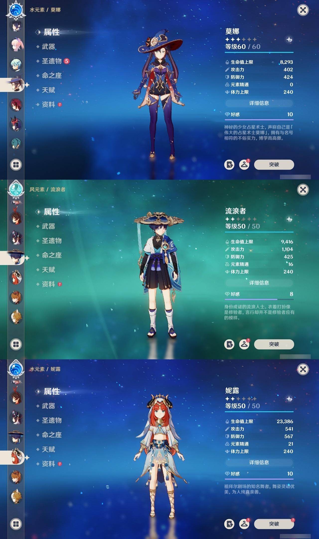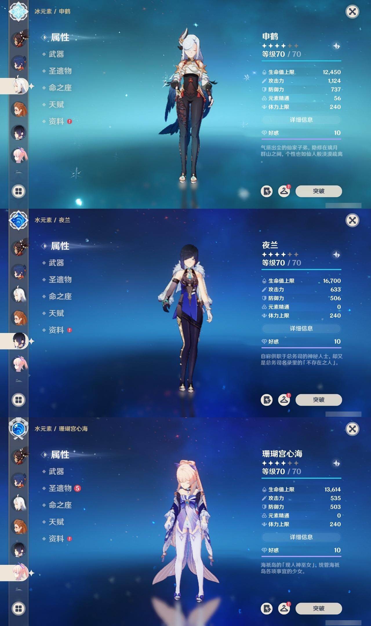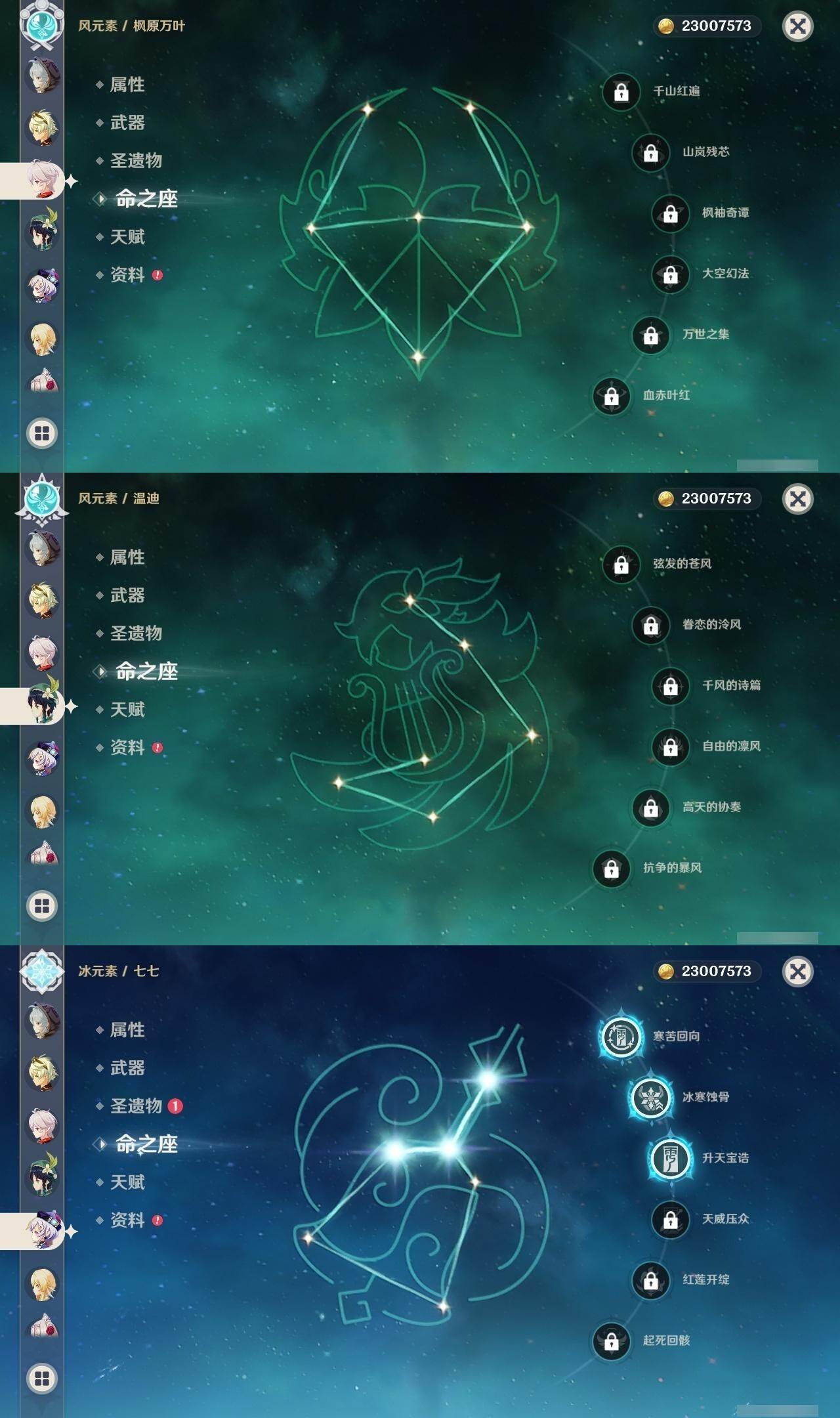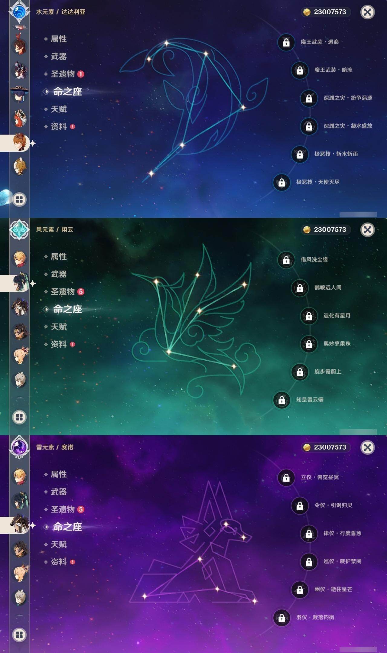 60级/44黄/女主/27个五星角色/6个五星武器 0命闲云0命迪希雅0命流浪者0命妮露0命赛诺0命提纳里0命夜兰0命八重神子0命申鹤1命优菈0命雷电将军0命枫原万叶0命神里绫华0命钟离0命胡桃0命甘雨0命魈0命宵宫0命温迪0命达达利亚0命珊瑚宫心海3命刻晴3命七七1命琴3命莫娜0命迪卢克0命玛拉妮精1神乐之真意精1护摩之杖精1天空之脊精1天空之翼精1天空之刃精1狼的末路