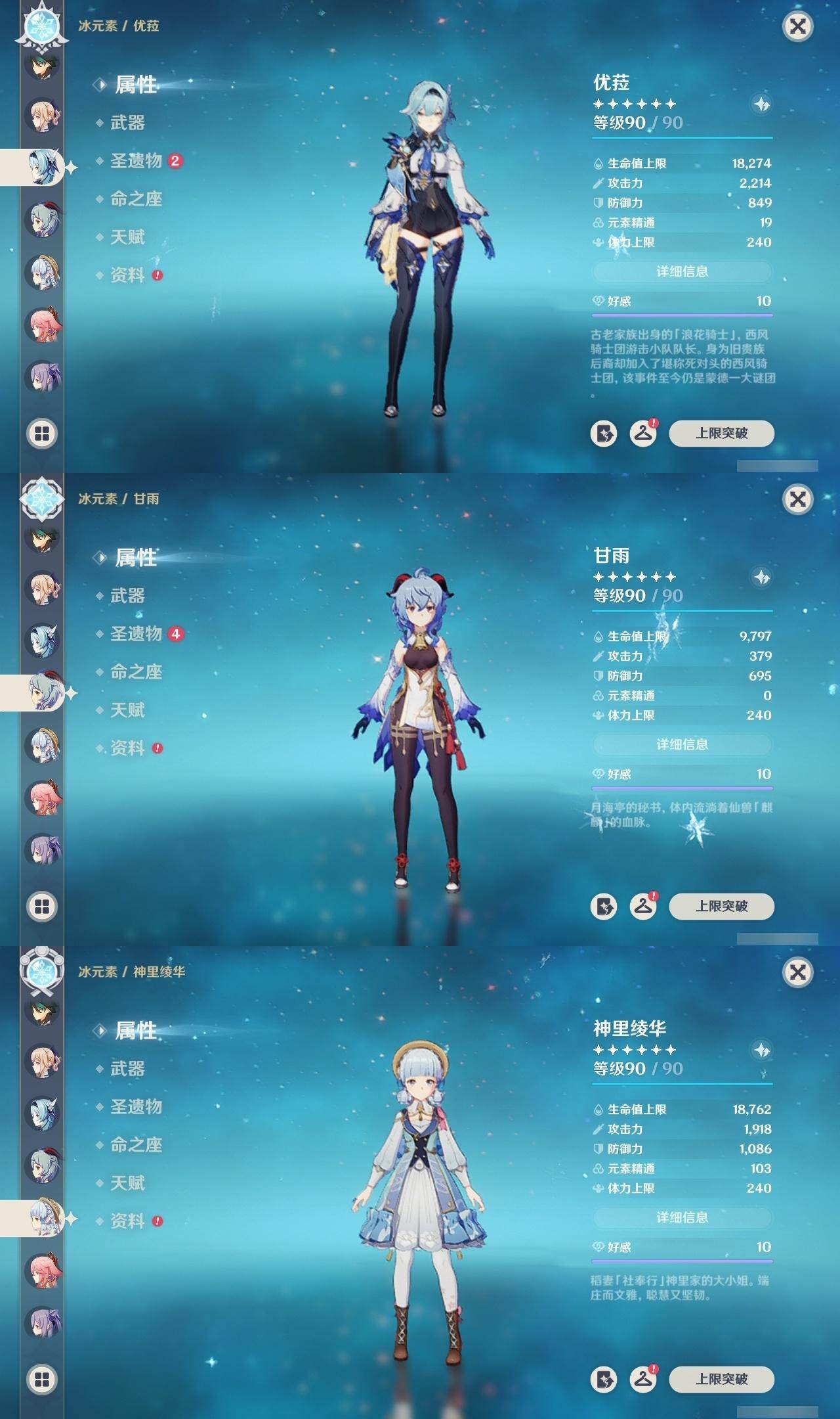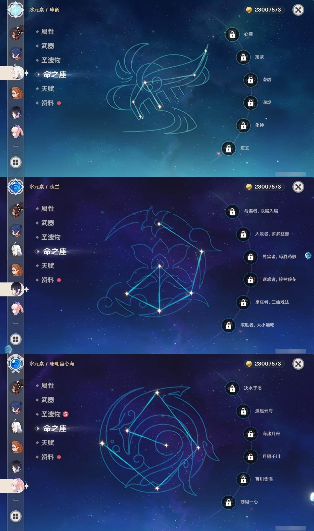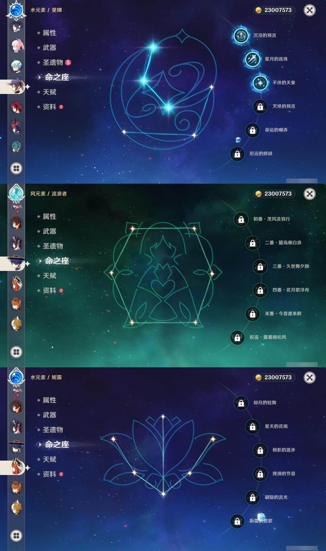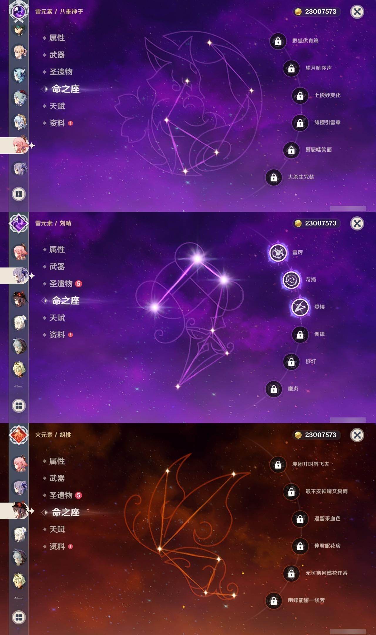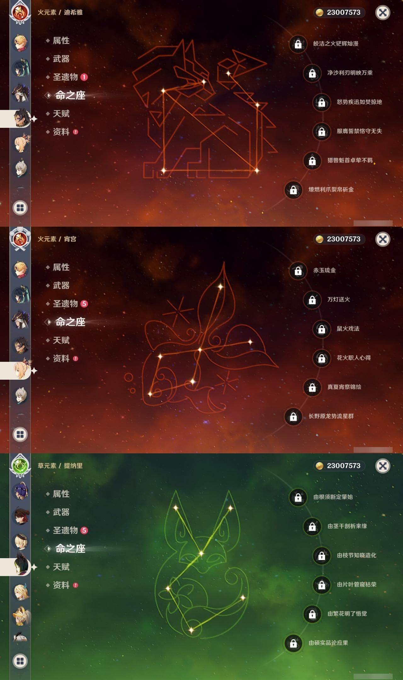60级/44黄/女主/27个五星角色/6个五星武器 0命闲云0命迪希雅0命流浪者0命妮露0命赛诺0命提纳里0命夜兰0命八重神子0命申鹤1命优菈0命雷电将军0命枫原万叶0命神里绫华0命钟离0命胡桃0命甘雨0命魈0命宵宫0命温迪0命达达利亚0命珊瑚宫心海3命刻晴3命七七1命琴3命莫娜0命迪卢克0命玛拉妮精1神乐之真意精1护摩之杖精1天空之脊精1天空之翼精1天空之刃精1狼的末路