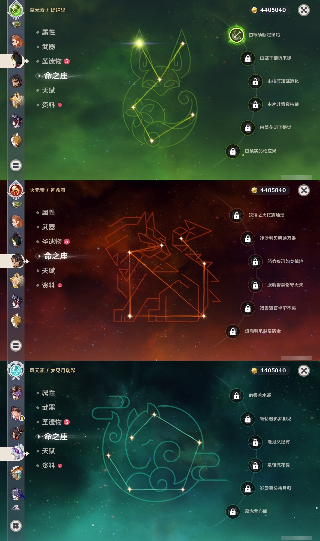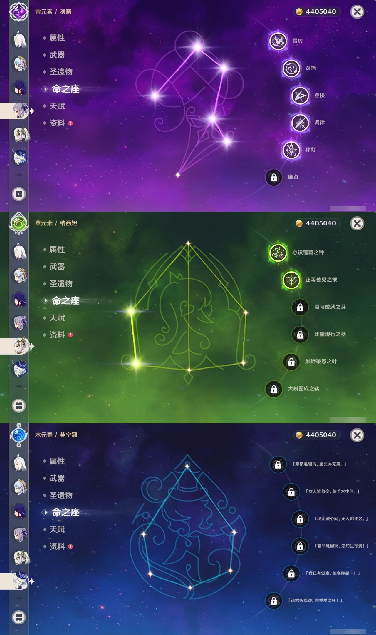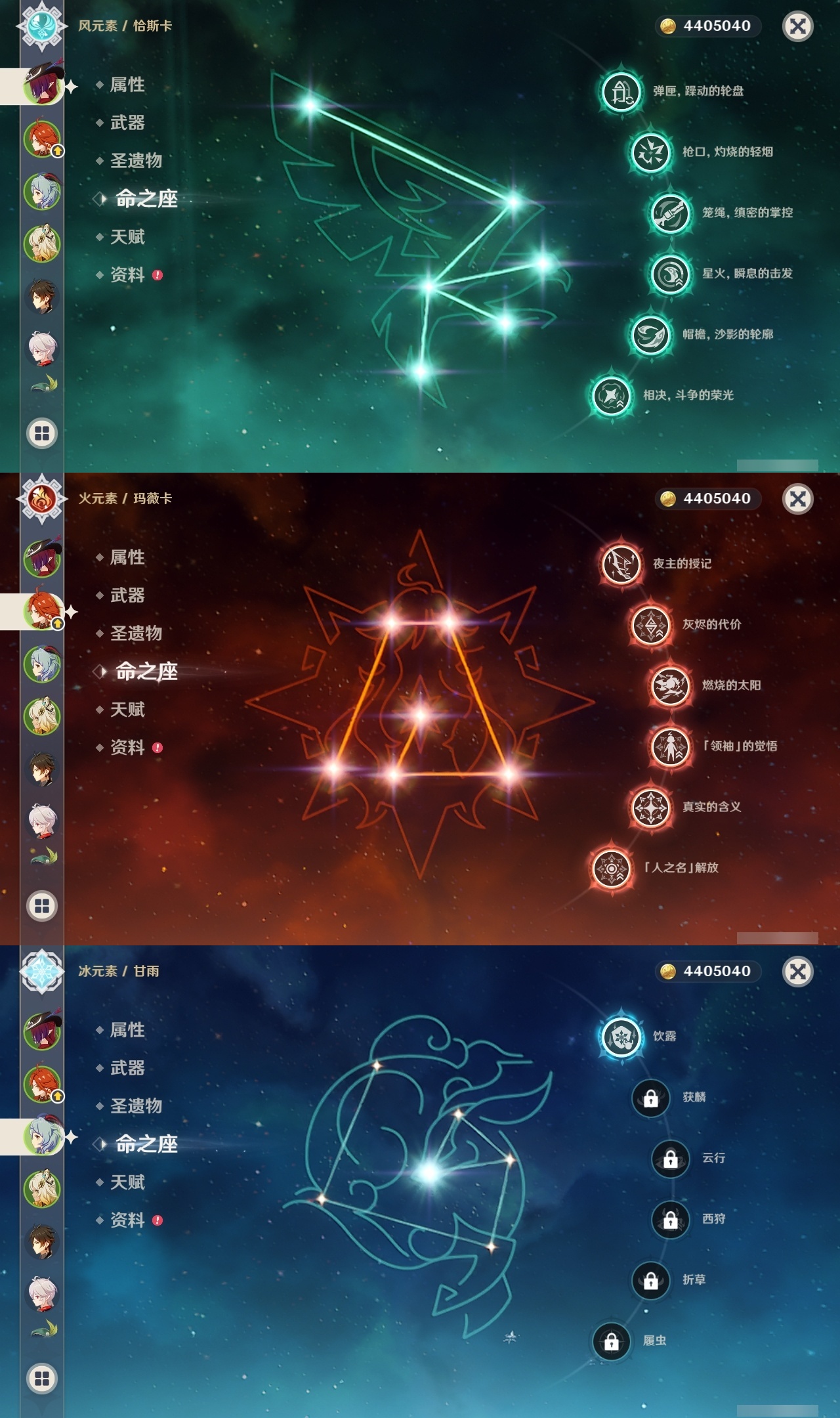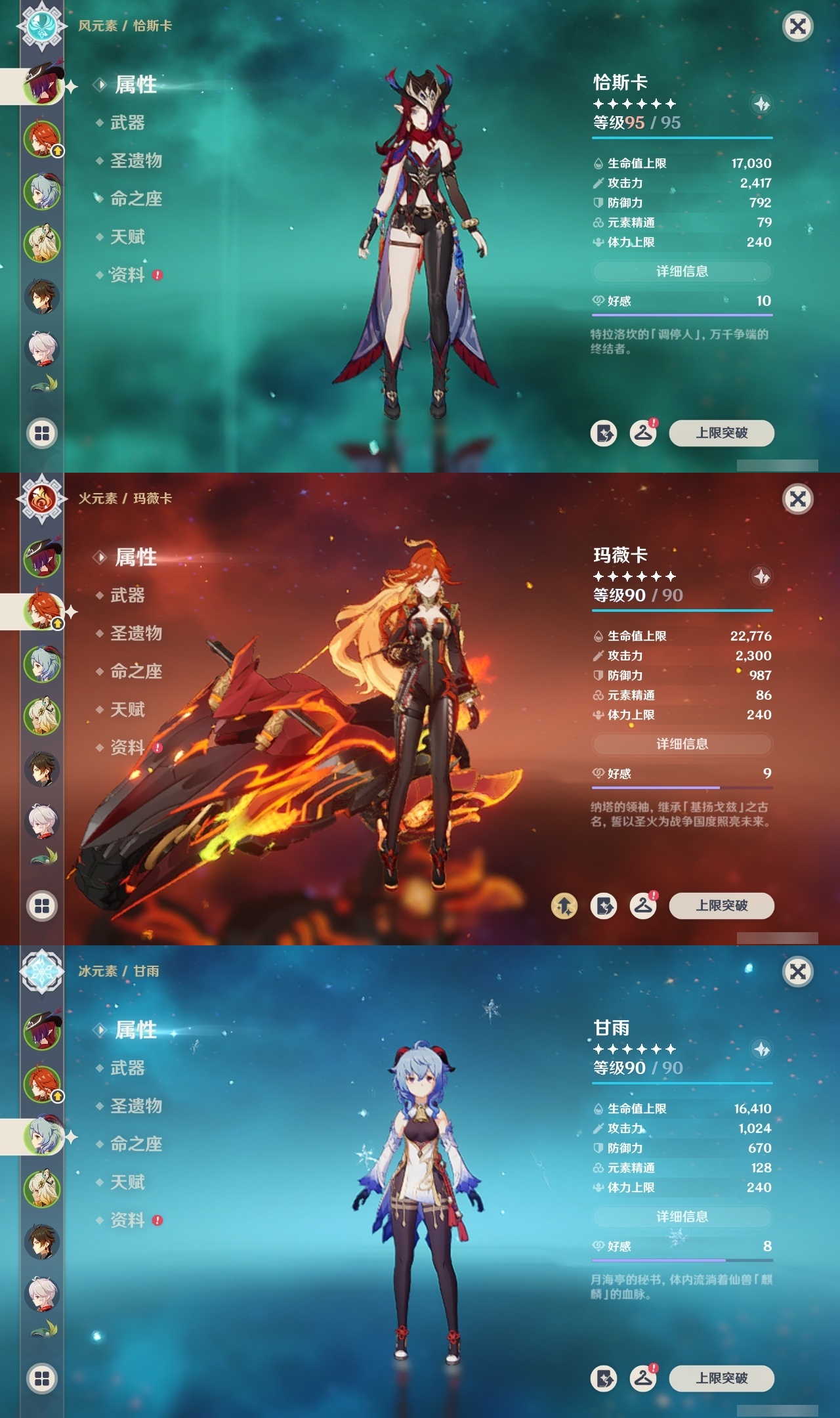 【原神】满命,冒险等级:59,五星数量:47,五星角色:恰斯卡 6命玛薇卡 6命七七 6命夜兰 6命刻晴 5命迪卢克 4命琴 4命雷电将军 3命莫娜 3命希诺宁 2命纳西妲 2命甘雨 1命胡桃 1命神里绫华 1命申鹤 1命提纳里 1命珊瑚宫心海温迪茜特菈莉迪希雅钟离梦见月瑞希芙宁娜妮露哥伦比娅枫原万叶可莉__五星武器:和璞鸢 3精天空之卷 3精焚曜千阳 2精天空之脊 2精星鹫赤羽祭星者之望阿莫斯之弓风鹰剑护摩之杖磐岩结绿无工之剑雾切之回光薙草之稻光冬极白星息灾若水圣显之钥千夜浮梦白雨心弦__四星角色:卡齐娜 6命班尼特 6命行秋 6命九条裟罗 6命香菱 6命凝光 6命迪奥娜 6命砂糖 6命芭芭拉 6命欧洛伦 6命云堇 6命早柚 6命托马 6命烟绯 6命重云 6命辛焱 6命诺艾尔 6命罗莎莉亚 6命雷泽 6命菲谢尔 6命北斗 6命夏沃蕾 6命嘉明 6命伊安珊 6命鹿野院平藏 5命绮良良 4命柯莱 4命久岐忍 3命五郎 3命坎蒂丝 2命琳妮特 2命赛索斯 2命卡维 1命菲米尼 1命伊法 1命埃洛伊瑶瑶莱依拉多莉蓝砚塔利雅爱诺