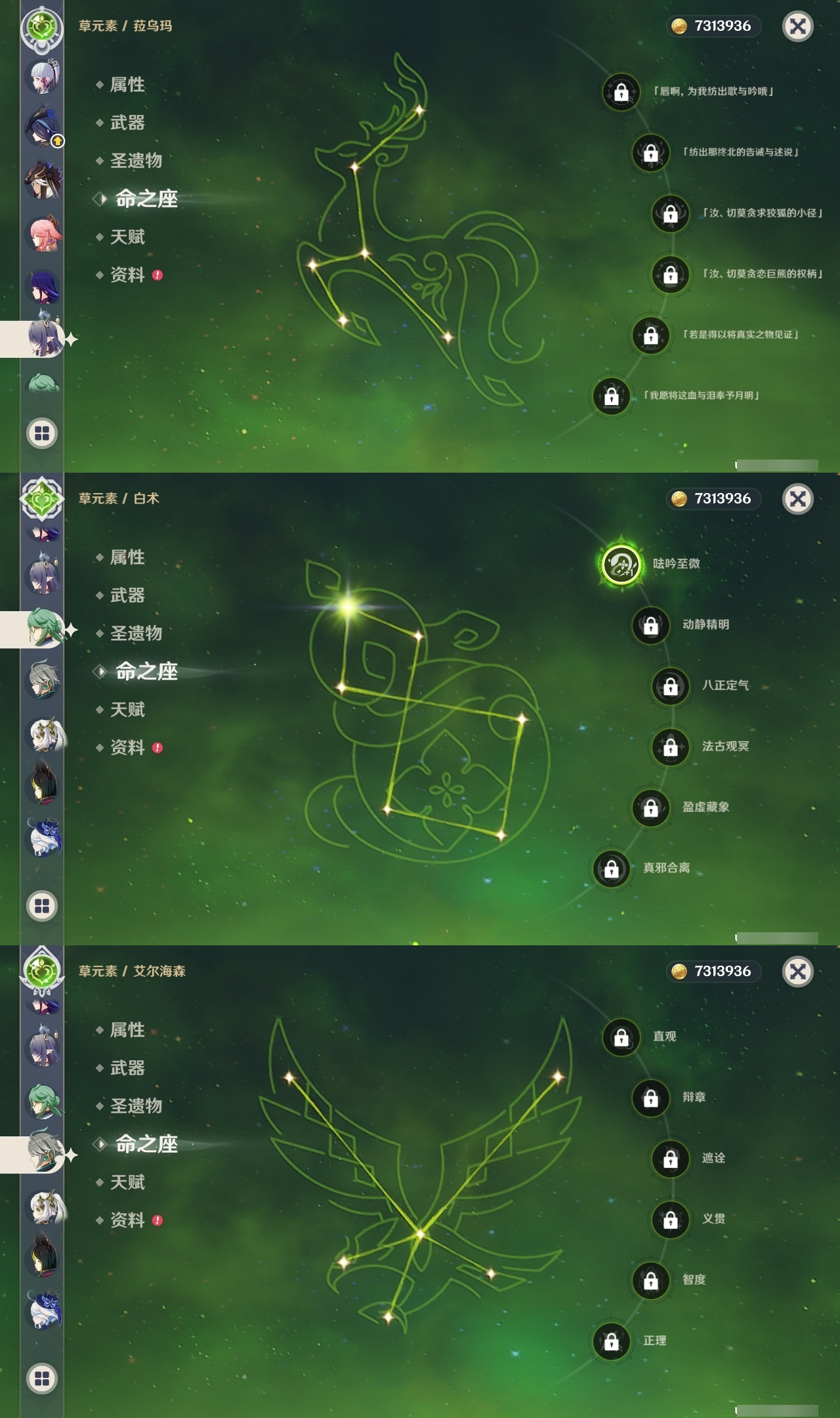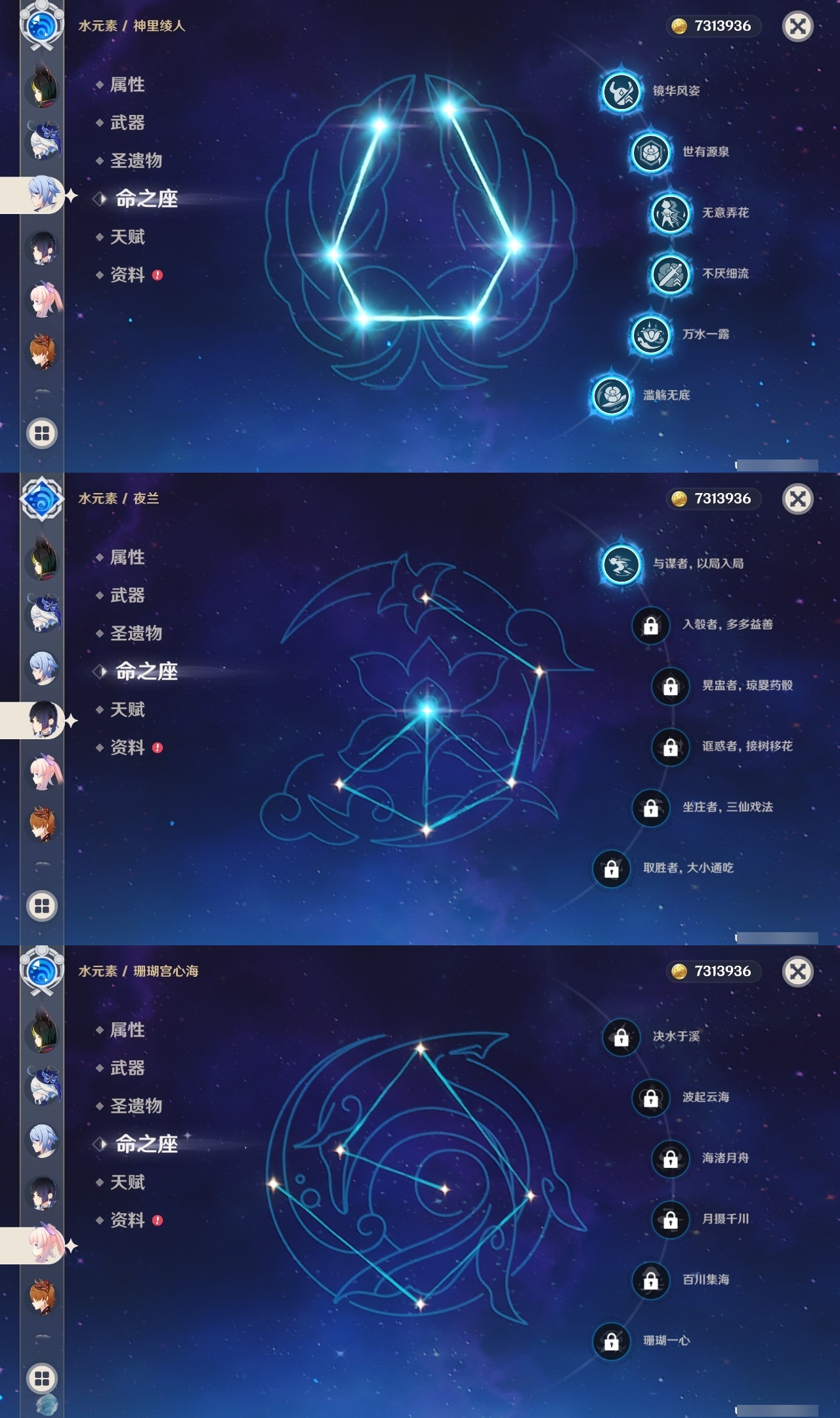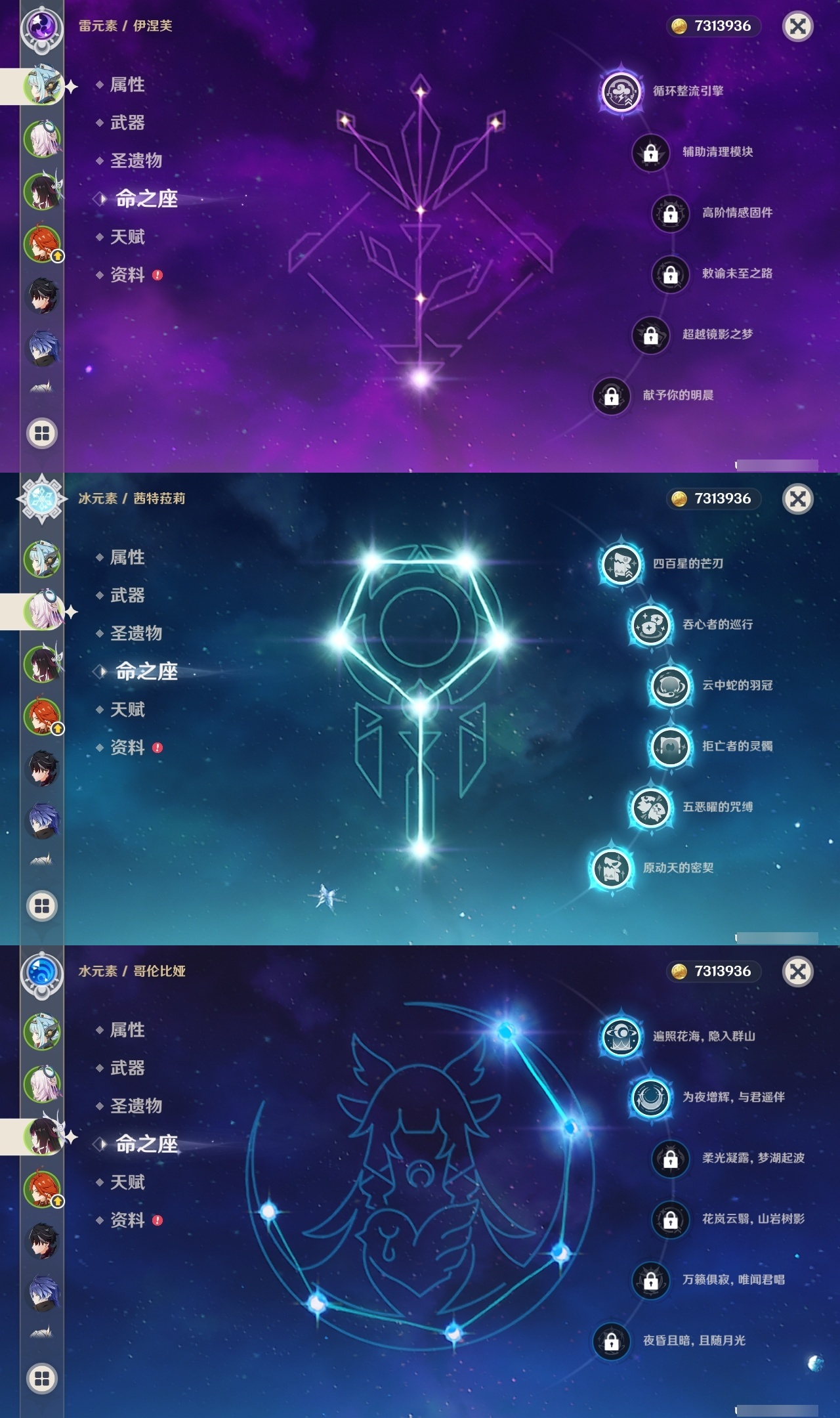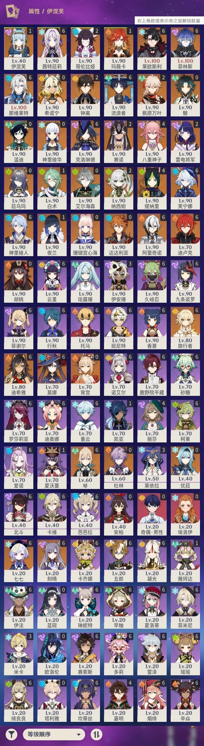 【原神】5满命,冒险等级:60,五星数量:79,五星角色:茜特菈莉 6命迪希雅 6命那维莱特 6命莱欧斯利 6命芙宁娜 6命阿蕾奇诺 6命菲林斯 6命迪卢克 6命刻晴 6命莫娜 6命七七 6命琴 6命神里绫人 6命流浪者 6命克洛琳德 6命八重神子 4命提纳里 4命哥伦比娅 2命枫原万叶 2命雷电将军 2命钟离 2命赛诺 2命纳西妲 2命白术 1命玛薇卡 1命伊涅芙 1命夜兰 1命珊瑚宫心海希诺宁神里绫华温迪宵宫优菈达达利亚菈乌玛艾尔海森杜林魈胡桃__五星武器:万世流涌大典 5精图莱杜拉的回忆 5精风鹰剑 4精金流监督 3精赤沙之杖 3精焚曜千阳 2精和璞鸢 2精护摩之杖 2精天空之卷 2精波乱月白经津 2精赦罪 2精碧落之珑祭星者之望最初的大魔术静水流涌之辉赤月之形支离轮光纺夜天镜血染荒城黎明破晓之史裁叶萃光帷间夜曲苍古自由之誓飞雷之弦振狼的末路四风原典天空之傲天空之脊雾切之回光薙草之稻光终末嗟叹之诗赤角石溃杵冬极白星神乐之真意贯虹之槊若水猎人之径千夜浮梦__四星角色:卡齐娜 6命班尼特 6命行秋 6命九条裟罗 6命香菱 6命久岐忍 6命鹿野院平藏 6命珐露珊 6命凝光 6命迪奥娜 6命砂糖 6命绮良良 6命瑶瑶 6命坎蒂丝 6命多莉 6命柯莱 6命卡维 6命芭芭拉 6命云堇 6命早柚 6命托马 6命五郎 6命烟绯 6命重云 6命辛焱 6命诺艾尔 6命罗莎莉亚 6命雷泽 6命菲谢尔 6命北斗 6命菲米尼 6命琳妮特 6命夏洛蒂 6命伊法 6命爱诺 6命赛索斯 6命嘉明 4命莱依拉 3命米卡 3命伊安珊 3命夏沃蕾 1命埃洛伊奇偶·男性欧洛伦蓝砚塔利雅