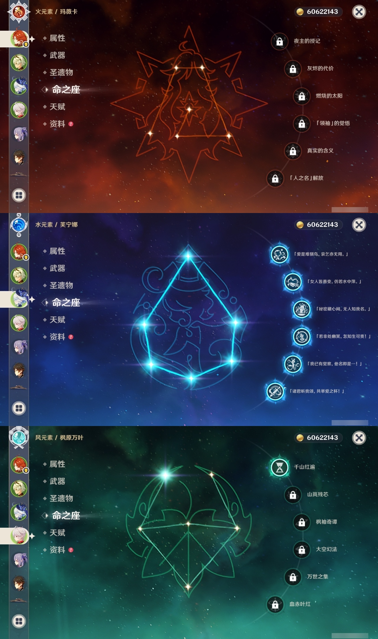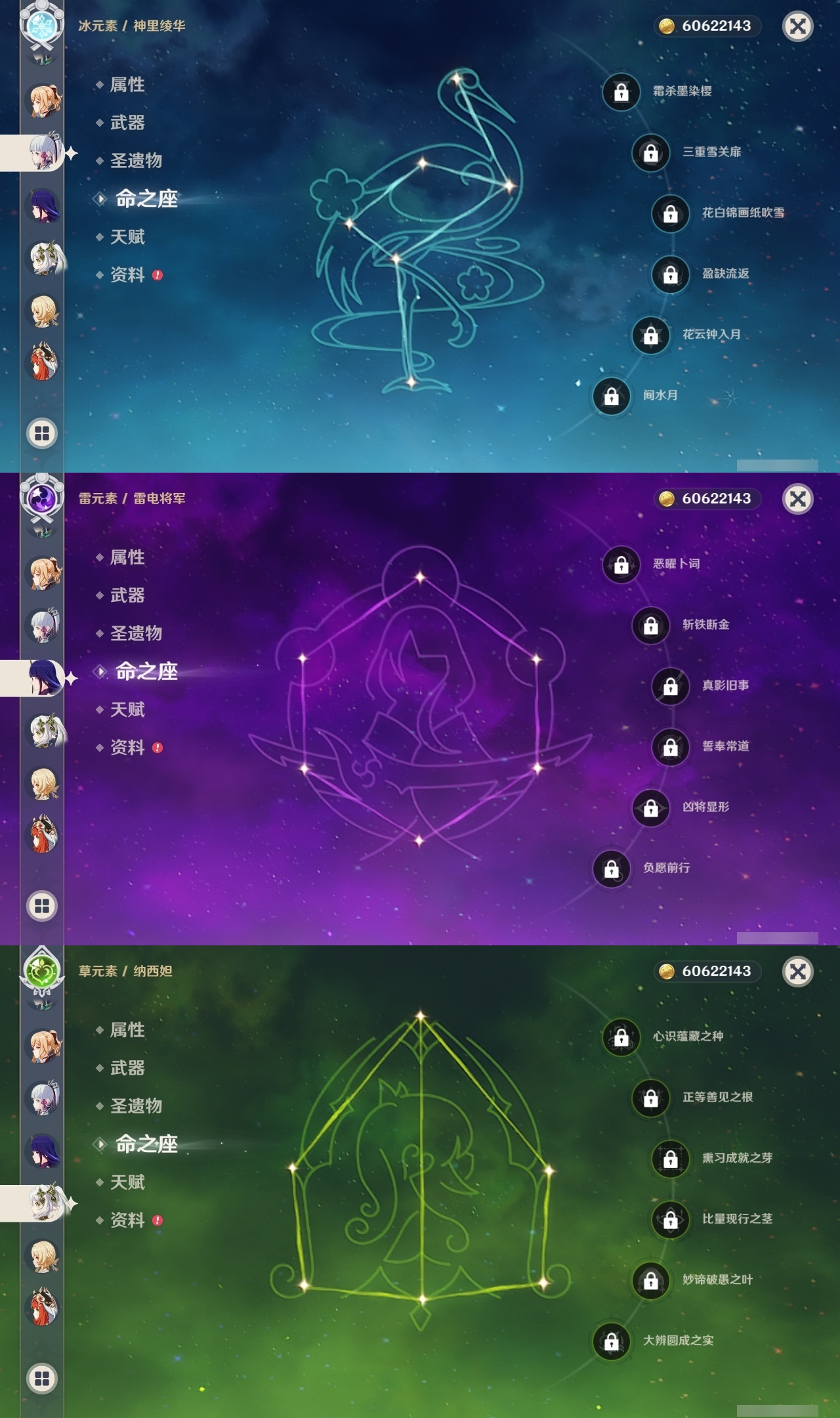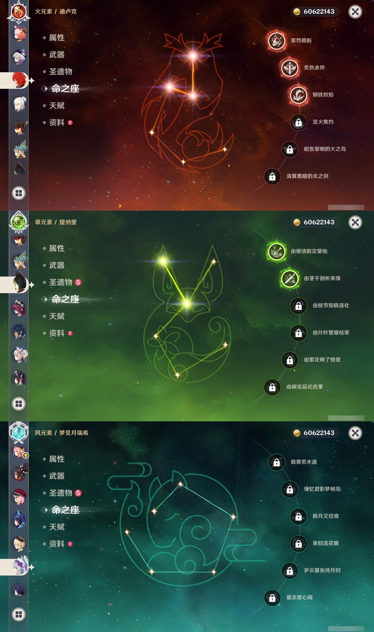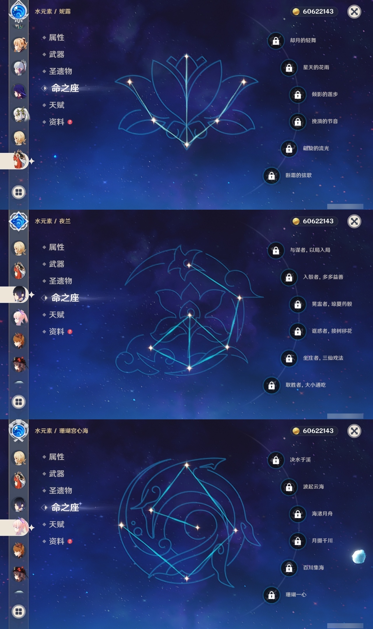 【原神】【lyys11145】冒险等级:60,五星数量:37,五星角色:芙宁娜 6命七七 6命迪卢克 3命刻晴 3命提纳里 2命枫原万叶 1命胡桃 1命琴 1命珊瑚宫心海神里绫华温迪玛薇卡钟离达达利亚梦见月瑞希夜兰妮露纳西妲流浪者魈雷电将军__五星武器:静水流涌之辉 5精狼的末路 3精阿莫斯之弓风鹰剑护摩之杖四风原典天空之脊天空之刃天空之翼冬极白星赤沙之杖千夜浮梦白雨心弦__四星角色:班尼特 6命行秋 6命香菱 6命凝光 6命多莉 6命柯莱 6命芭芭拉 6命早柚 6命五郎 6命烟绯 6命重云 6命辛焱 6命诺艾尔 6命罗莎莉亚 6命雷泽 6命菲谢尔 6命北斗 6命夏洛蒂 6命嘉明 6命鹿野院平藏 5命迪奥娜 5命砂糖 5命九条裟罗 4命久岐忍 4命云堇 4命卡齐娜 3命珐露珊 3命瑶瑶 3命莱依拉 3命坎蒂丝 3命伊法 2命绮良良 1命米卡 1命卡维 1命托马 1命菲米尼 1命埃洛伊奇偶·女性奇偶·男性欧洛伦琳妮特爱诺赛索斯