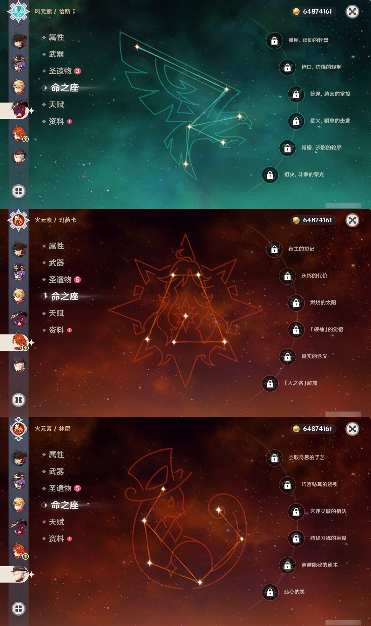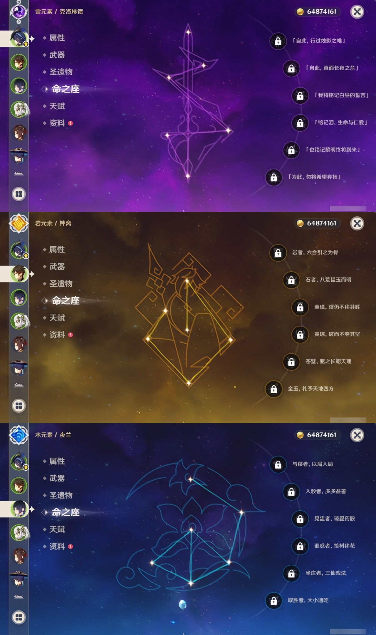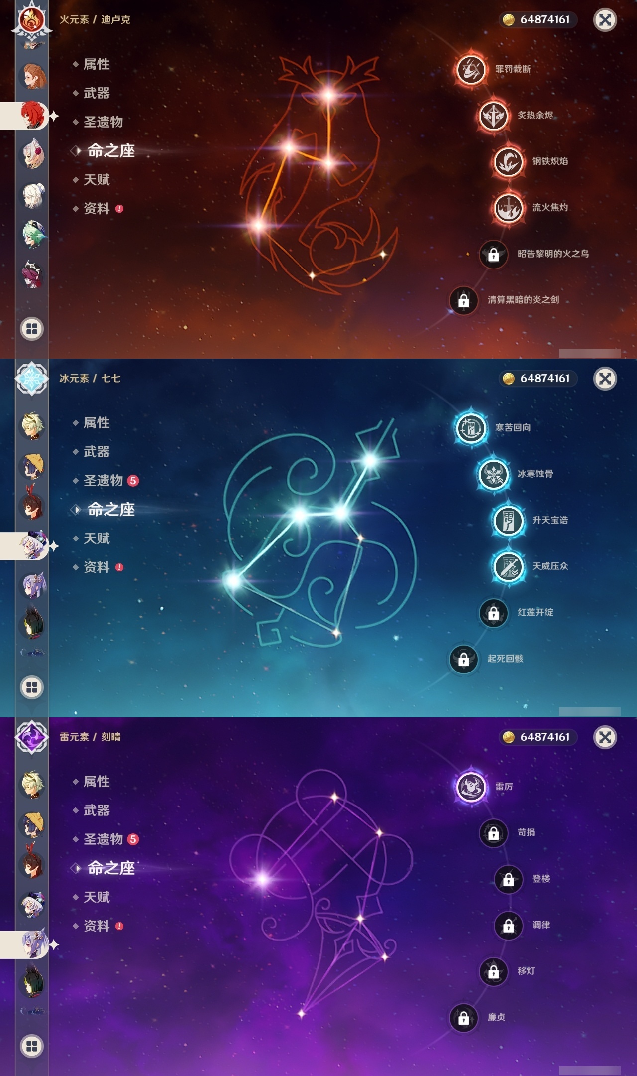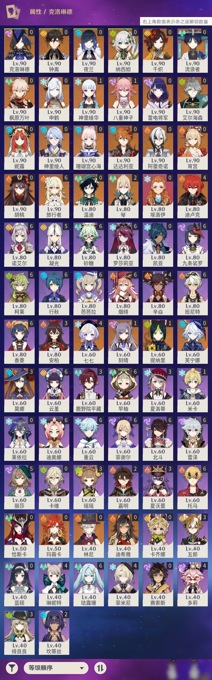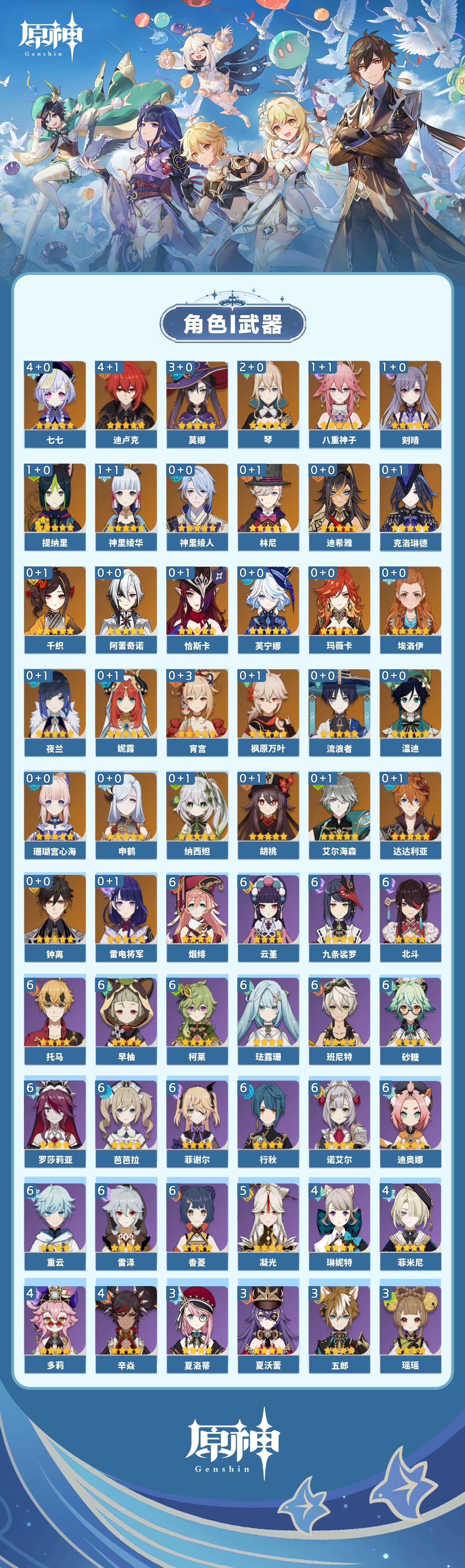【原神】【lyys11163】冒险等级:60,五星数量:57,五星角色:迪卢克 4命七七 4命莫娜 3命琴 2命刻晴 1命神里绫华 1命八重神子 1命提纳里 1命珊瑚宫心海温迪恰斯卡玛薇卡宵宫迪希雅钟离达达利亚申鹤神里绫人林尼夜兰芙宁娜千织阿蕾奇诺妮露纳西妲艾尔海森流浪者枫原万叶胡桃克洛琳德雷电将军__五星武器:飞雷之弦振 3精碧落之珑星鹫赤羽最初的大魔术有乐御簾切裁叶萃光苍古自由之誓风鹰剑和璞鸢护摩之杖狼的末路磐岩结绿天空之傲天空之卷天空之刃天空之翼无工之剑雾切之回光薙草之稻光冬极白星神乐之真意若水圣显之钥千夜浮梦赦罪__四星角色:班尼特 6命行秋 6命九条裟罗 6命香菱 6命珐露珊 6命迪奥娜 6命砂糖 6命柯莱 6命芭芭拉 6命云堇 6命早柚 6命托马 6命烟绯 6命重云 6命诺艾尔 6命罗莎莉亚 6命雷泽 6命菲谢尔 6命北斗 6命凝光 5命多莉 4命辛焱 4命菲米尼 4命琳妮特 4命鹿野院平藏 3命绮良良 3命瑶瑶 3命五郎 3命夏洛蒂 3命夏沃蕾 3命坎蒂丝 2命嘉明 2命米卡 1命埃洛伊卡齐娜莱依拉卡维蓝砚赛索斯