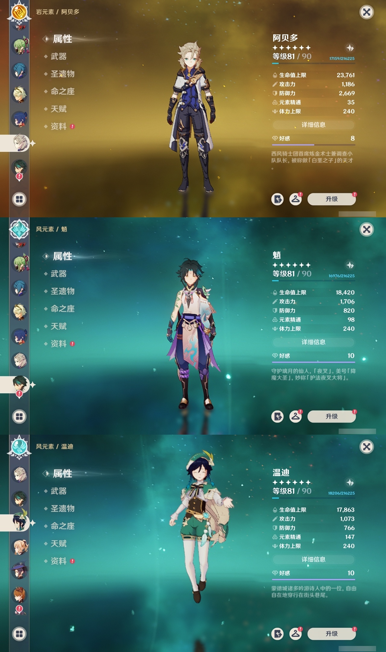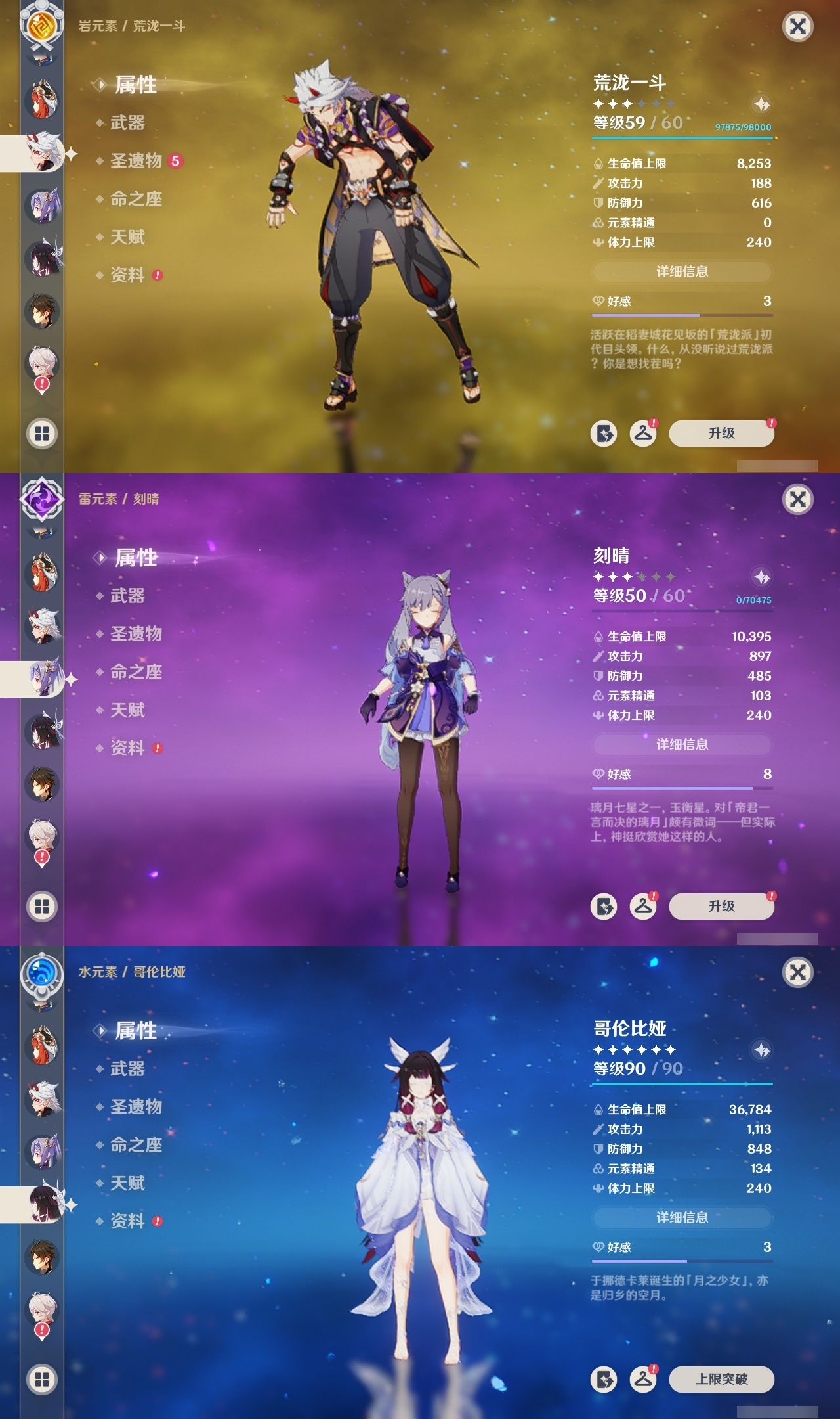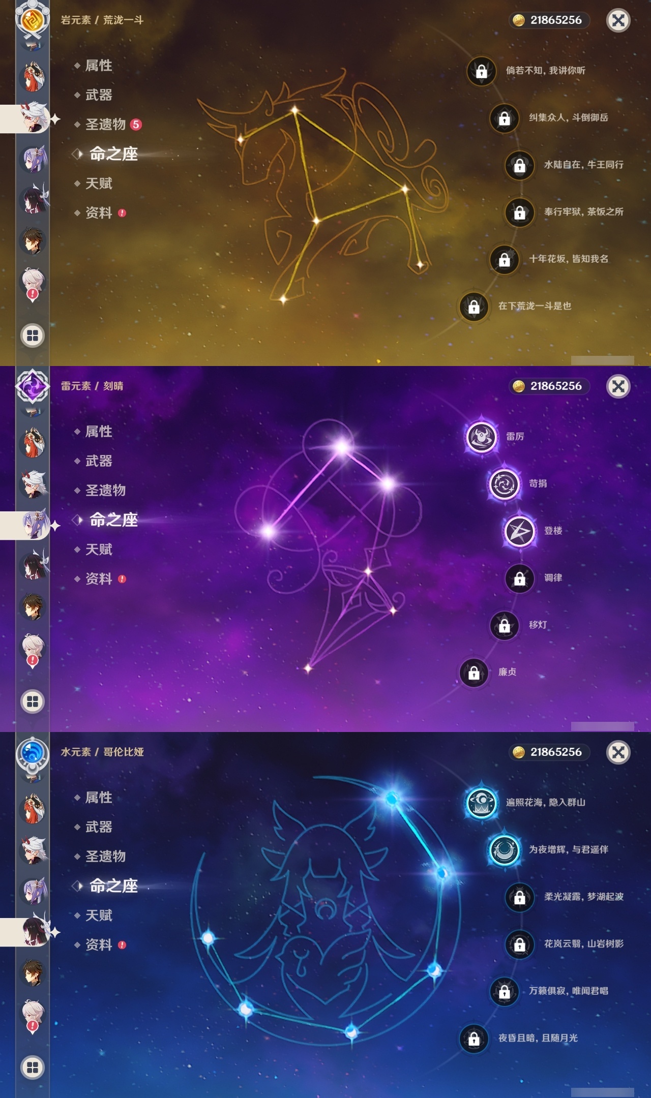 【原神】【lyys11158】冒险等级:60,五星数量:42,五星角色:夜兰 6命琴 4命刻晴 3命雷电将军 3命七七 3命那维莱特 2命哥伦比娅 2命迪卢克 2命枫原万叶 2命莫娜 2命神里绫华 2命钟离 2命纳西妲 2命梦见月瑞希 1命甘雨 1命胡桃 1命温迪 1命珊瑚宫心海宵宫优菈迪希雅荒泷一斗达达利亚阿贝多芙宁娜妮露流浪者魈可莉__五星武器:帷间夜曲风鹰剑护摩之杖狼的末路天空之傲天空之脊天空之卷无工之剑雾切之回光薙草之稻光息灾若水__四星角色:班尼特 6命行秋 6命九条裟罗 6命香菱 6命凝光 6命迪奥娜 6命砂糖 6命芭芭拉 6命早柚 6命托马 6命烟绯 6命重云 6命辛焱 6命诺艾尔 6命罗莎莉亚 6命雷泽 6命菲谢尔 6命北斗 6命琳妮特 6命伊法 5命五郎 4命赛索斯 4命鹿野院平藏 3命莱依拉 3命坎蒂丝 3命云堇 3命久岐忍 2命珐露珊 2命瑶瑶 1命多莉 1命夏洛蒂 1命埃洛伊米卡柯莱菲米尼嘉明