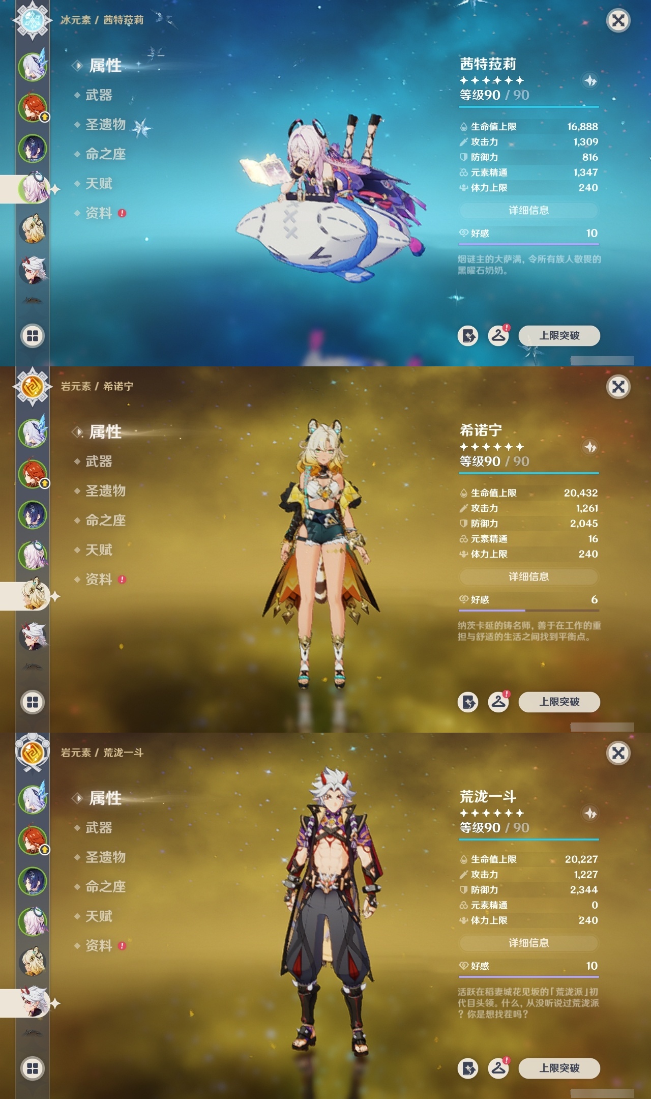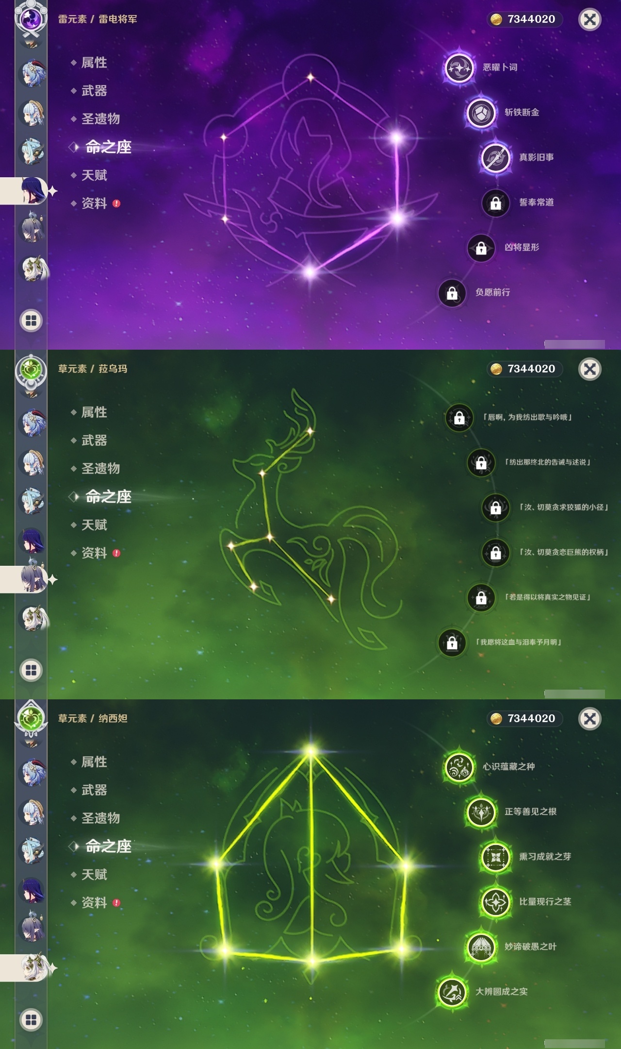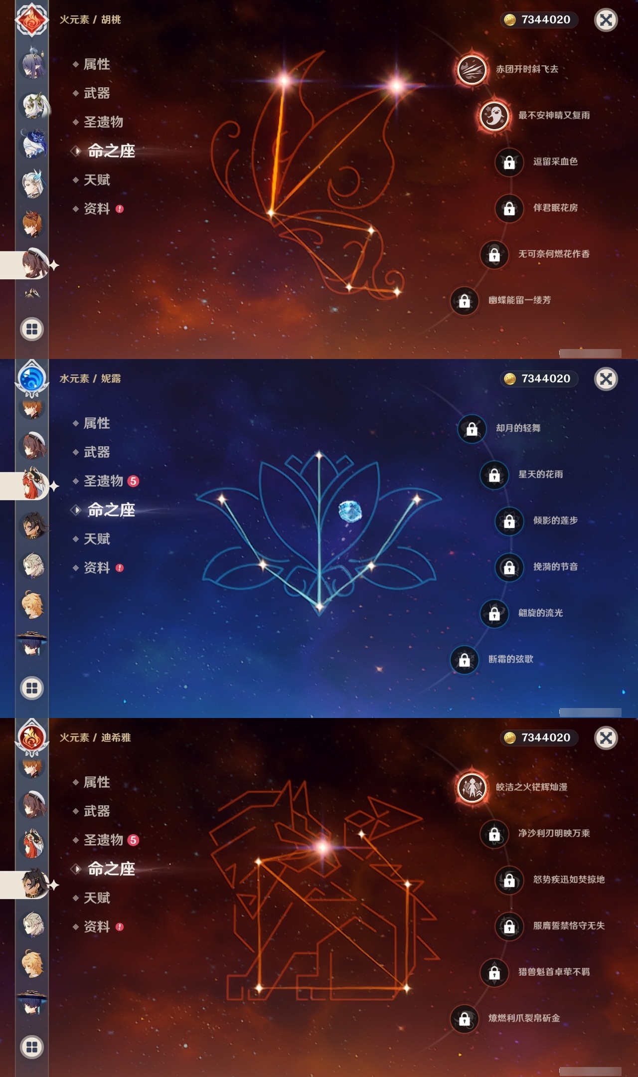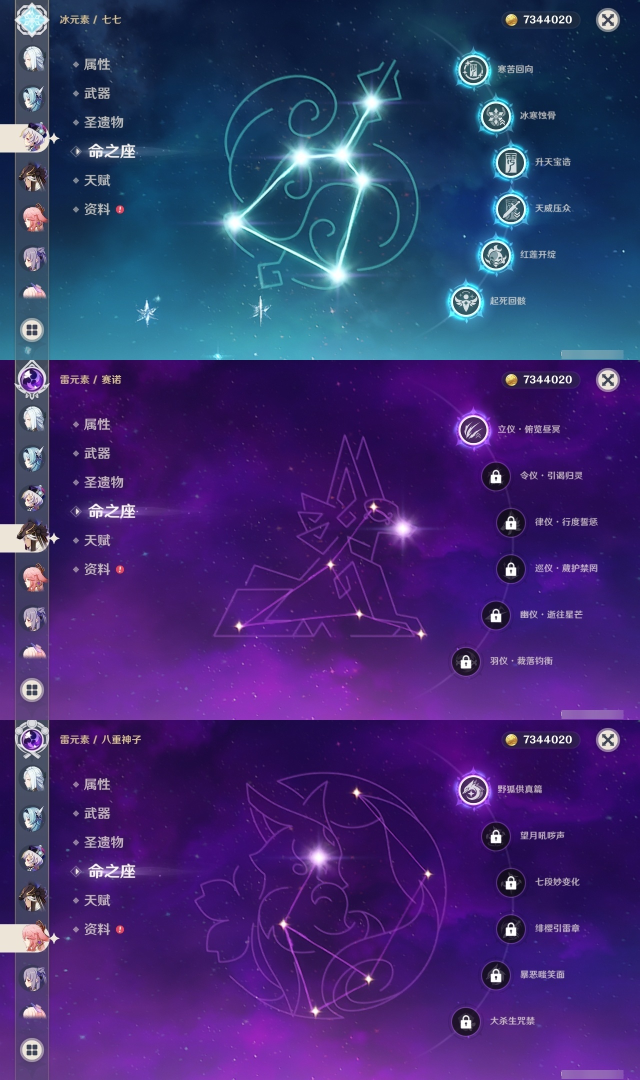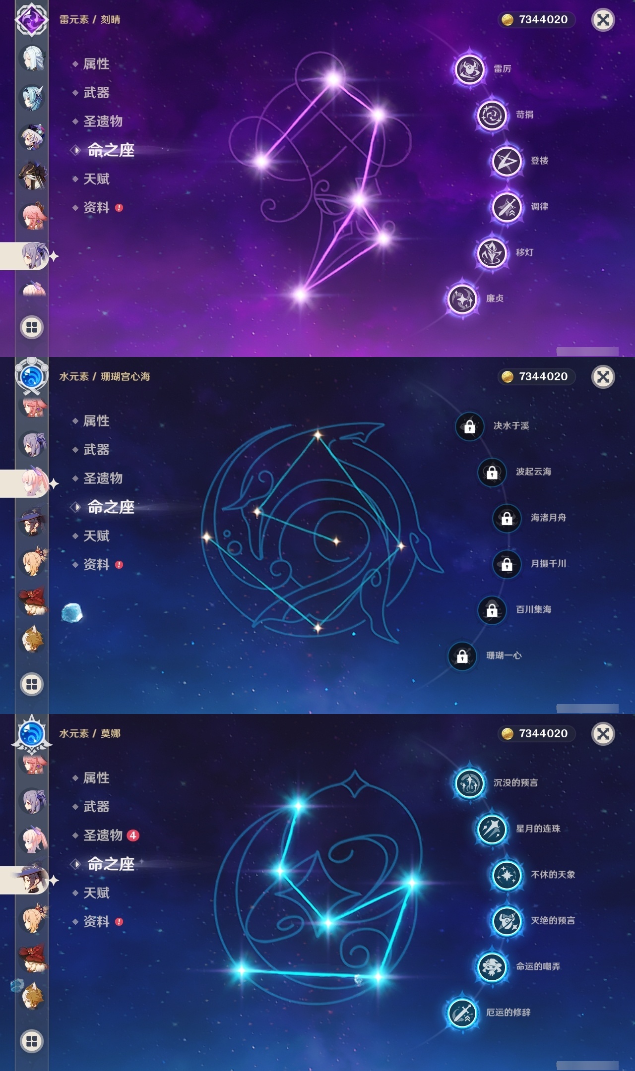 【原神】6满命,冒险等级:60,五星数量:71,五星角色:玛薇卡 6命茜特菈莉 6命丝柯克 6命达达利亚 6命迪卢克 6命枫原万叶 6命甘雨 6命魈 6命刻晴 6命莫娜 6命七七 6命琴 6命神里绫华 6命荒泷一斗 6命夜兰 6命纳西妲 6命提纳里 4命雷电将军 3命钟离 3命伊涅芙 2命胡桃 2命迪希雅 1命优菈 1命申鹤 1命八重神子 1命赛诺 1命珊瑚宫心海希诺宁温迪宵宫阿贝多那维莱特芙宁娜妮露菈乌玛流浪者可莉__五星武器:和璞鸢 5精阿莫斯之弓 4精祭星者之望 3精焚曜千阳 3精若水 3精千夜浮梦 3精柔灯挽歌 2精支离轮光 2精天空之翼 2精冬极白星 2精神乐之真意 2精苍耀真语秘匣图莱杜拉的回忆不灭月华苍古自由之誓飞雷之弦振护摩之杖狼的末路磐岩结绿四风原典天空之脊天空之卷天空之刃无工之剑雾切之回光薙草之稻光终末嗟叹之诗赤角石溃杵息灾贯虹之槊赤沙之杖__四星角色:班尼特 6命行秋 6命九条裟罗 6命香菱 6命久岐忍 6命鹿野院平藏 6命凝光 6命迪奥娜 6命砂糖 6命瑶瑶 6命莱依拉 6命坎蒂丝 6命柯莱 6命芭芭拉 6命云堇 6命早柚 6命托马 6命五郎 6命烟绯 6命重云 6命辛焱 6命诺艾尔 6命罗莎莉亚 6命雷泽 6命菲谢尔 6命北斗 6命伊法 6命伊安珊 6命塔利雅 6命赛索斯 6命多莉 5命琳妮特 5命珐露珊 4命嘉明 4命卡维 3命夏沃蕾 3命卡齐娜 1命欧洛伦 1命夏洛蒂 1命埃洛伊奇偶·女性蓝砚菲米尼爱诺