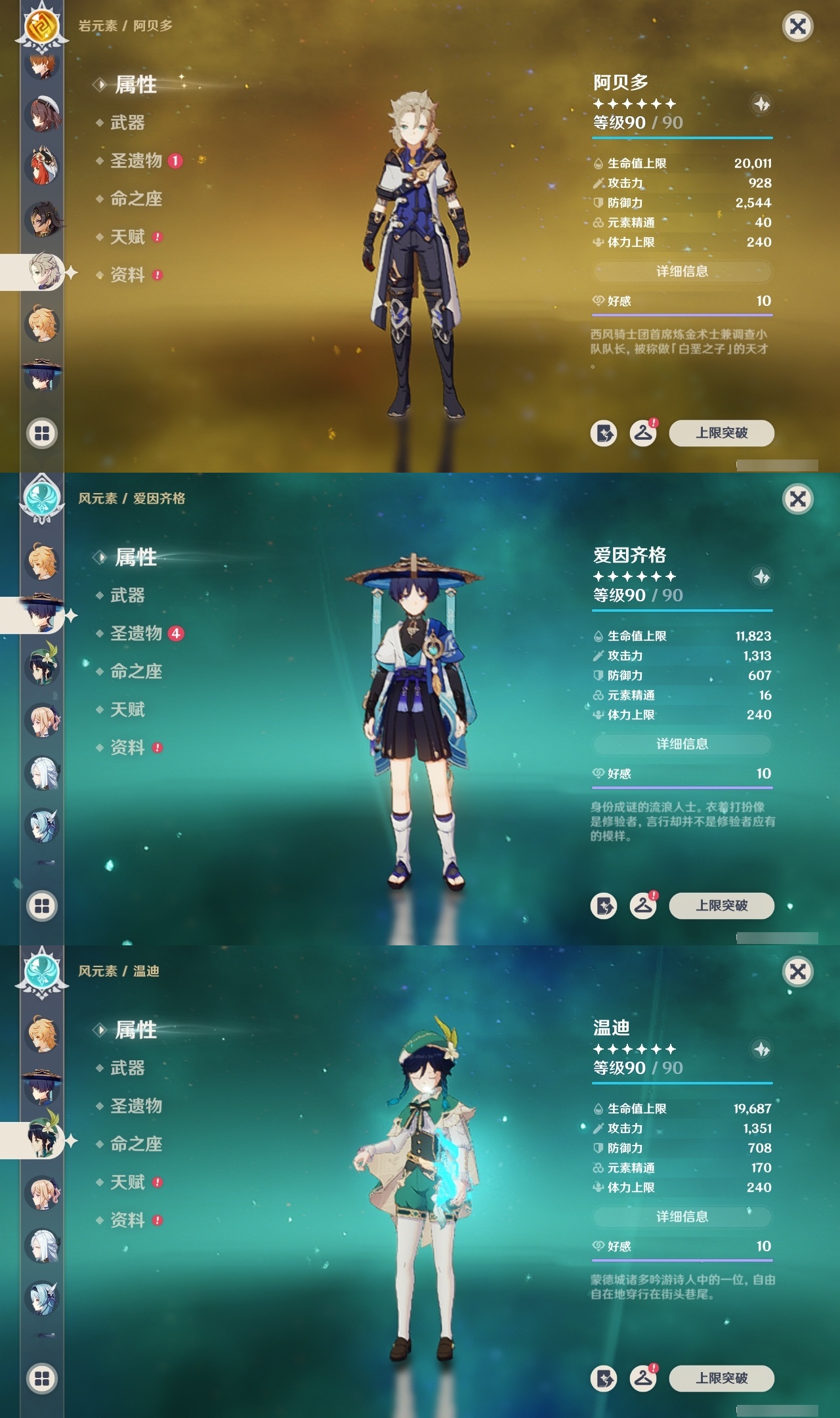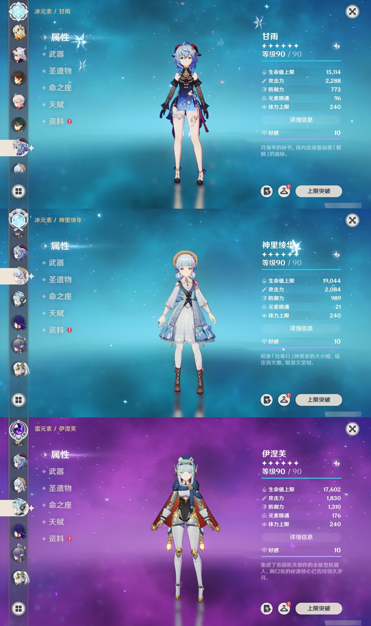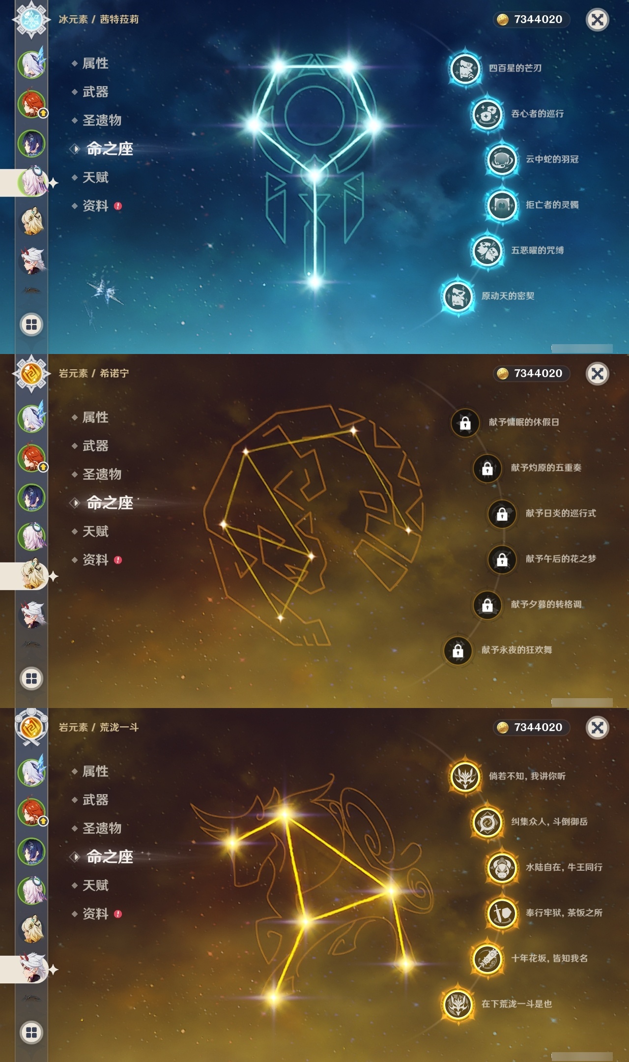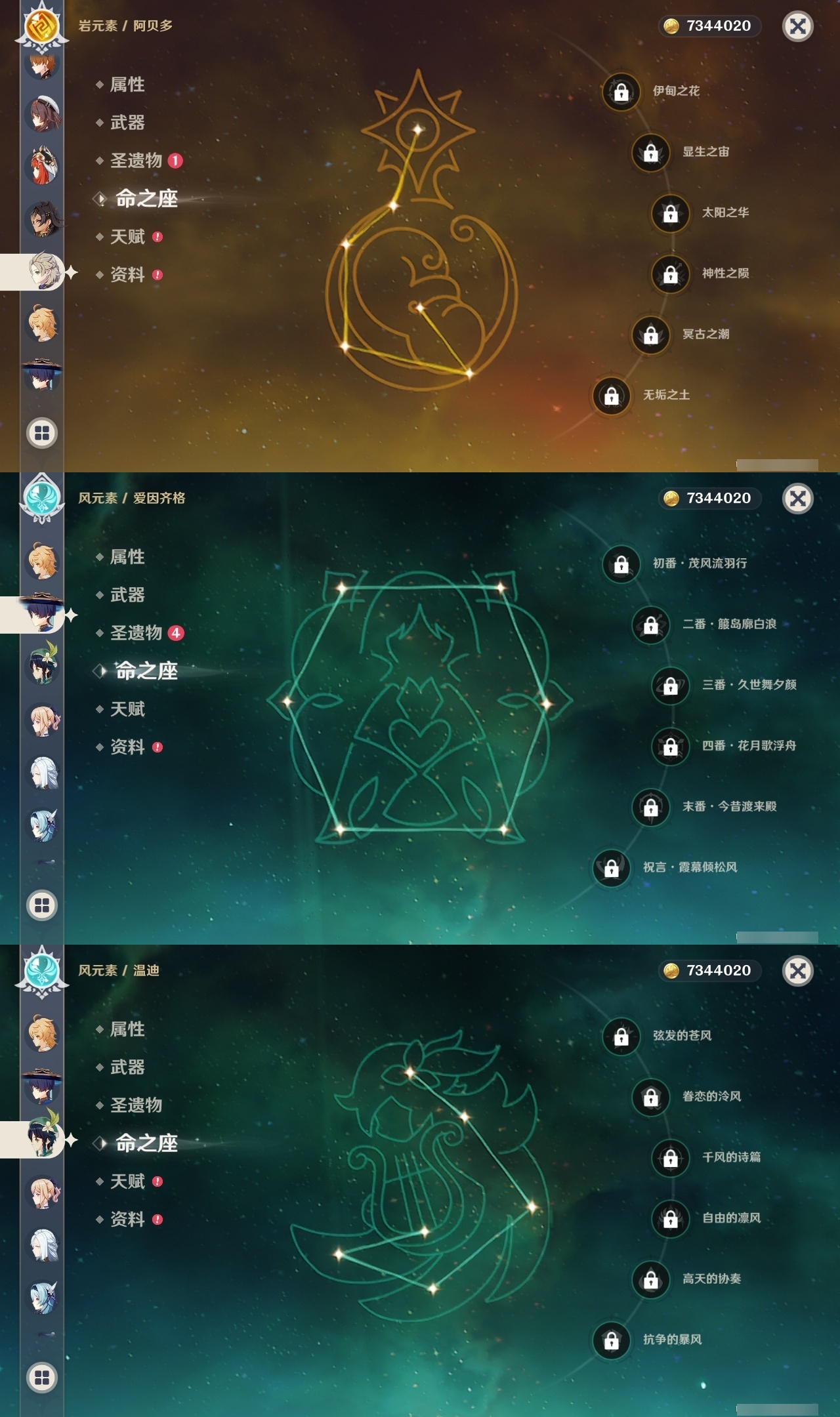 【原神】6满命,冒险等级:60,五星数量:71,五星角色:玛薇卡 6命茜特菈莉 6命丝柯克 6命达达利亚 6命迪卢克 6命枫原万叶 6命甘雨 6命魈 6命刻晴 6命莫娜 6命七七 6命琴 6命神里绫华 6命荒泷一斗 6命夜兰 6命纳西妲 6命提纳里 4命雷电将军 3命钟离 3命伊涅芙 2命胡桃 2命迪希雅 1命优菈 1命申鹤 1命八重神子 1命赛诺 1命珊瑚宫心海希诺宁温迪宵宫阿贝多那维莱特芙宁娜妮露菈乌玛流浪者可莉__五星武器:和璞鸢 5精阿莫斯之弓 4精祭星者之望 3精焚曜千阳 3精若水 3精千夜浮梦 3精柔灯挽歌 2精支离轮光 2精天空之翼 2精冬极白星 2精神乐之真意 2精苍耀真语秘匣图莱杜拉的回忆不灭月华苍古自由之誓飞雷之弦振护摩之杖狼的末路磐岩结绿四风原典天空之脊天空之卷天空之刃无工之剑雾切之回光薙草之稻光终末嗟叹之诗赤角石溃杵息灾贯虹之槊赤沙之杖__四星角色:班尼特 6命行秋 6命九条裟罗 6命香菱 6命久岐忍 6命鹿野院平藏 6命凝光 6命迪奥娜 6命砂糖 6命瑶瑶 6命莱依拉 6命坎蒂丝 6命柯莱 6命芭芭拉 6命云堇 6命早柚 6命托马 6命五郎 6命烟绯 6命重云 6命辛焱 6命诺艾尔 6命罗莎莉亚 6命雷泽 6命菲谢尔 6命北斗 6命伊法 6命伊安珊 6命塔利雅 6命赛索斯 6命多莉 5命琳妮特 5命珐露珊 4命嘉明 4命卡维 3命夏沃蕾 3命卡齐娜 1命欧洛伦 1命夏洛蒂 1命埃洛伊奇偶·女性蓝砚菲米尼爱诺