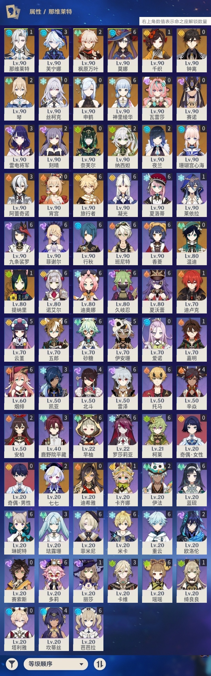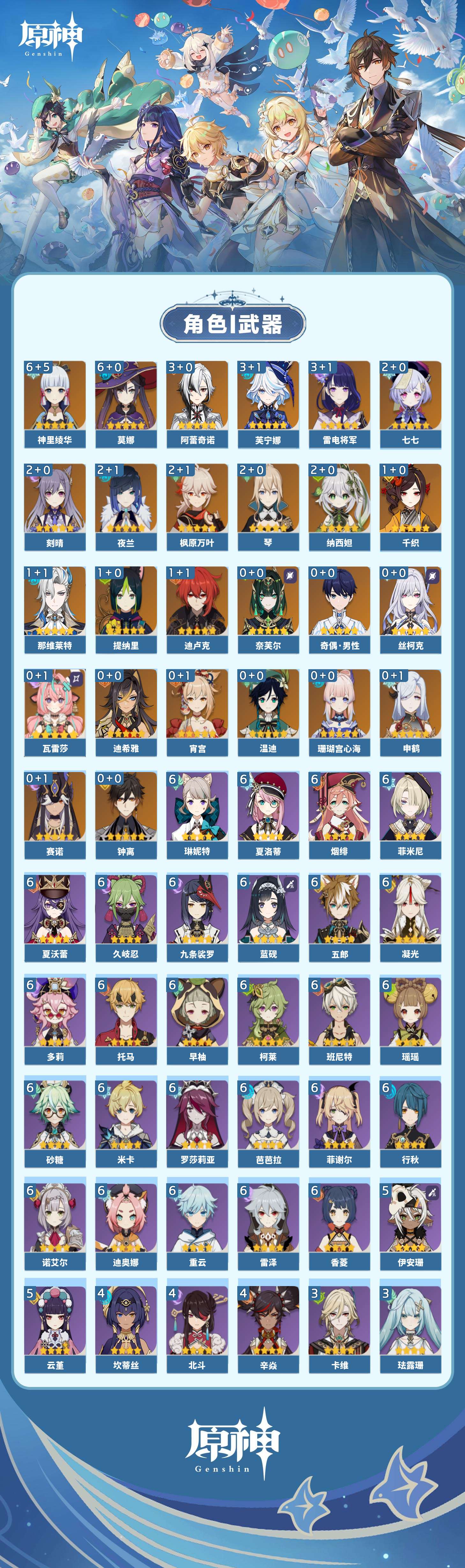 【原神】【lyys11171】冒险等级:60,五星数量:46,五星角色:莫娜 6命神里绫华 6命芙宁娜 3命阿蕾奇诺 3命雷电将军 3命枫原万叶 2命刻晴 2命七七 2命琴 2命夜兰 2命纳西妲 2命那维莱特 1命千织 1命迪卢克 1命提纳里 1命珊瑚宫心海温迪宵宫迪希雅钟离申鹤瓦雷莎赛诺丝柯克奈芙尔__五星武器:雾切之回光 5精岩峰巡歌碧落之珑溢彩心念万世流涌大典静水流涌之辉苍古自由之誓飞雷之弦振狼的末路四风原典天空之傲天空之脊天空之卷天空之刃天空之翼薙草之稻光息灾若水赤沙之杖__四星角色:班尼特 6命行秋 6命九条裟罗 6命香菱 6命久岐忍 6命凝光 6命迪奥娜 6命砂糖 6命瑶瑶 6命米卡 6命多莉 6命柯莱 6命芭芭拉 6命蓝砚 6命早柚 6命托马 6命五郎 6命烟绯 6命重云 6命诺艾尔 6命罗莎莉亚 6命雷泽 6命菲谢尔 6命菲米尼 6命琳妮特 6命夏洛蒂 6命夏沃蕾 6命云堇 5命伊安珊 5命坎蒂丝 4命辛焱 4命北斗 4命鹿野院平藏 3命珐露珊 3命卡维 3命欧洛伦 2命伊法 2命卡齐娜 1命绮良良 1命莱依拉 1命嘉明 1命奇偶·女性奇偶·男性塔利雅爱诺赛索斯