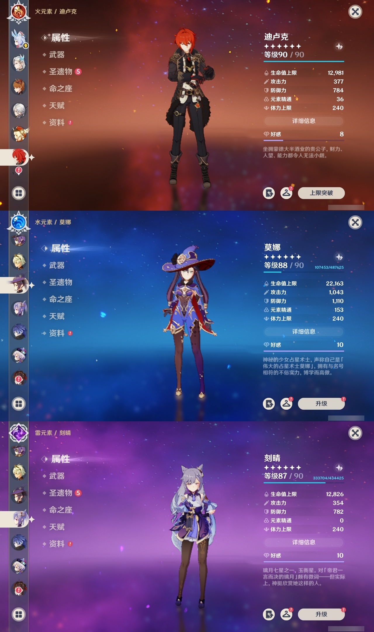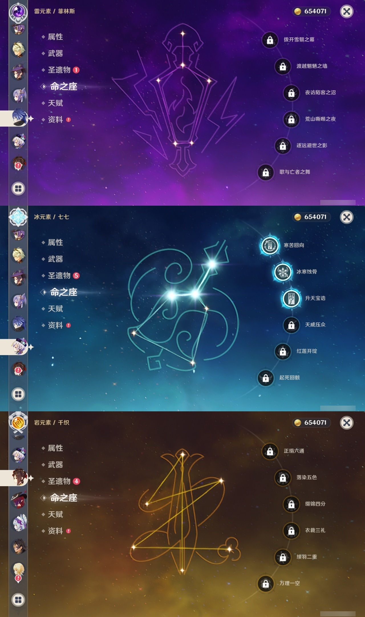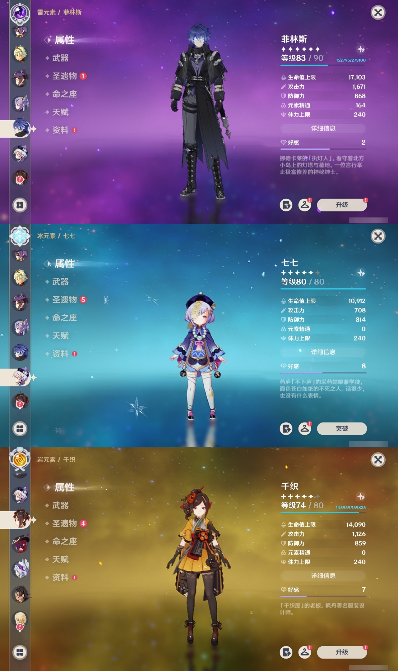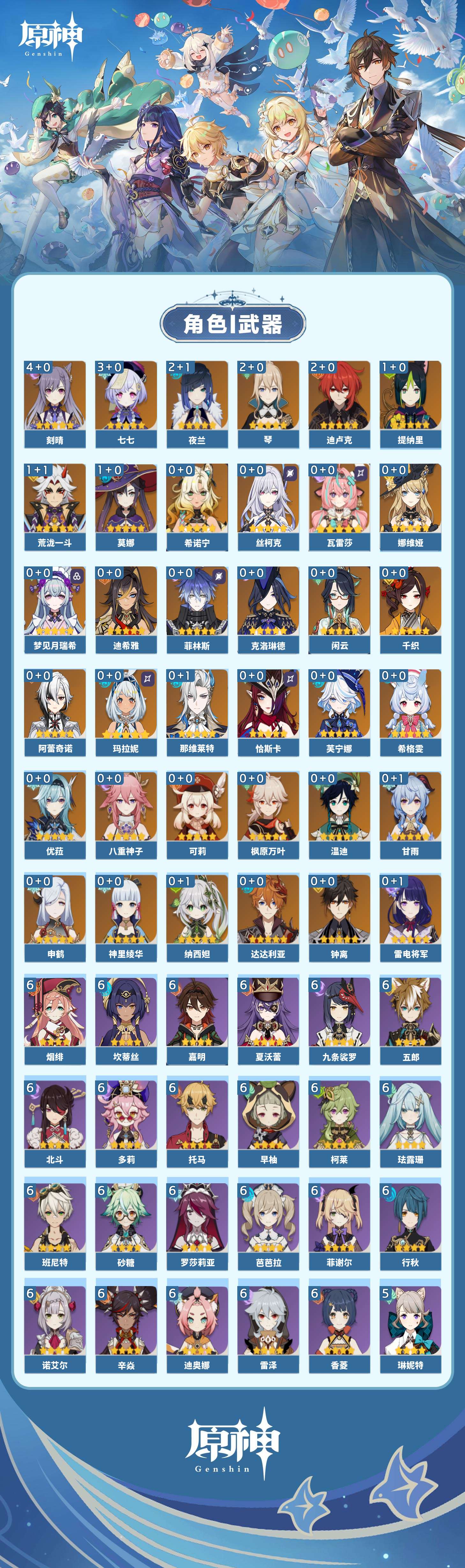 【原神】【lyys11175】冒险等级:60,五星数量:50,五星角色:刻晴 4命七七 3命迪卢克 2命琴 2命夜兰 2命莫娜 1命荒泷一斗 1命提纳里 1命玛拉妮希诺宁神里绫华温迪恰斯卡优菈迪希雅钟离达达利亚梦见月瑞希申鹤瓦雷莎八重神子那维莱特芙宁娜娜维娅闲云千织阿蕾奇诺丝柯克纳西妲菲林斯枫原万叶甘雨克洛琳德希格雯可莉雷电将军__五星武器:风鹰剑 3精万世流涌大典阿莫斯之弓飞雷之弦振护摩之杖天空之傲天空之翼无工之剑薙草之稻光赤角石溃杵波乱月白经津若水圣显之钥千夜浮梦__四星角色:班尼特 6命行秋 6命九条裟罗 6命香菱 6命珐露珊 6命迪奥娜 6命砂糖 6命坎蒂丝 6命多莉 6命柯莱 6命芭芭拉 6命早柚 6命托马 6命五郎 6命烟绯 6命辛焱 6命诺艾尔 6命罗莎莉亚 6命雷泽 6命菲谢尔 6命北斗 6命夏沃蕾 6命嘉明 6命久岐忍 5命瑶瑶 5命琳妮特 5命卡齐娜 4命凝光 4命米卡 4命云堇 4命爱诺 4命鹿野院平藏 3命莱依拉 3命卡维 3命赛索斯 3命绮良良 2命欧洛伦 2命蓝砚 2命重云 2命菲米尼 2命夏洛蒂 2命伊法伊安珊塔利雅